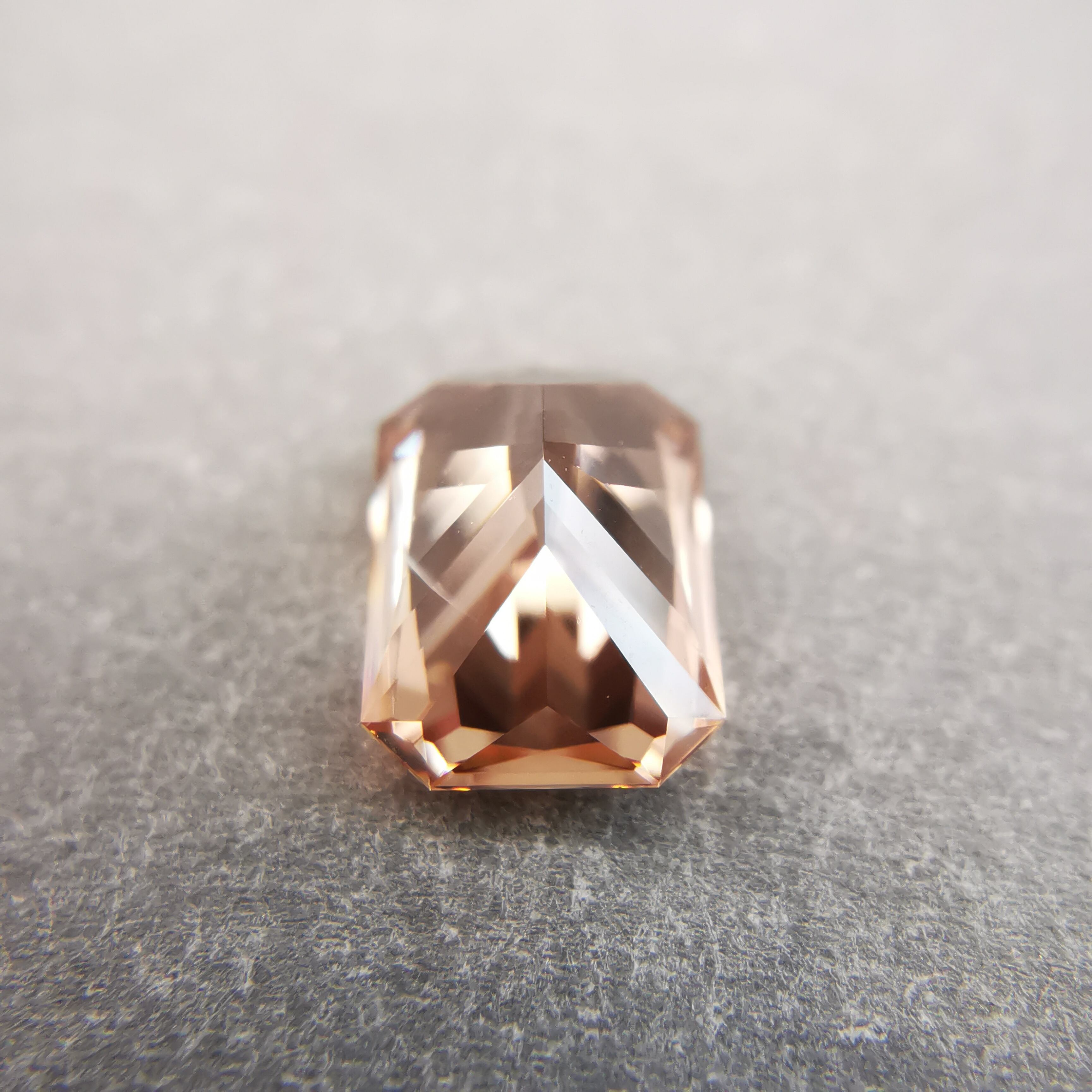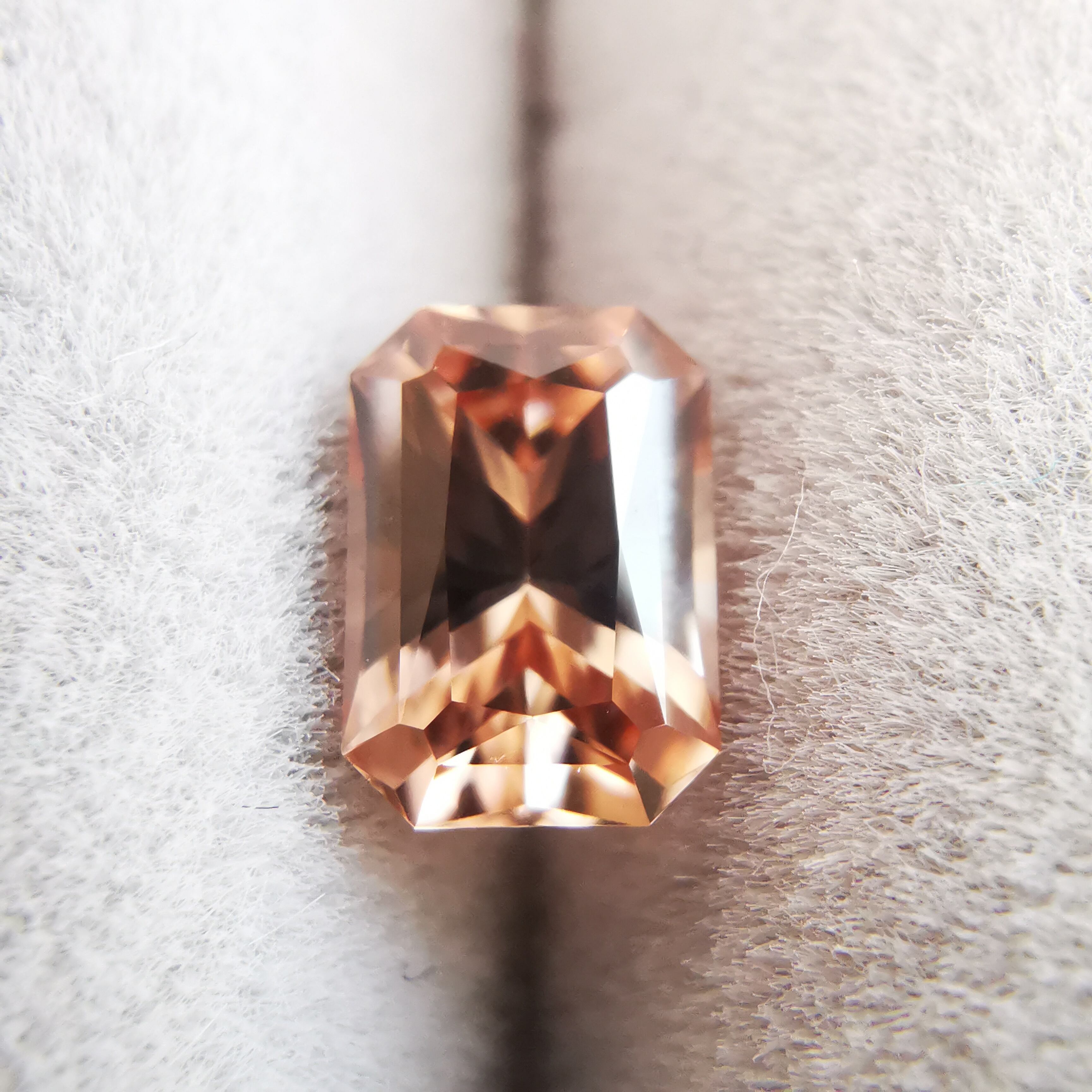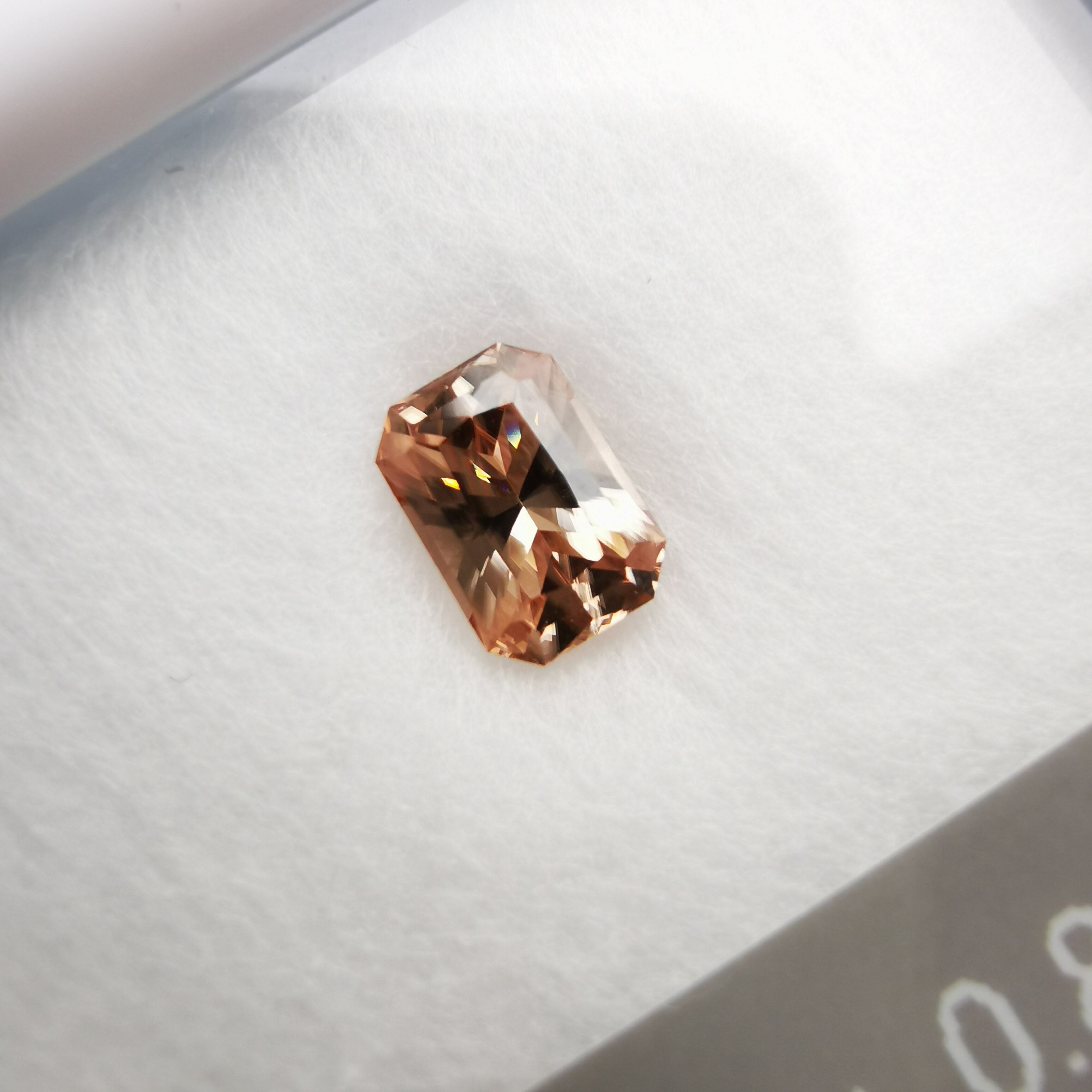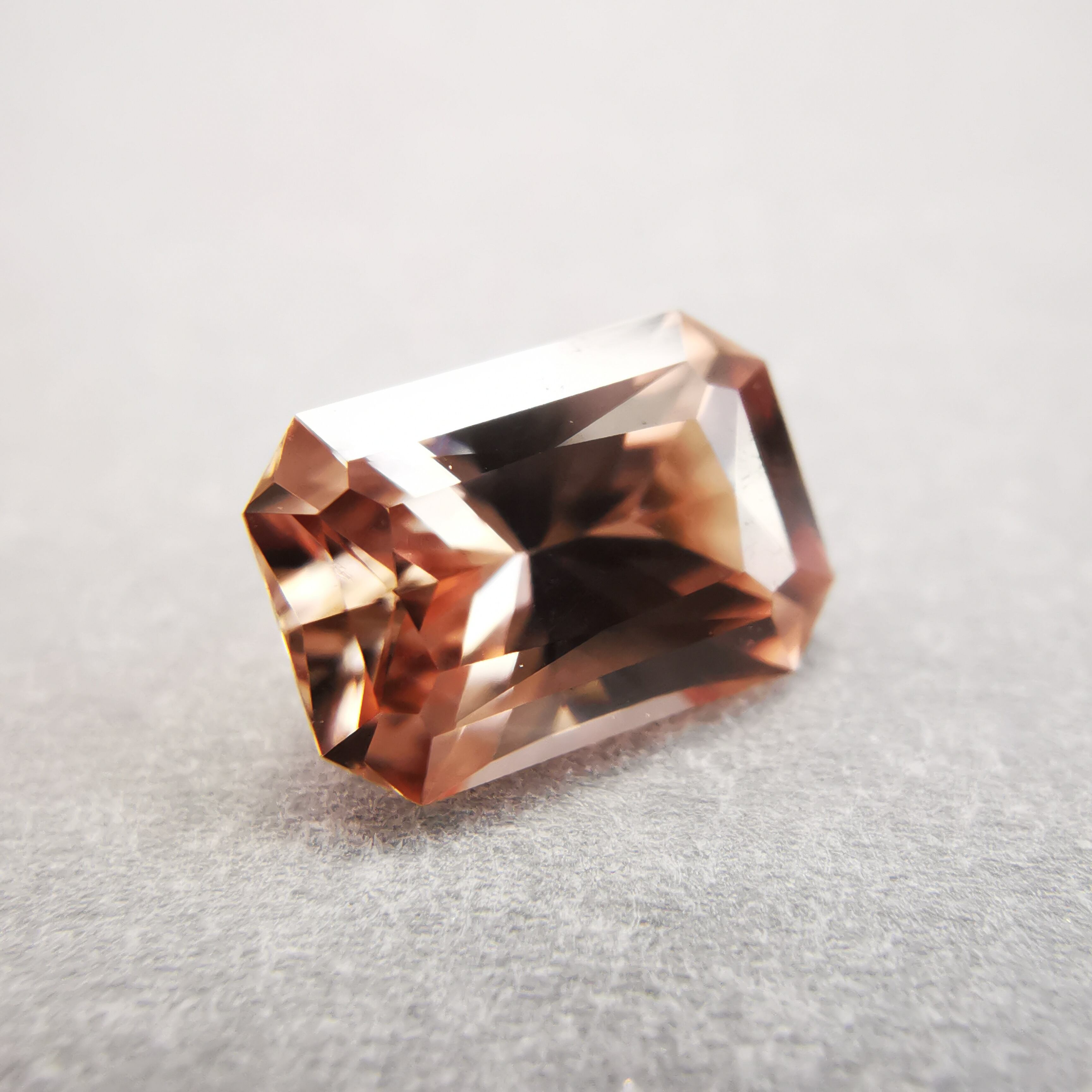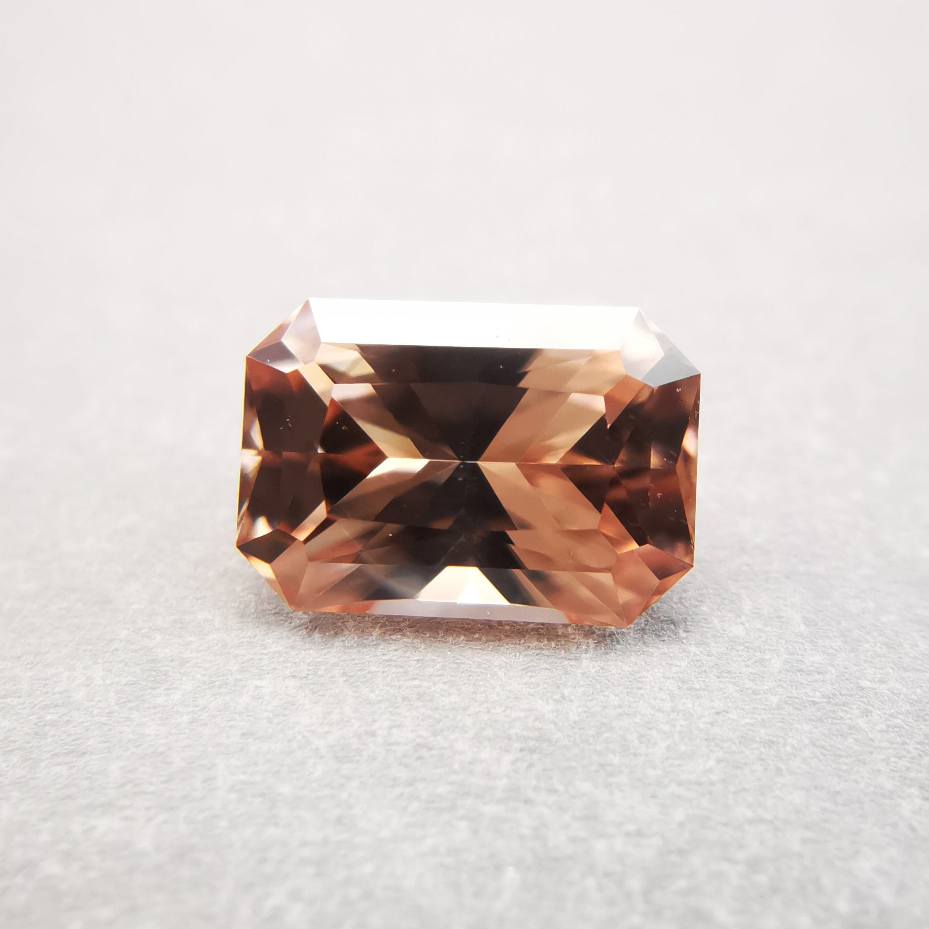 光源によって、シャンパンカラーからもう少し濃いアプリコットカラーになるジルコンです。
