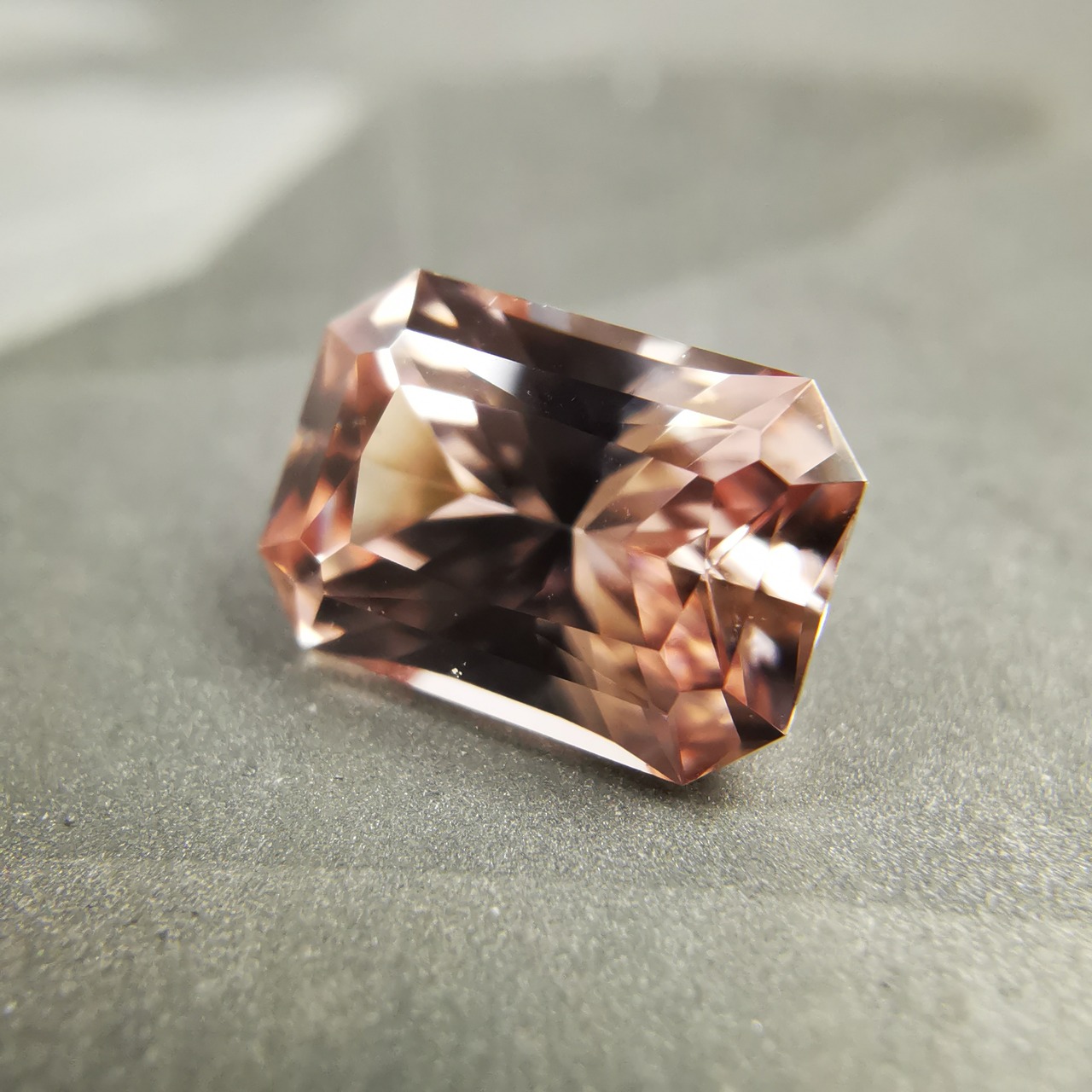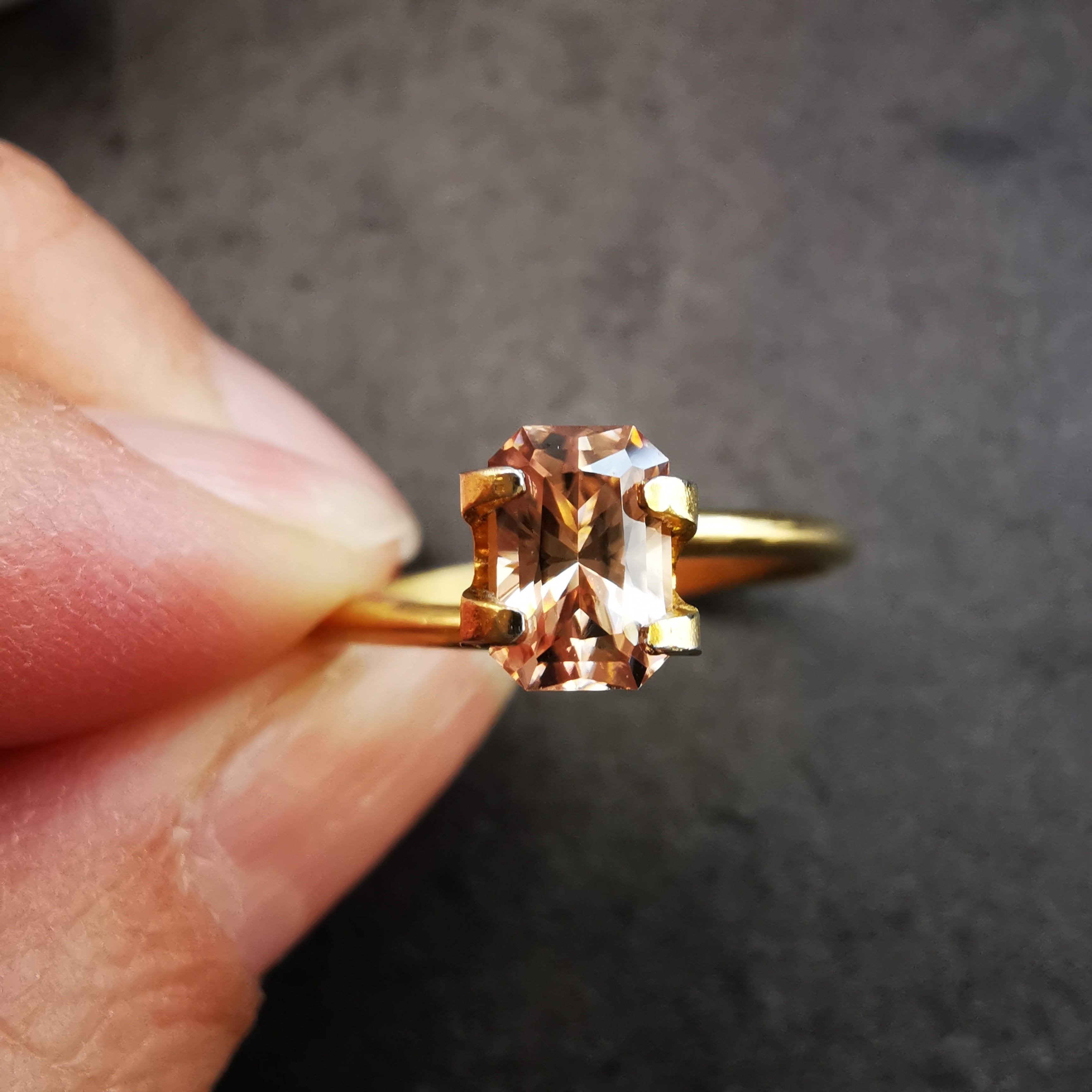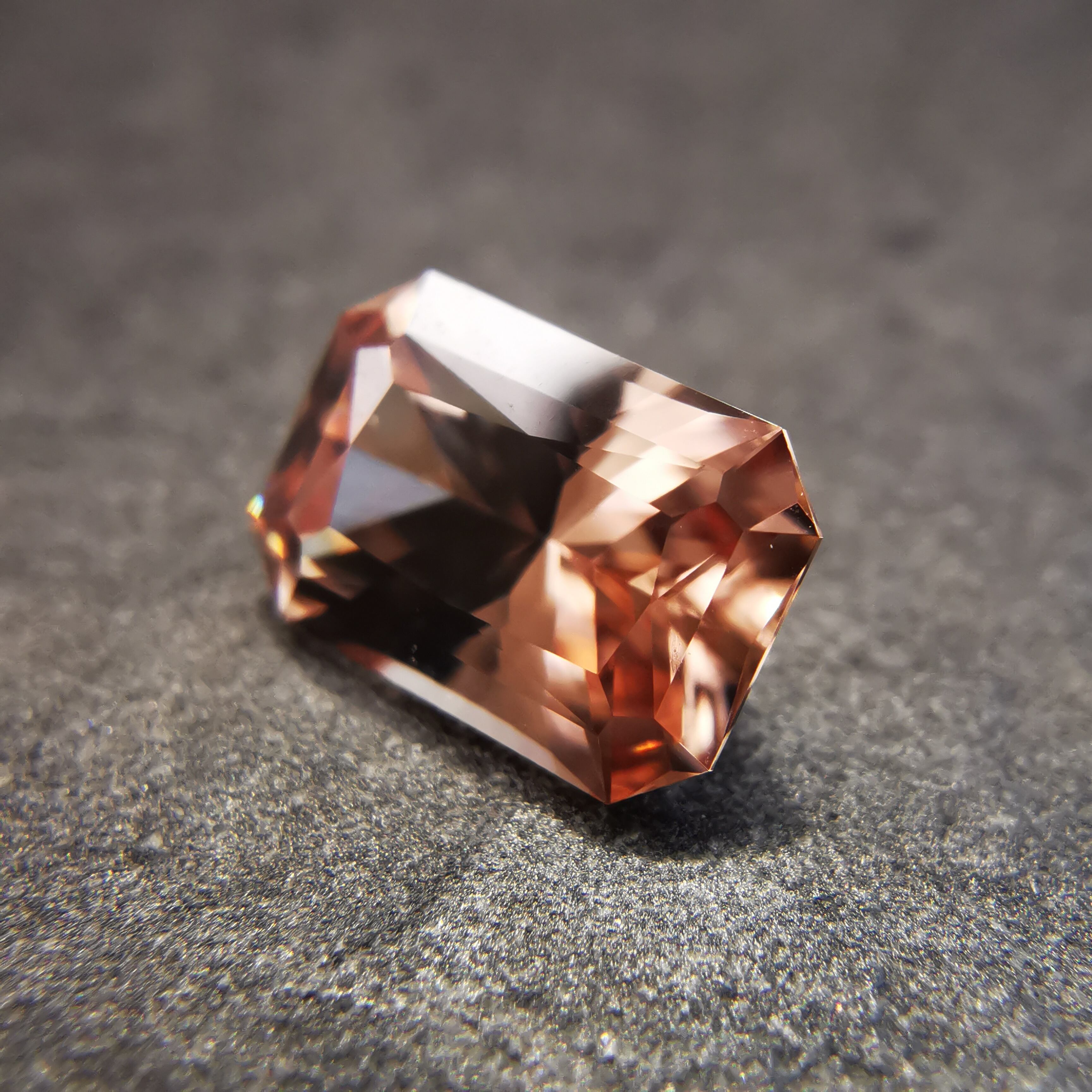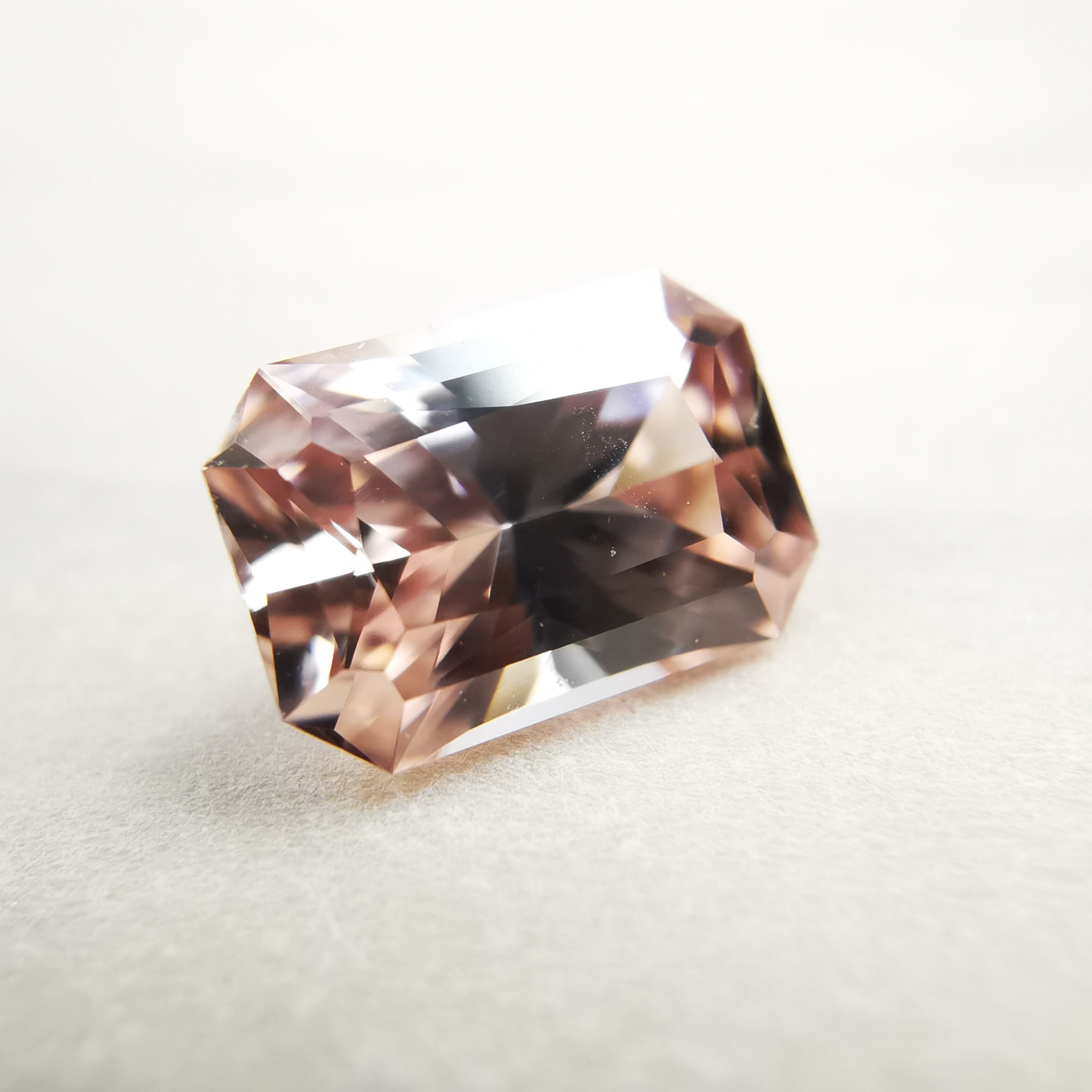 光源によって、シャンパンカラーからもう少し濃いアプリコットカラーになるジルコンです。