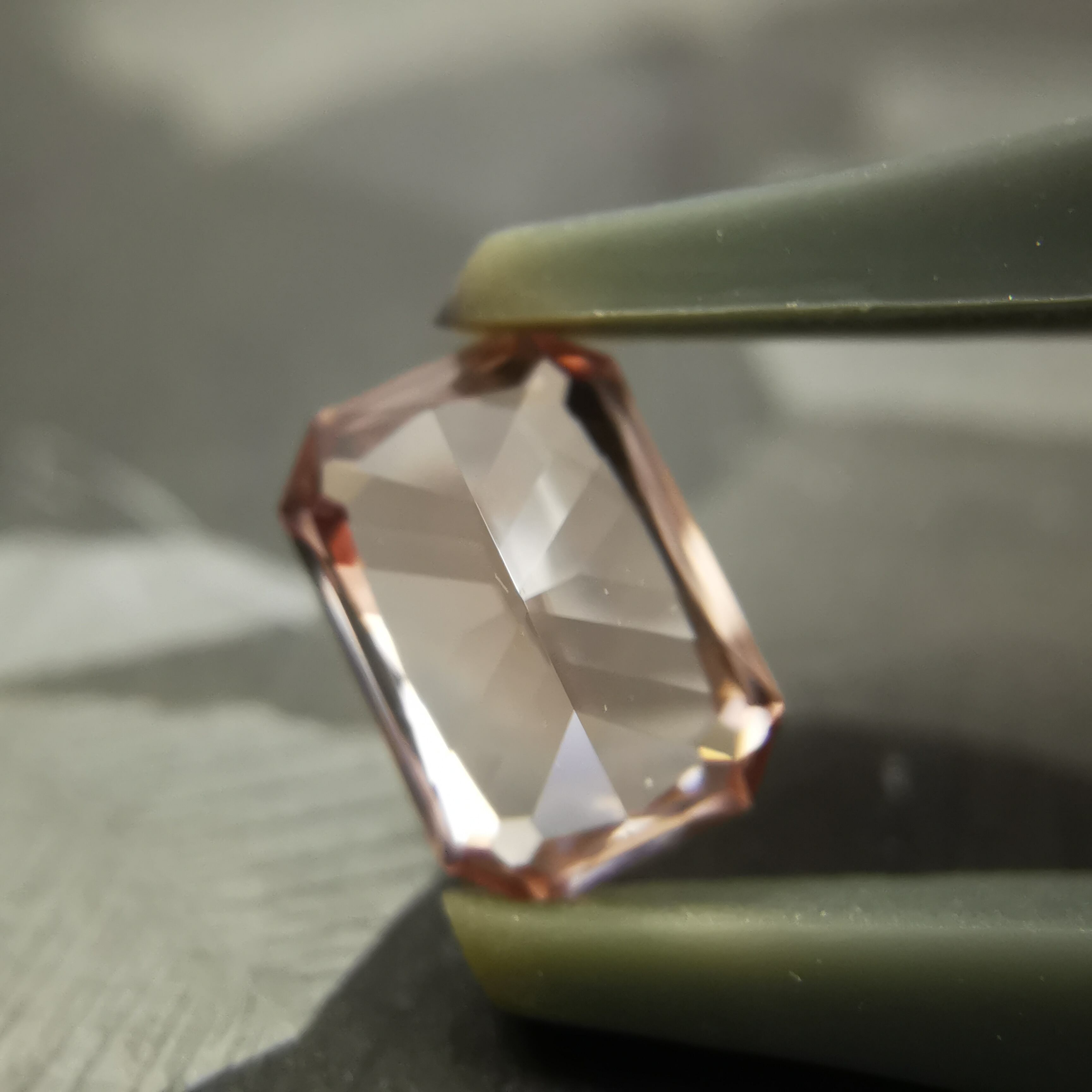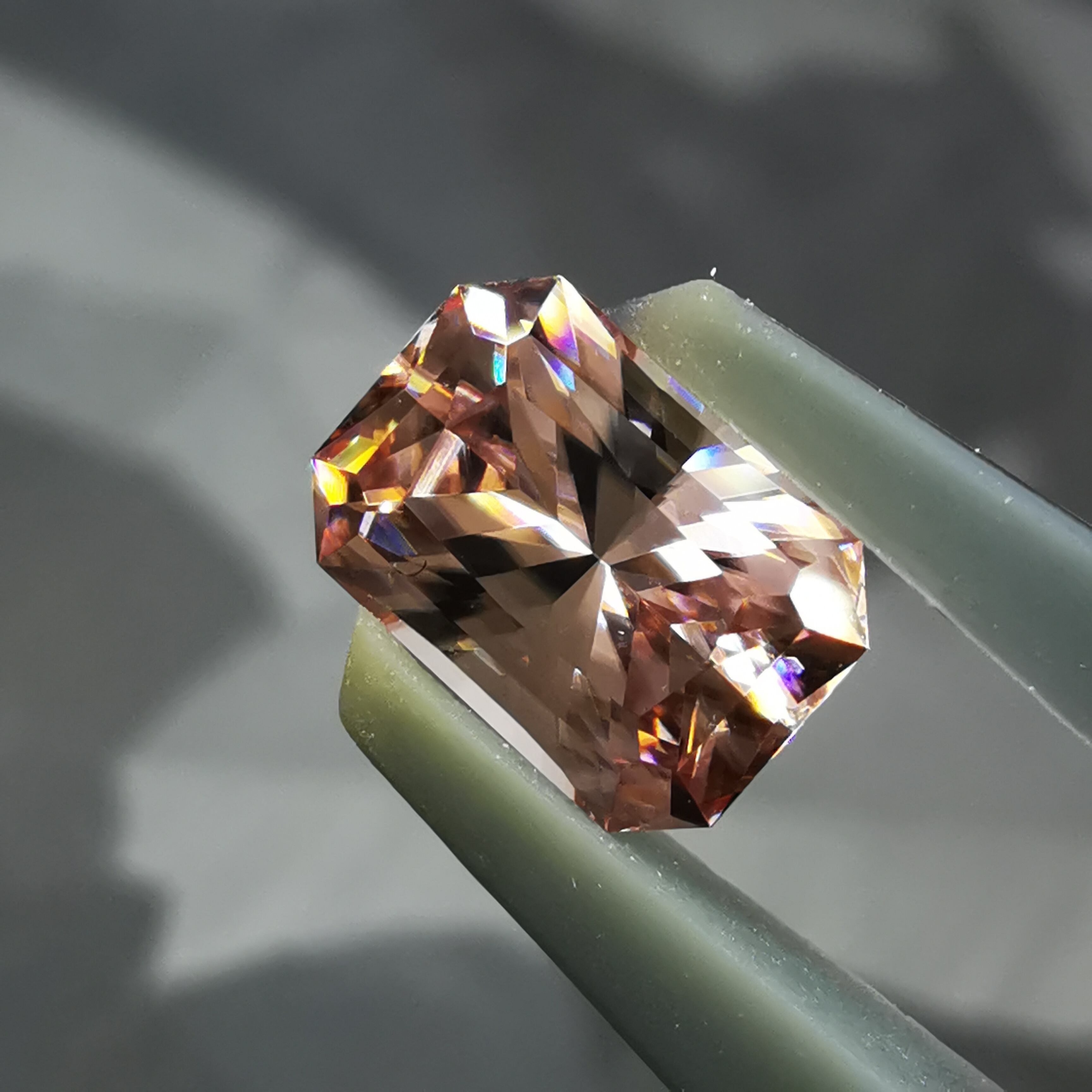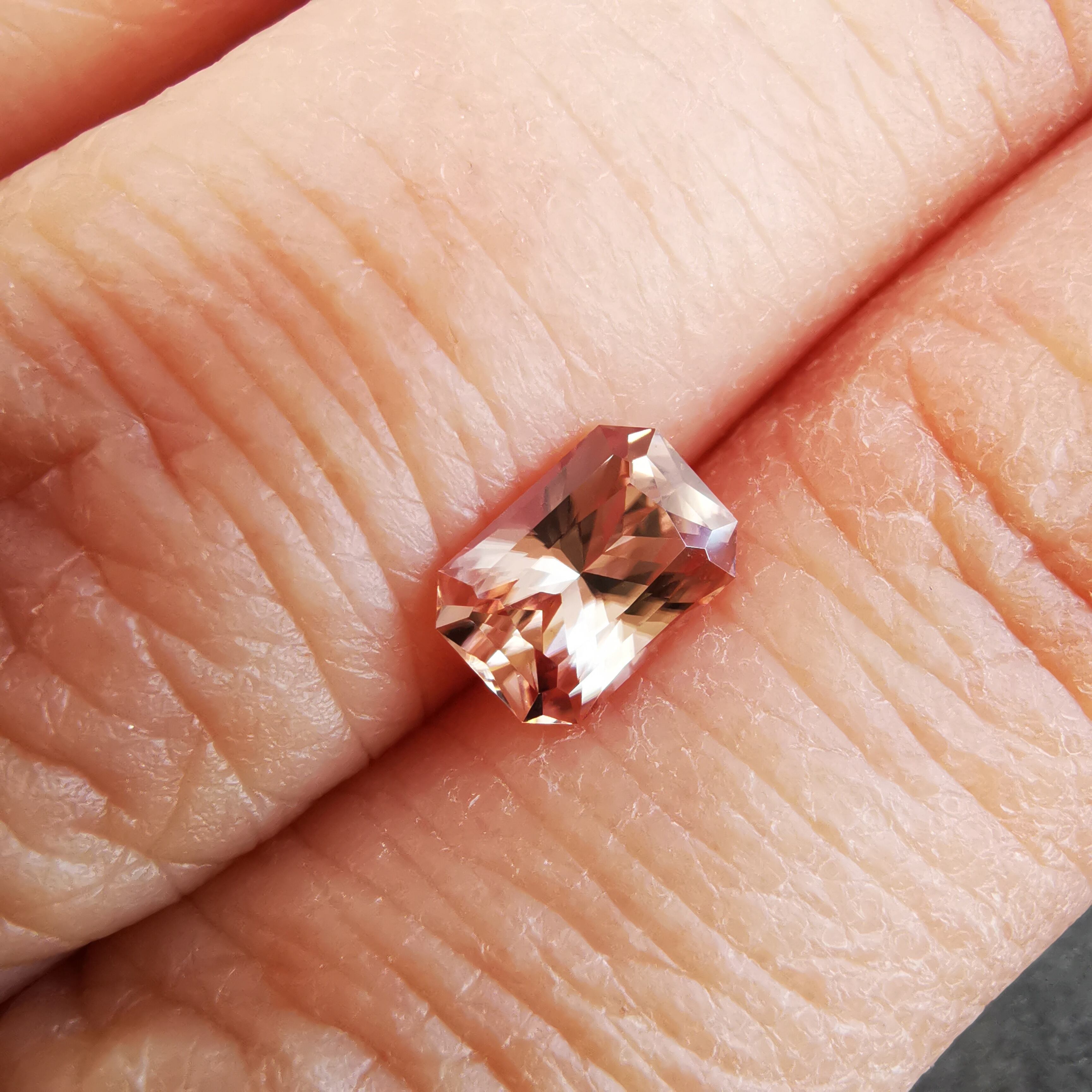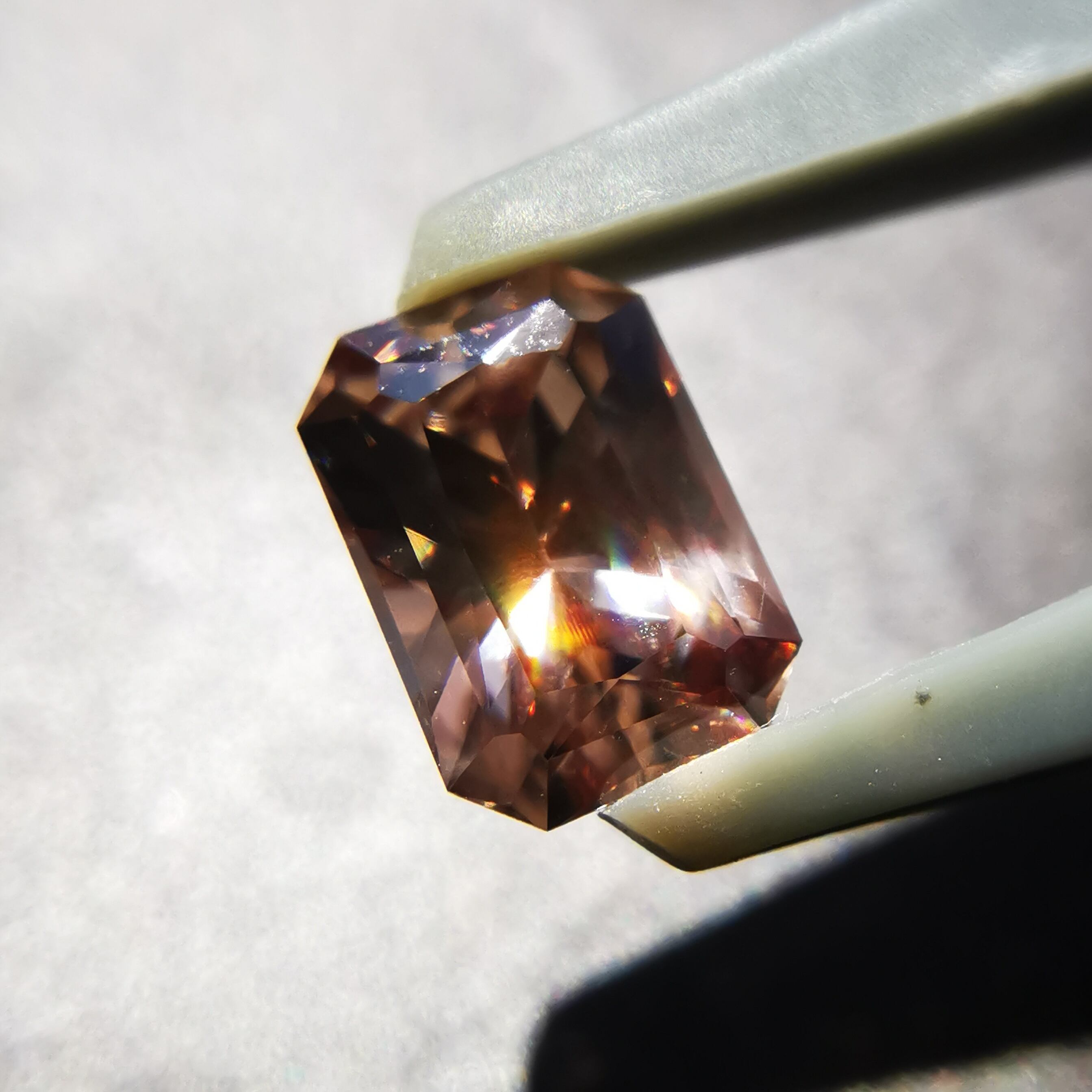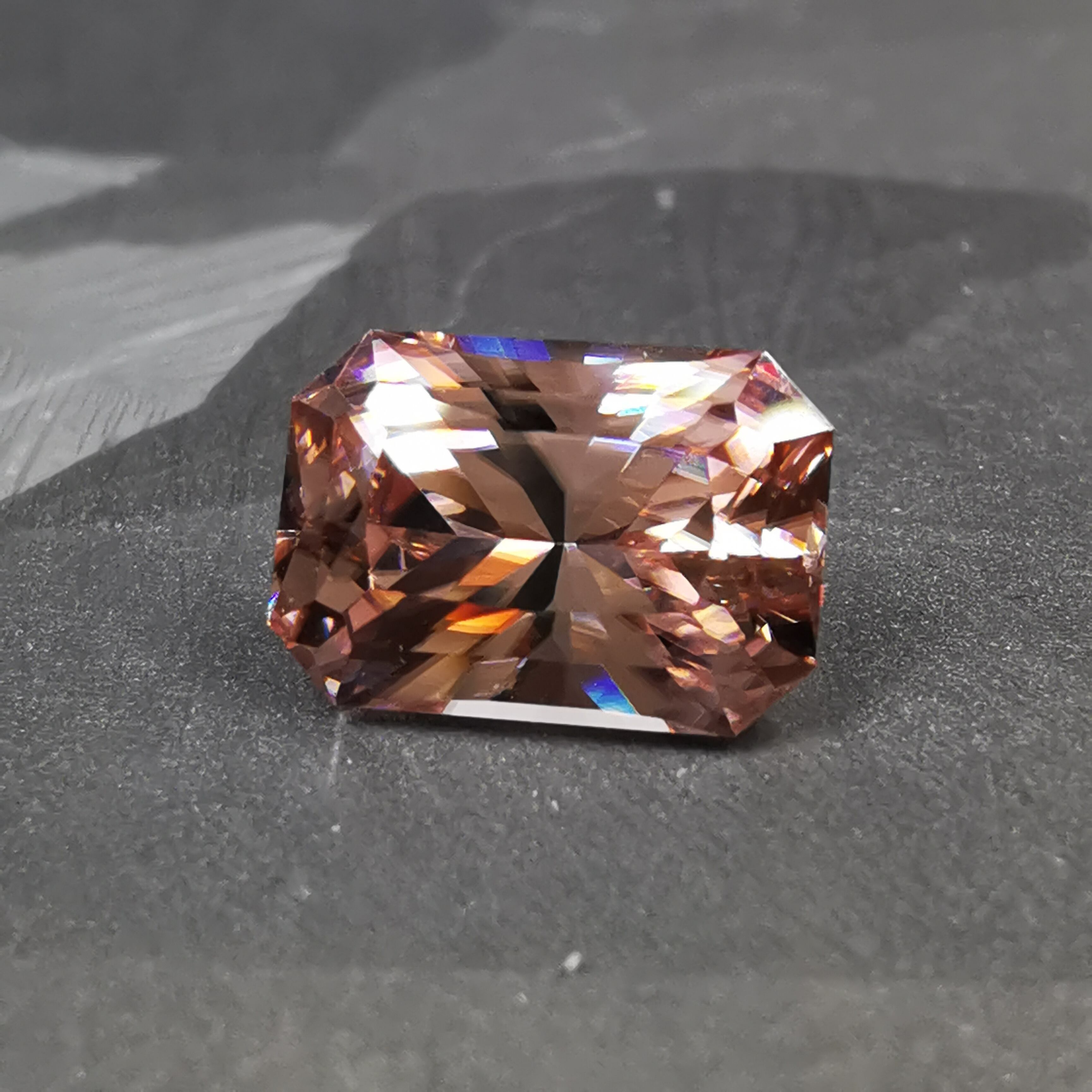 光源によって、シャンパンカラーからもう少し濃いアプリコットカラーになるジルコンです。