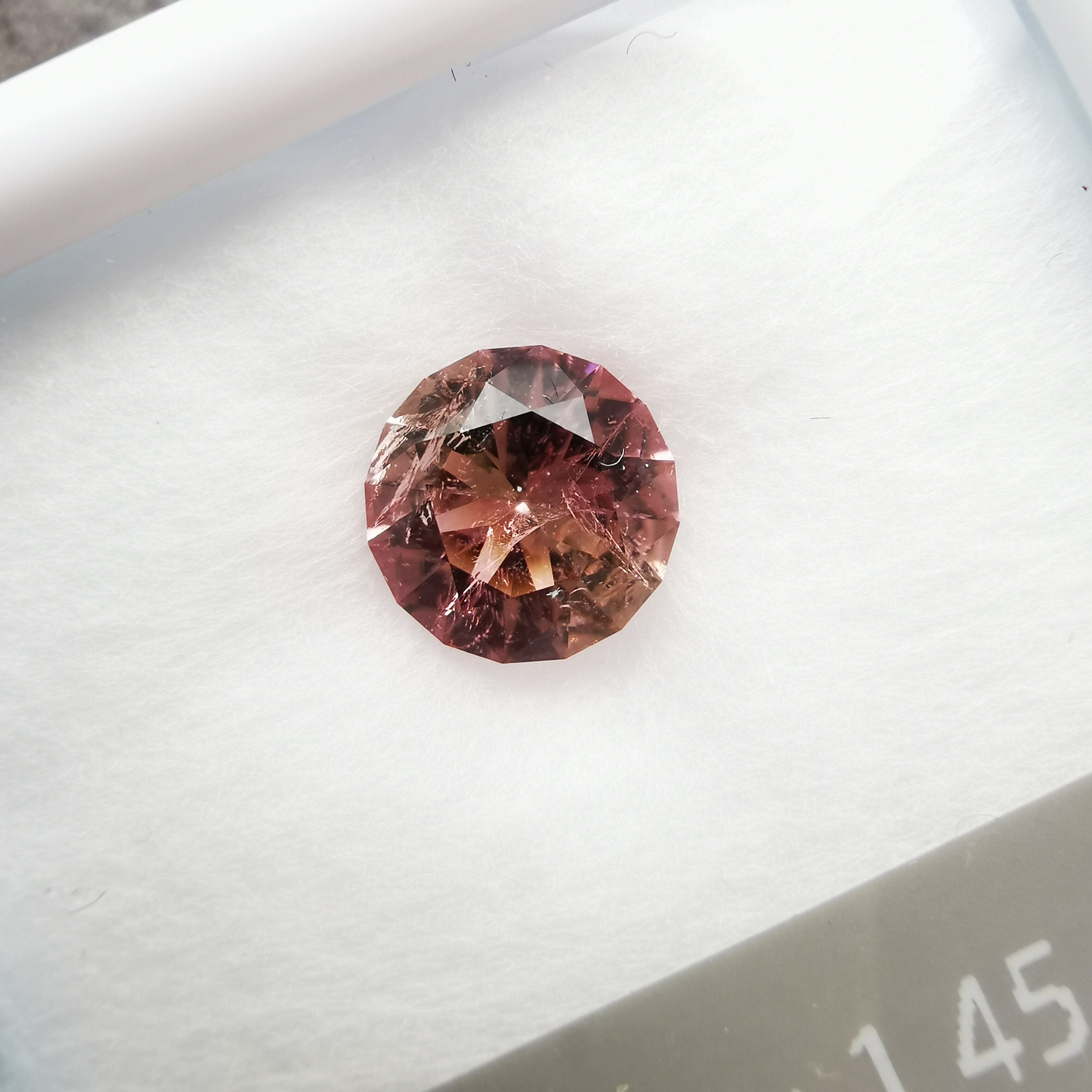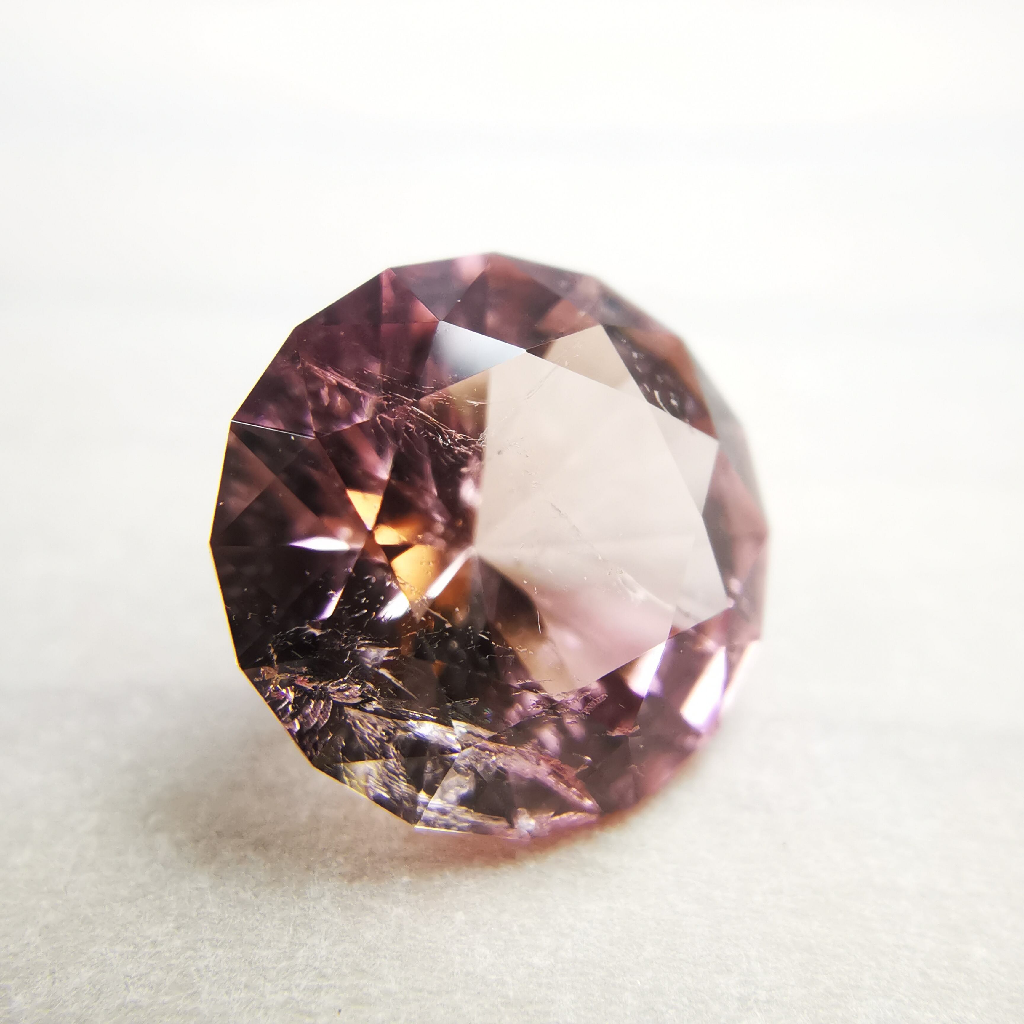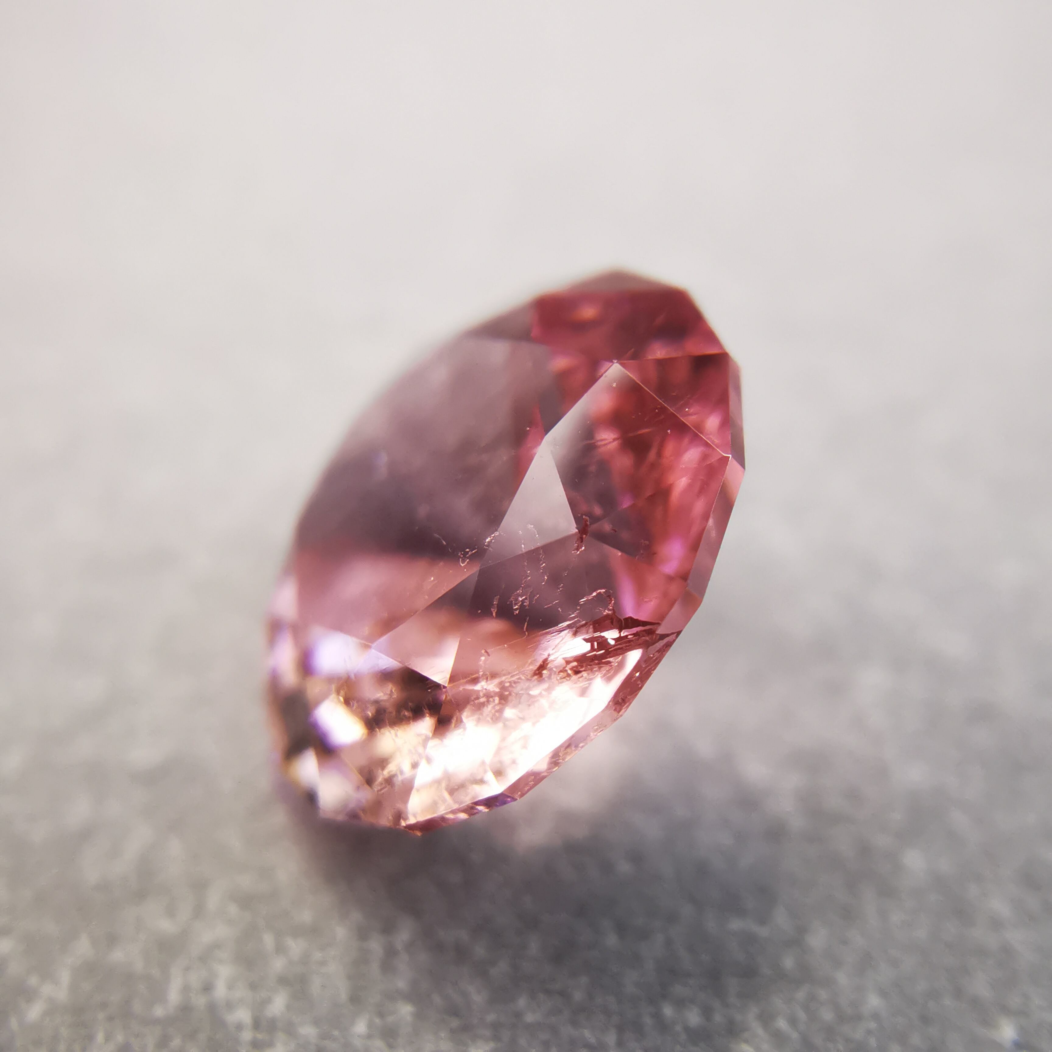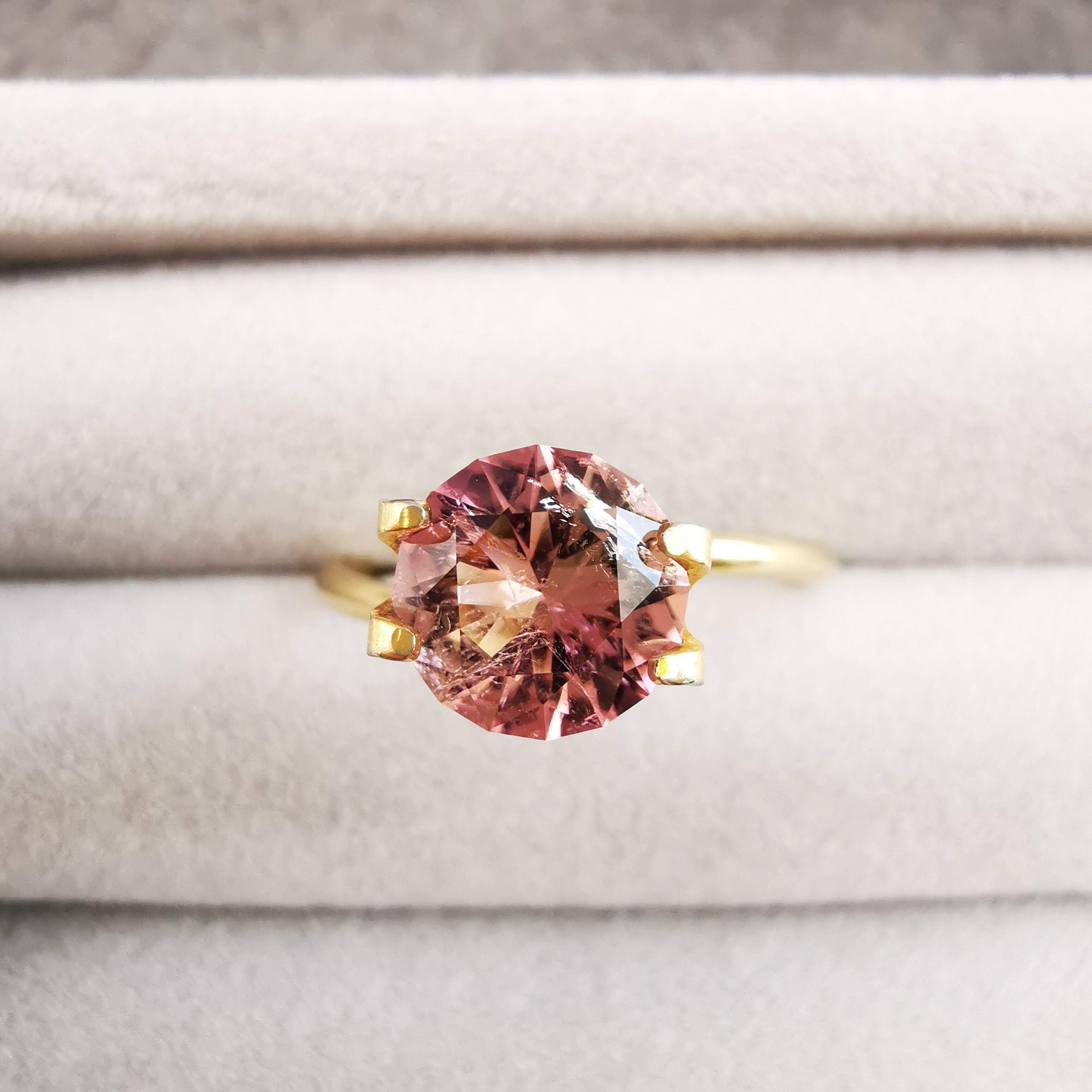 濃い目の桜色と黄みの入った珊瑚色、多色性により2つの魅力的な色を併せ持つトルマリンです。