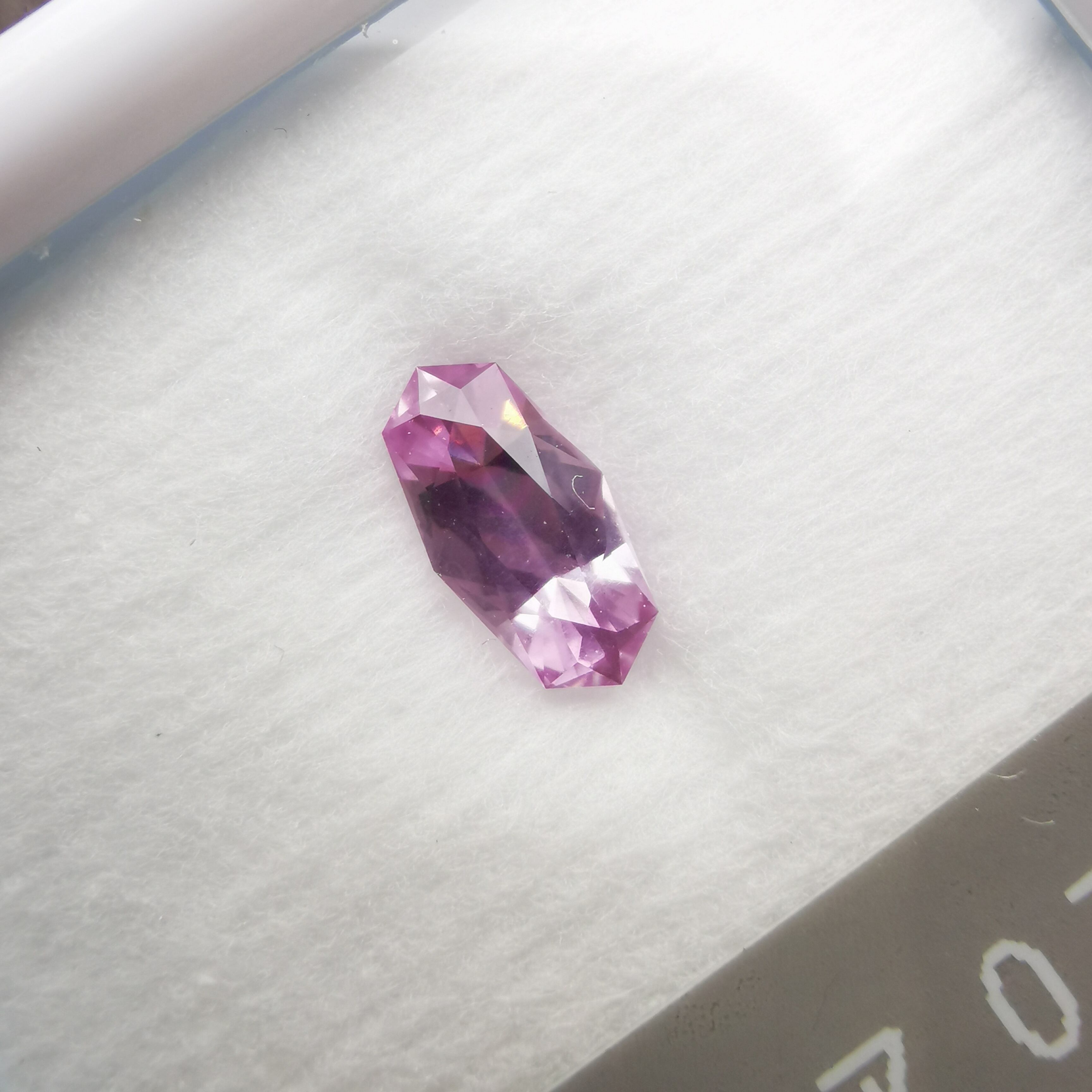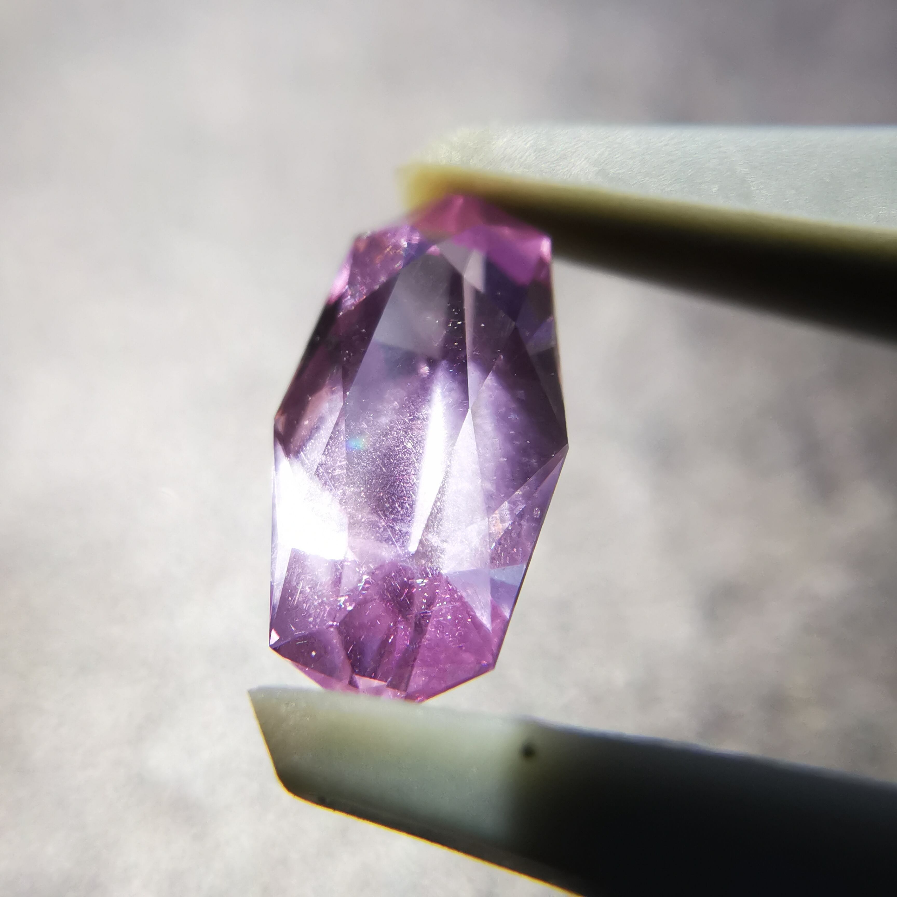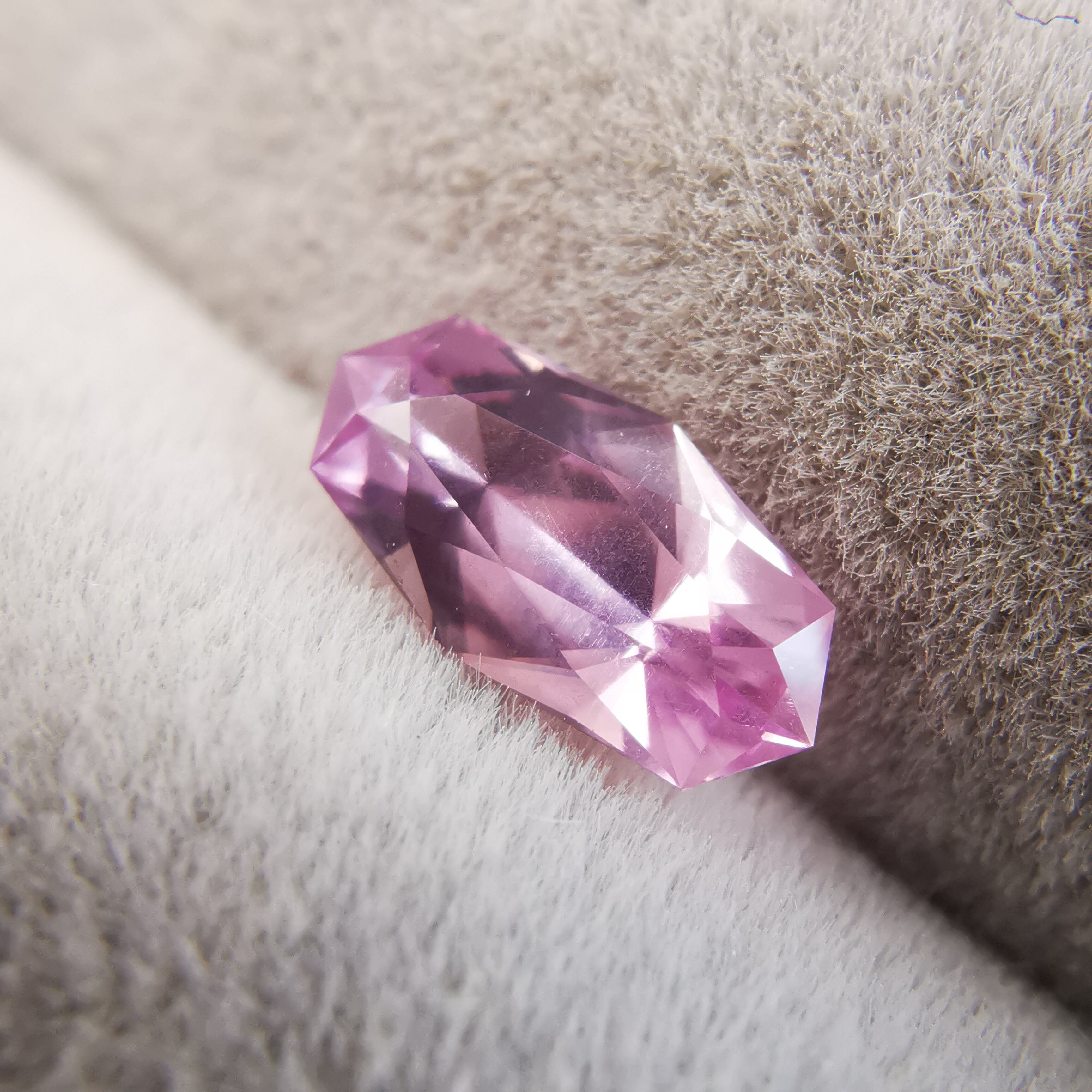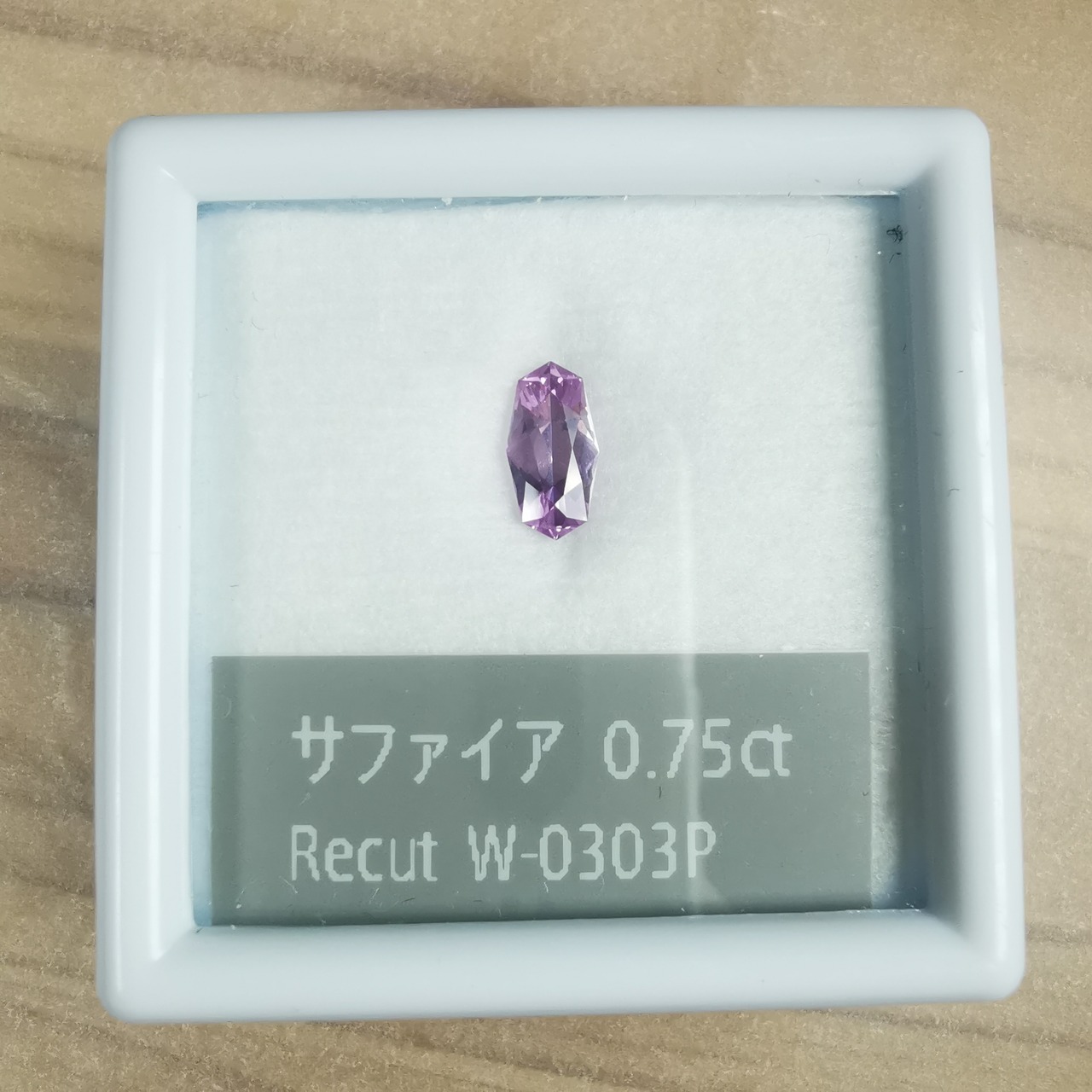 やや紫みの強い桜色、全体にシルクインクルージョンが入りふわりとした印象のサファイアです。