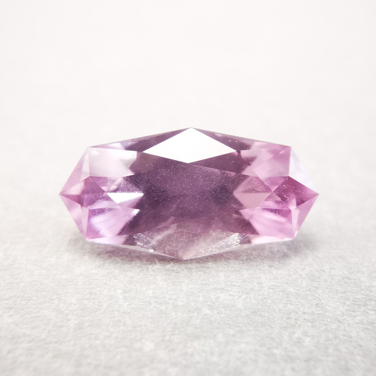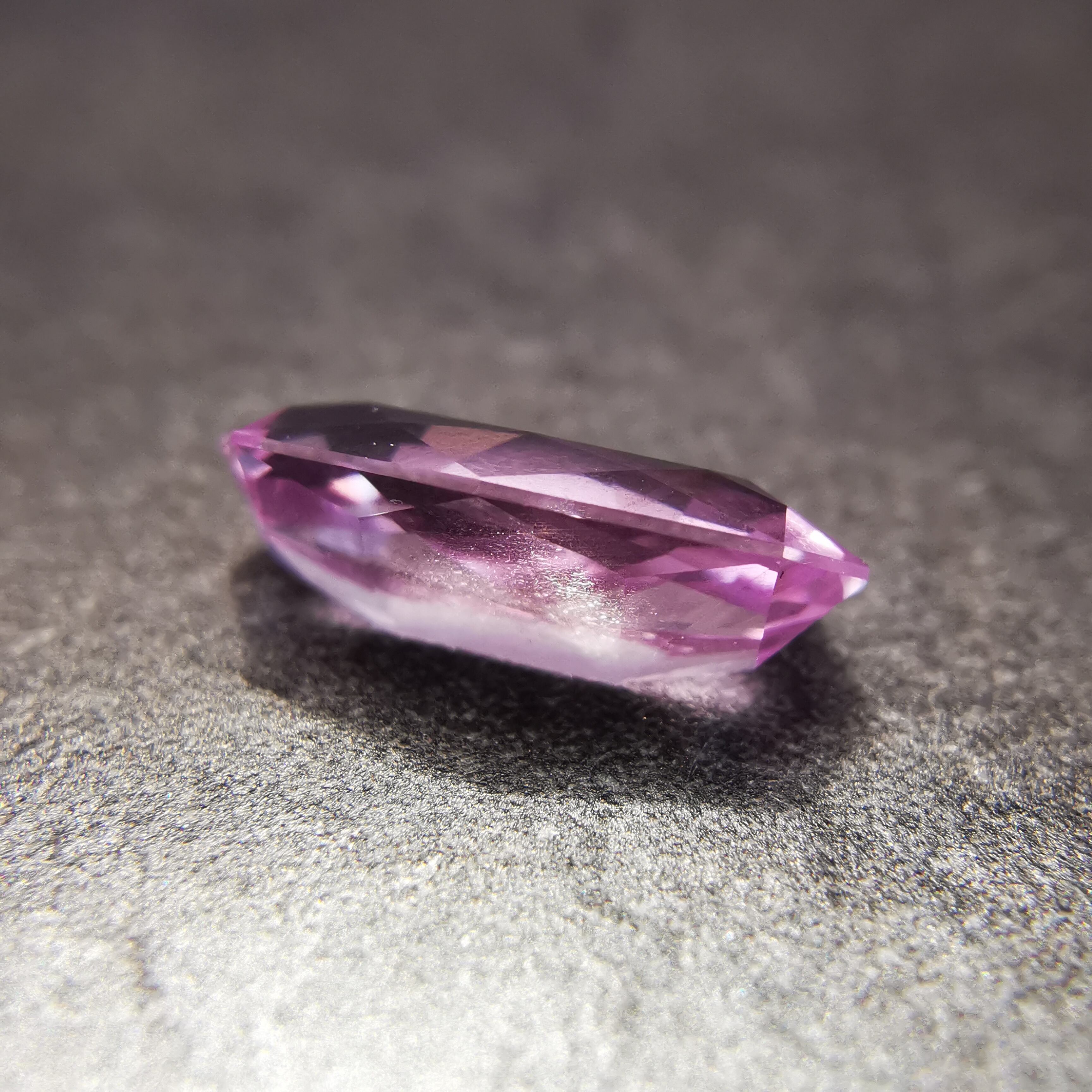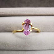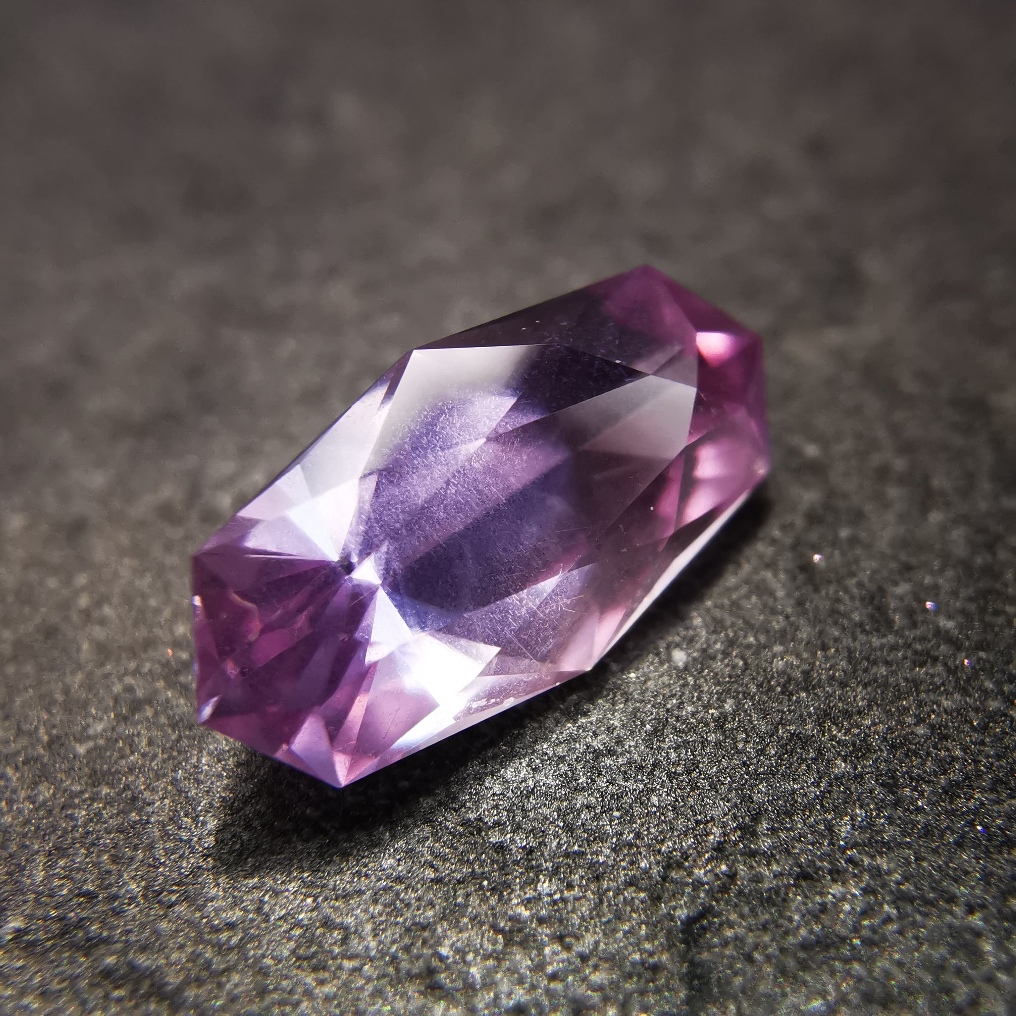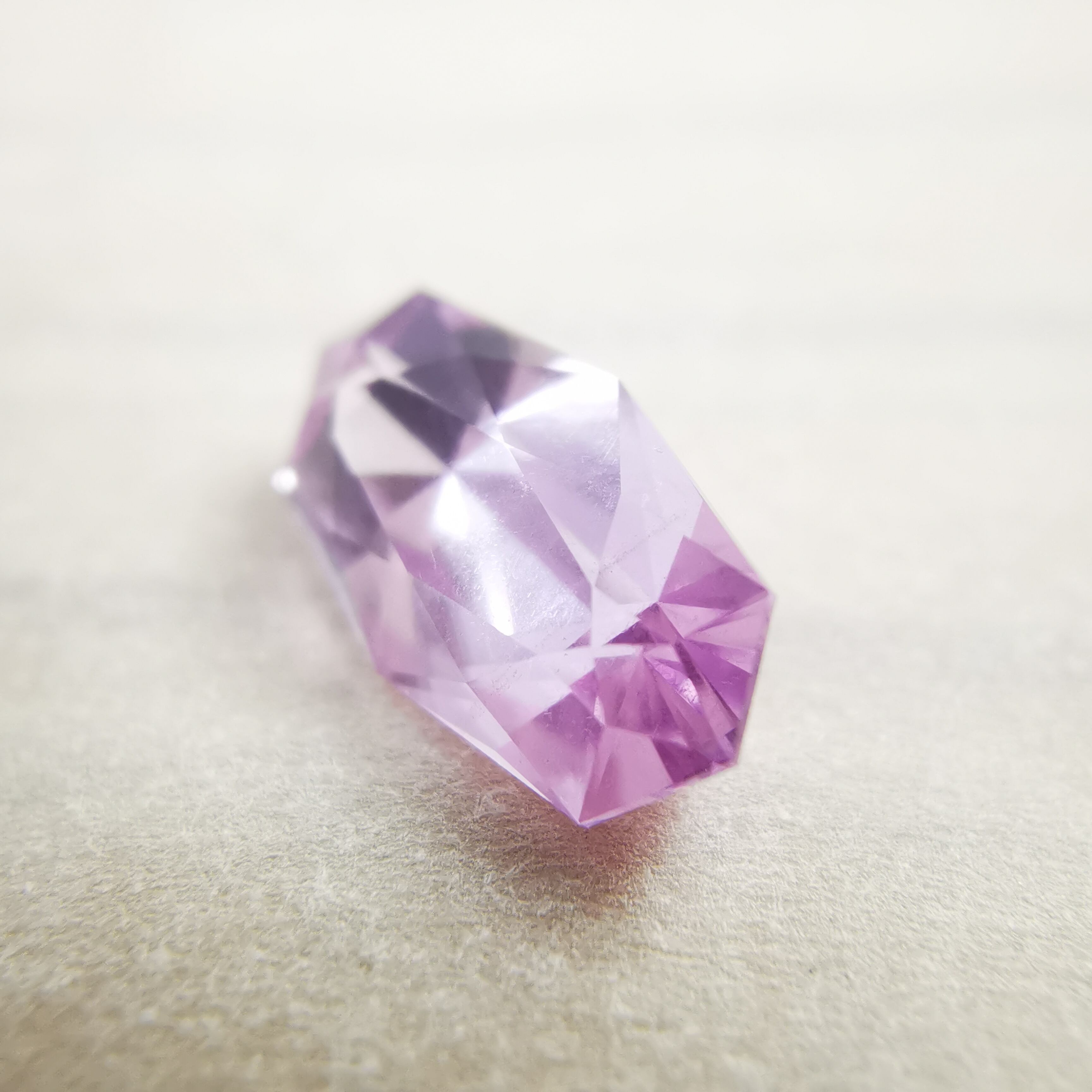 やや紫みの強い桜色、全体にシルクインクルージョンが入りふわりとした印象のサファイアです。