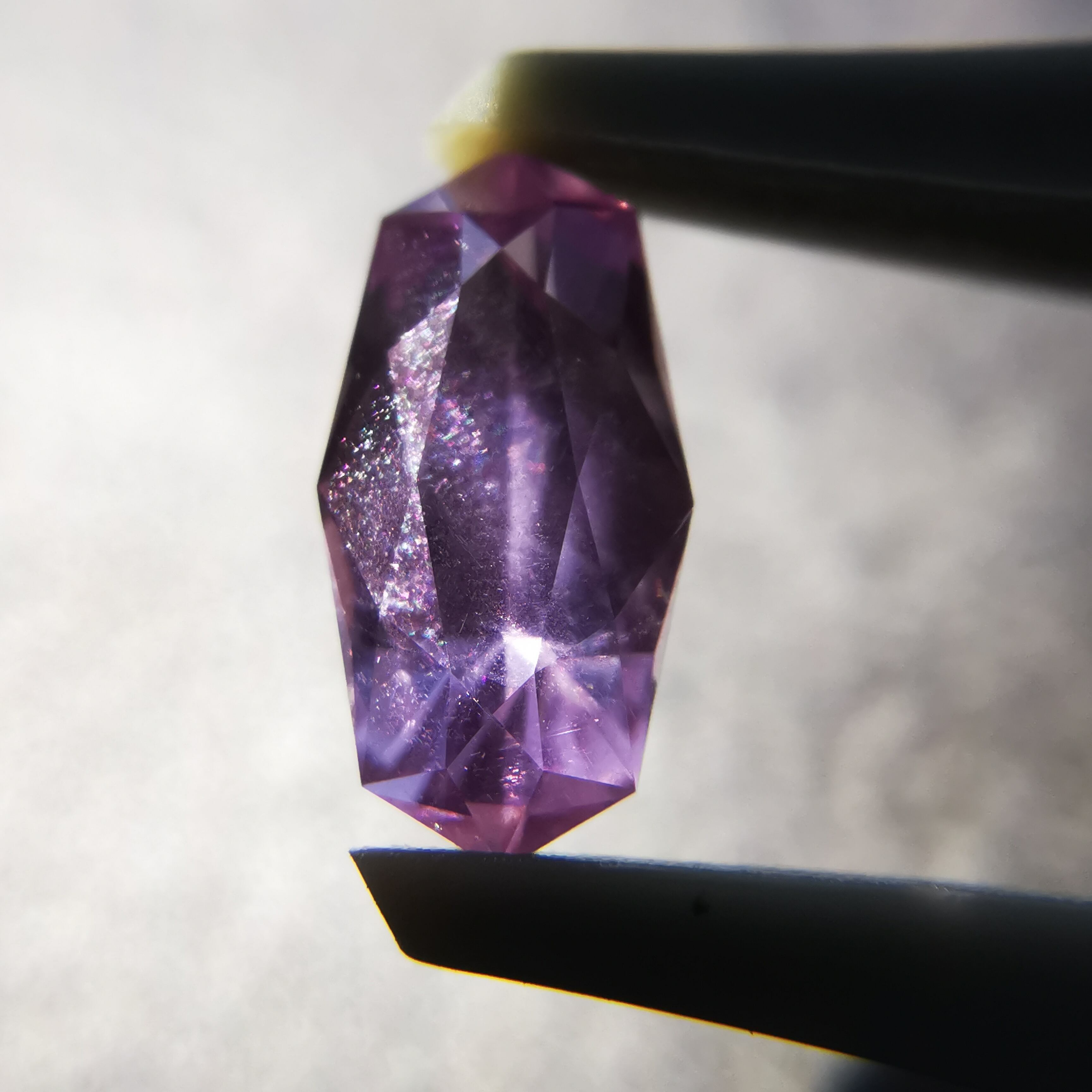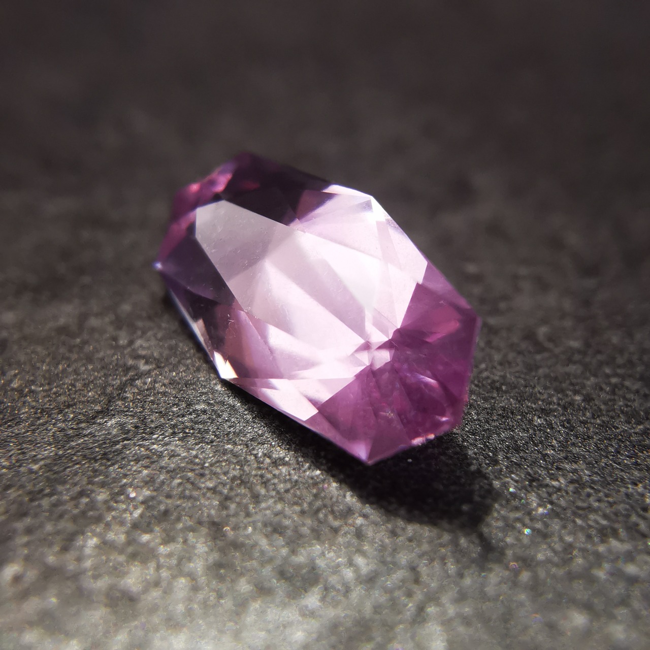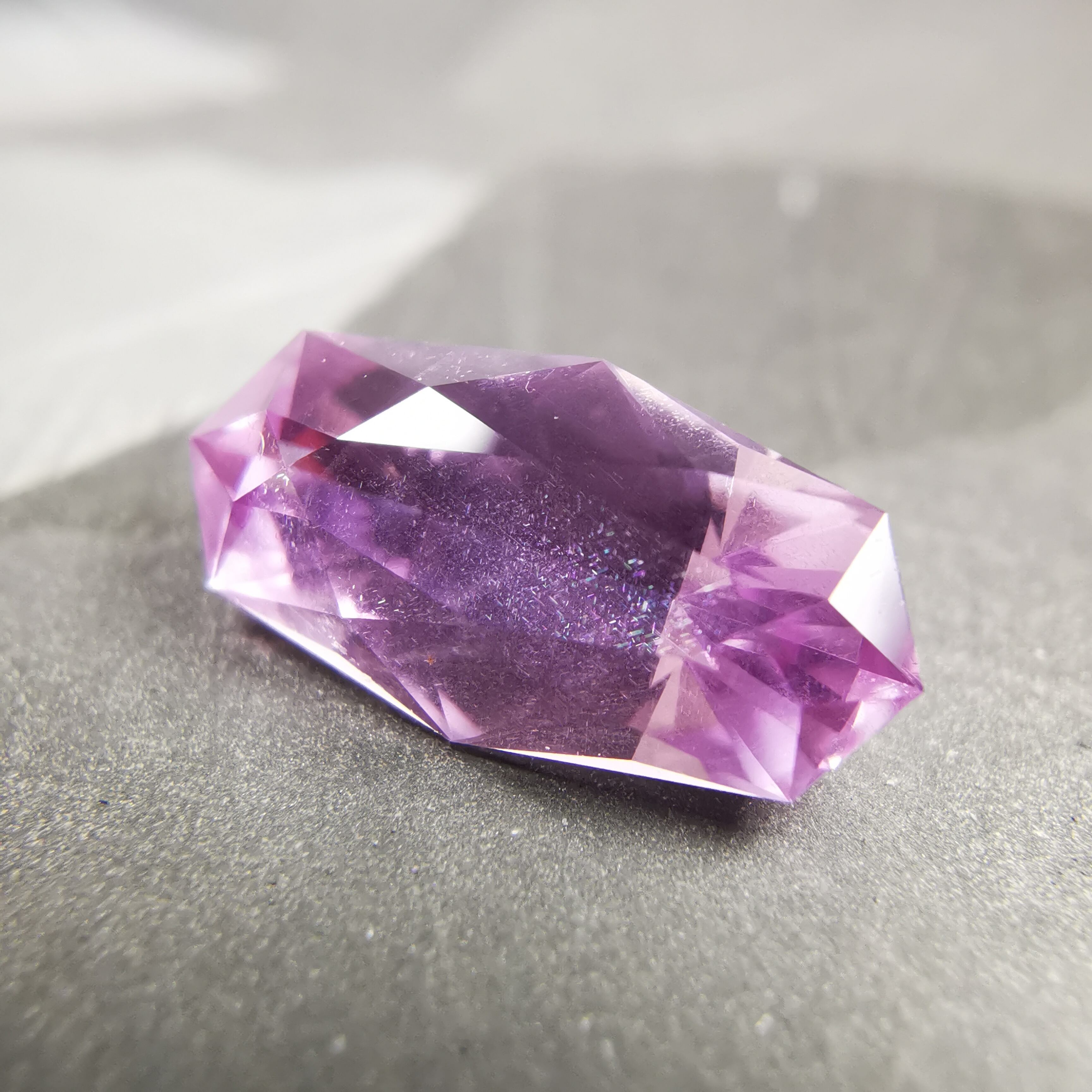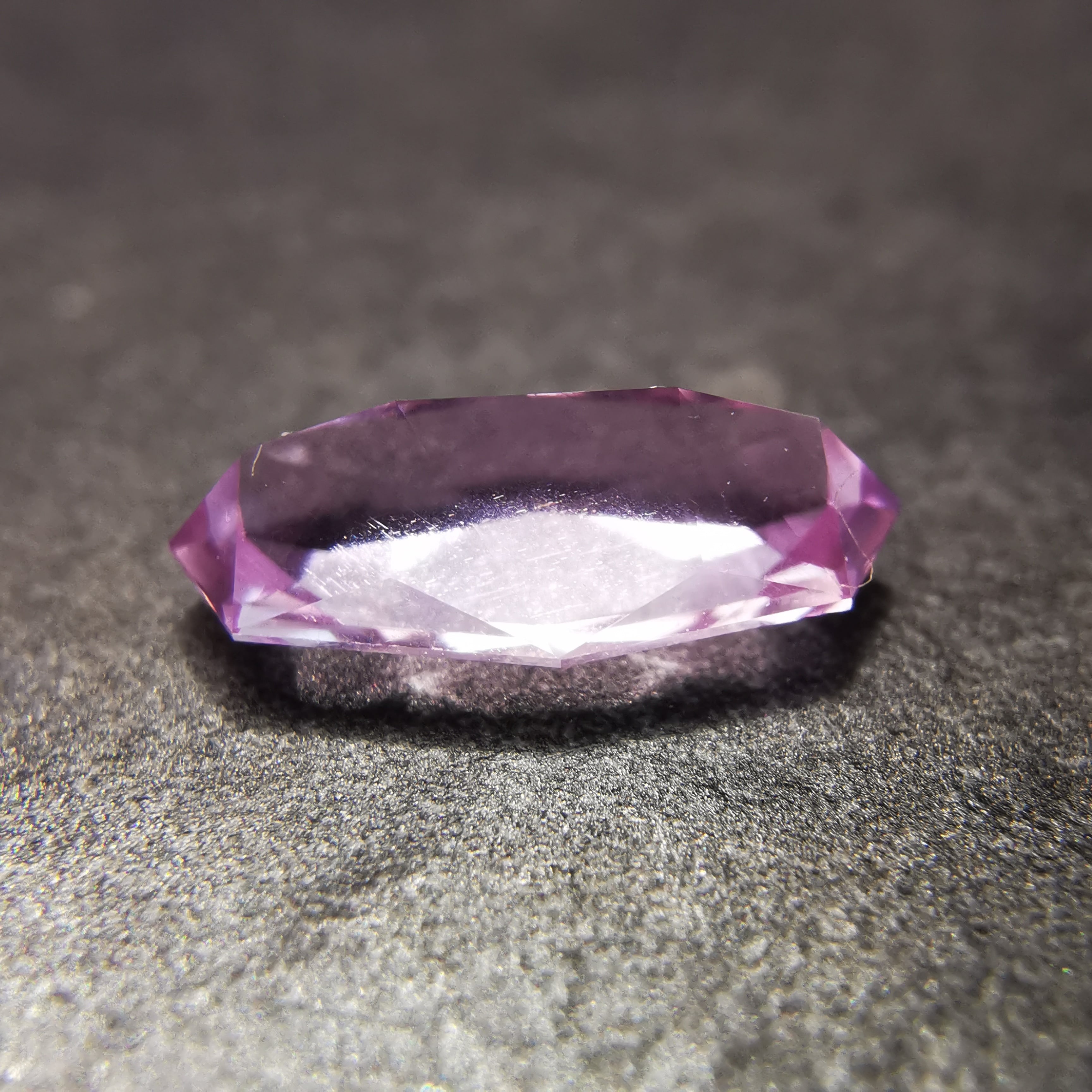 やや紫みの強い桜色、全体にシルクインクルージョンが入りふわりとした印象のサファイアです。