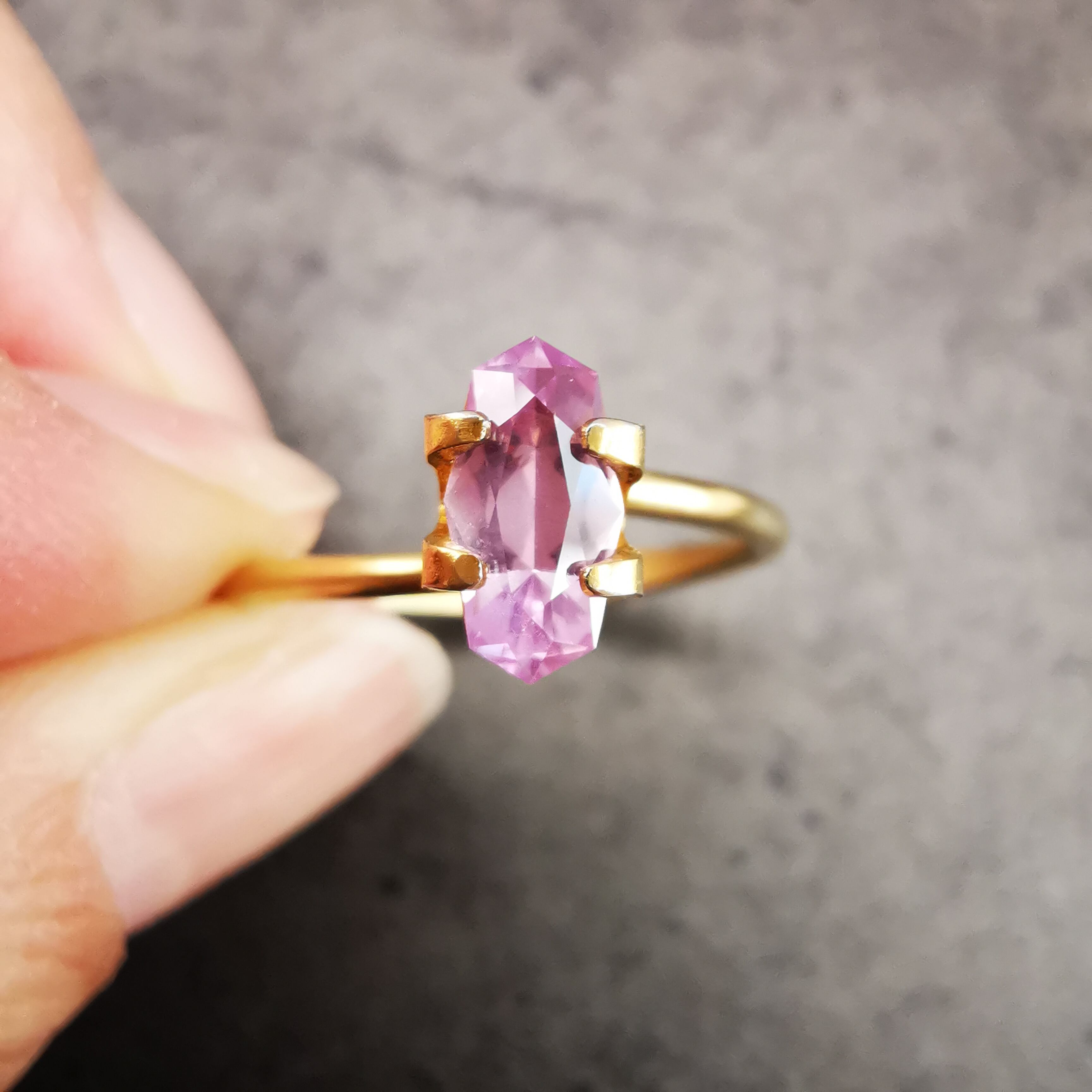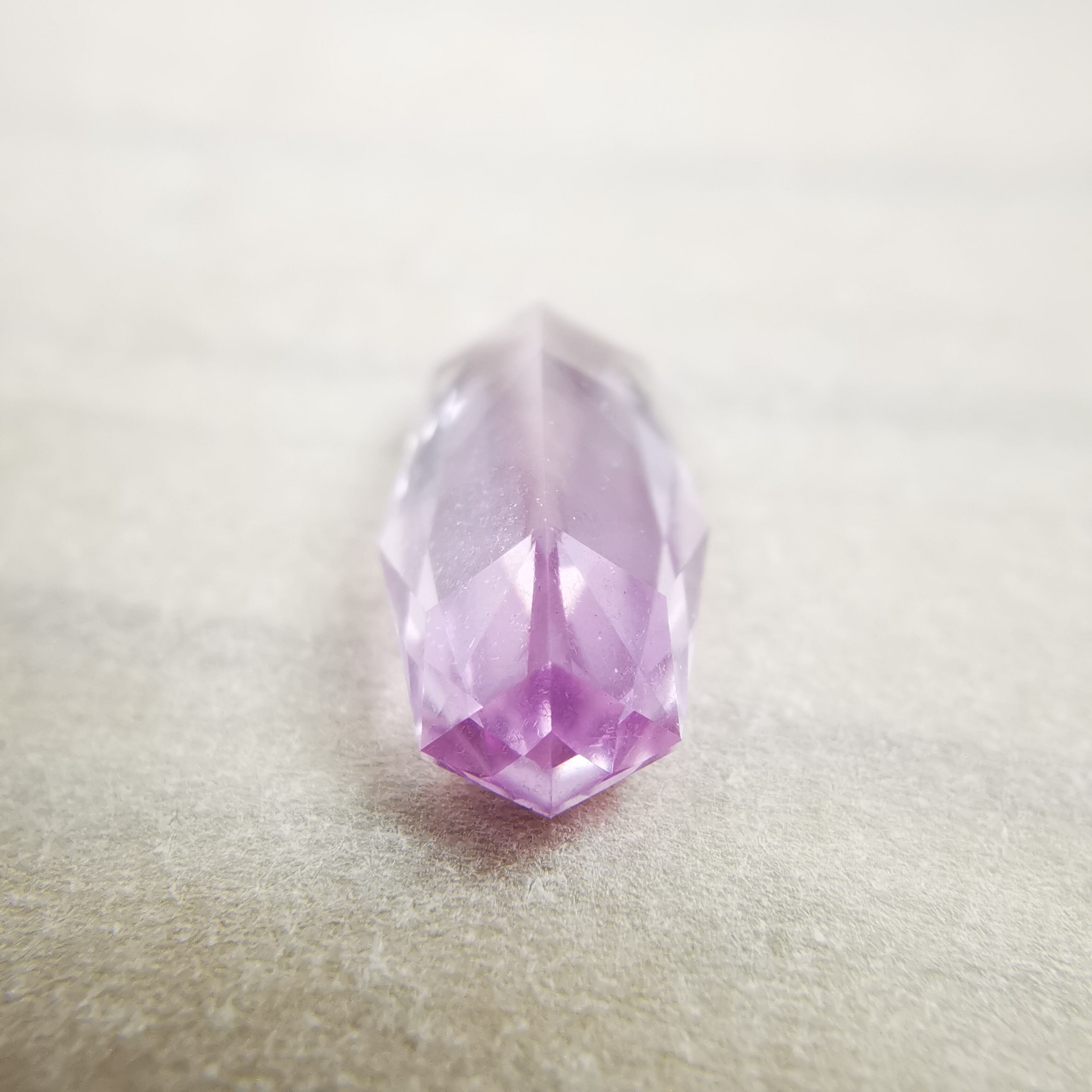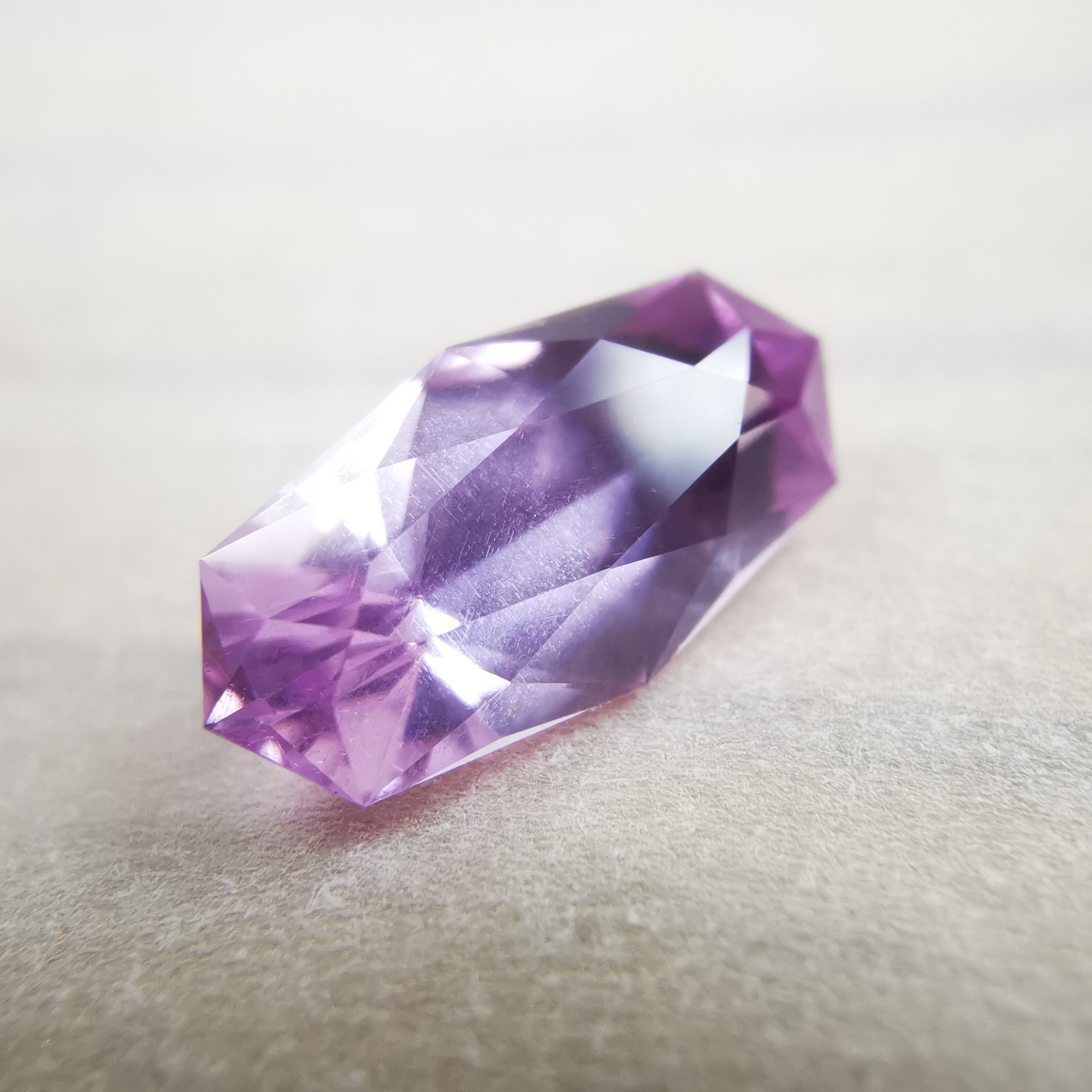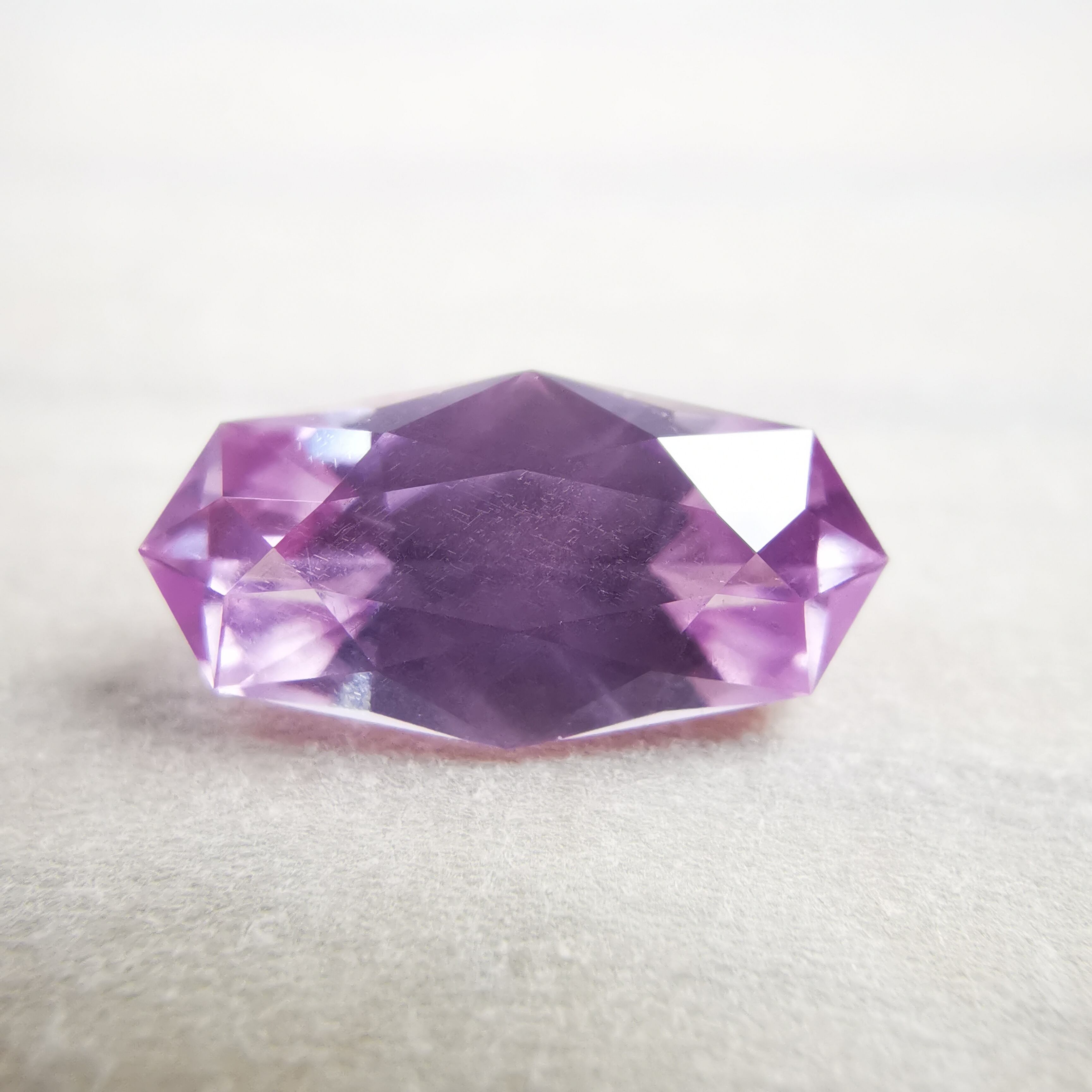 やや紫みの強い桜色、全体にシルクインクルージョンが入りふわりとした印象のサファイアです。