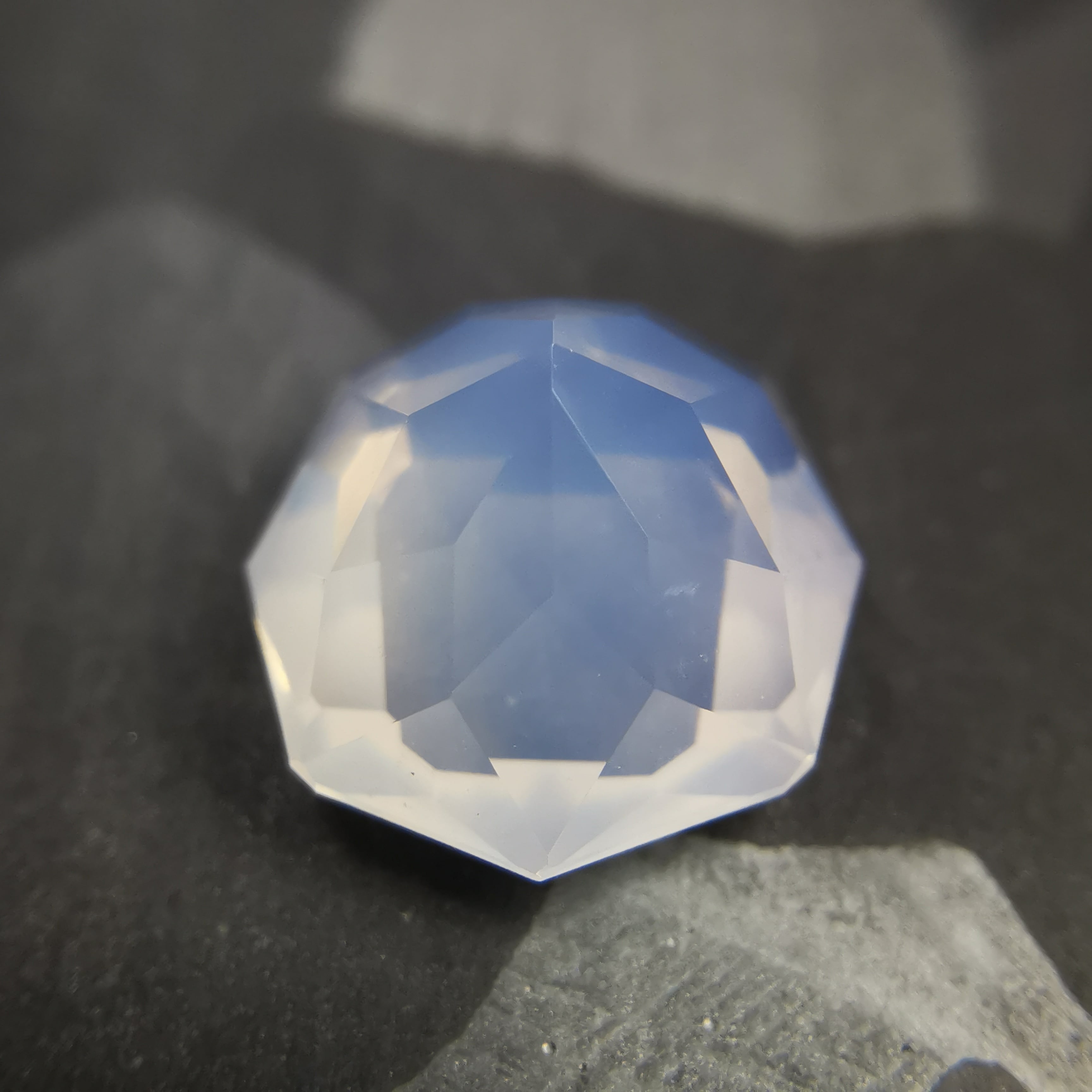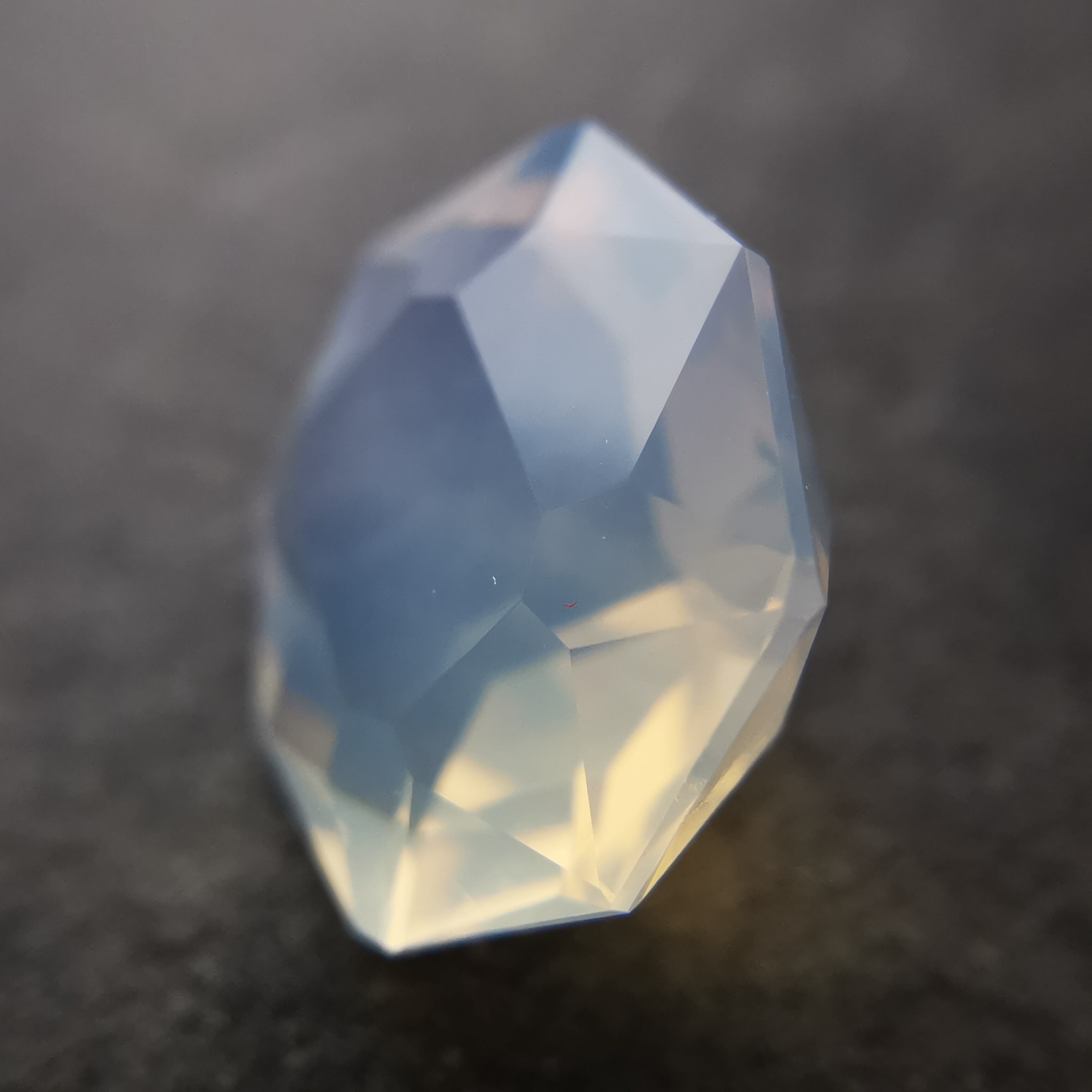 内側に光を含んだようにきらめく様子は(色味は異なりますが)ラベンダークォーツようで、ふわりとした捉えどころのなさは、効果のないムーンストーンのようでもあります。