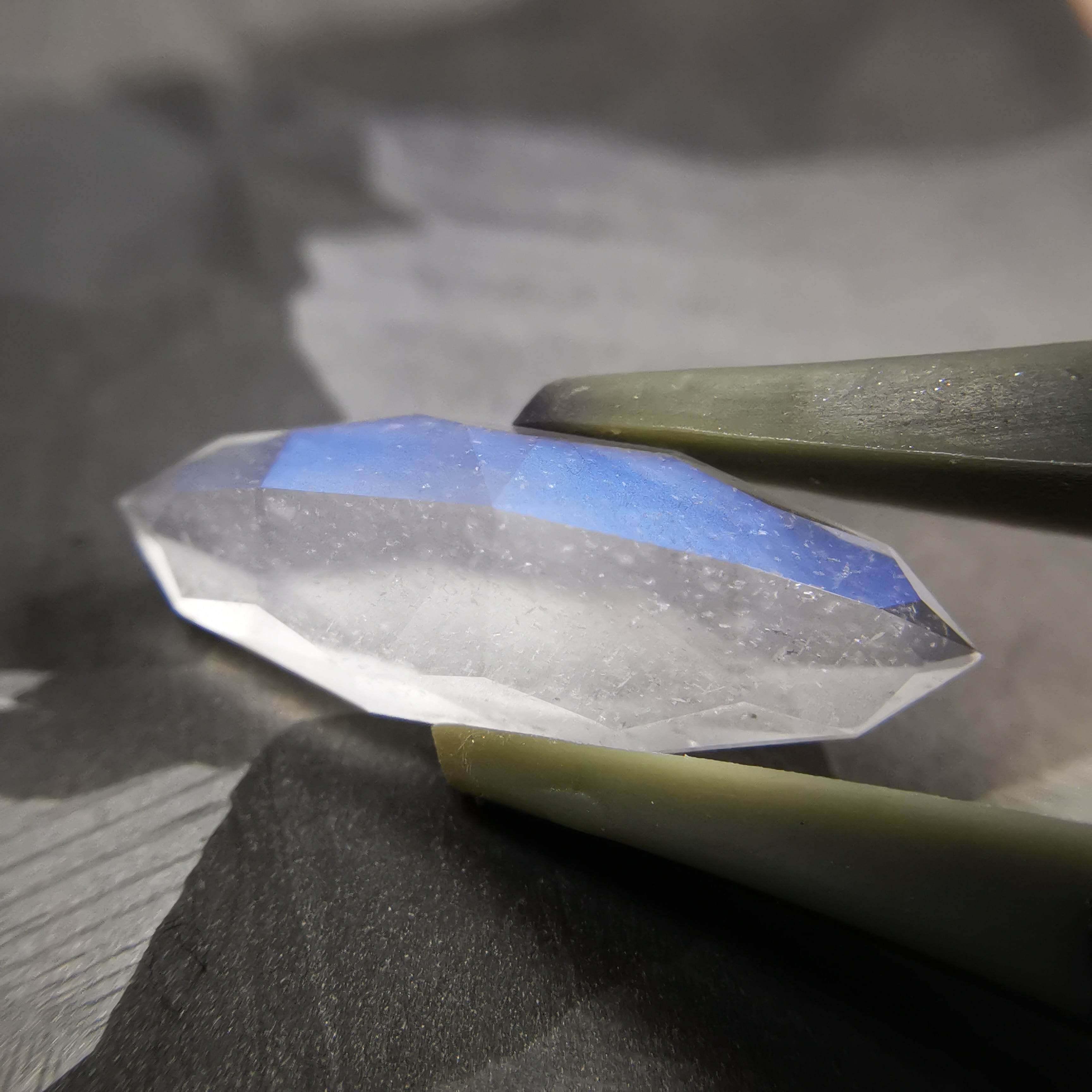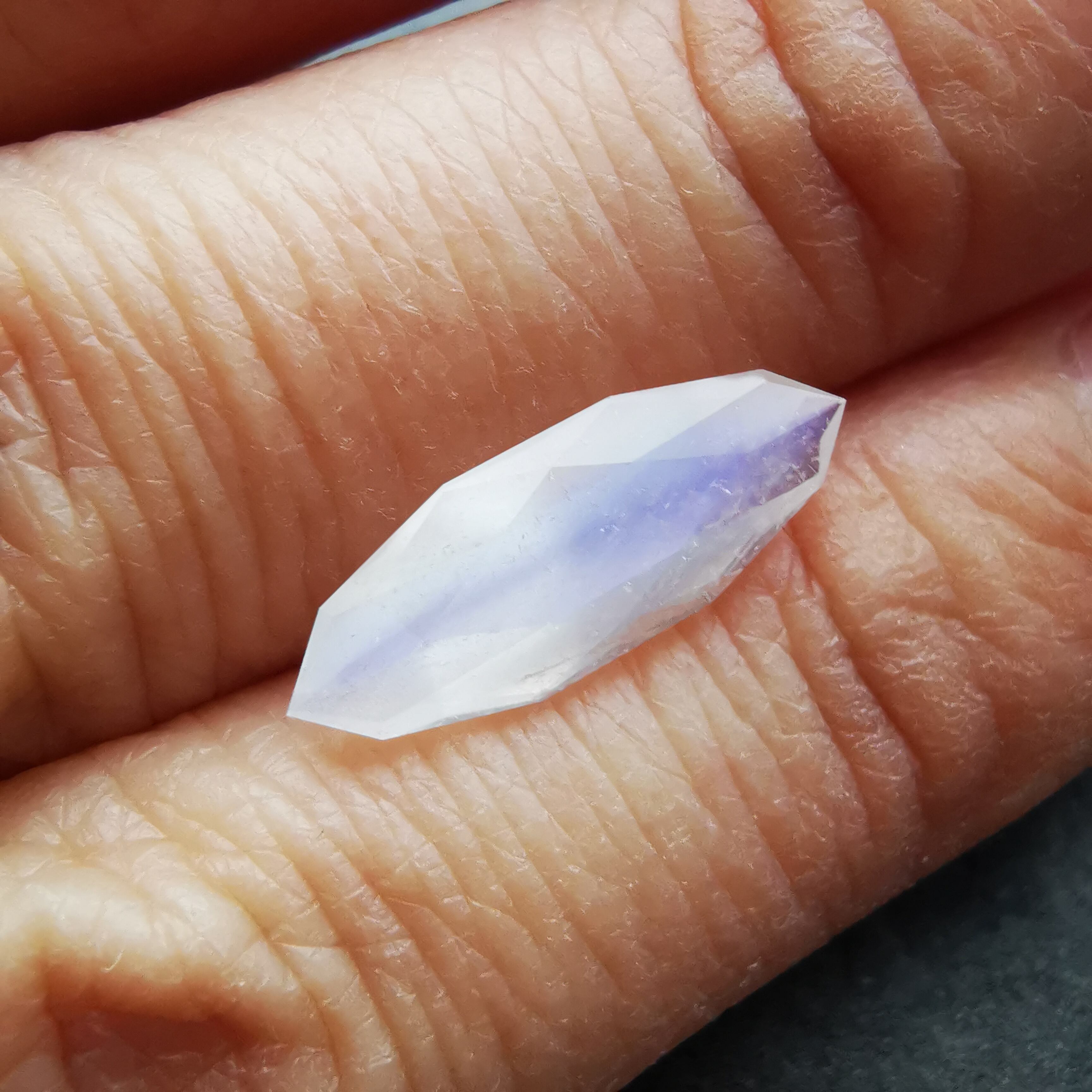 半透明の石のフェイスにしっかりとブルーシラーが現れるムーンストーンです。