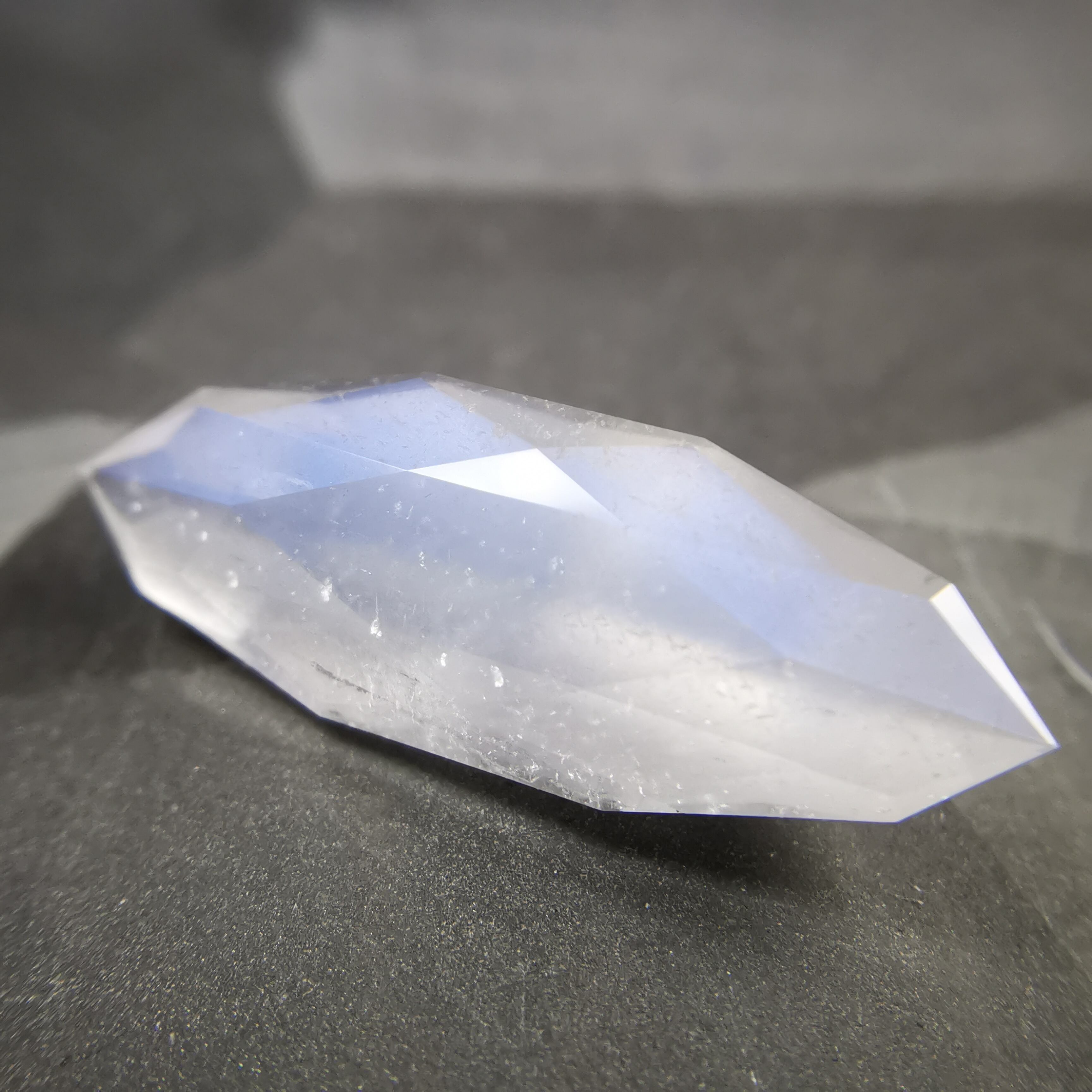 舞い散る雪のような白いインクルージョンが無数に入り、光に当たるとチラチラときらめきます。