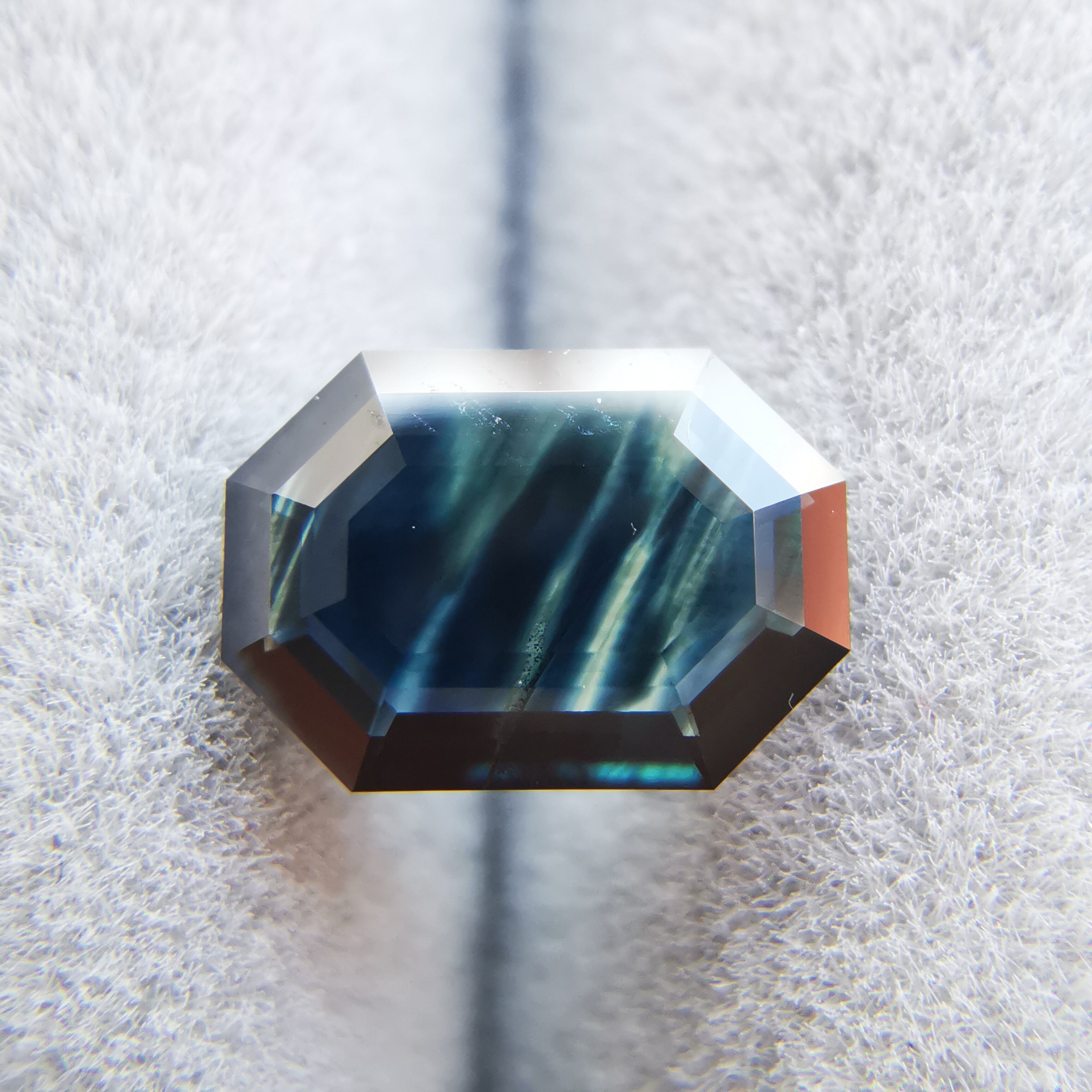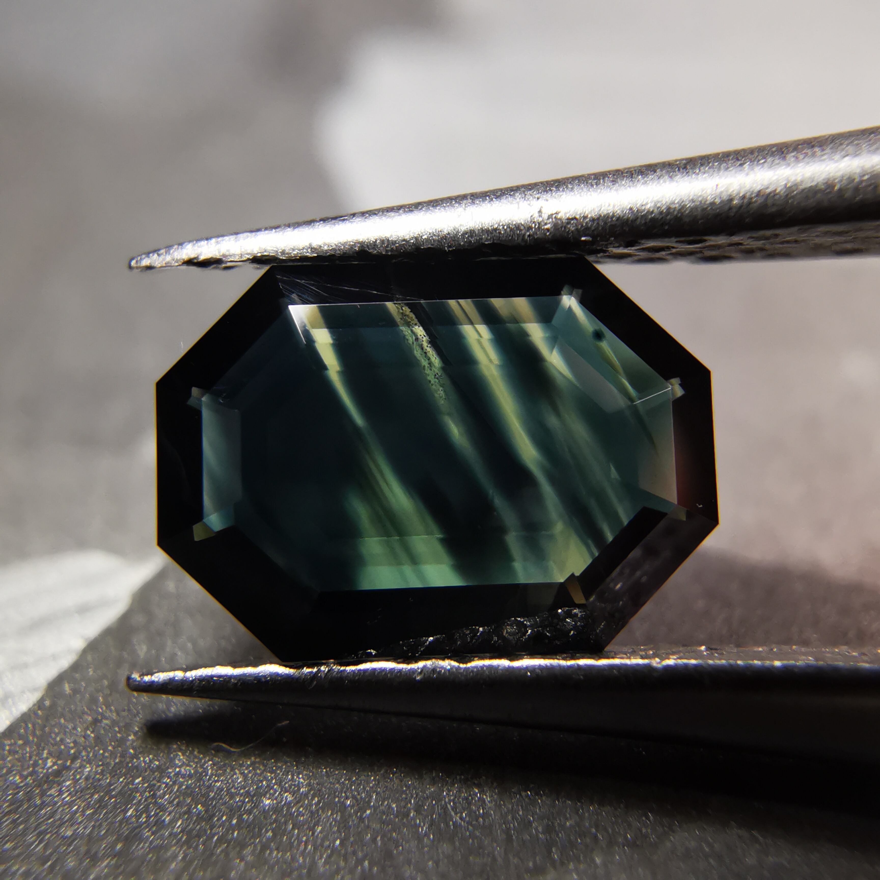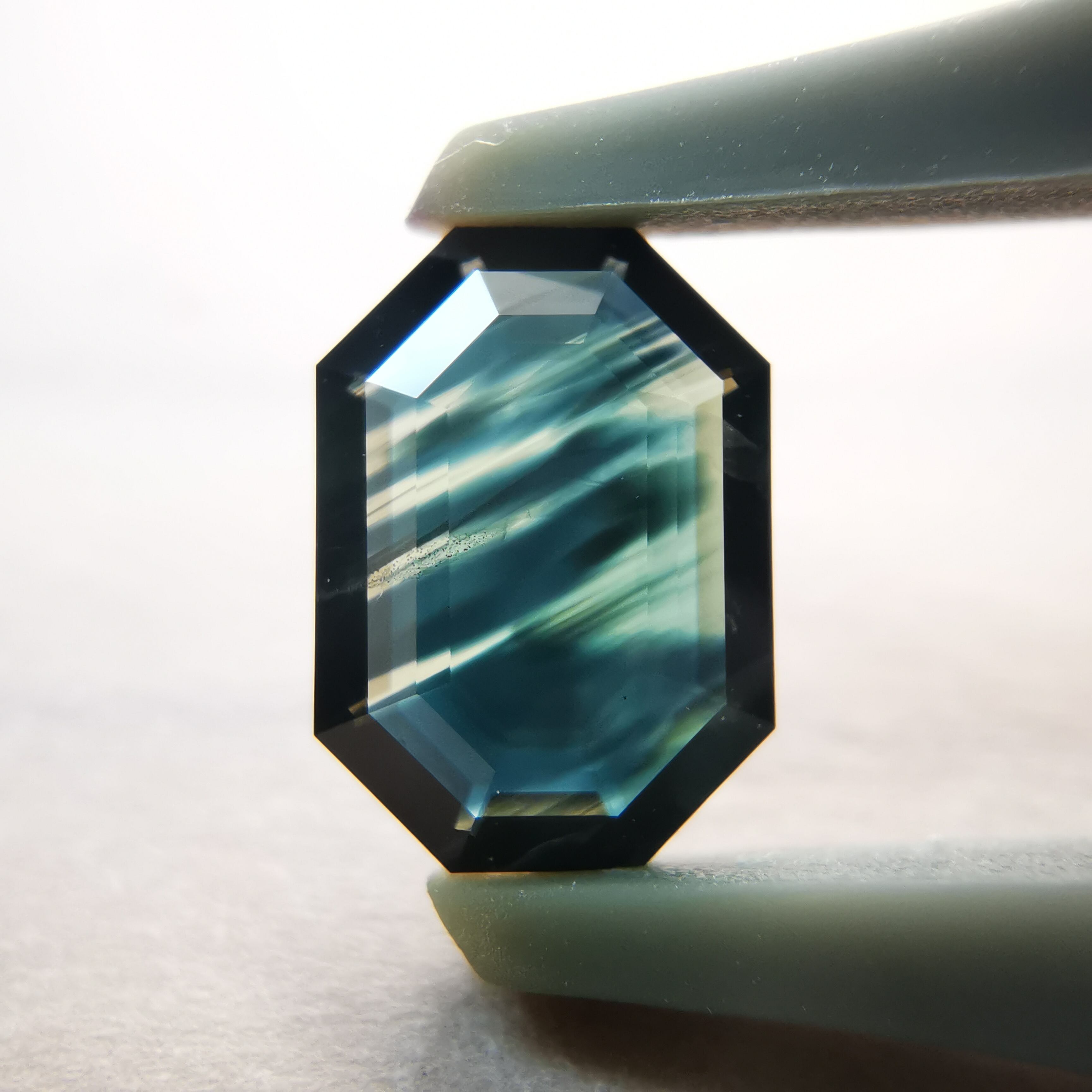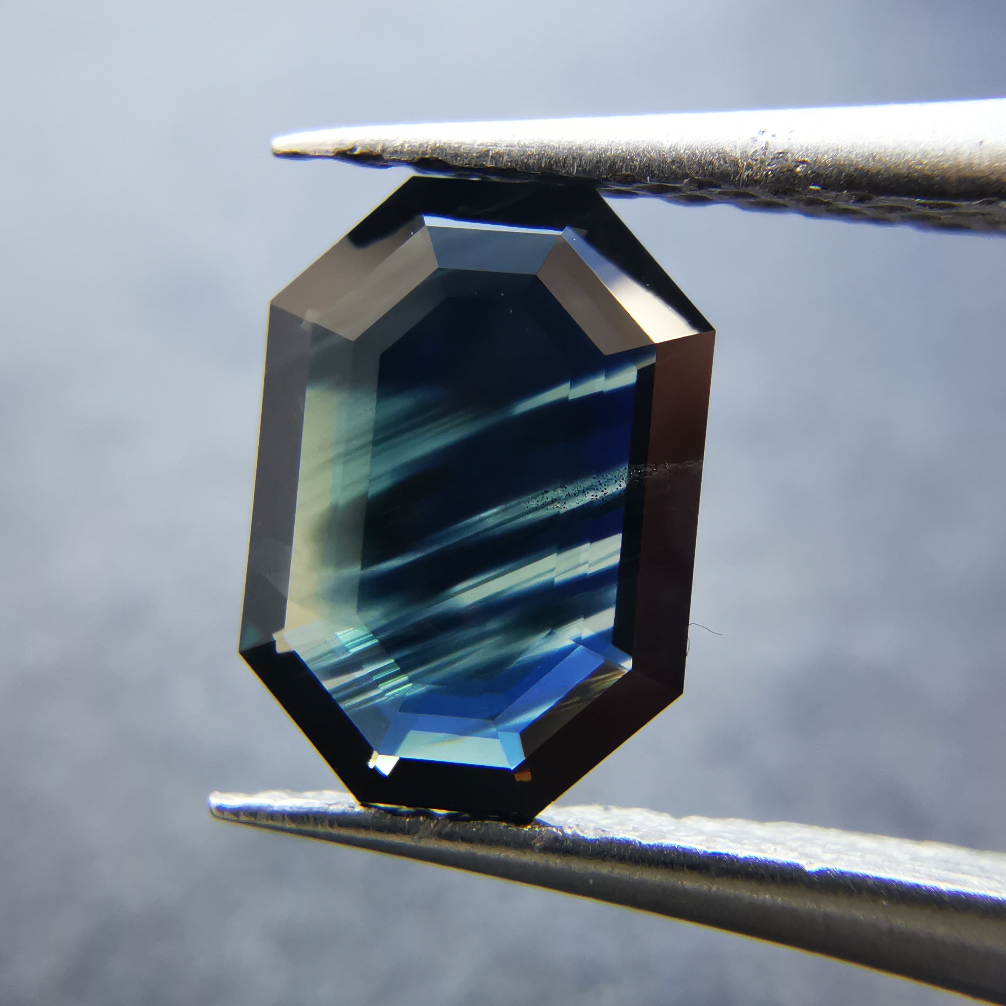 白緑色/ごく淡い緑と、紺青色が縞模様になったサファイアです。