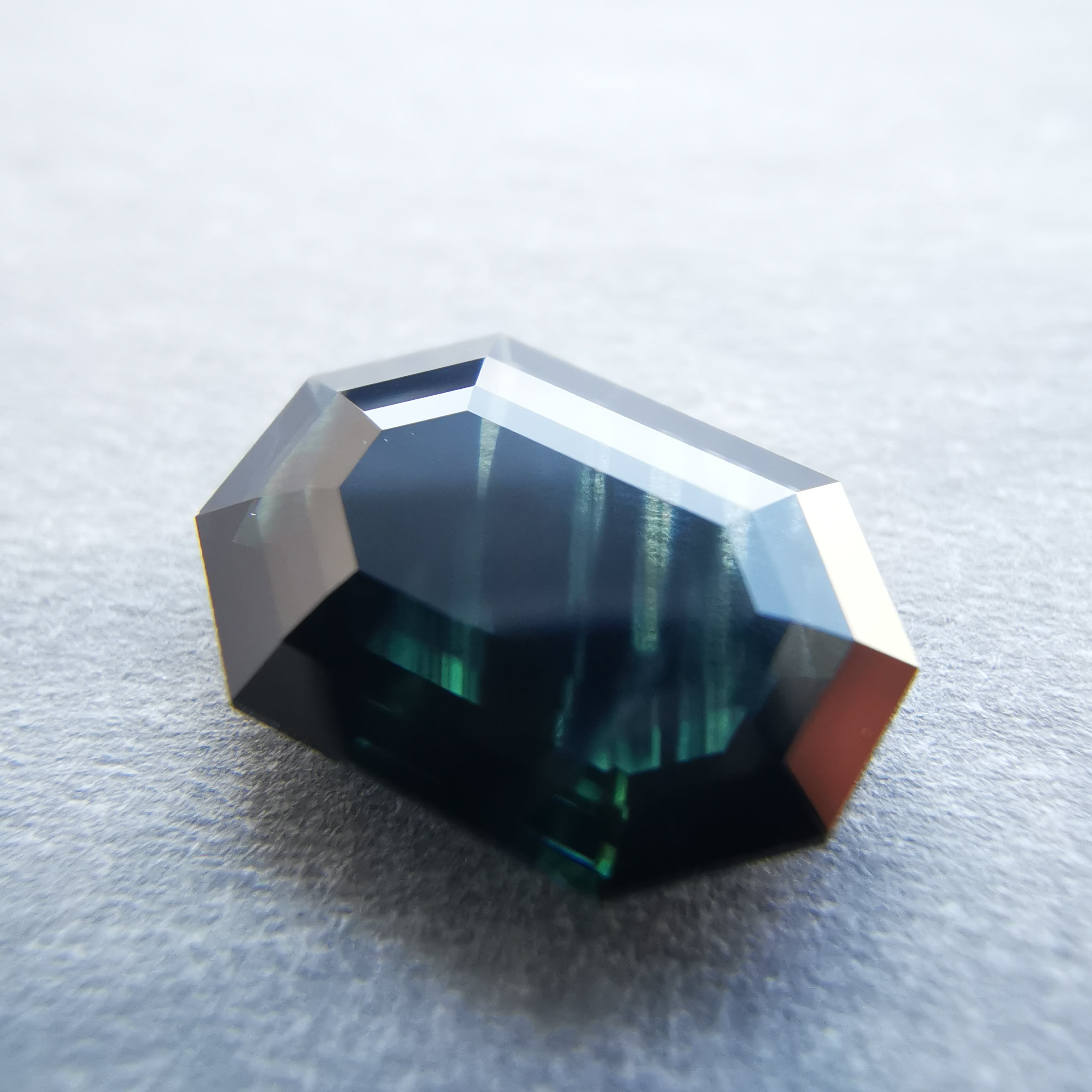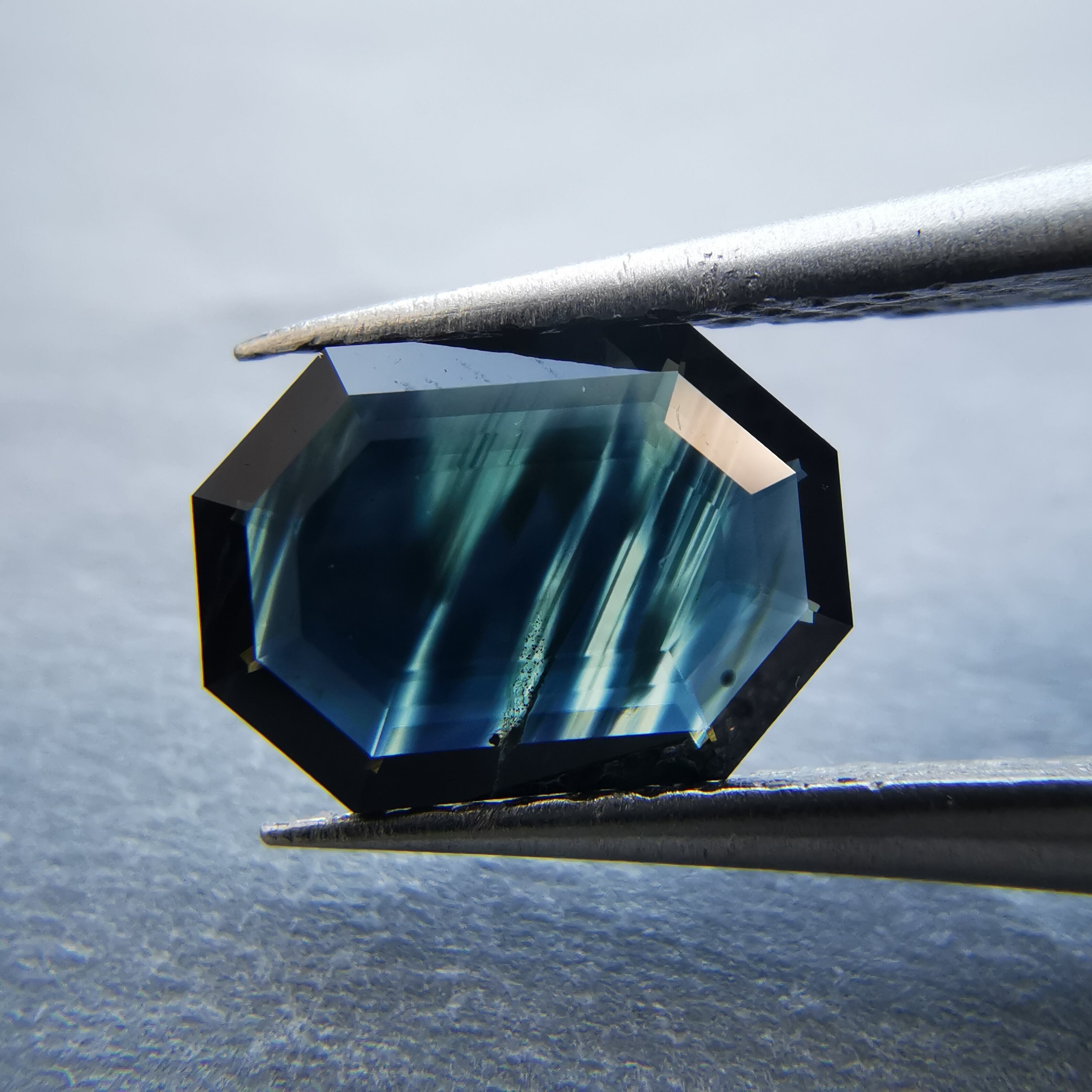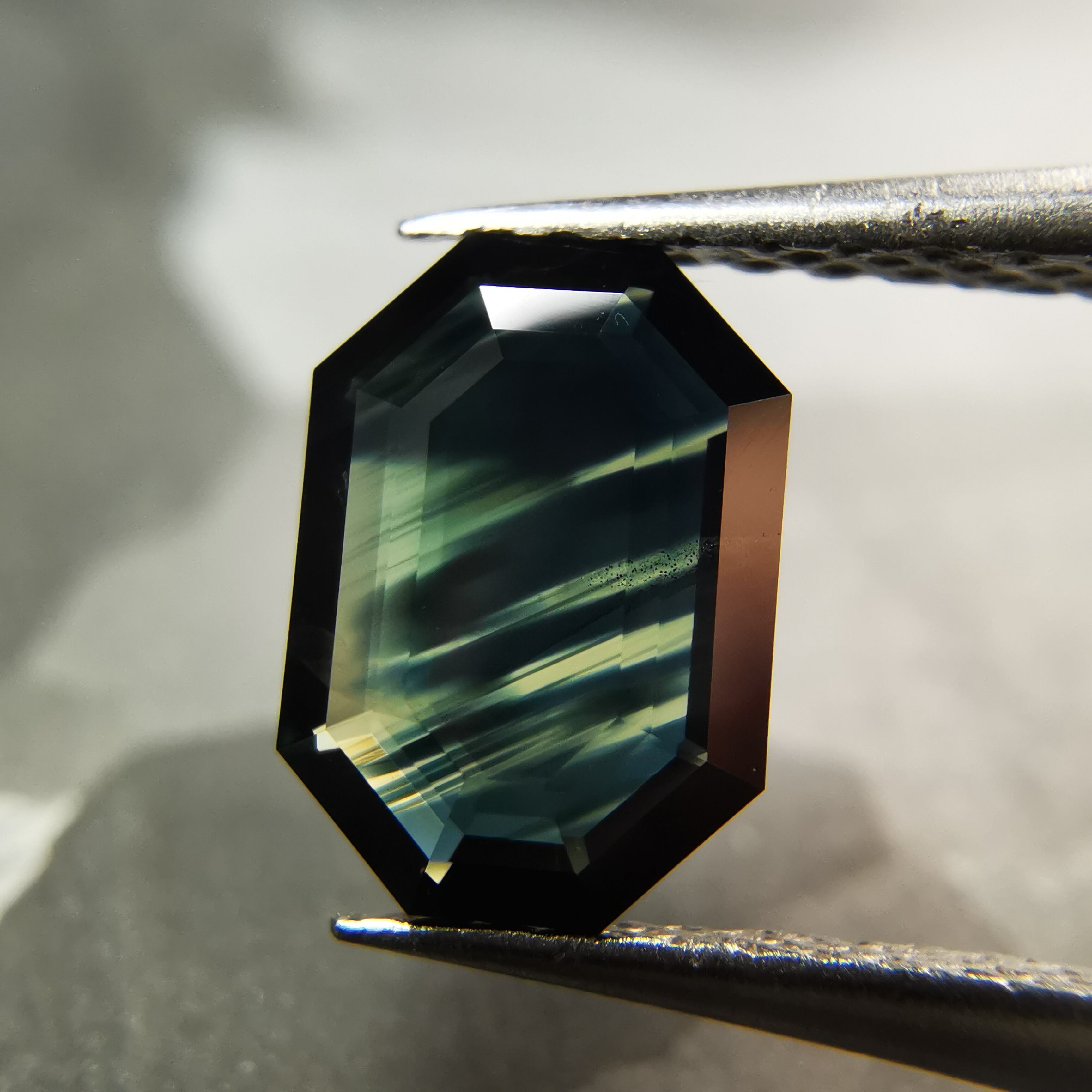白緑色/ごく淡い緑と、紺青色が縞模様になったサファイアです。