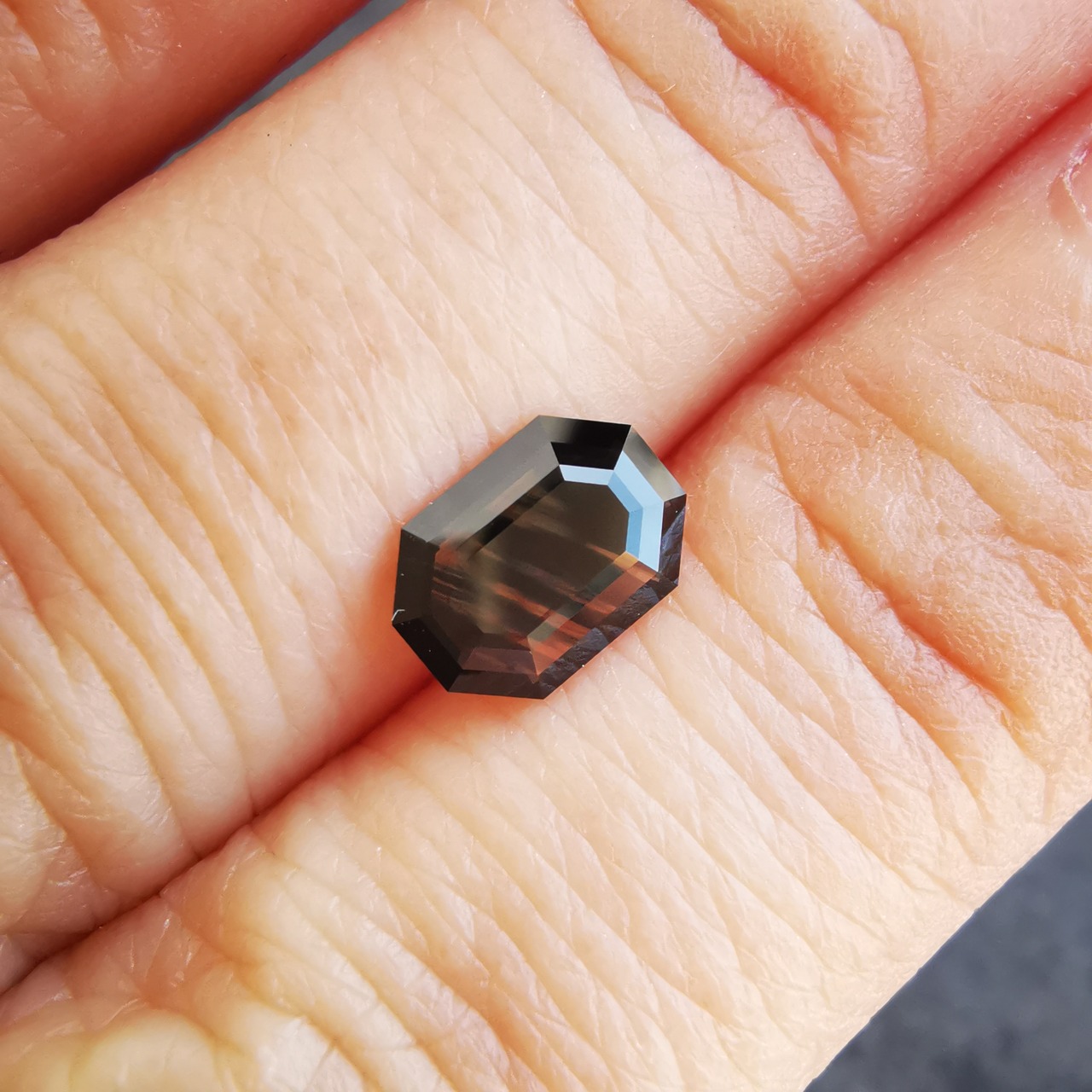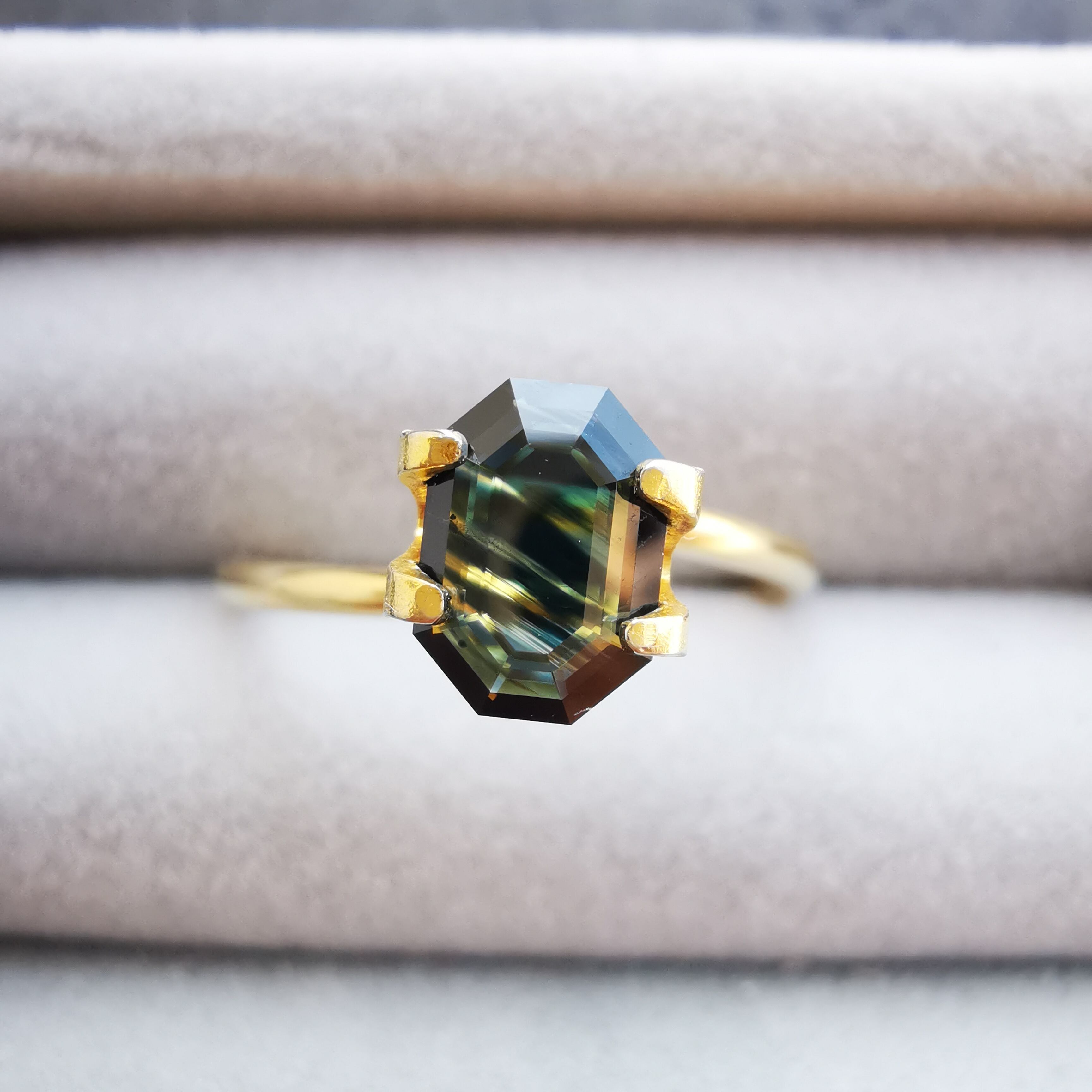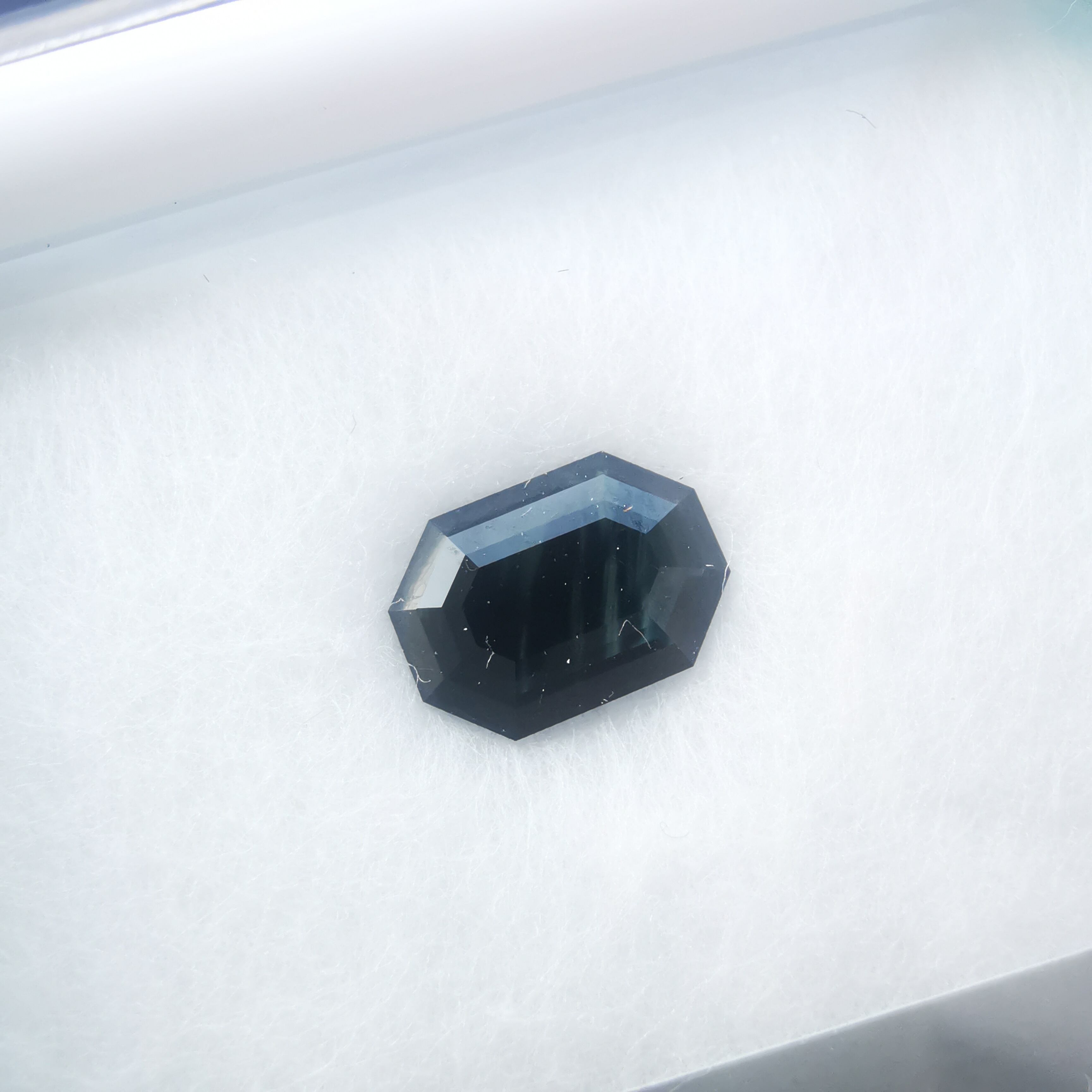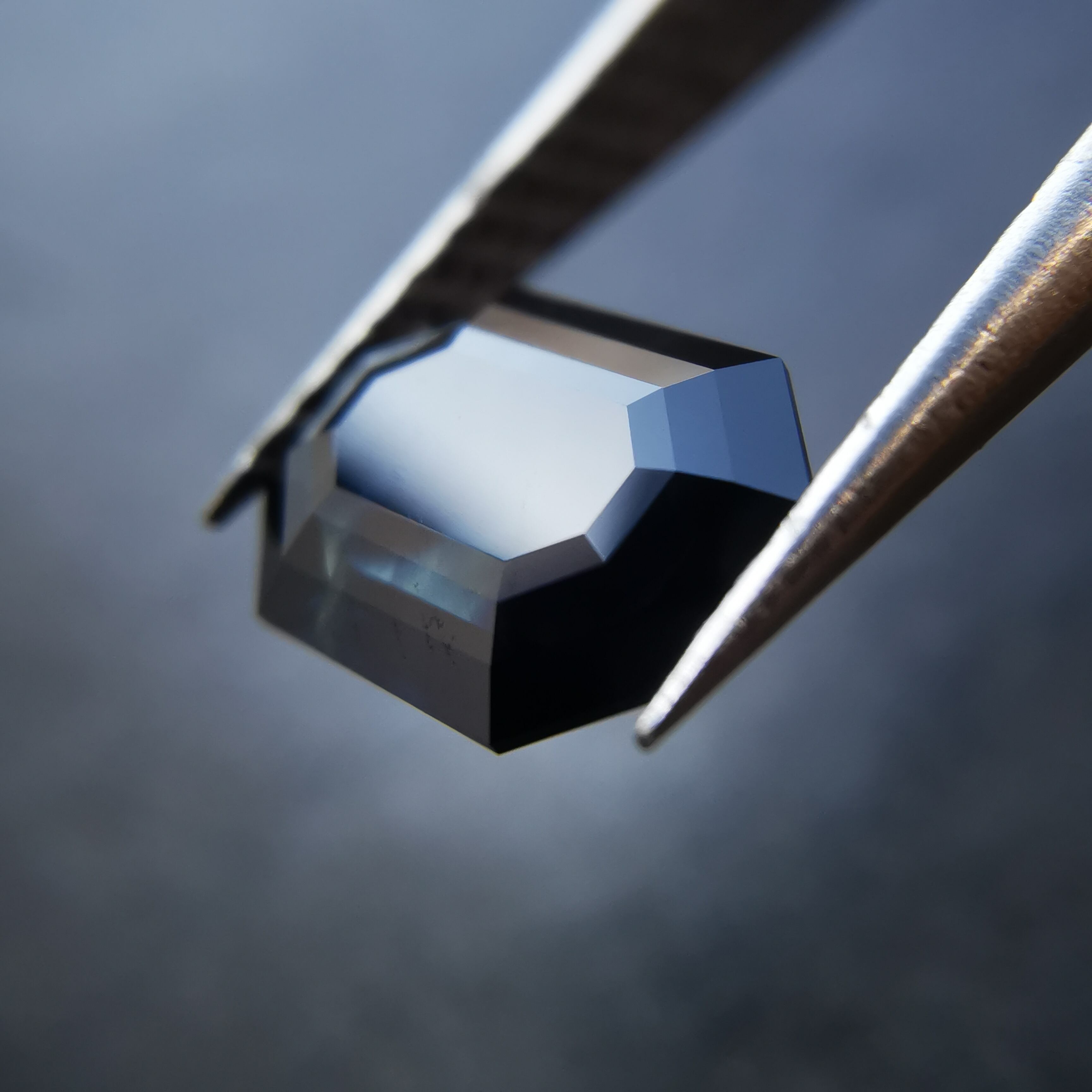 白緑色/ごく淡い緑と、紺青色が縞模様になったサファイアです。
