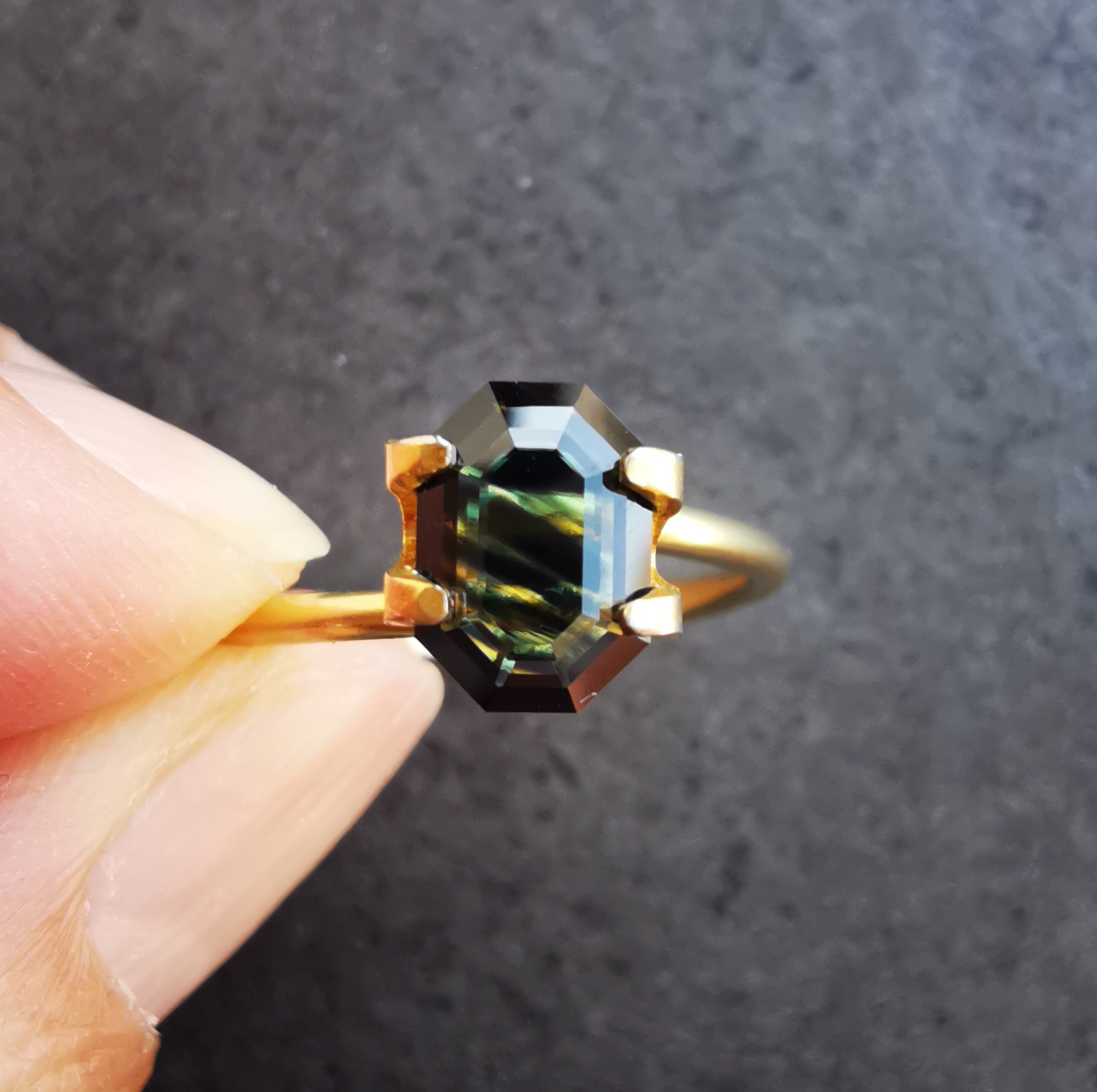 ポートレイトカットとは、パビリオンのない両面同じデザインのフラットなカットの事で、額に入れた絵画のように、その石の内包物やカラーを愛でる事が出来るカットです。