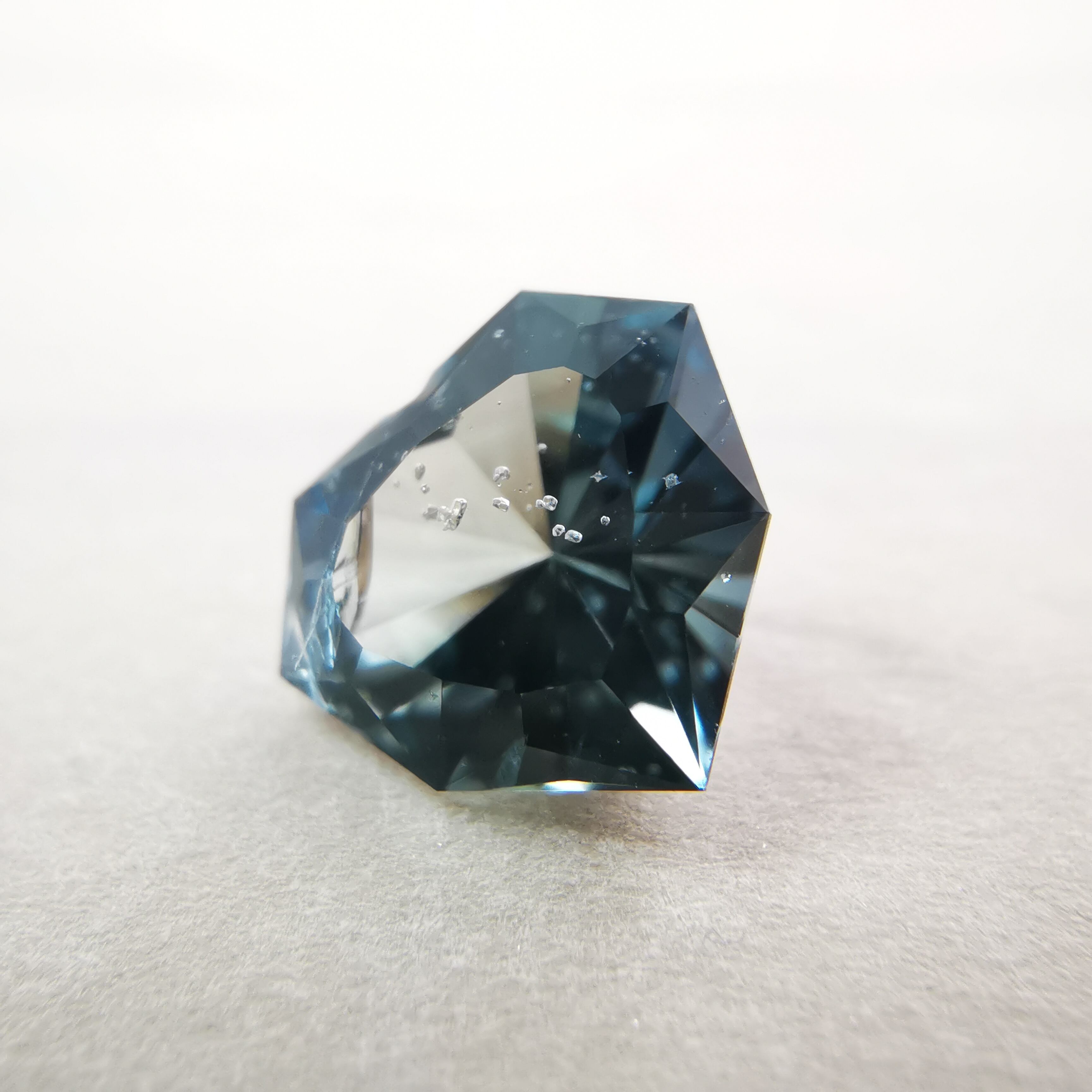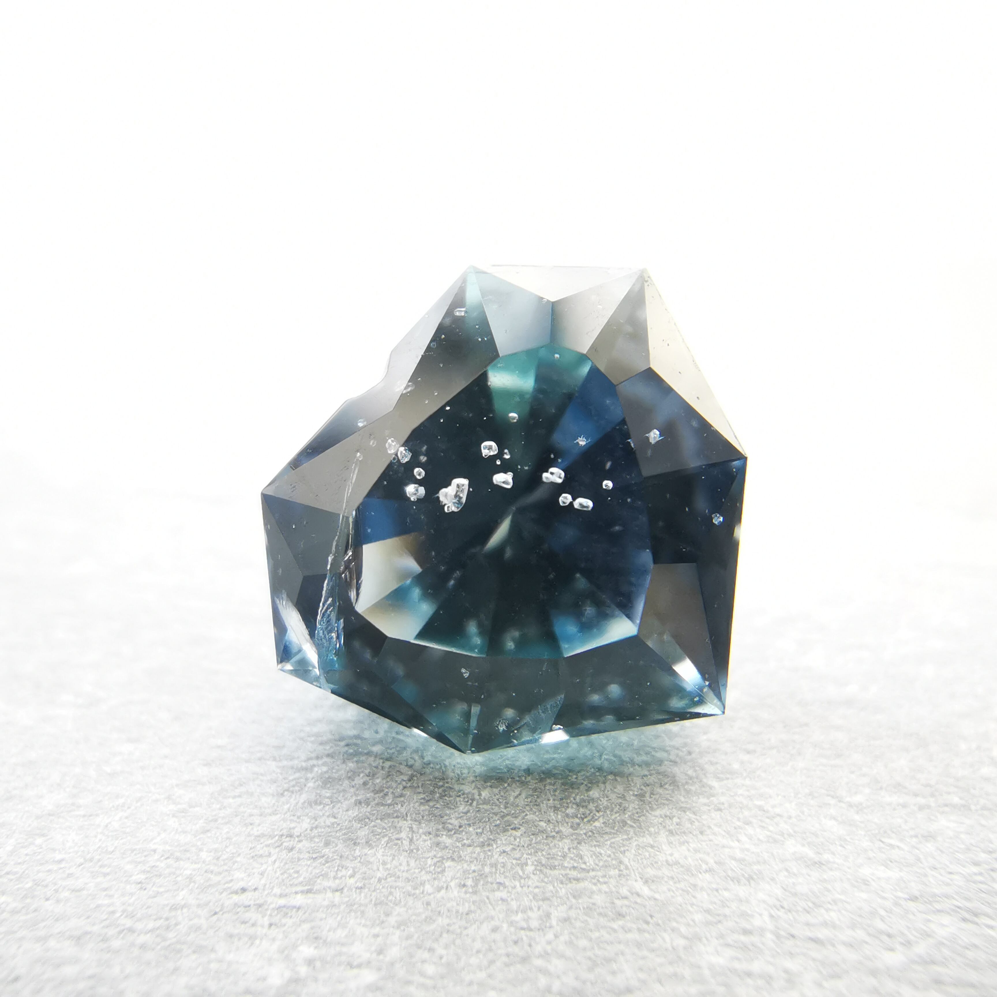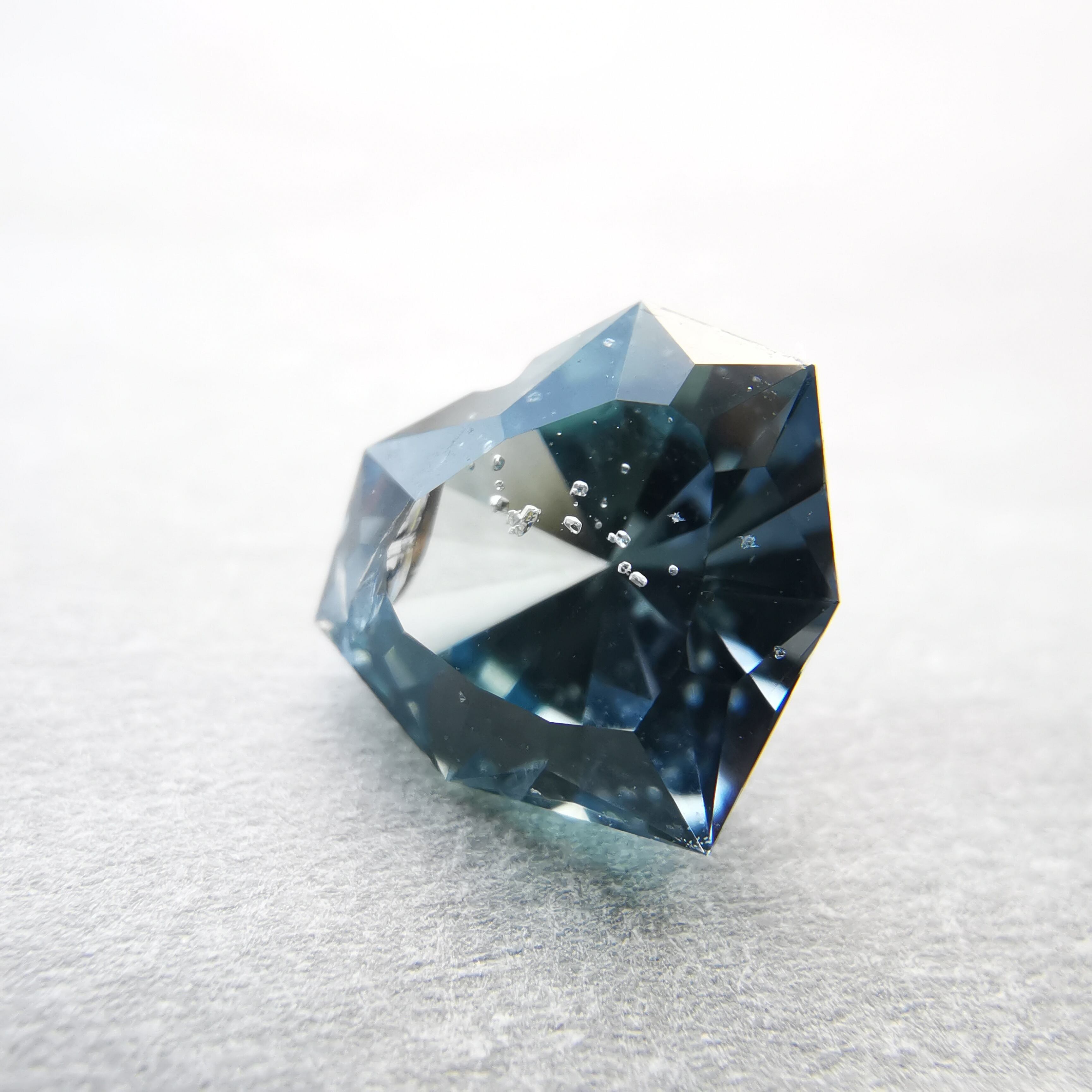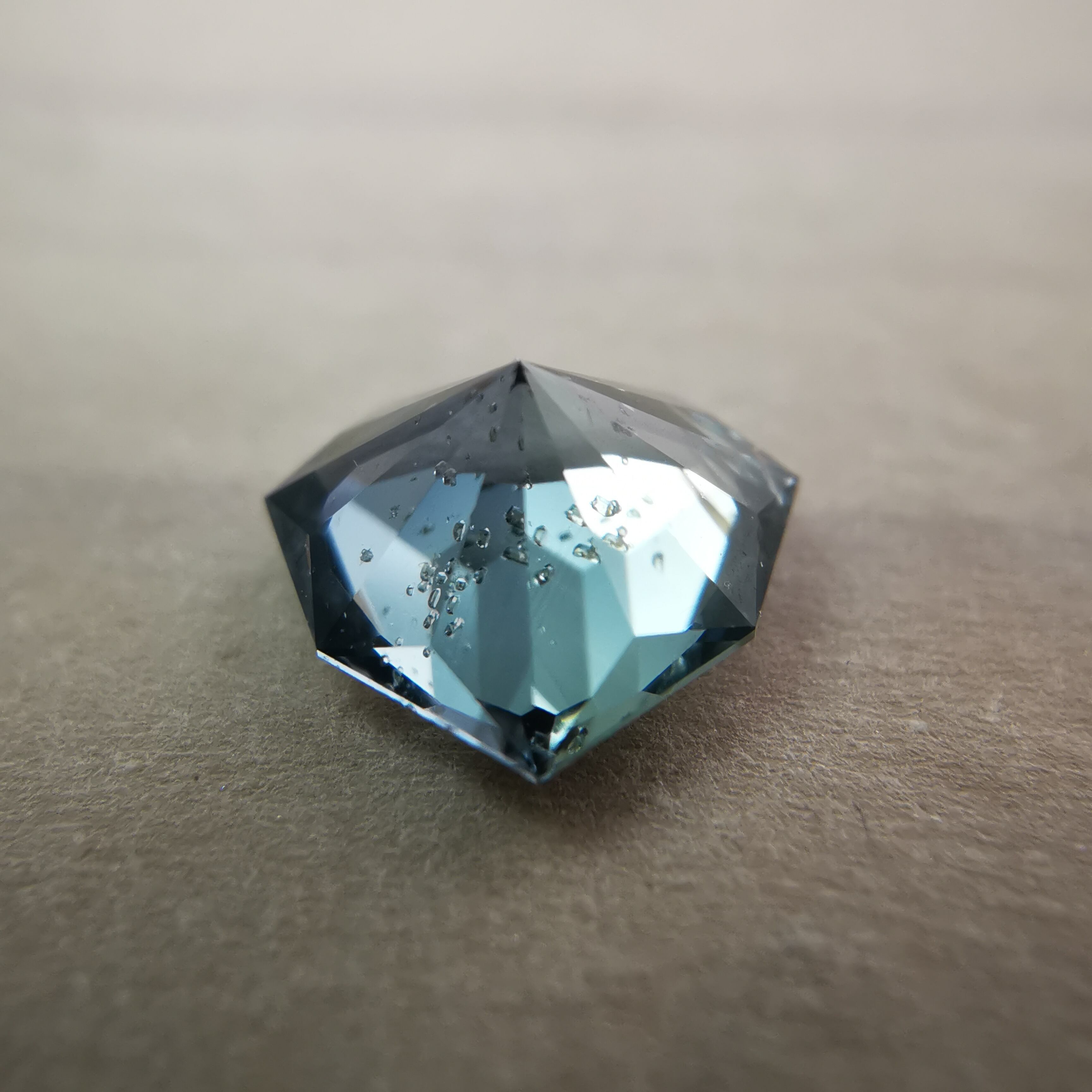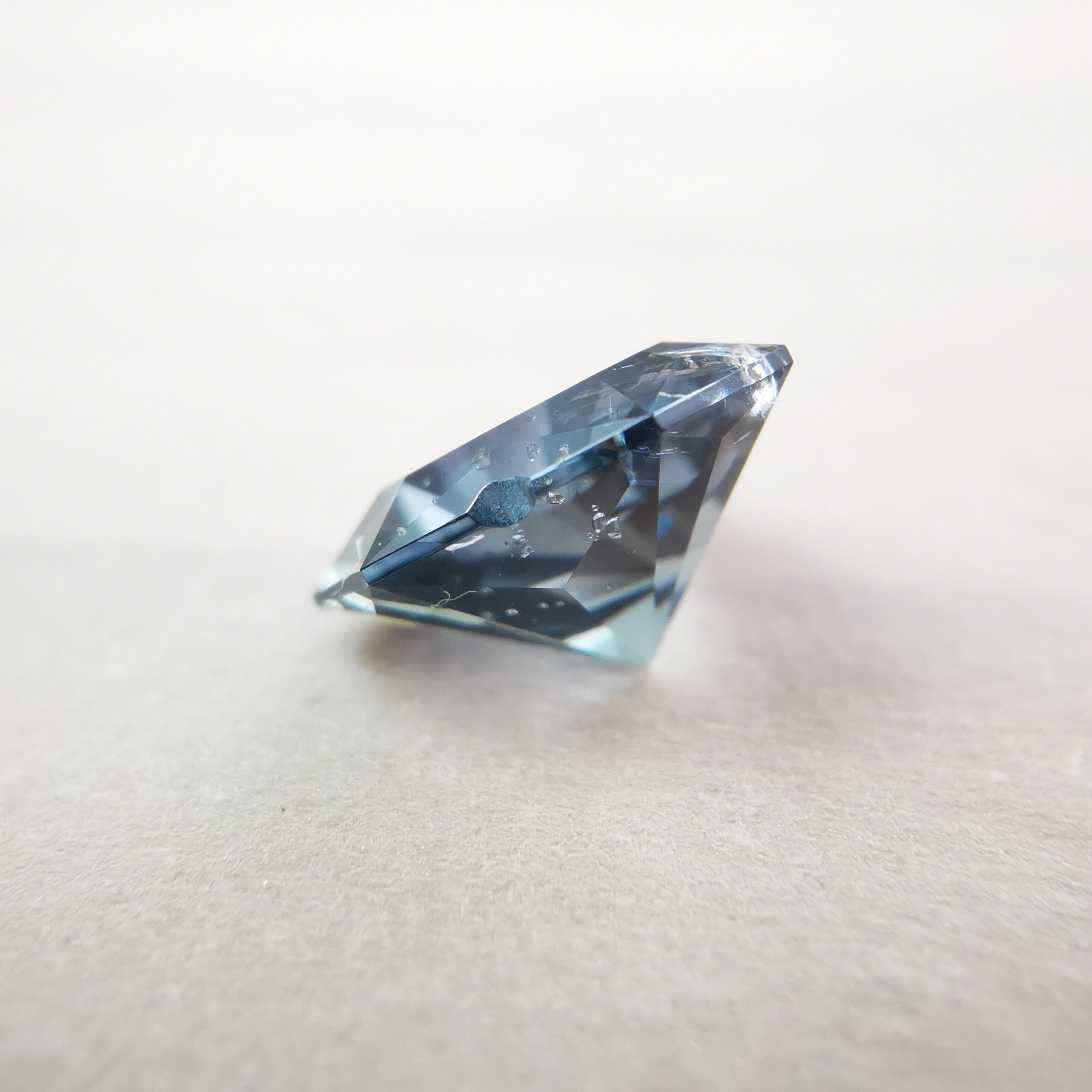 泡のようなインクルージョンが一筋、テーブル面を立ち昇りるように入っています。