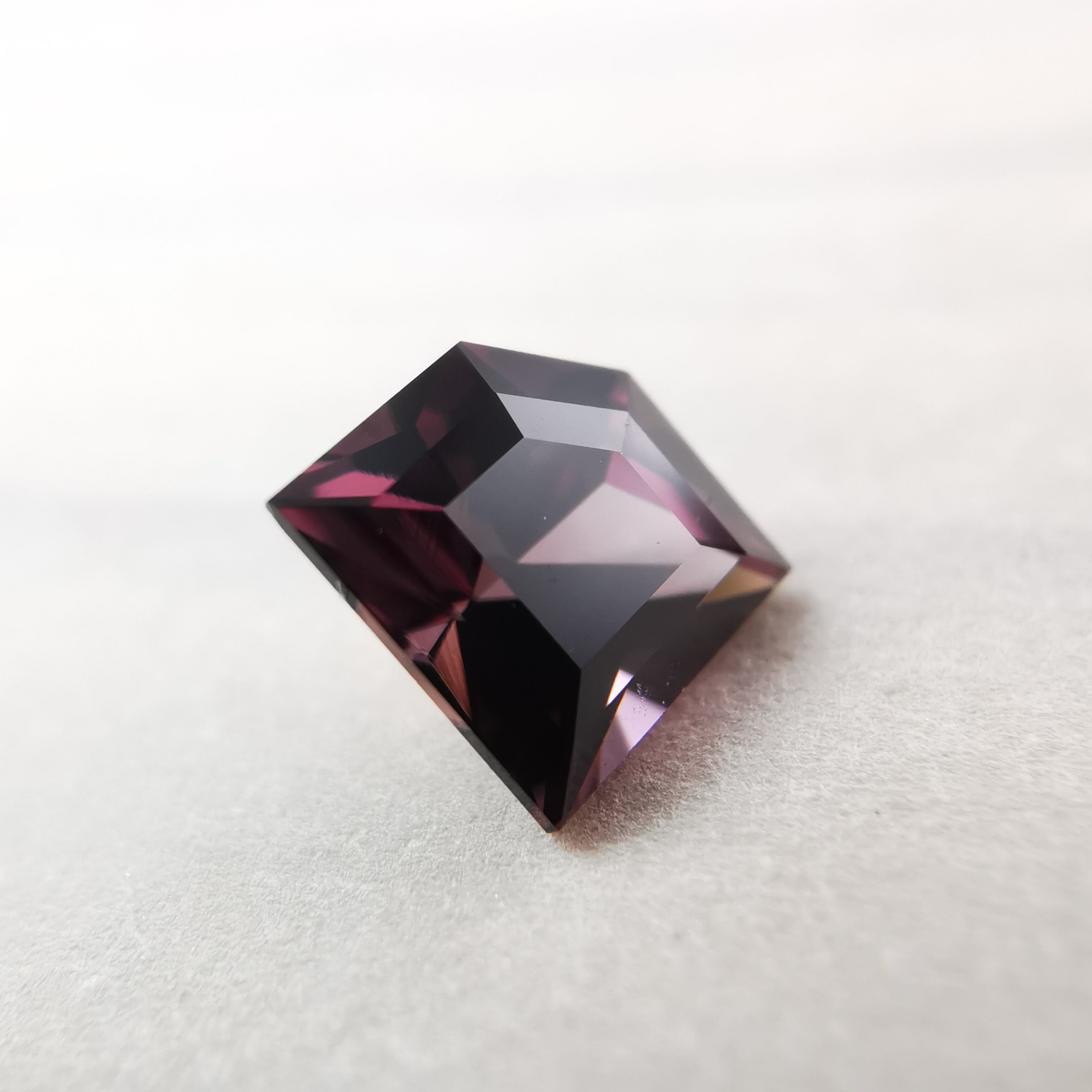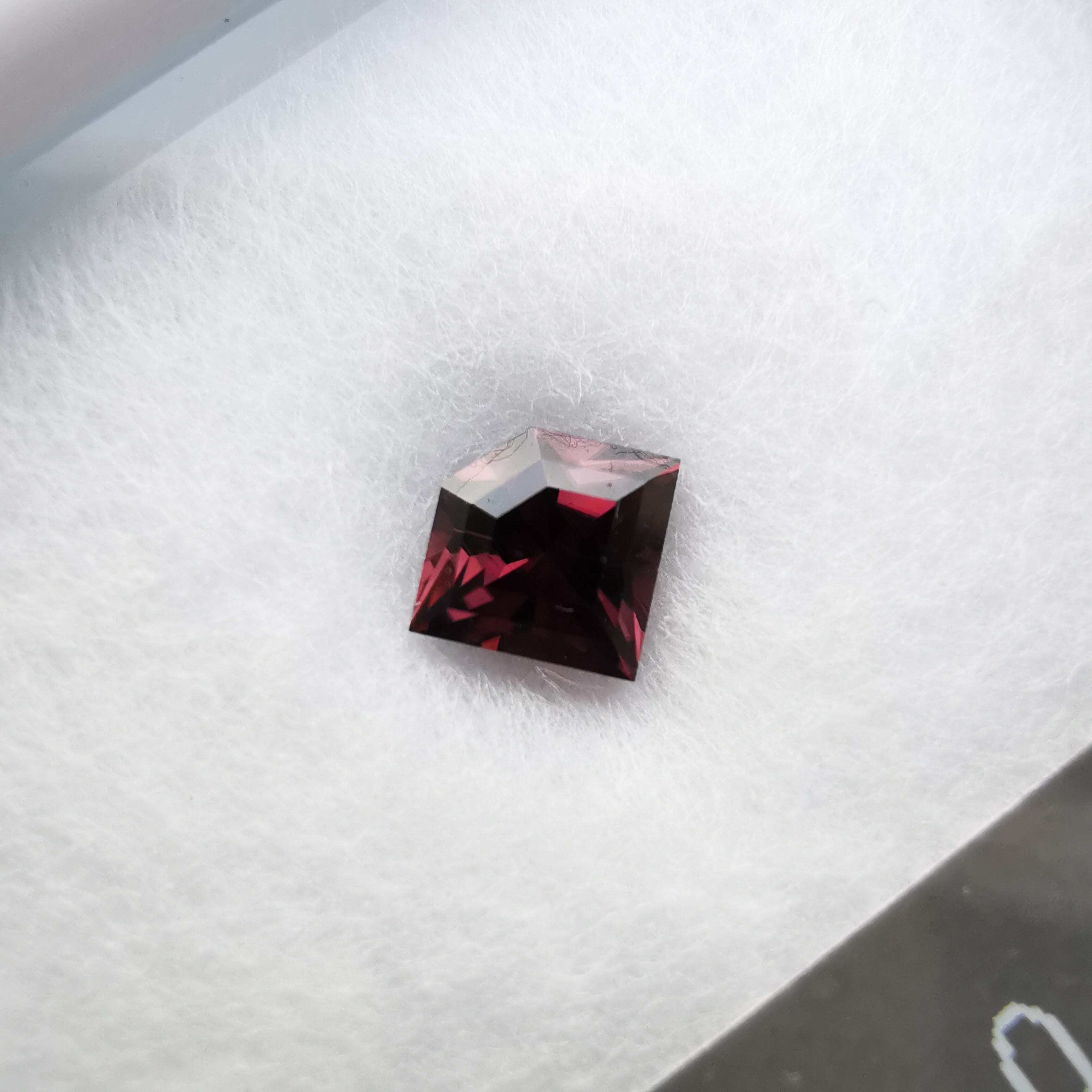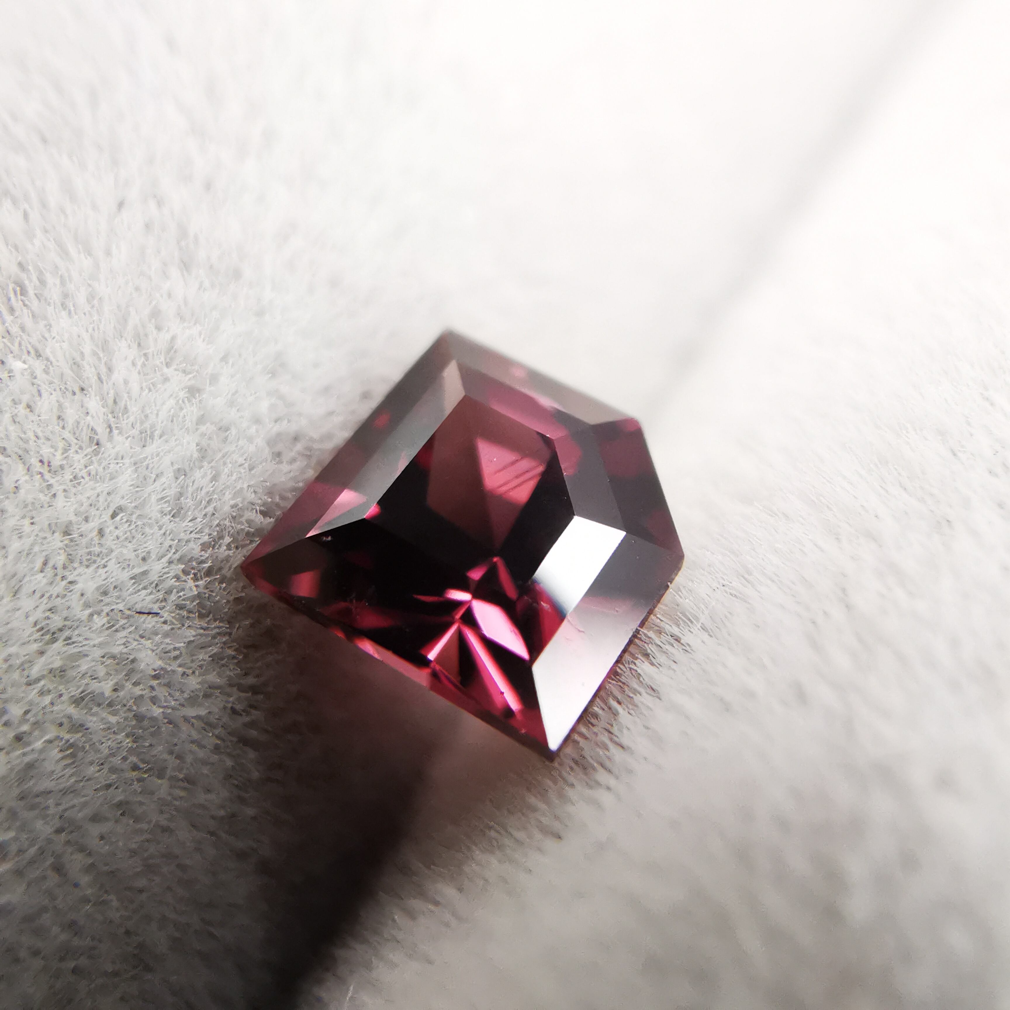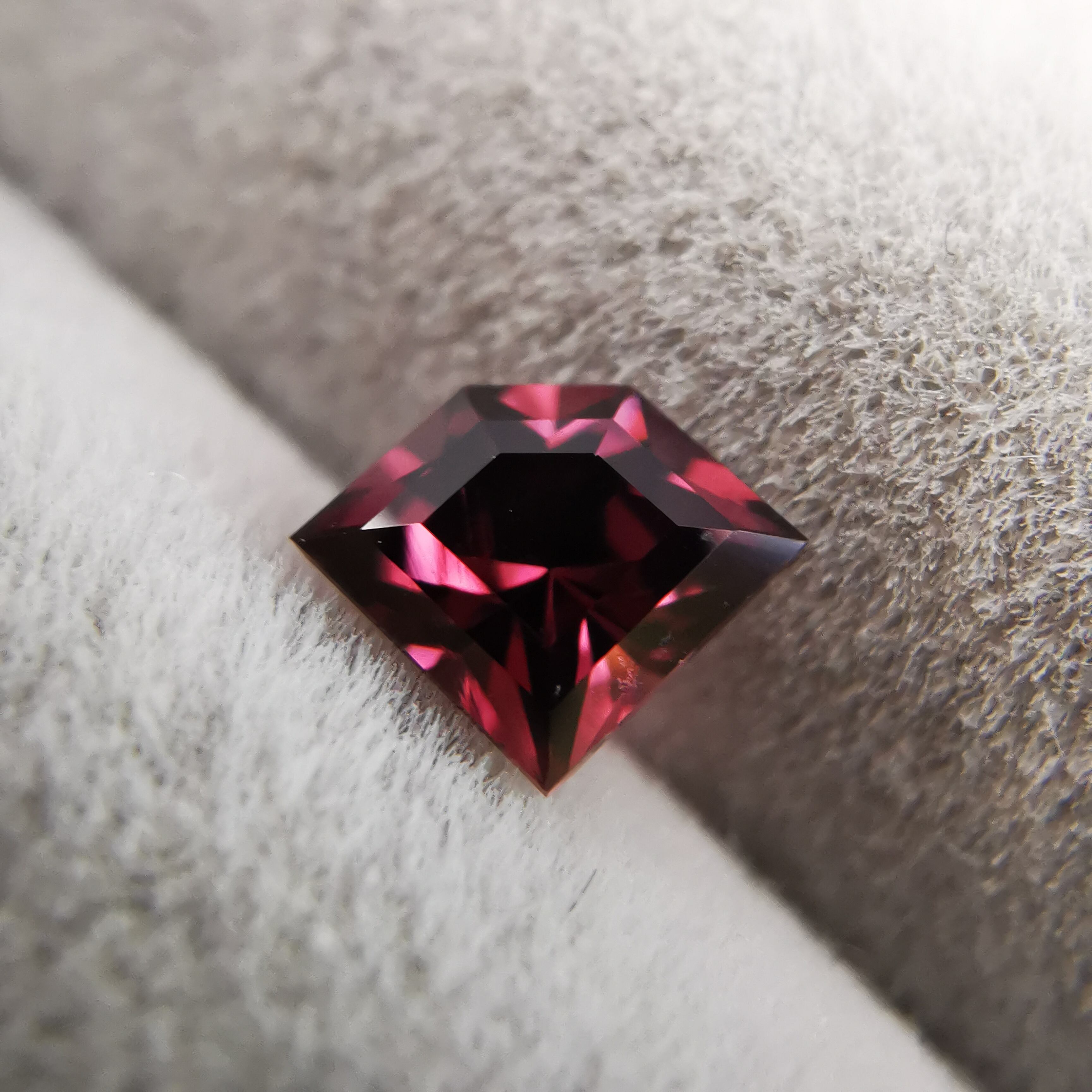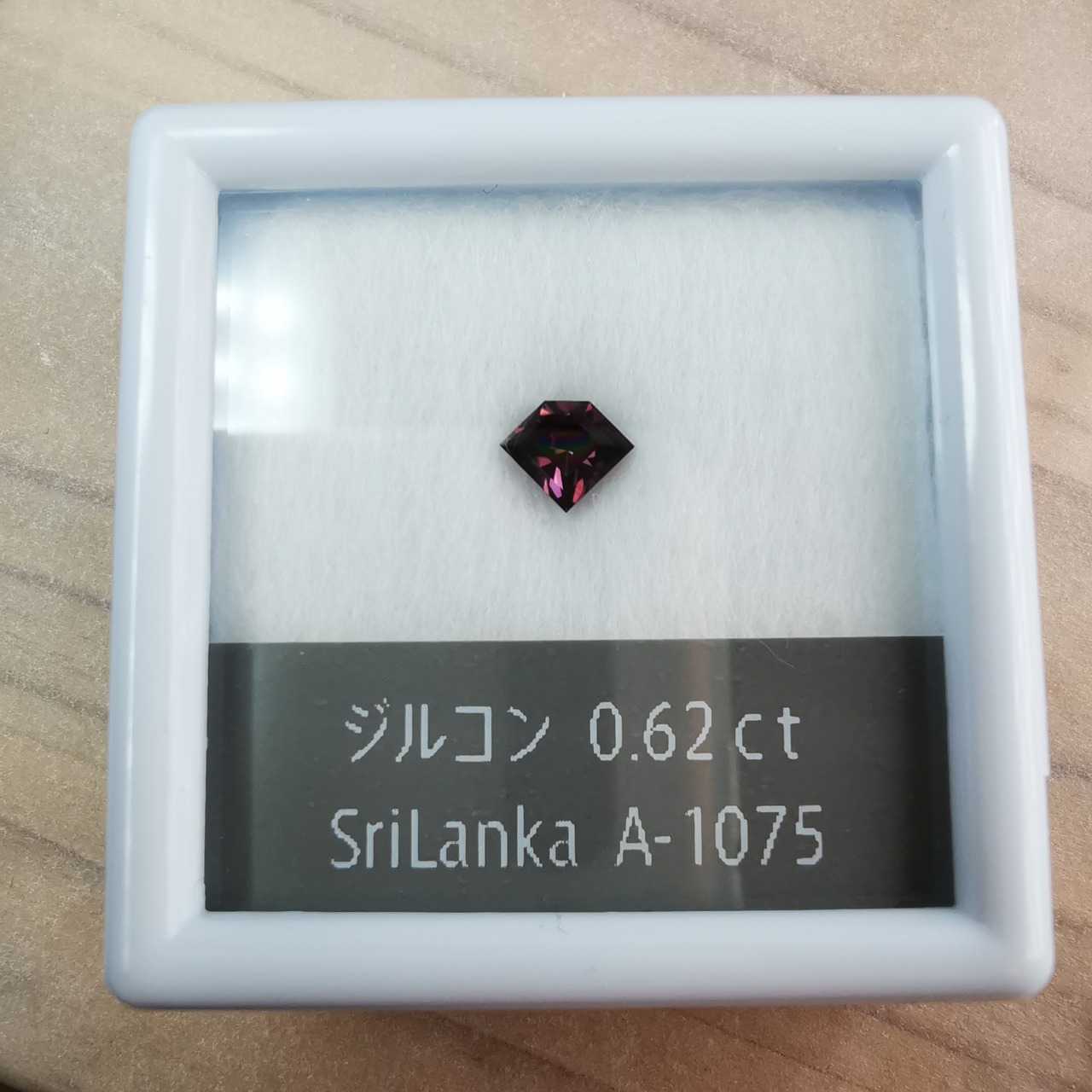 暗い石の中から、ラズベリー色がきらめくジルコンです。