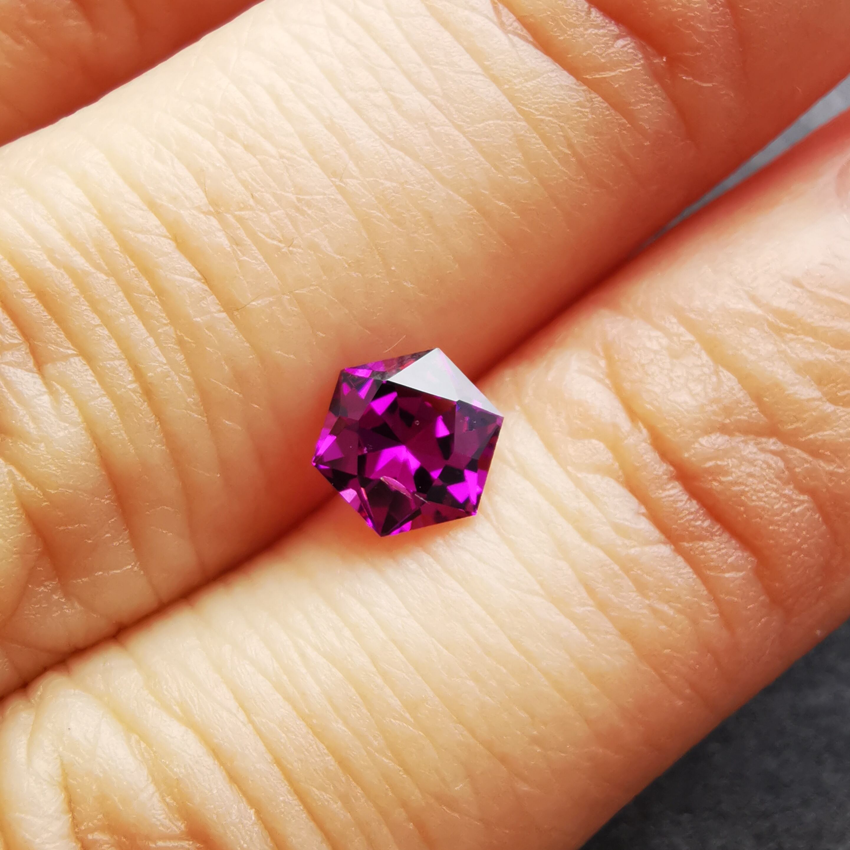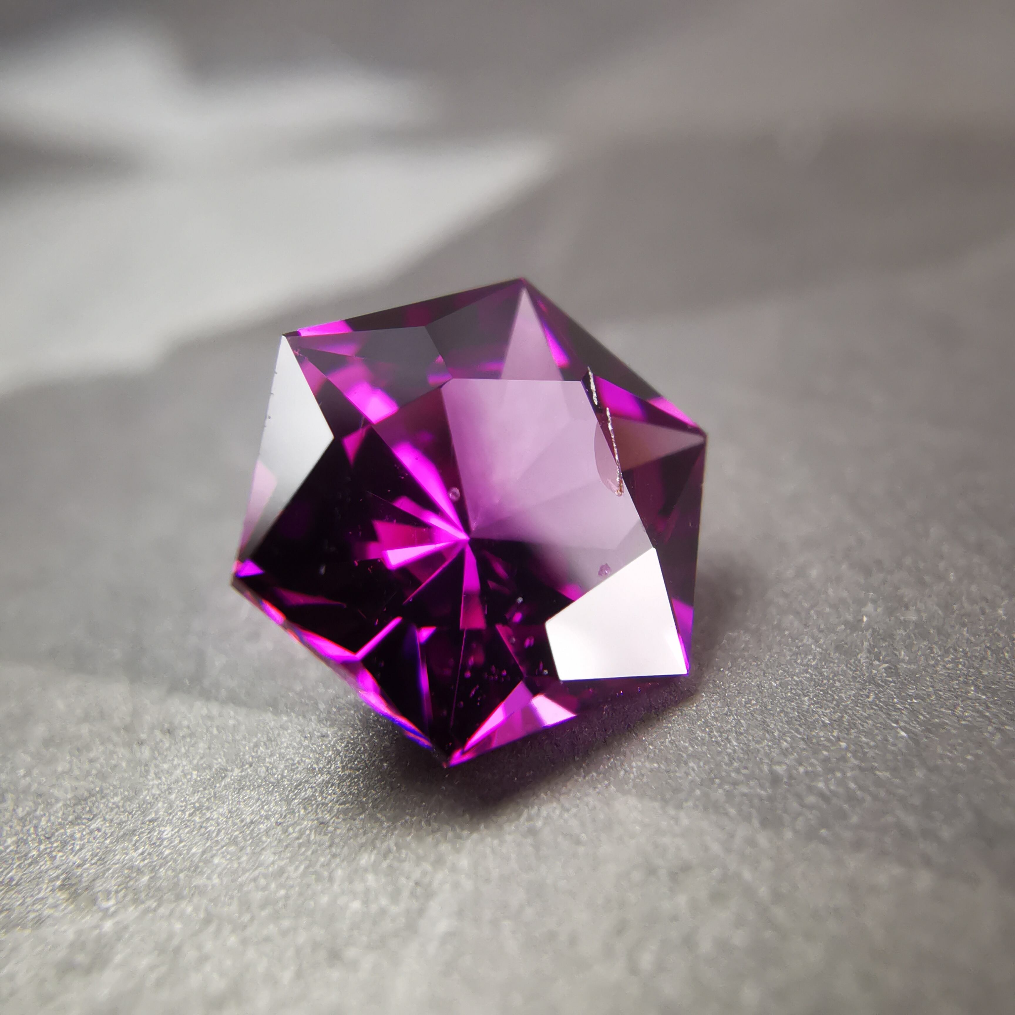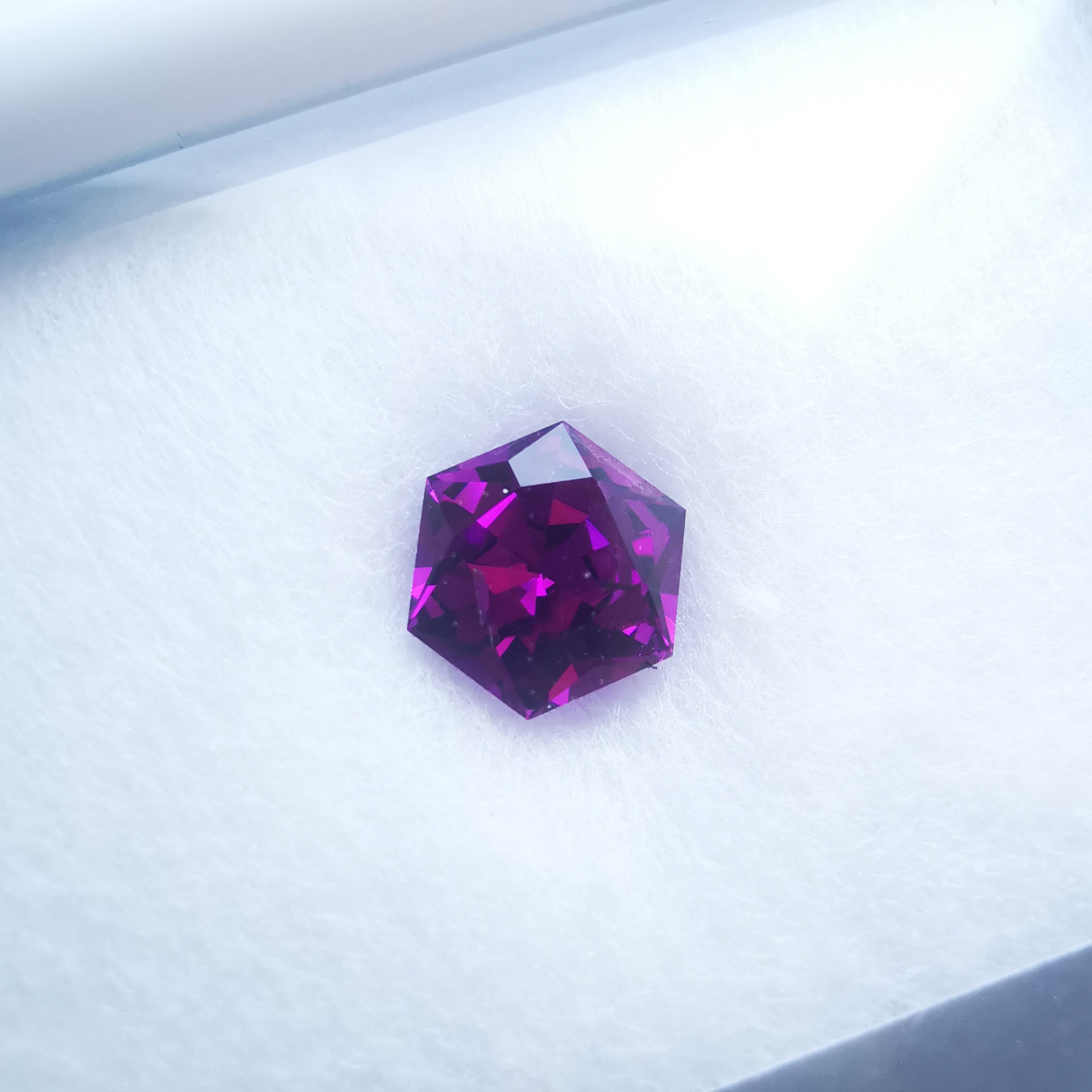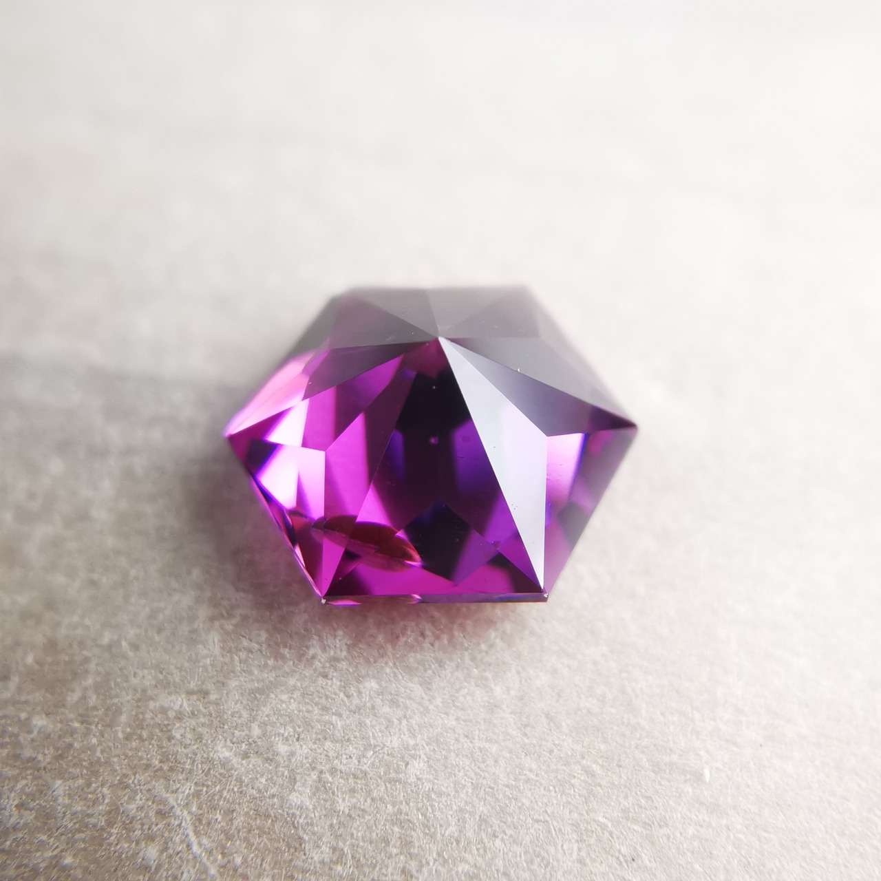 ロードライトガーネットとひと言でいっても、赤寄りのもの、ピンク寄りのもの、朱色寄りのものと色々ですが、一部の産地ではパープル寄りのものが産出します。