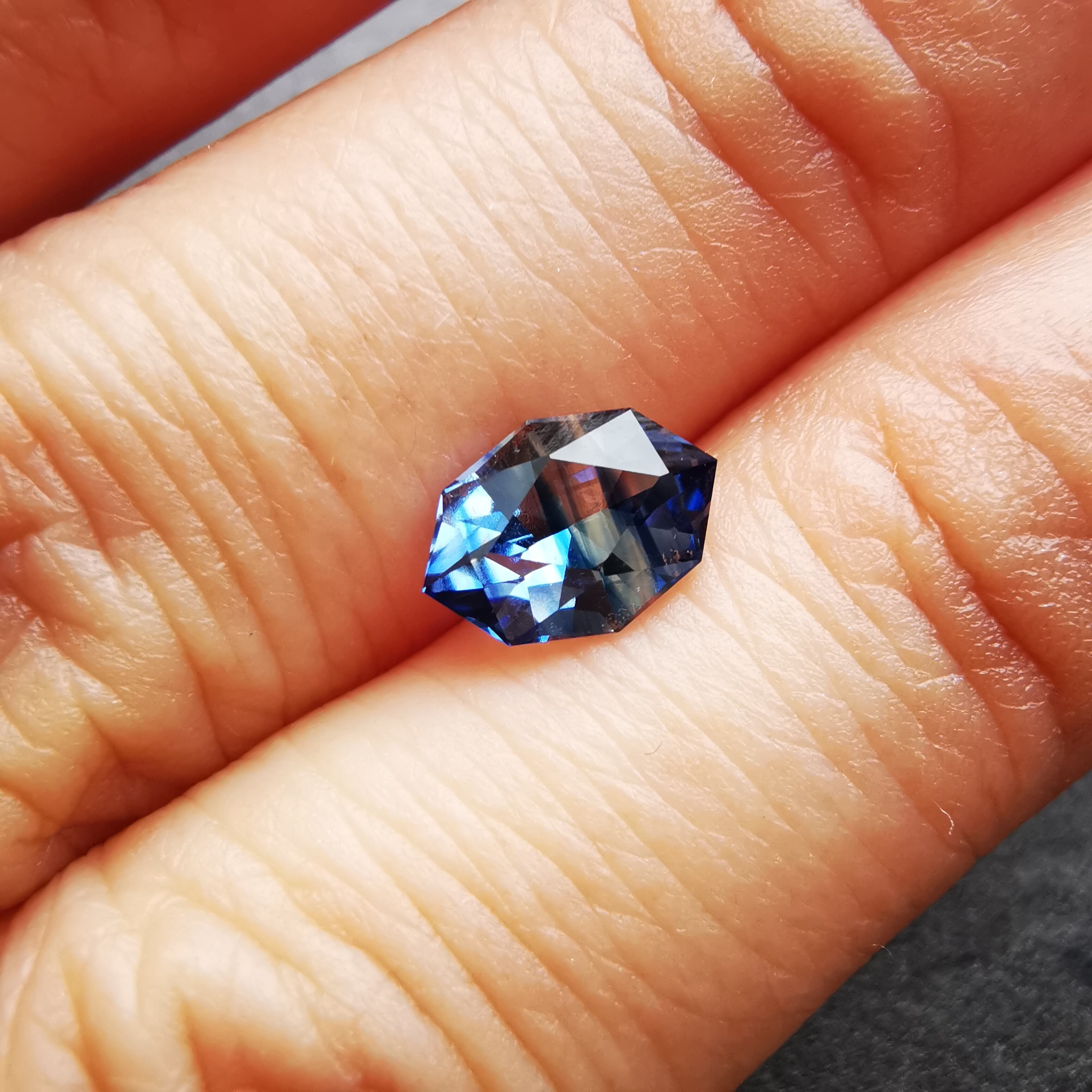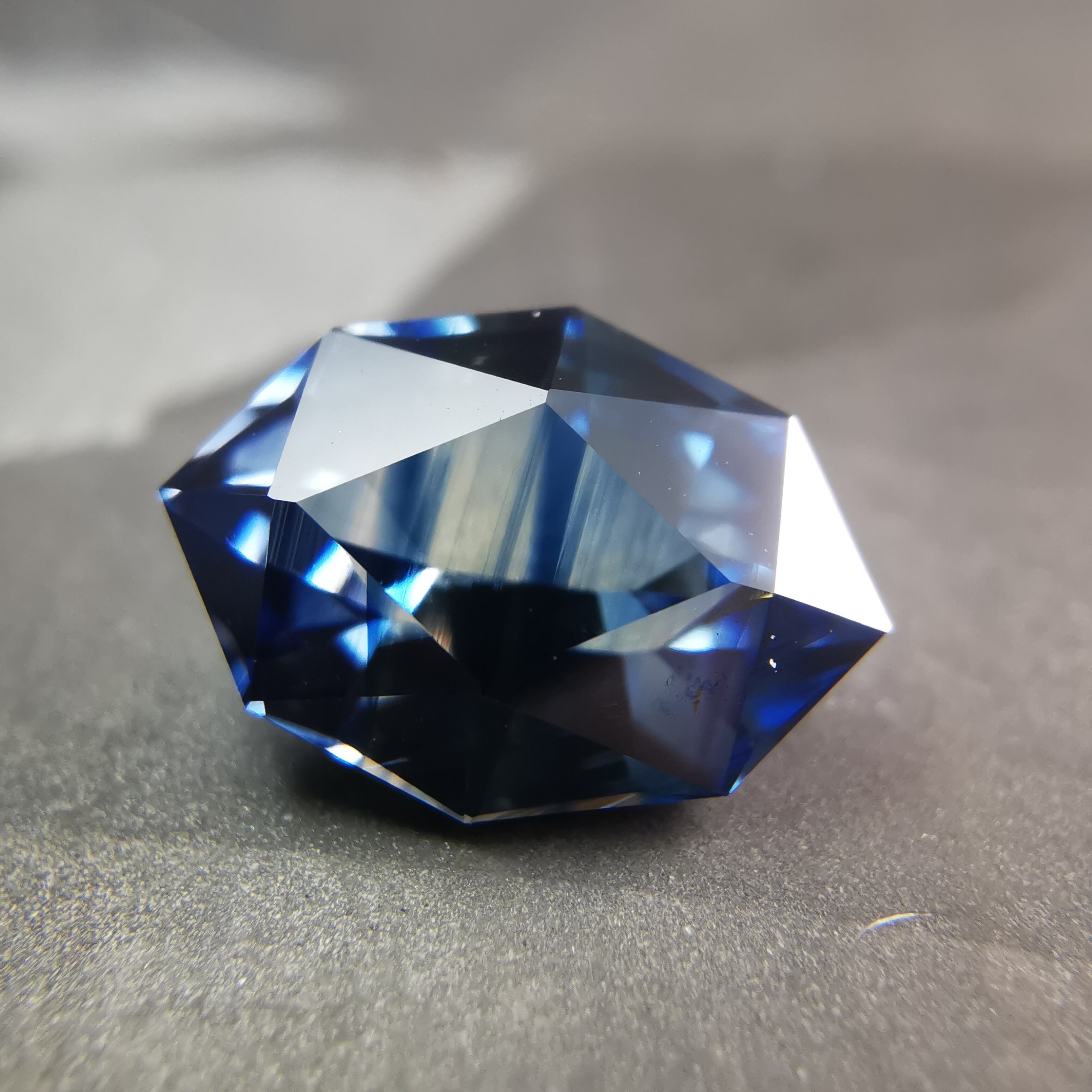 アイアンブルーのカラーバンドがいく筋か走るサファイアです。