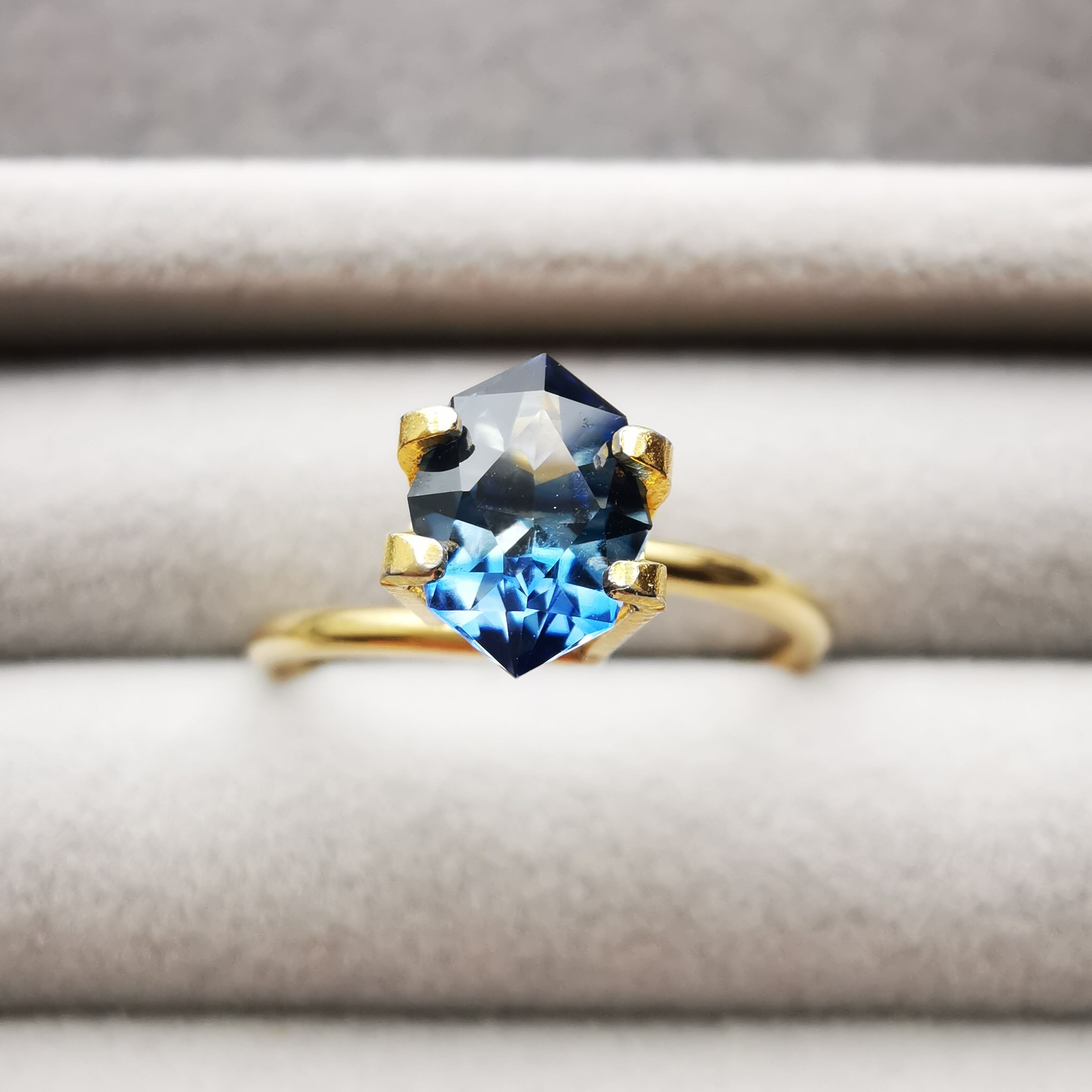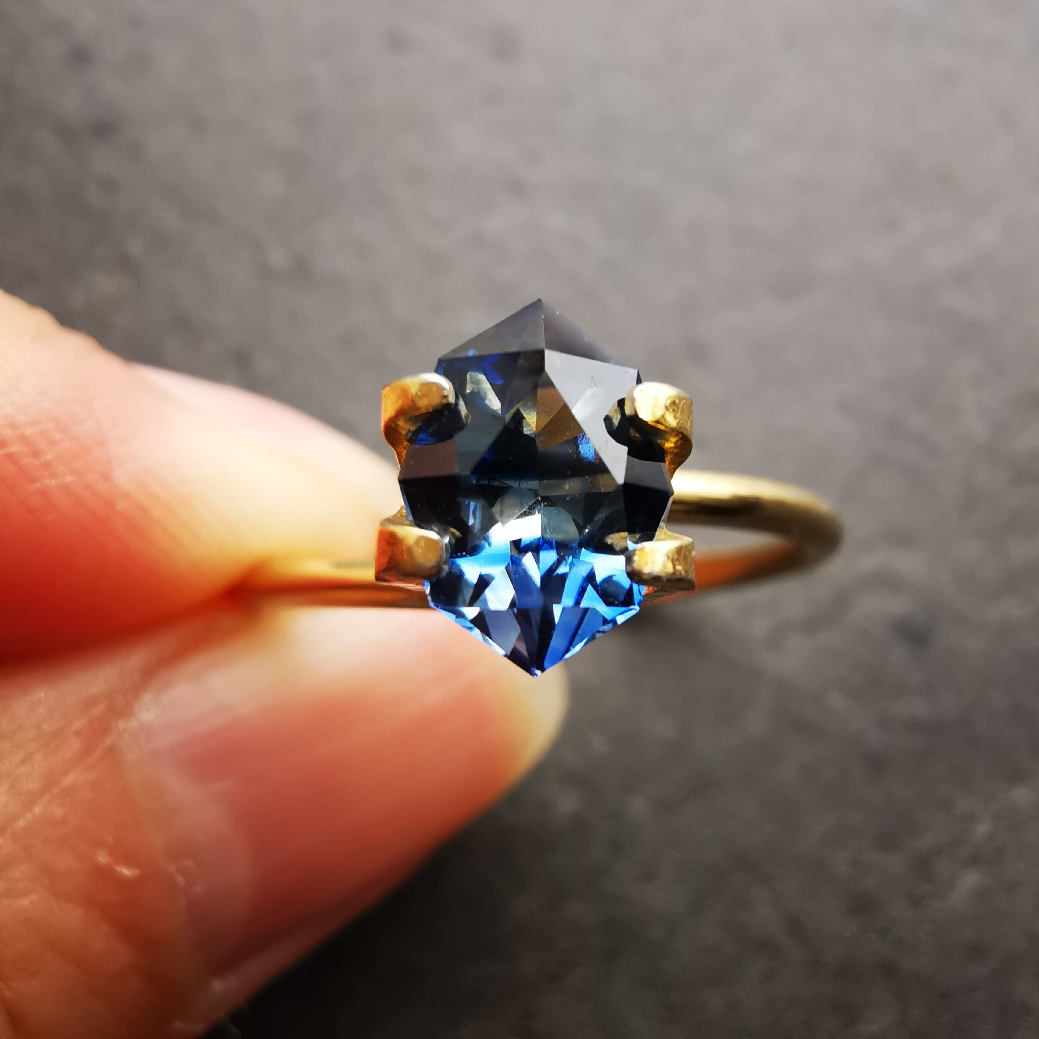 フェイスからは全体に青っぽく一部がクリアに見えますが、後ろから見ると、実はブルーの分量はかなり少なく、クリアの一部にブルーが入っていることが分かります。