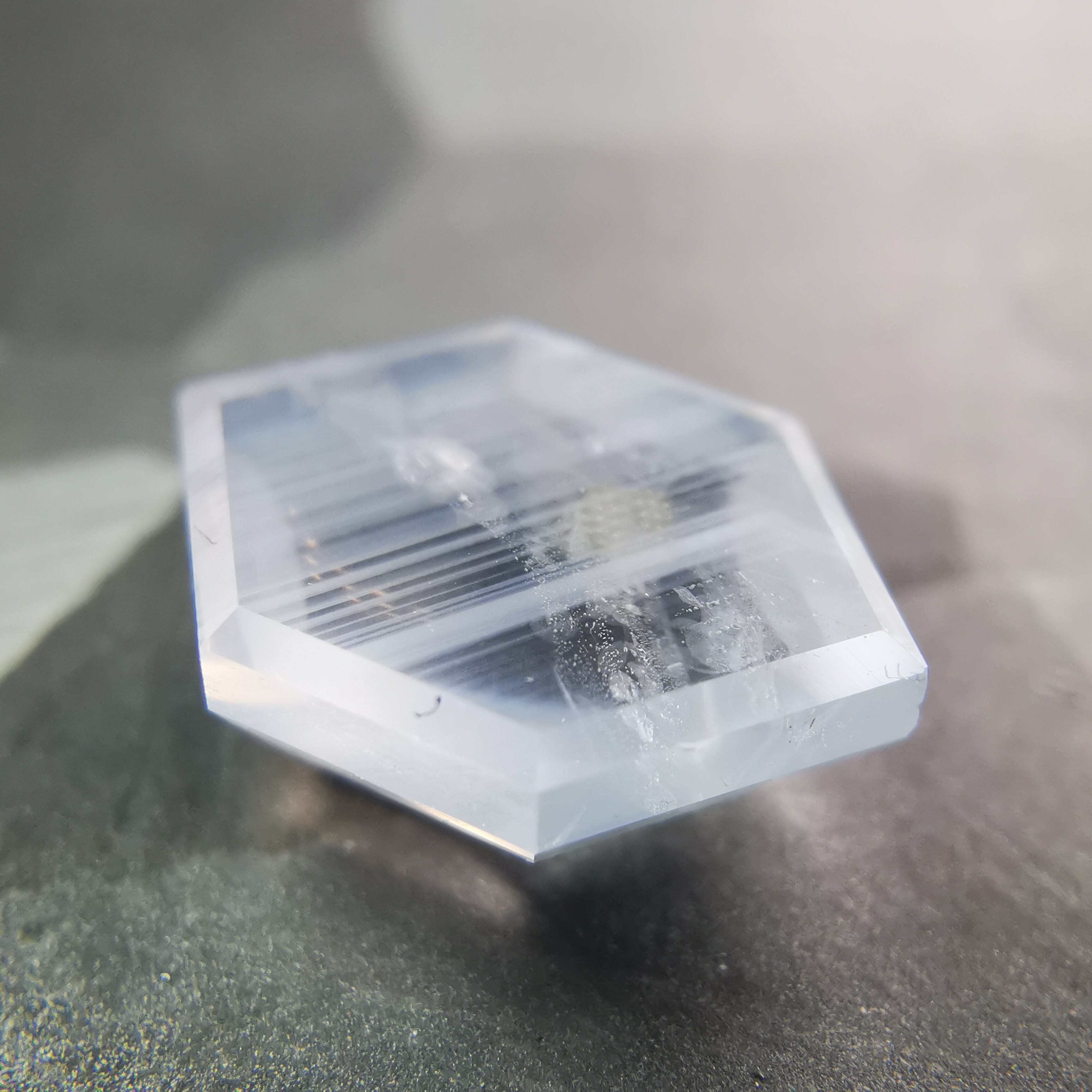 写真ではやや青みに写りますが、肉眼ではクリアとホワイトの印象が強い一石です。