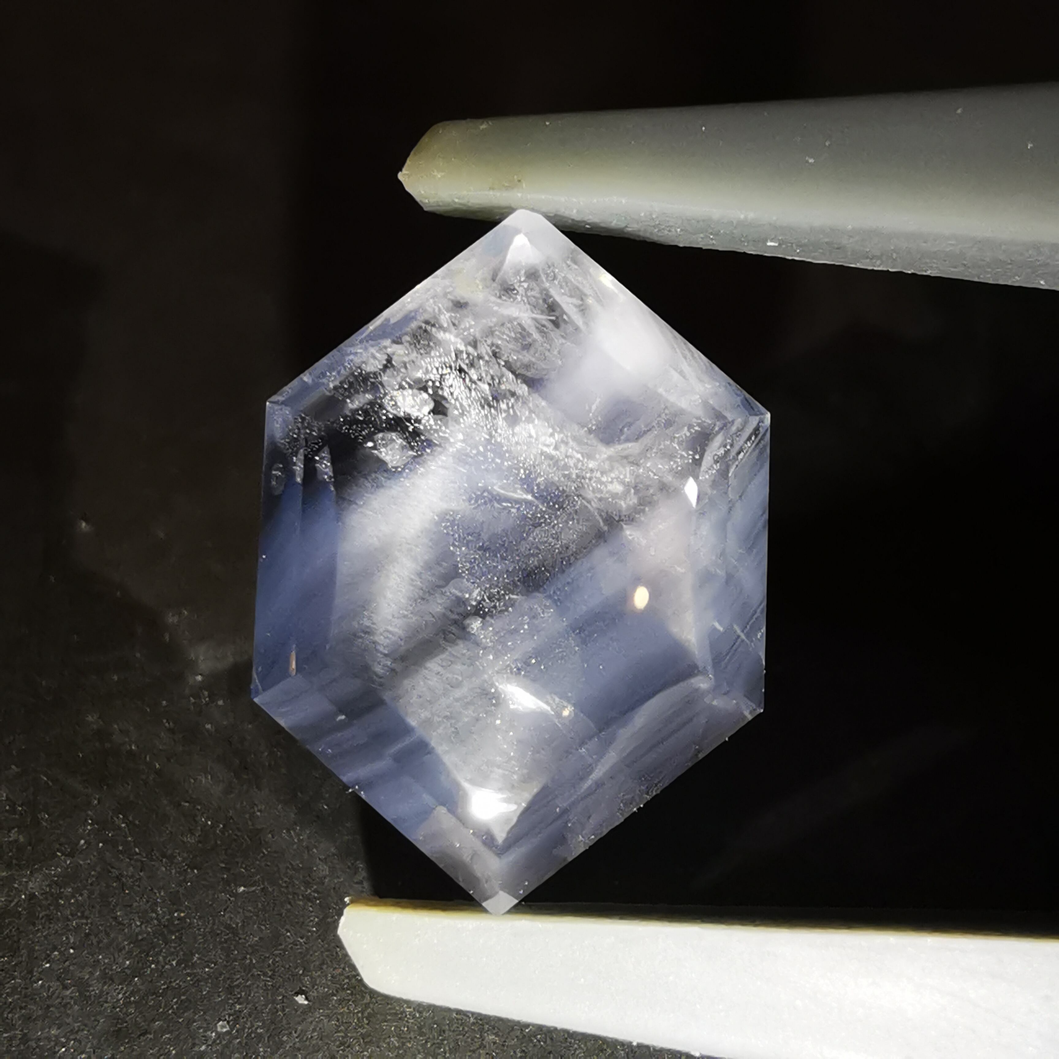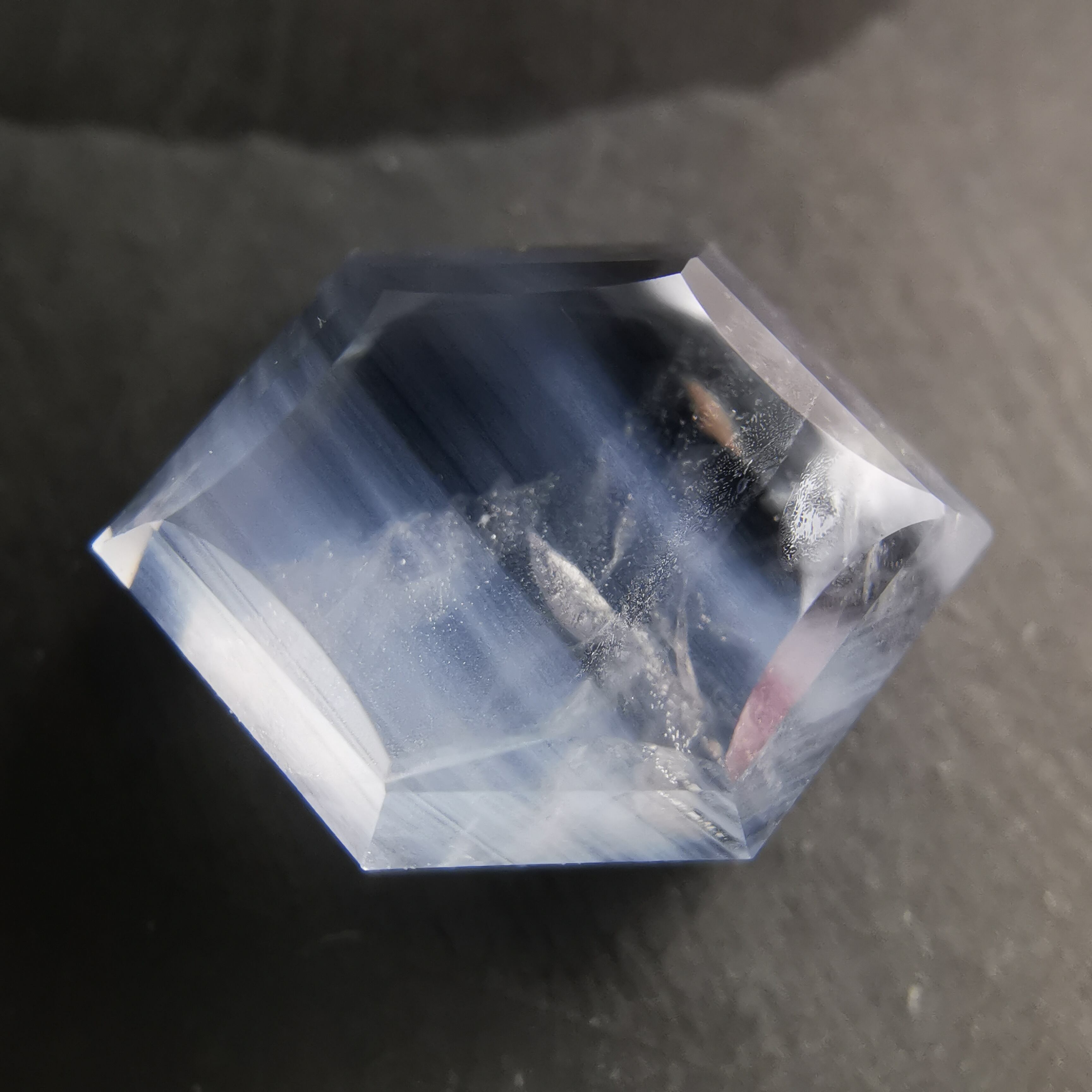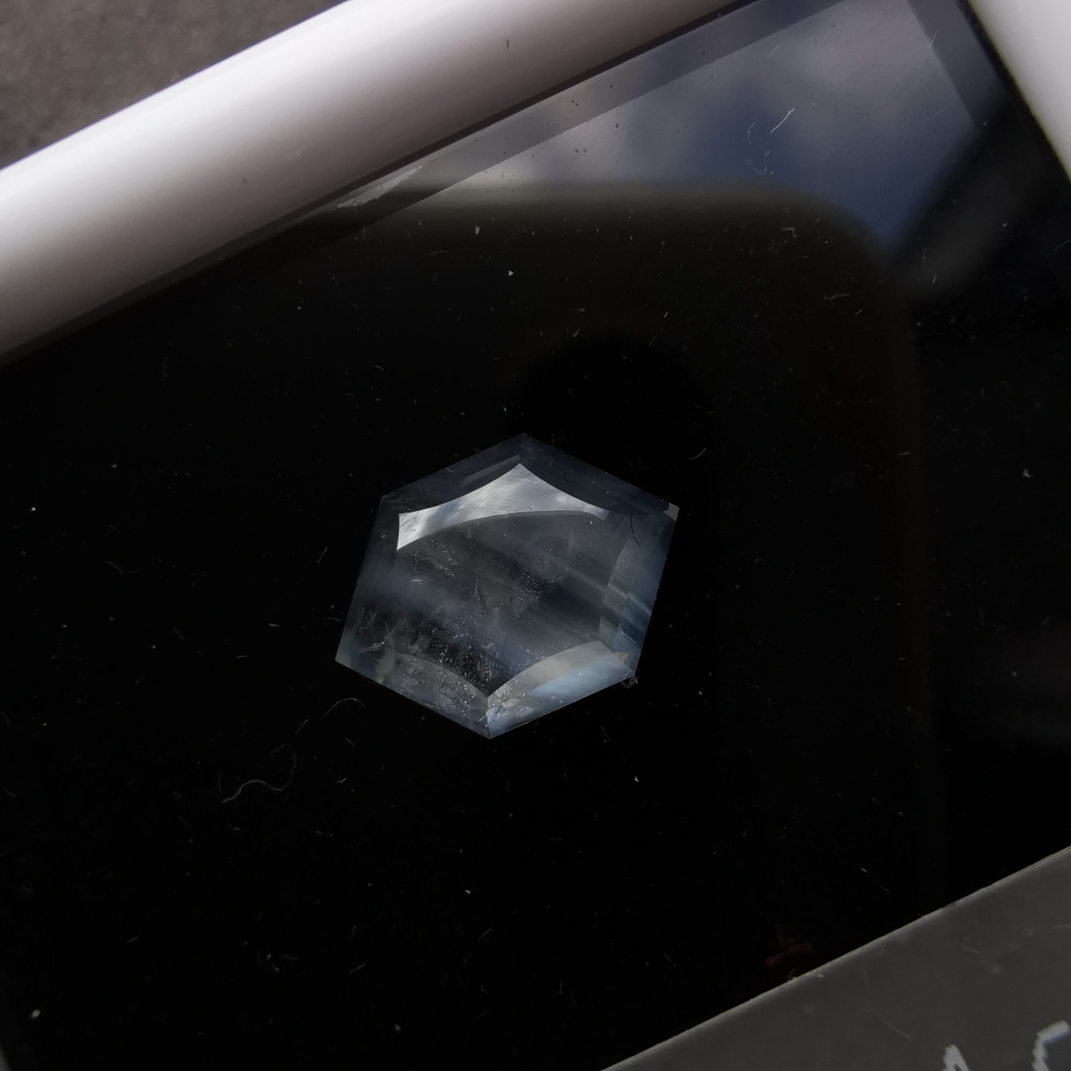 スターサファイアはほぼカボションカットしかありませんが、スターサファイアのスター効果を残したままカスタムカットできないか、試行錯誤の中で生まれたヘキサゴンスターサファイアです。