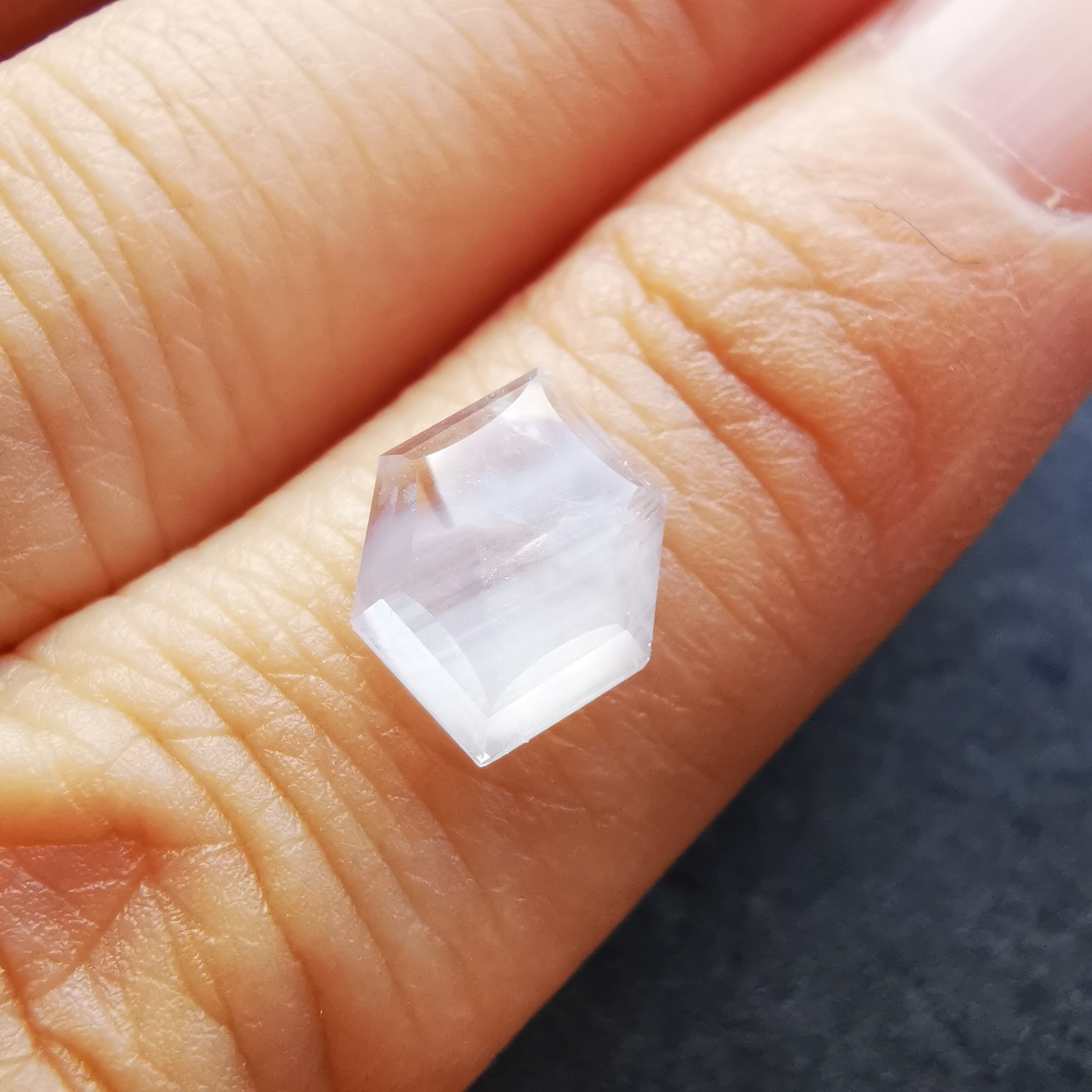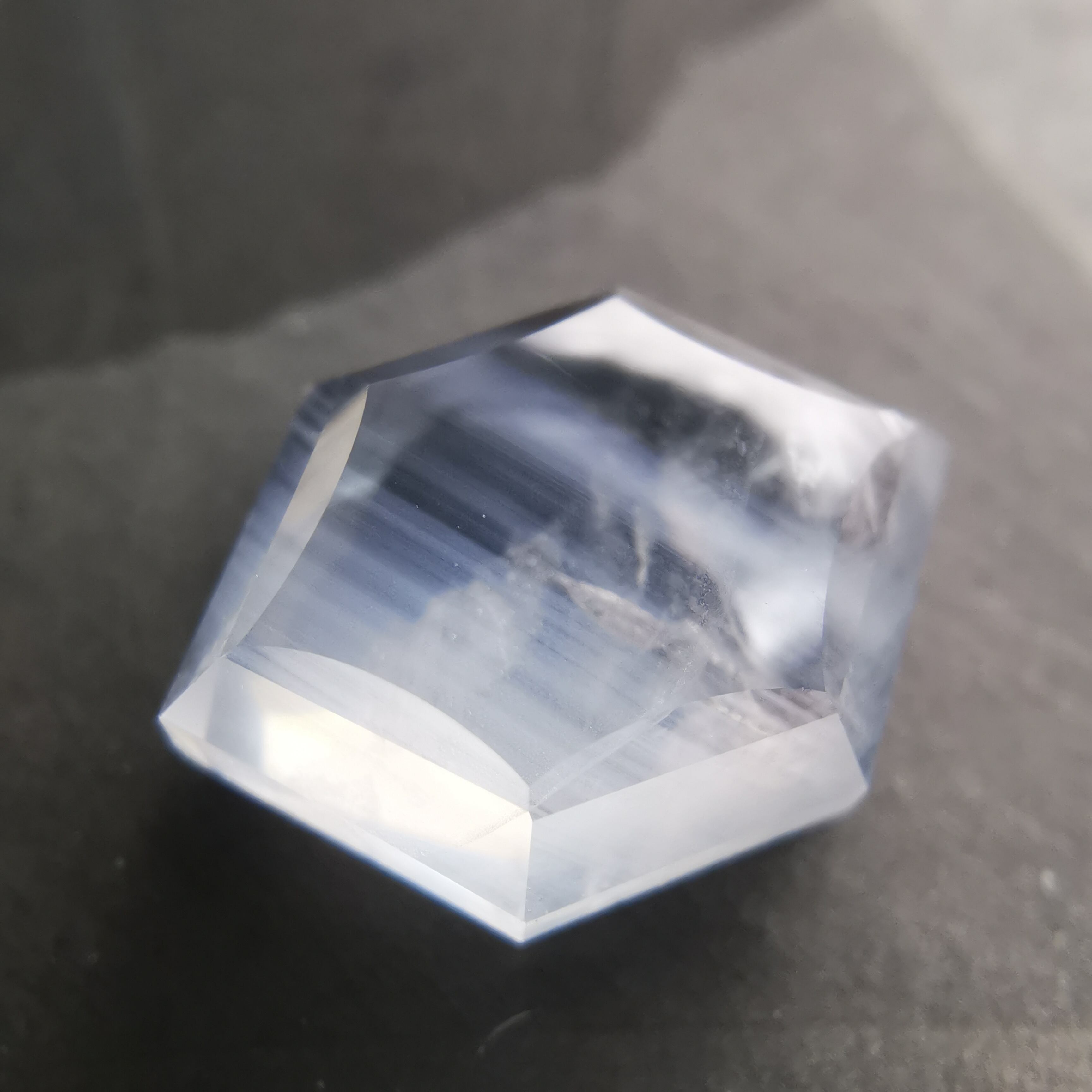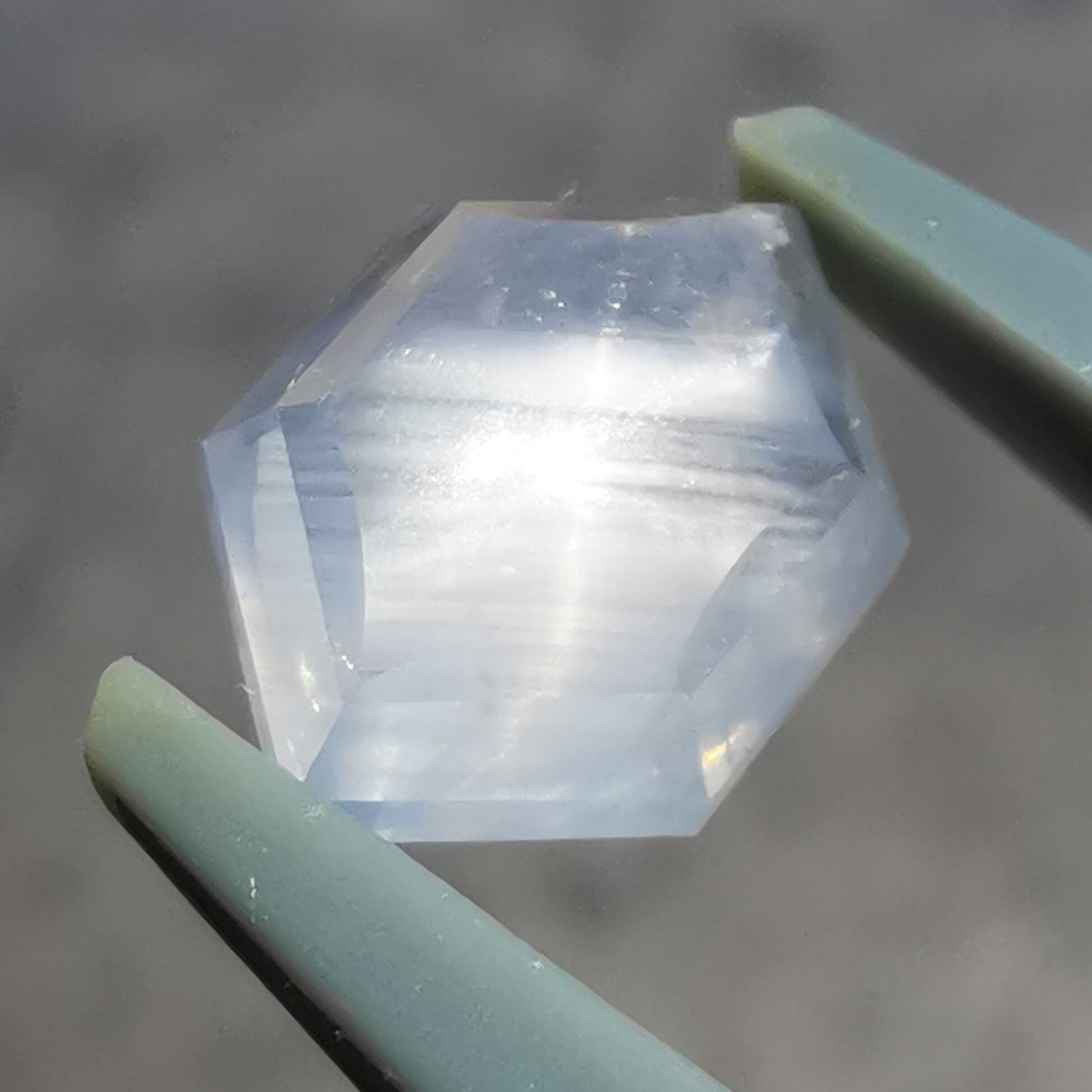 スターサファイアはほぼカボションカットしかありませんが、スターサファイアのスター効果を残したままカスタムカットできないか、試行錯誤の中で生まれたヘキサゴンスターサファイアです。