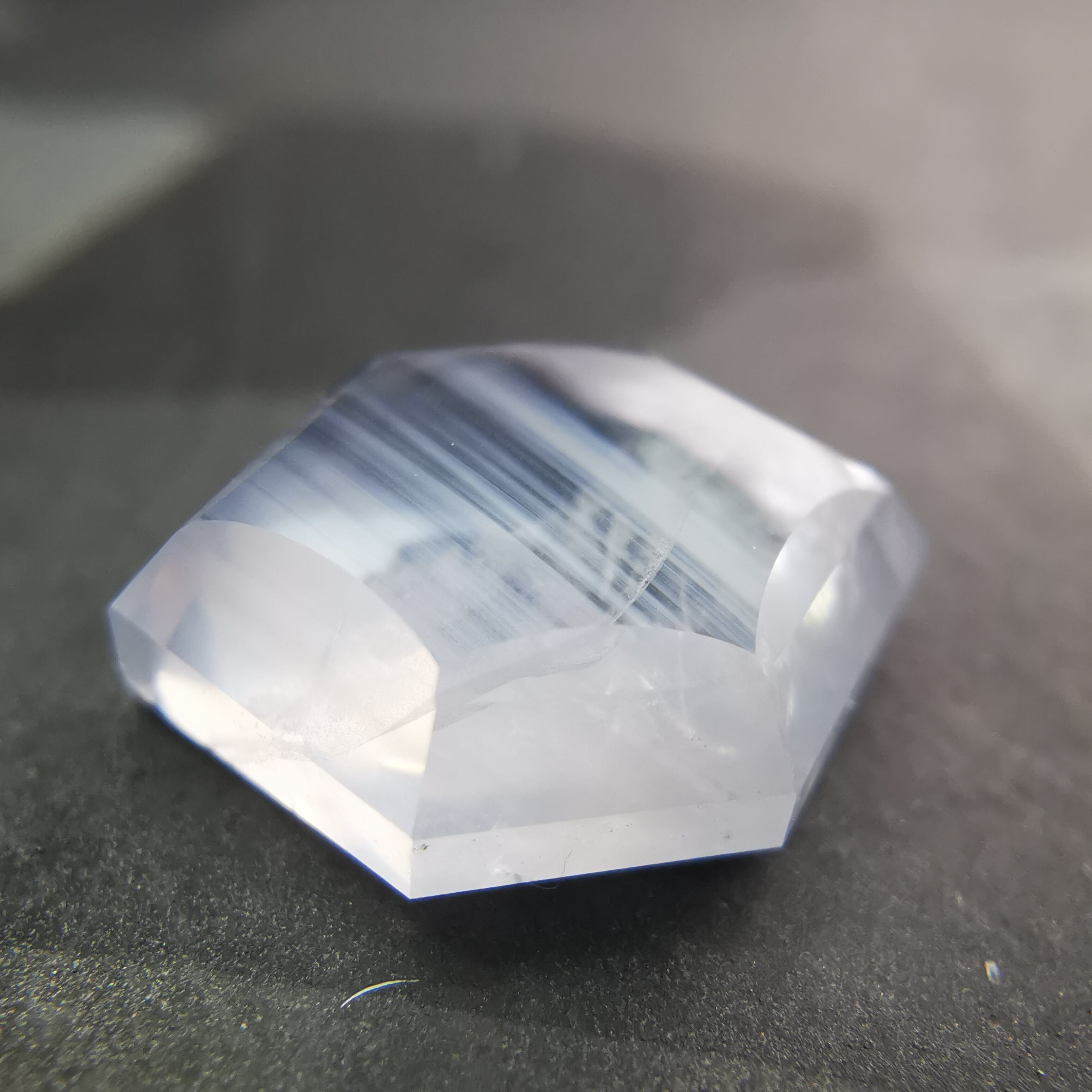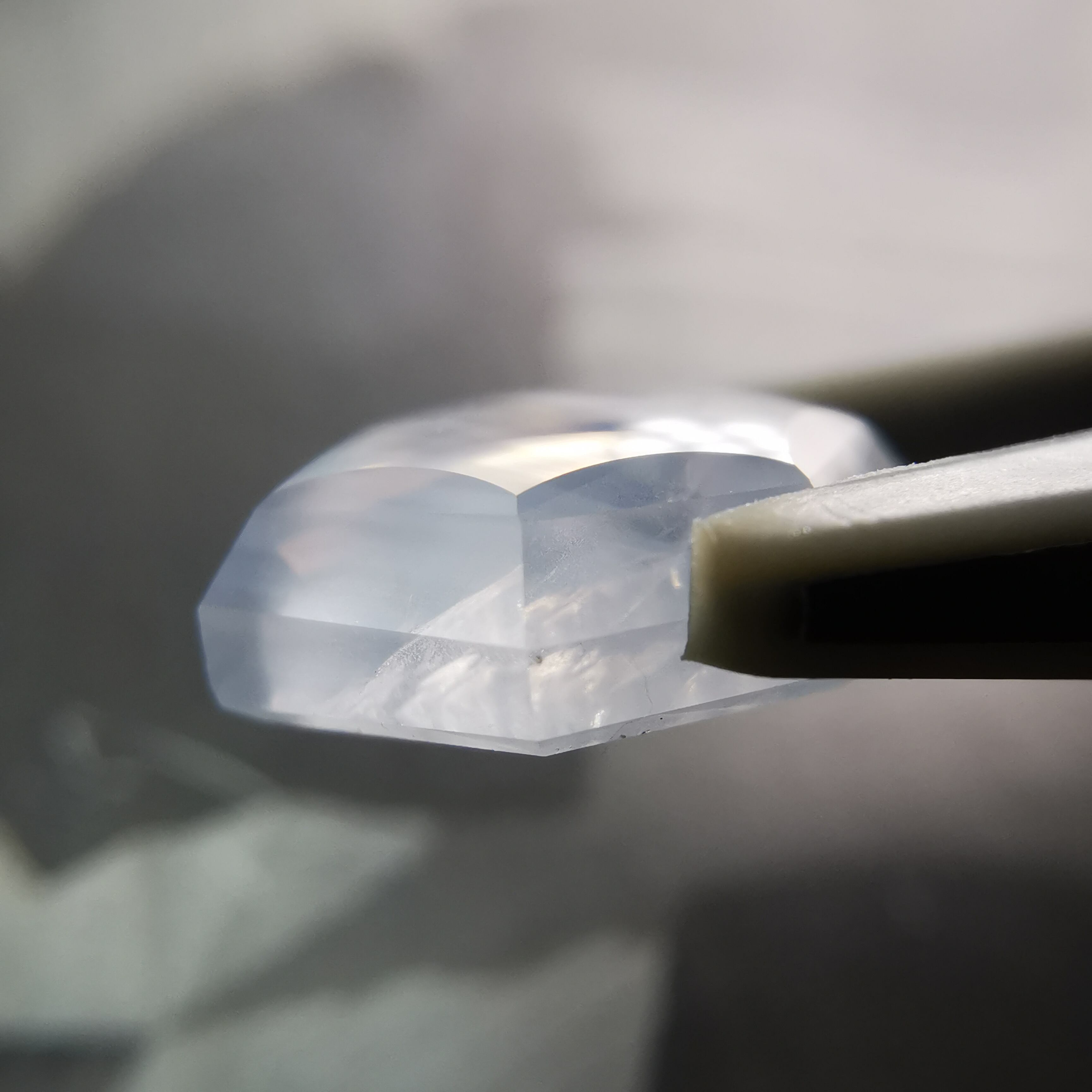 透明度が高い石に、シルバーホワイトのシルクインクルージョンが入っています。