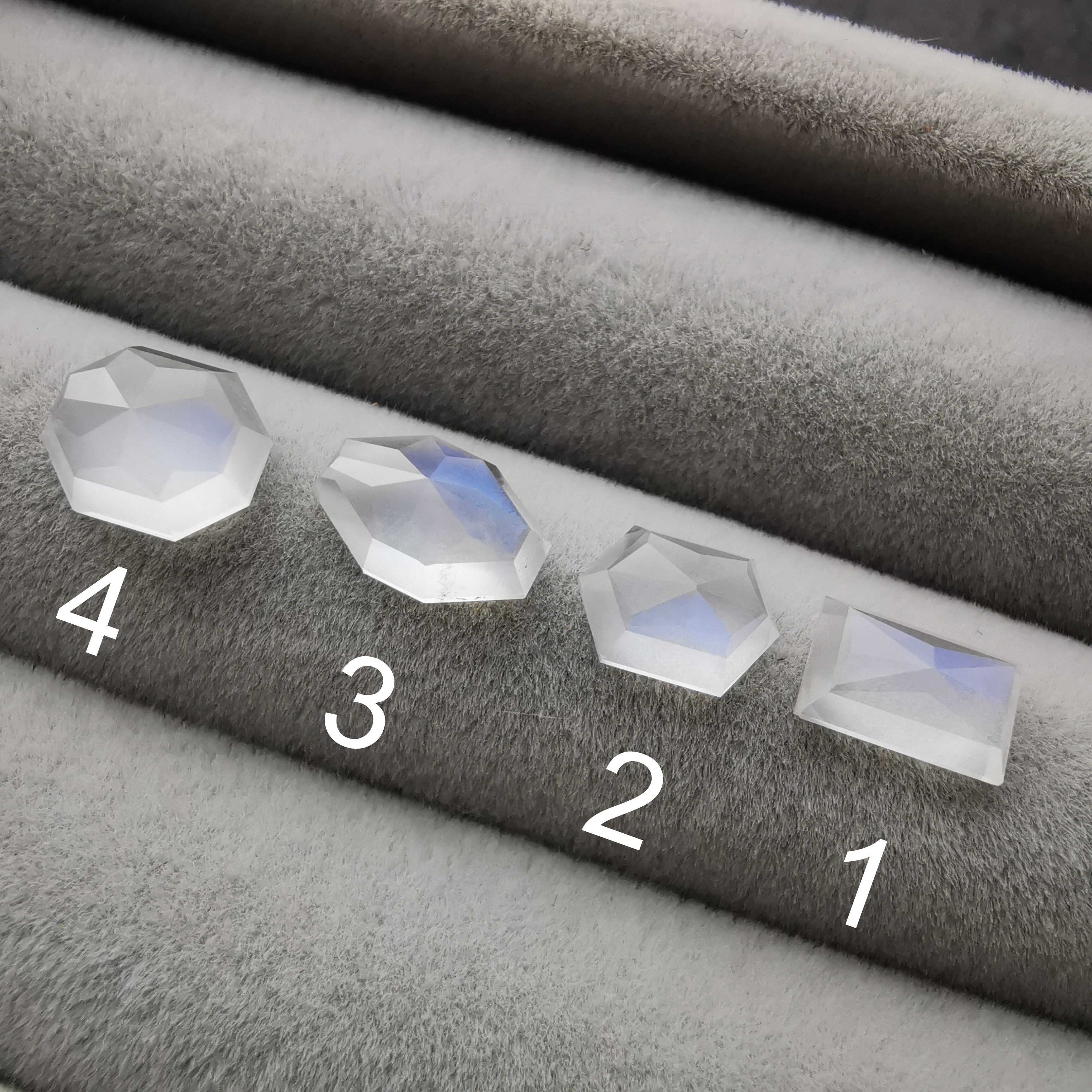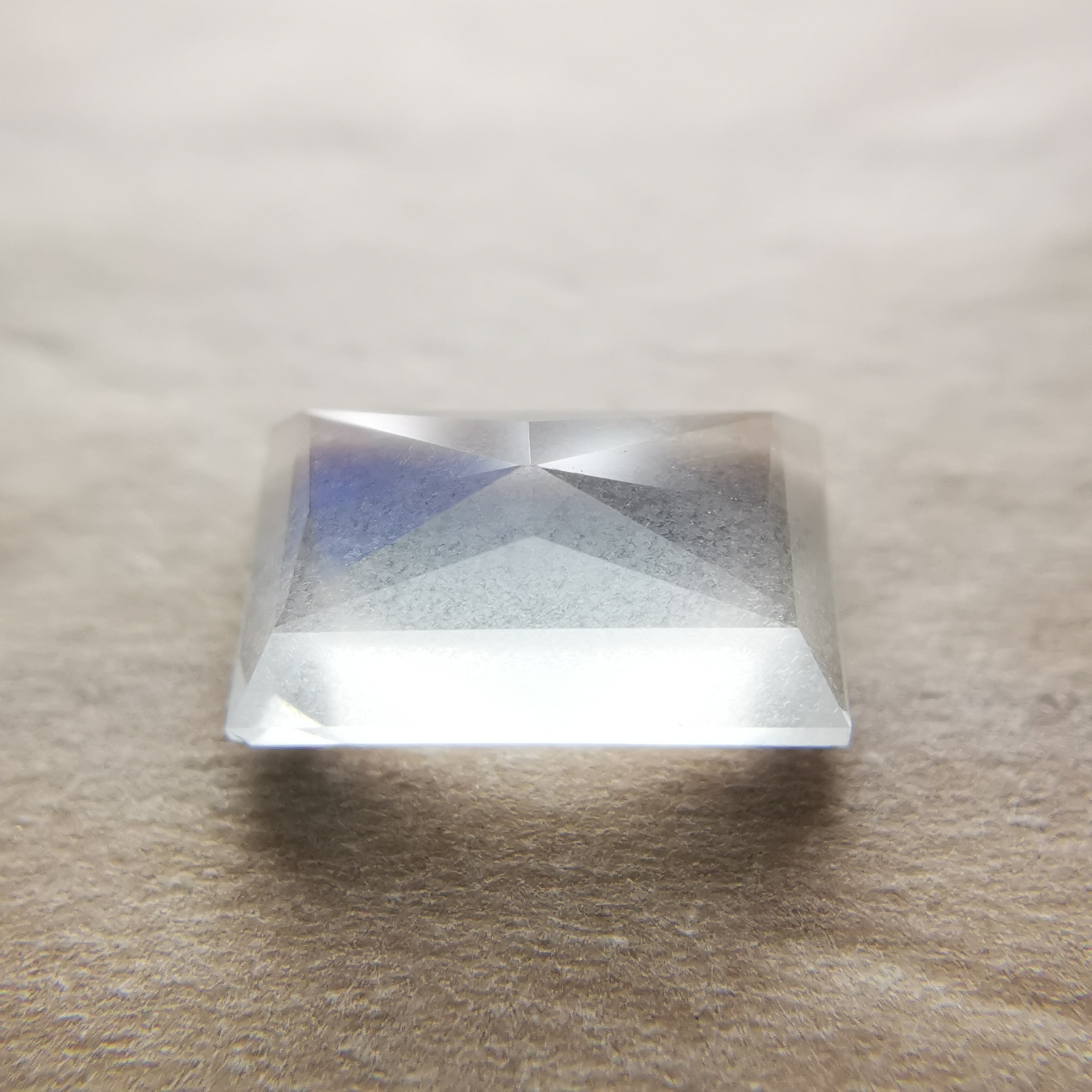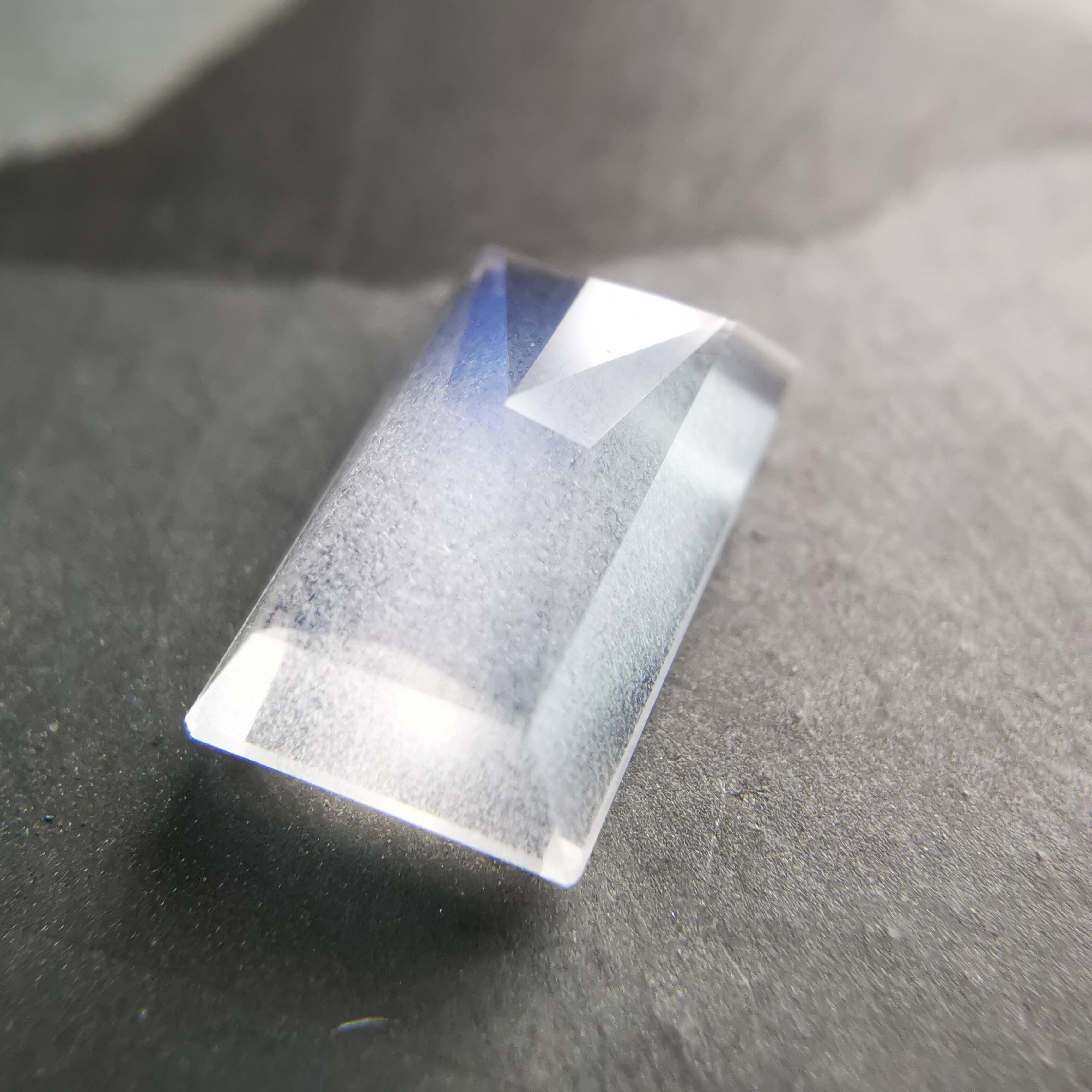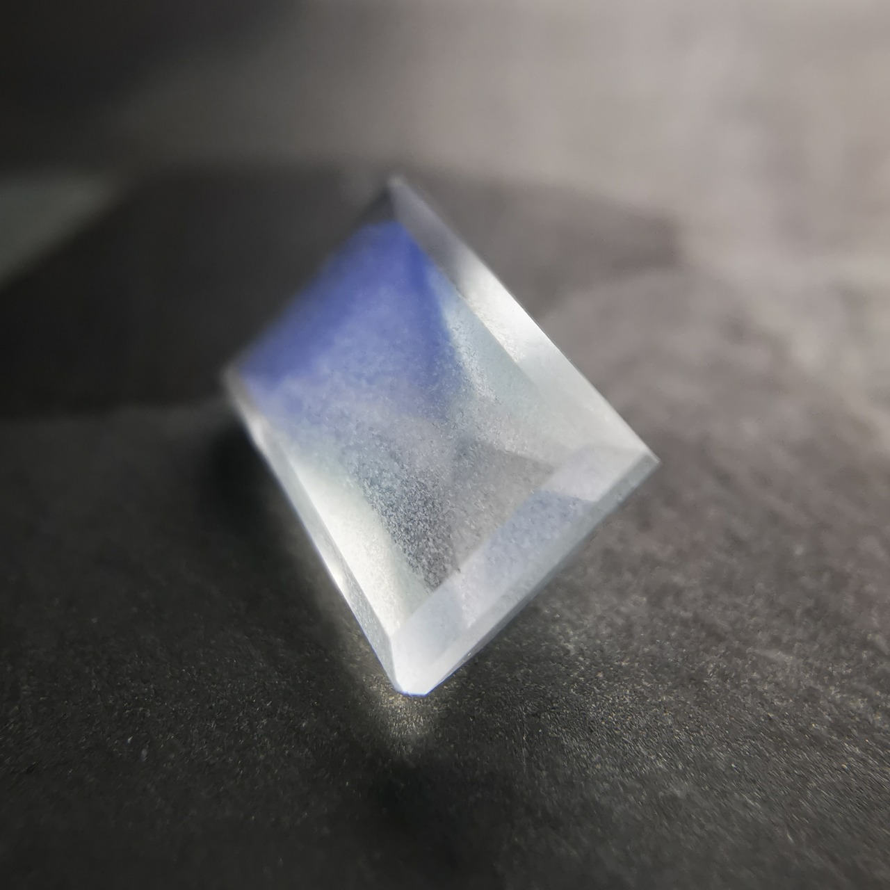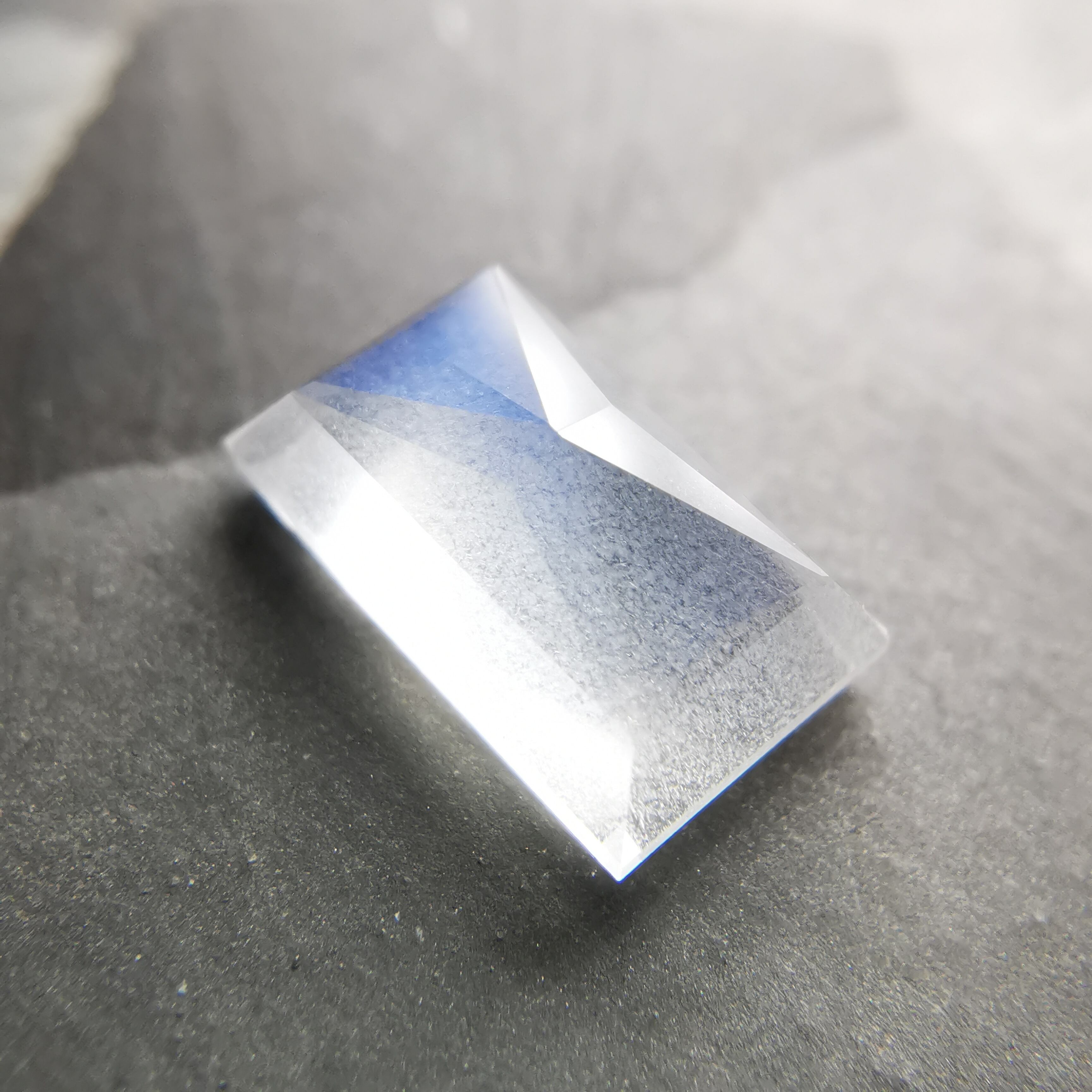 灰みの半透明の石の表面を、鮮やかなブルーが覆うムーンストーンです。
