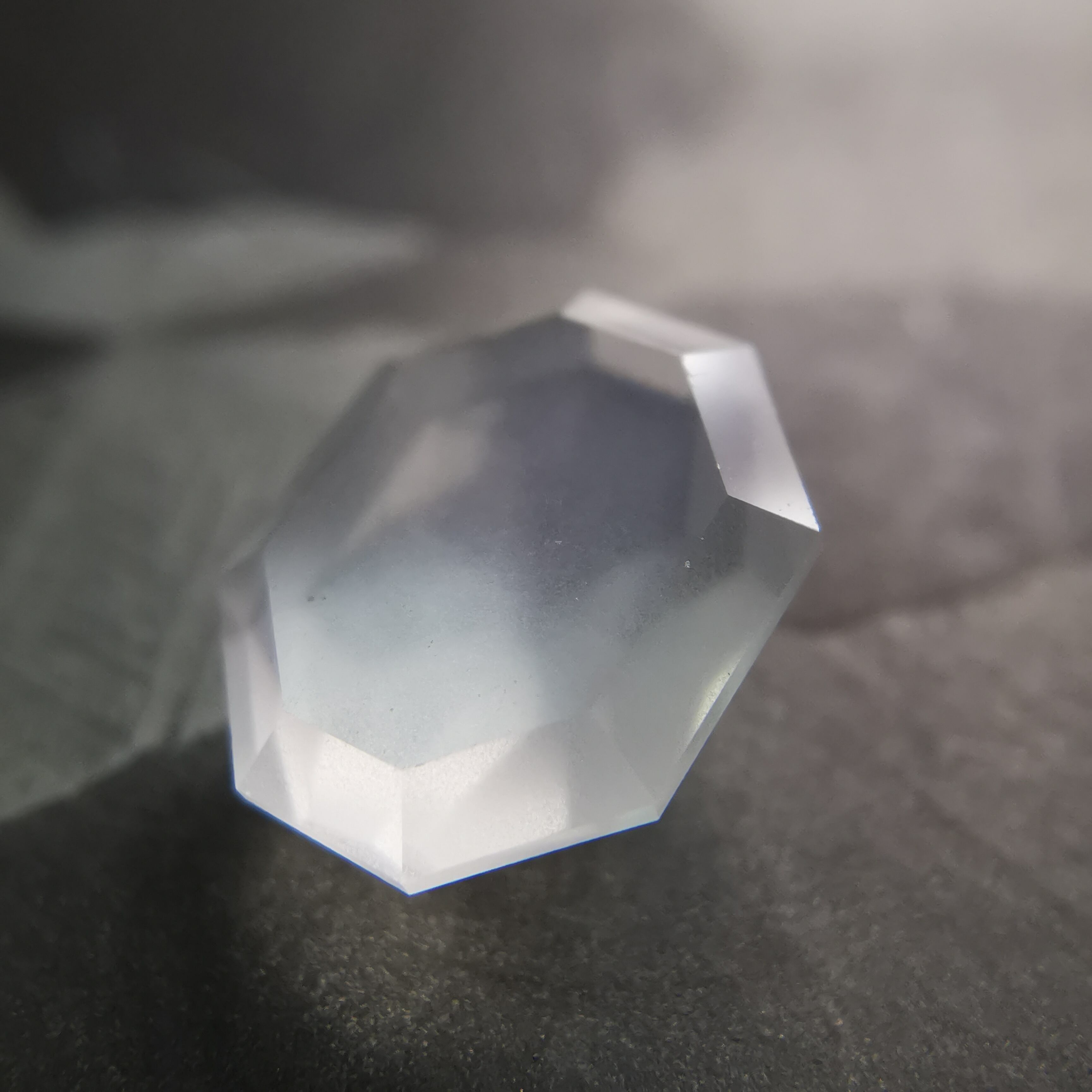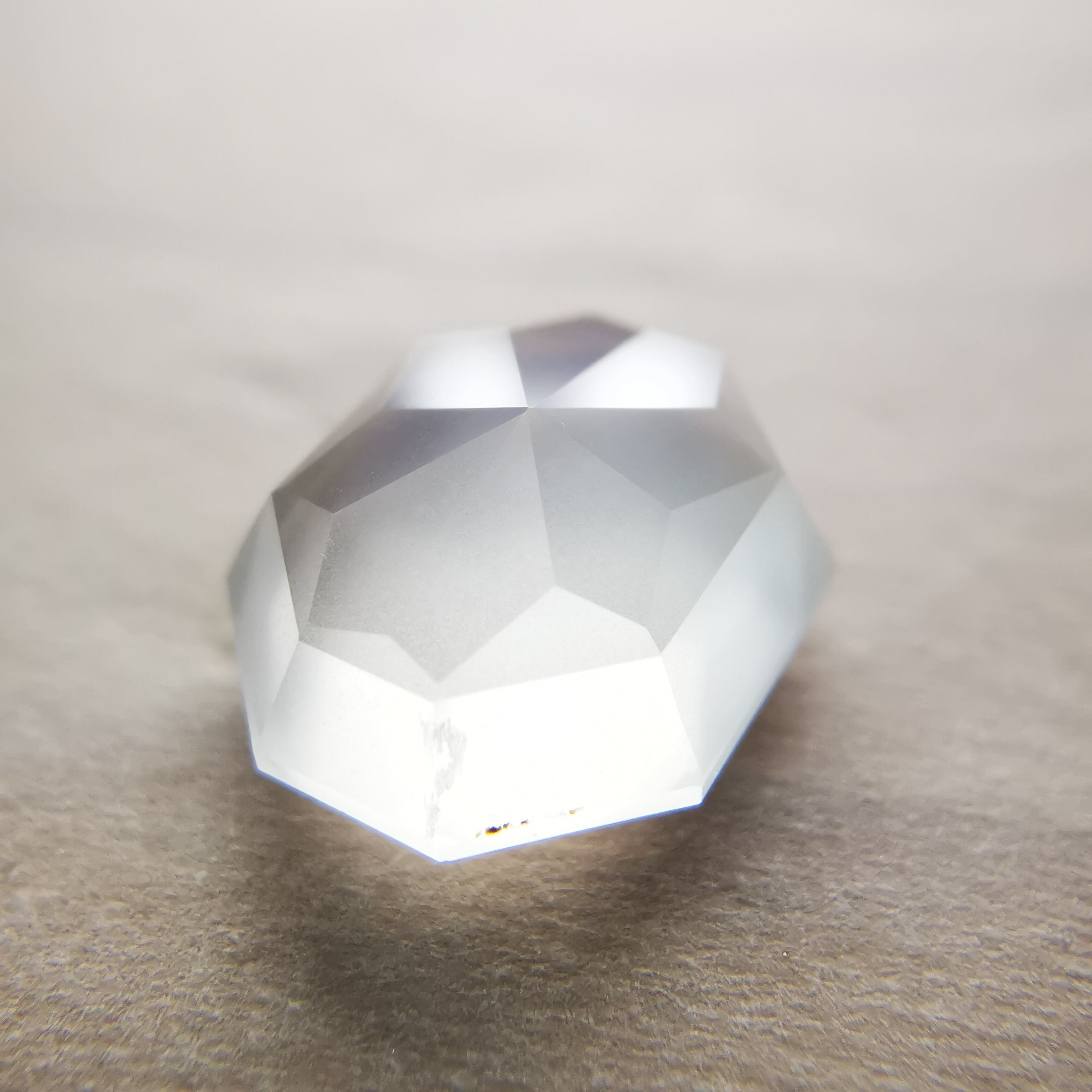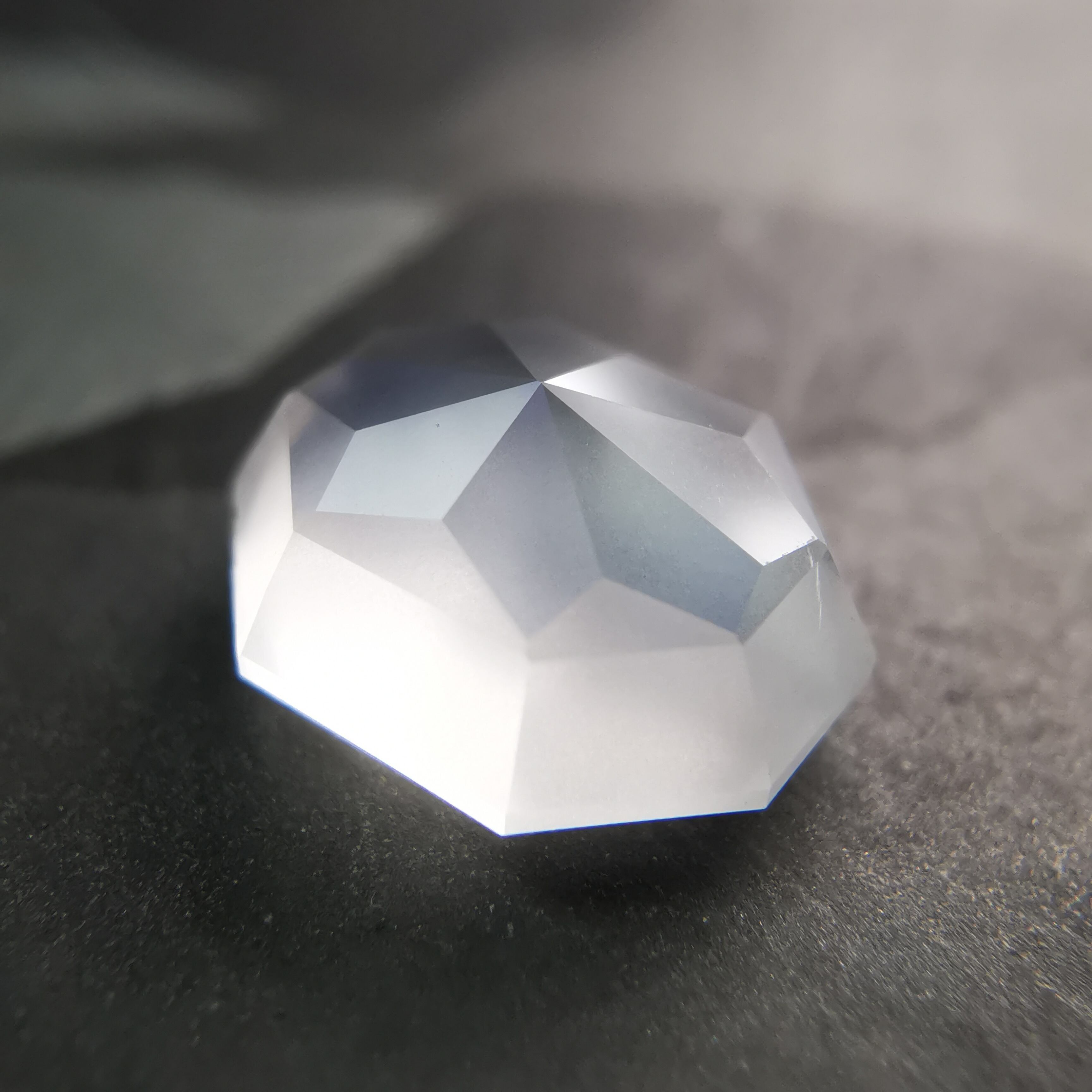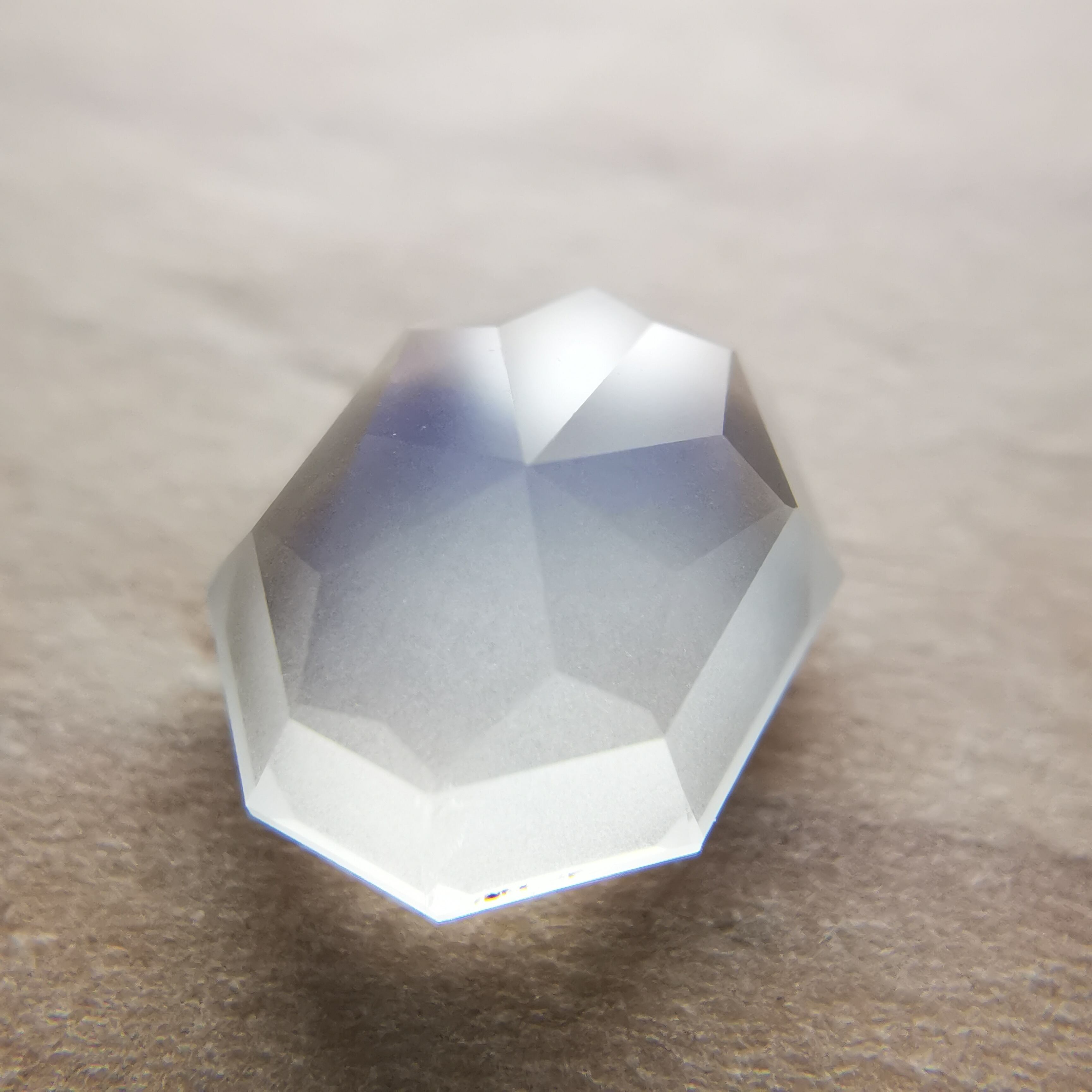 灰みの半透明の石の表面を、鮮やかなブルーが覆うムーンストーンです。