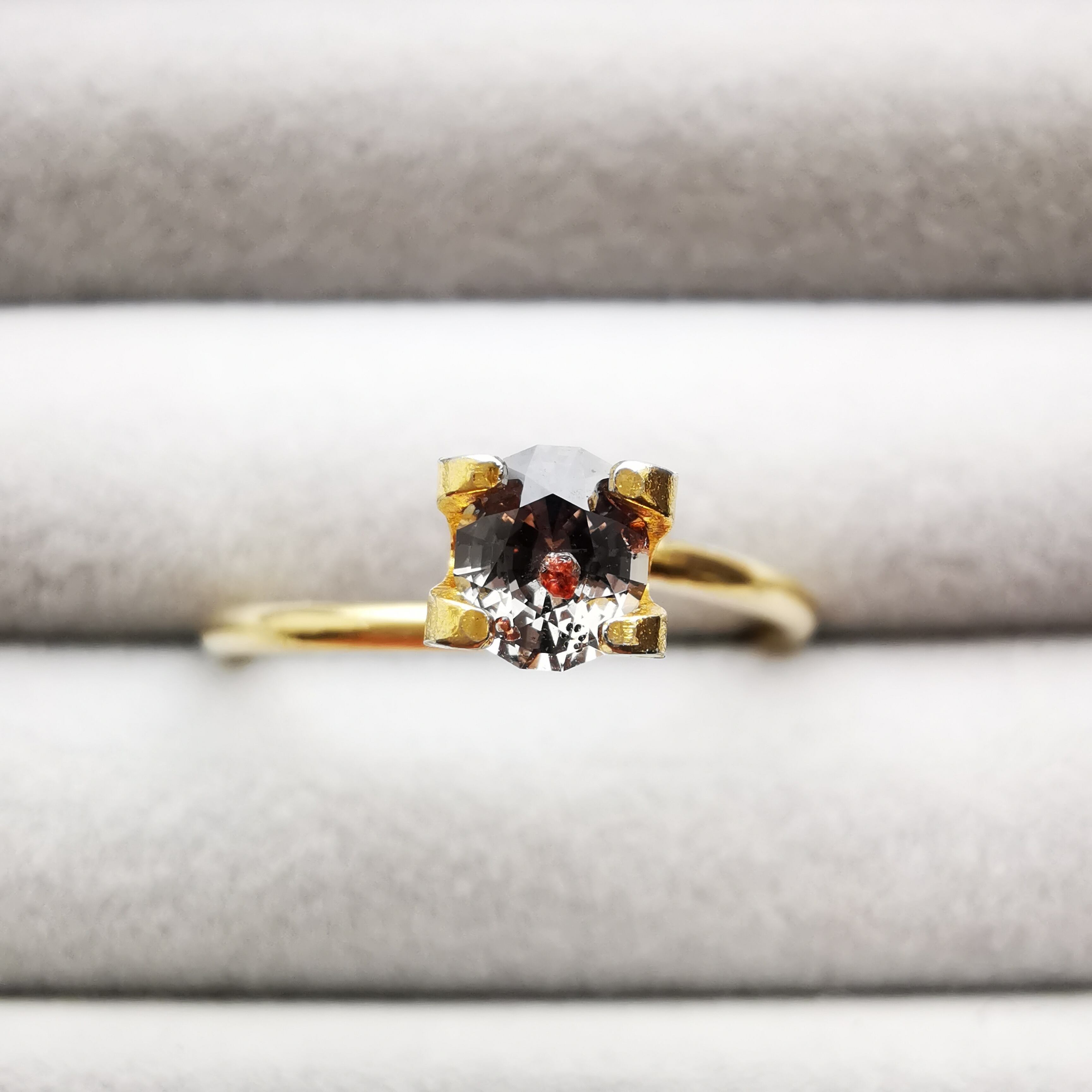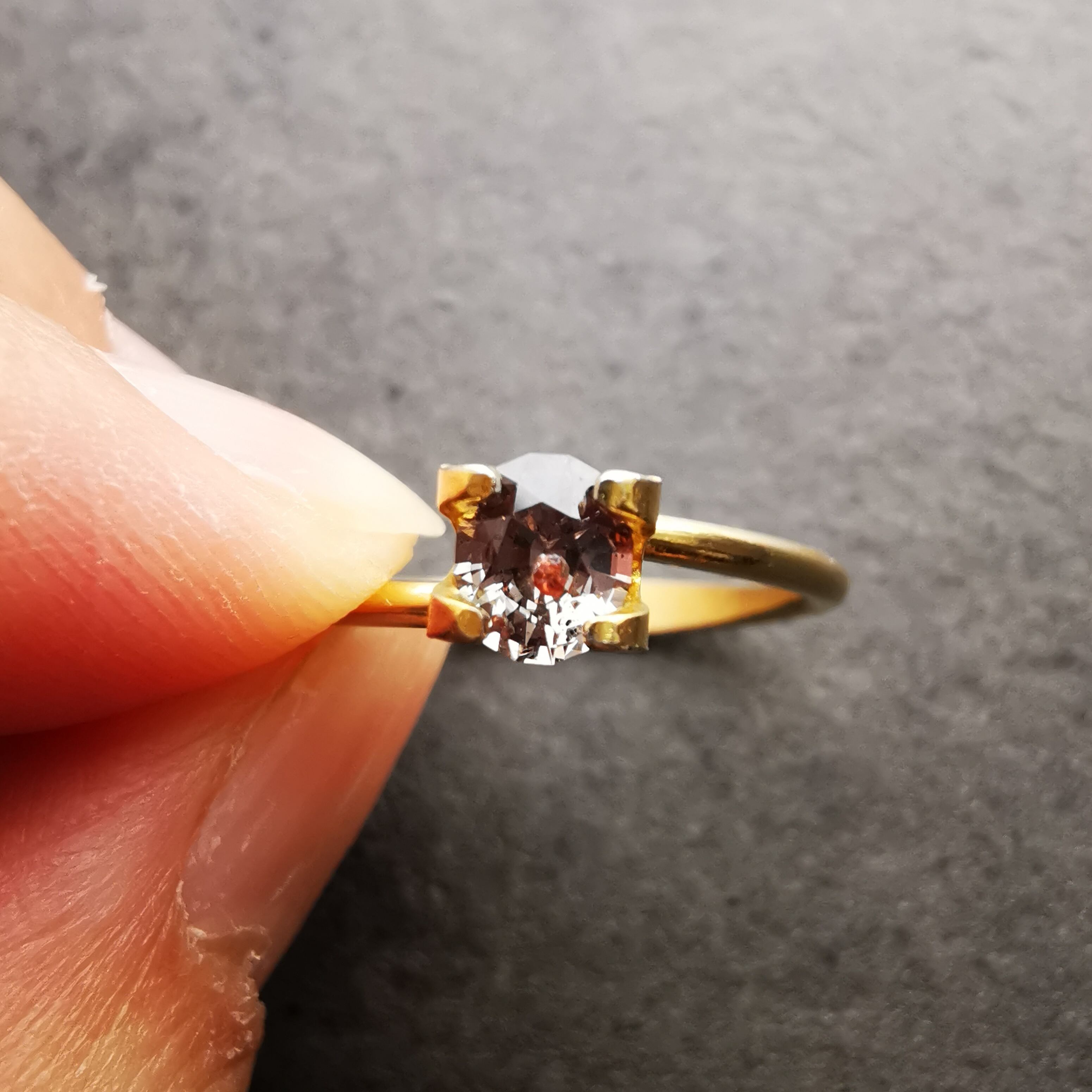 指乗せでも、肉眼でしっかりと内包された赤いガーネットを見ることが出来ます。