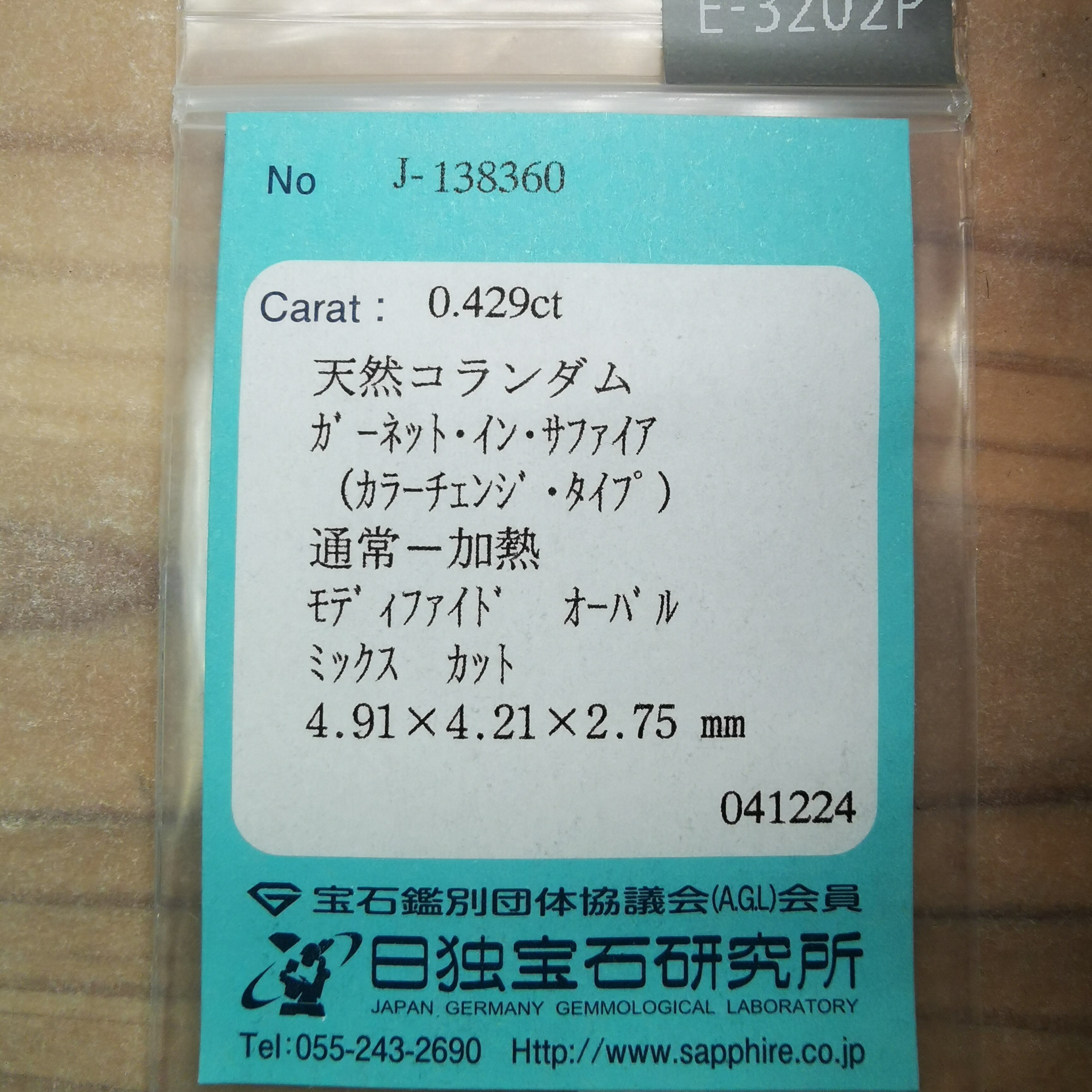 ガーネットインカラーチェンジサファイア 0.429ct / E-3202P