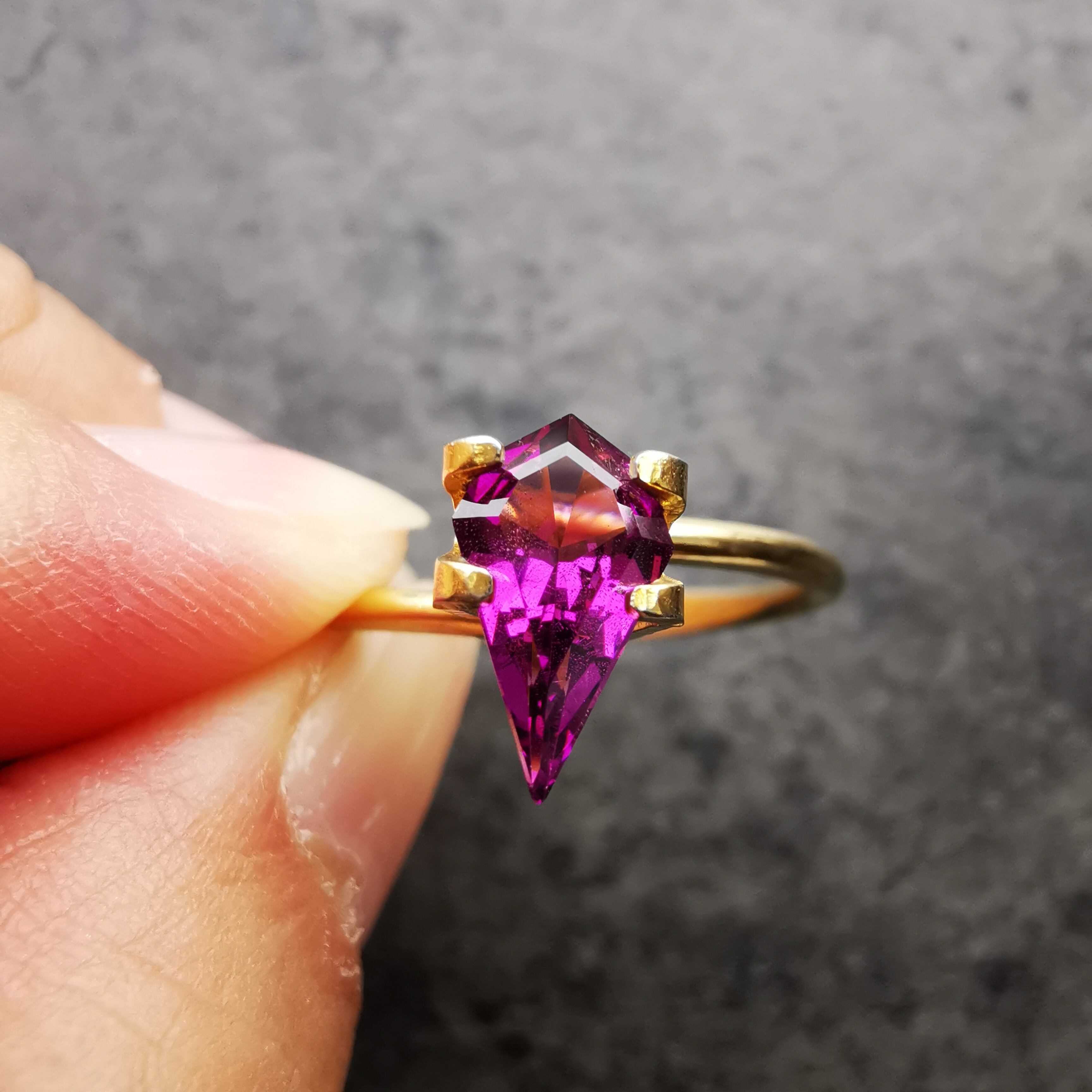 リカットの場合は、石目を保つためどうしても元の石の形から大きく変えられませんが、原石からのカットなら、結晶の形を活かした大胆なデザインのカットが可能です。