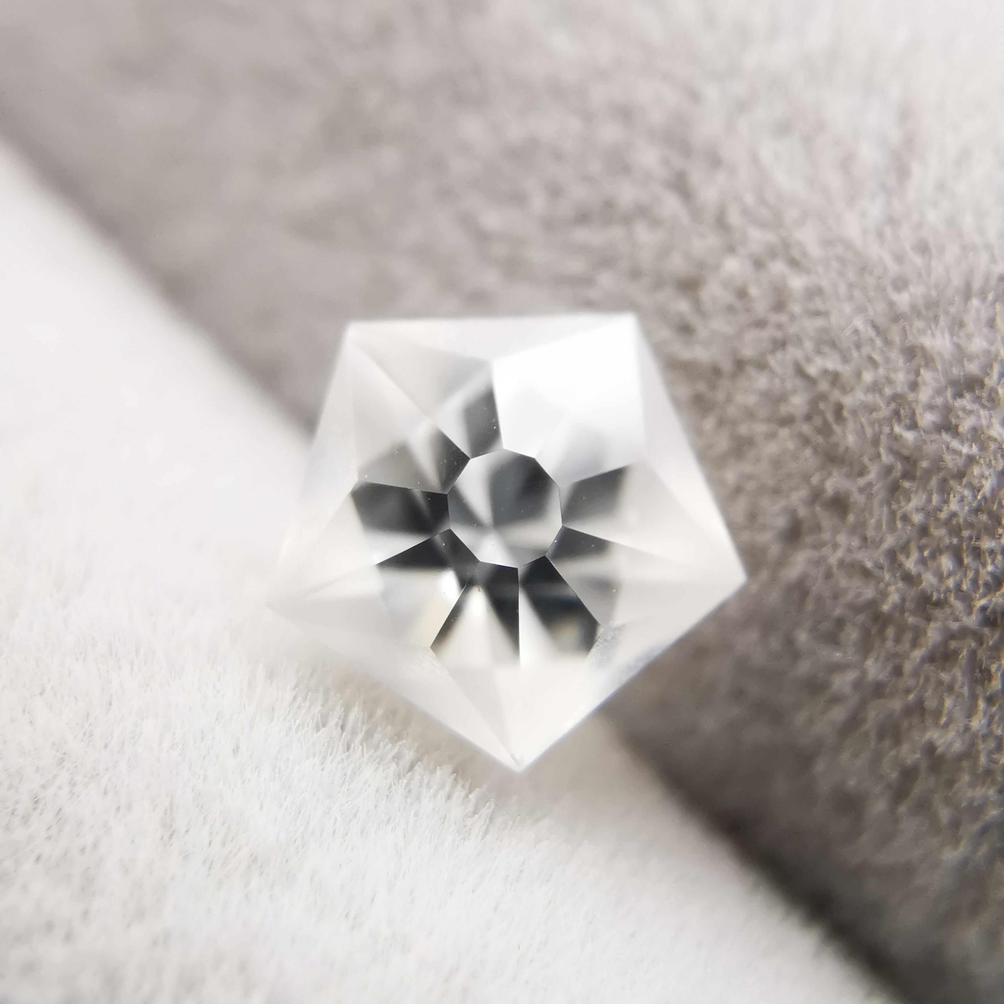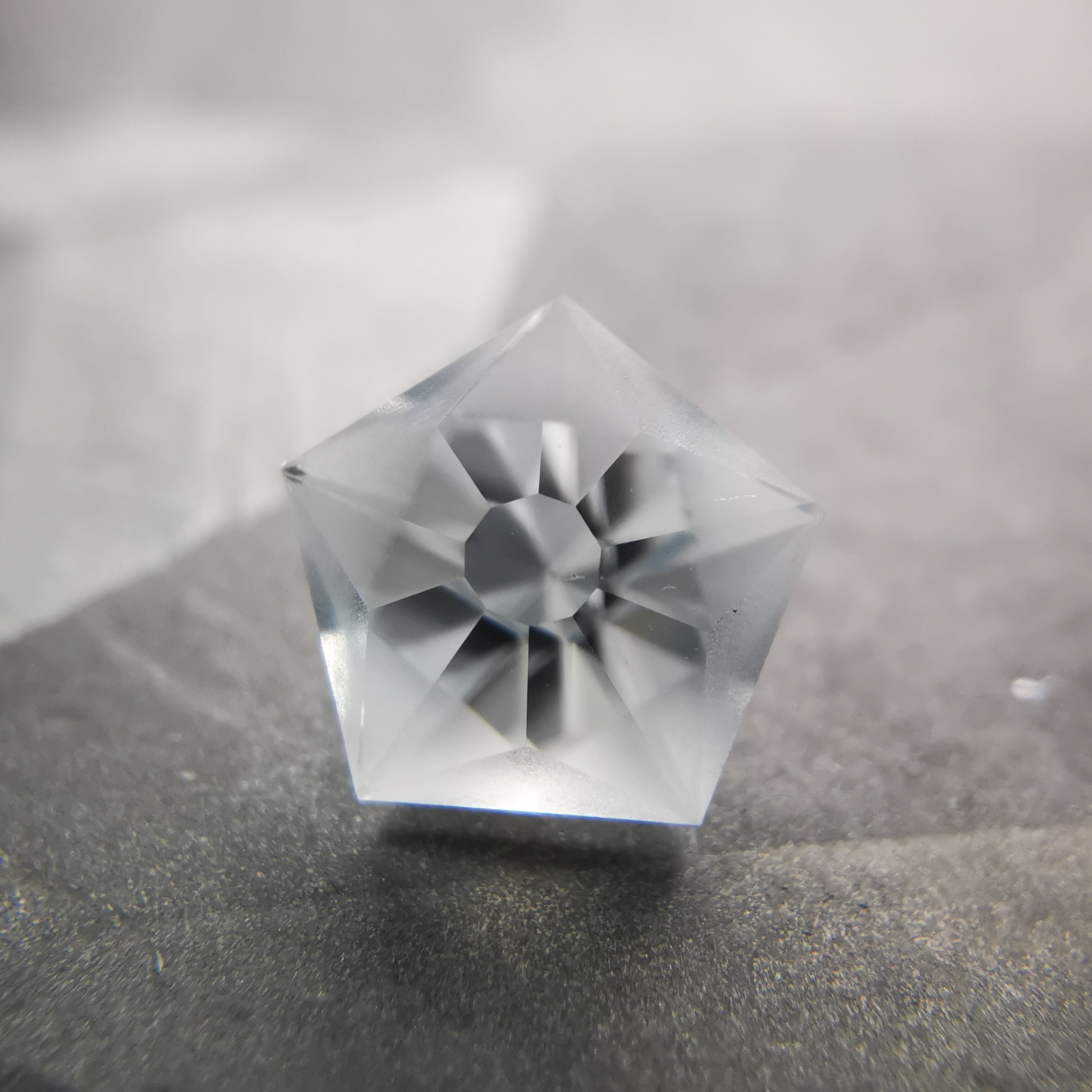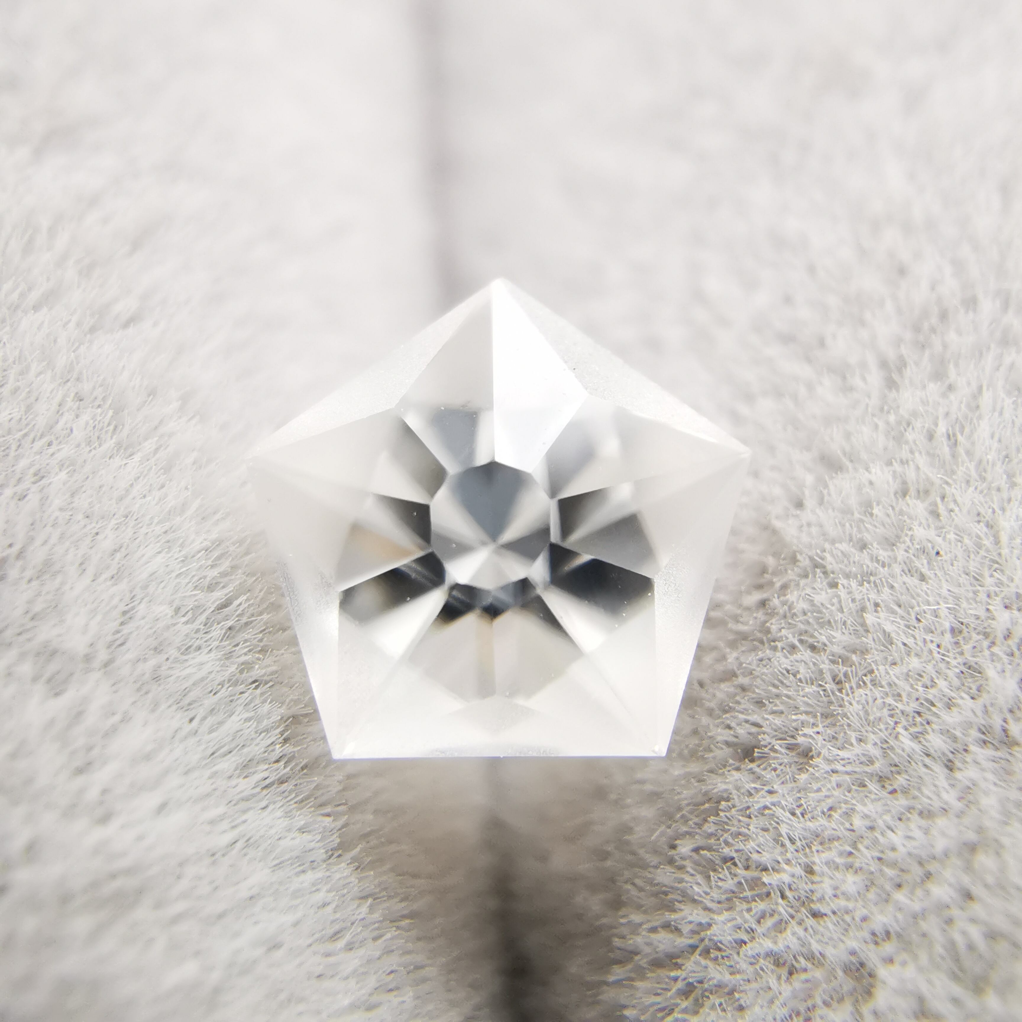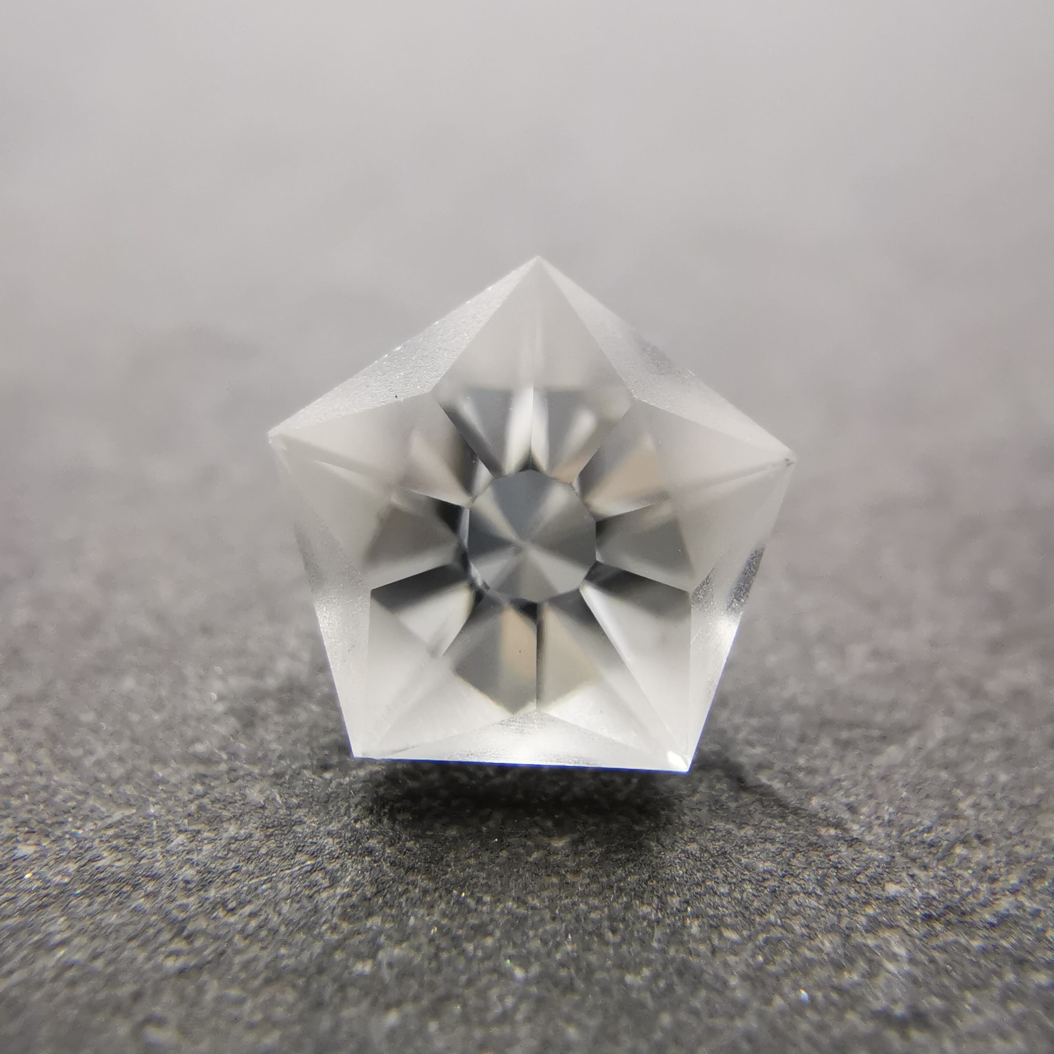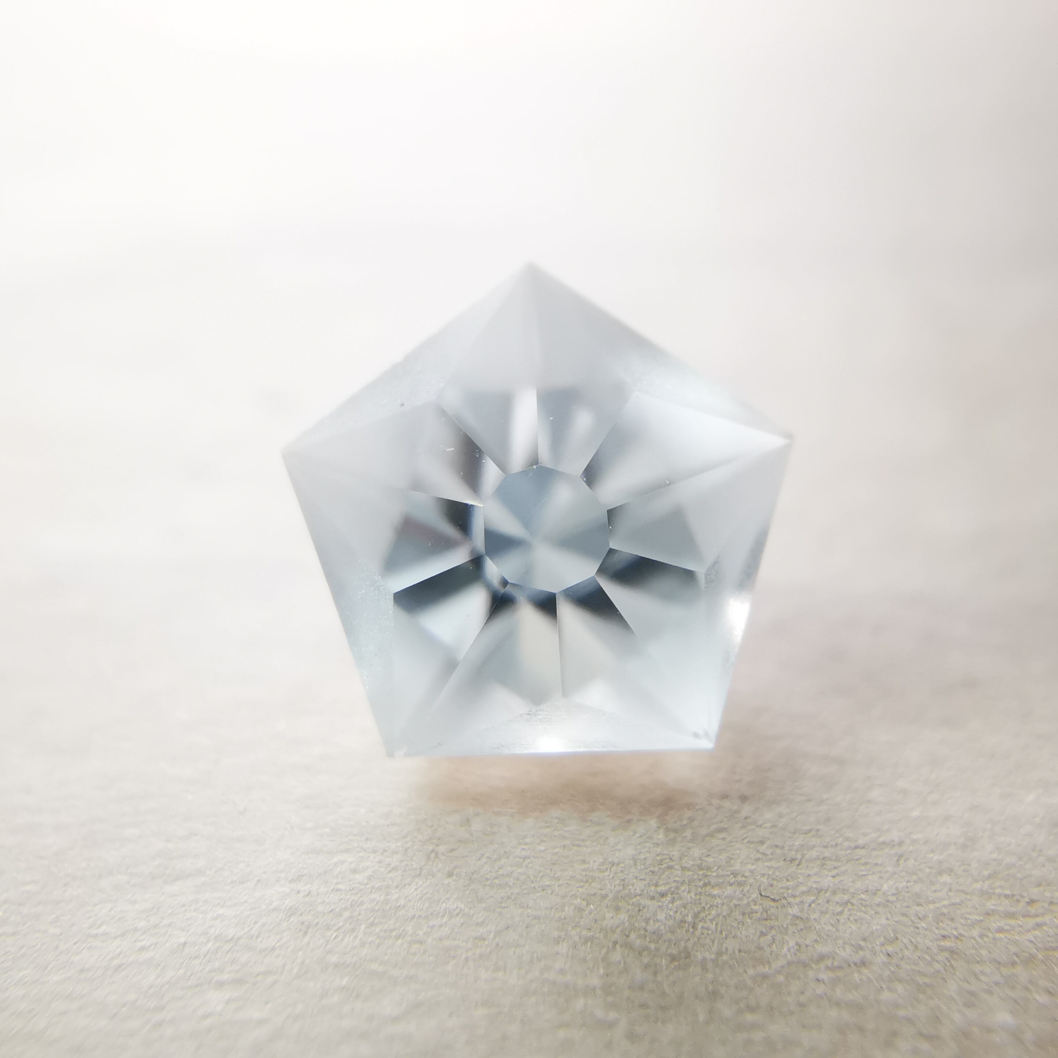 磨きの使い分けにより、五角形が重なり合うような模様を浮かび上がらせます。