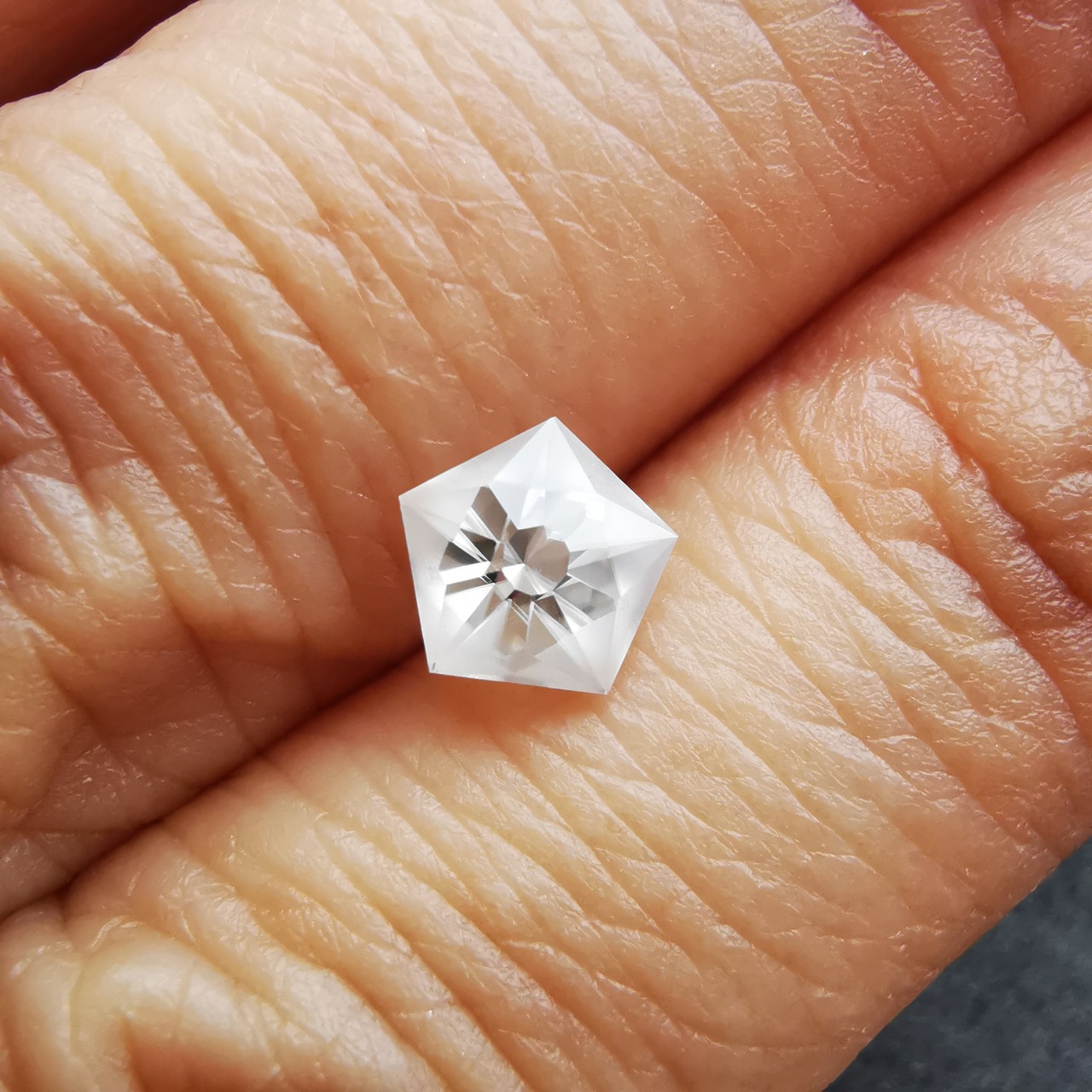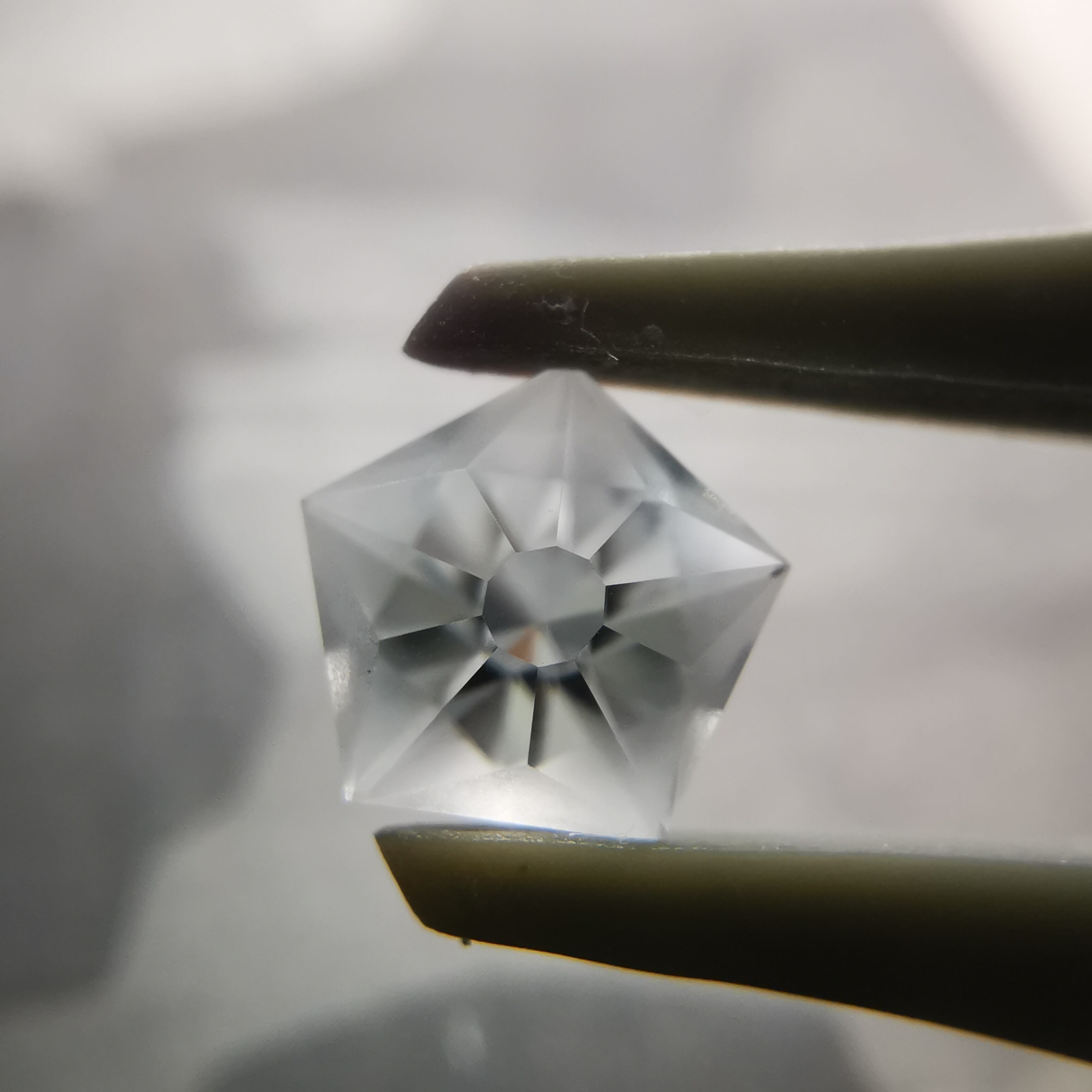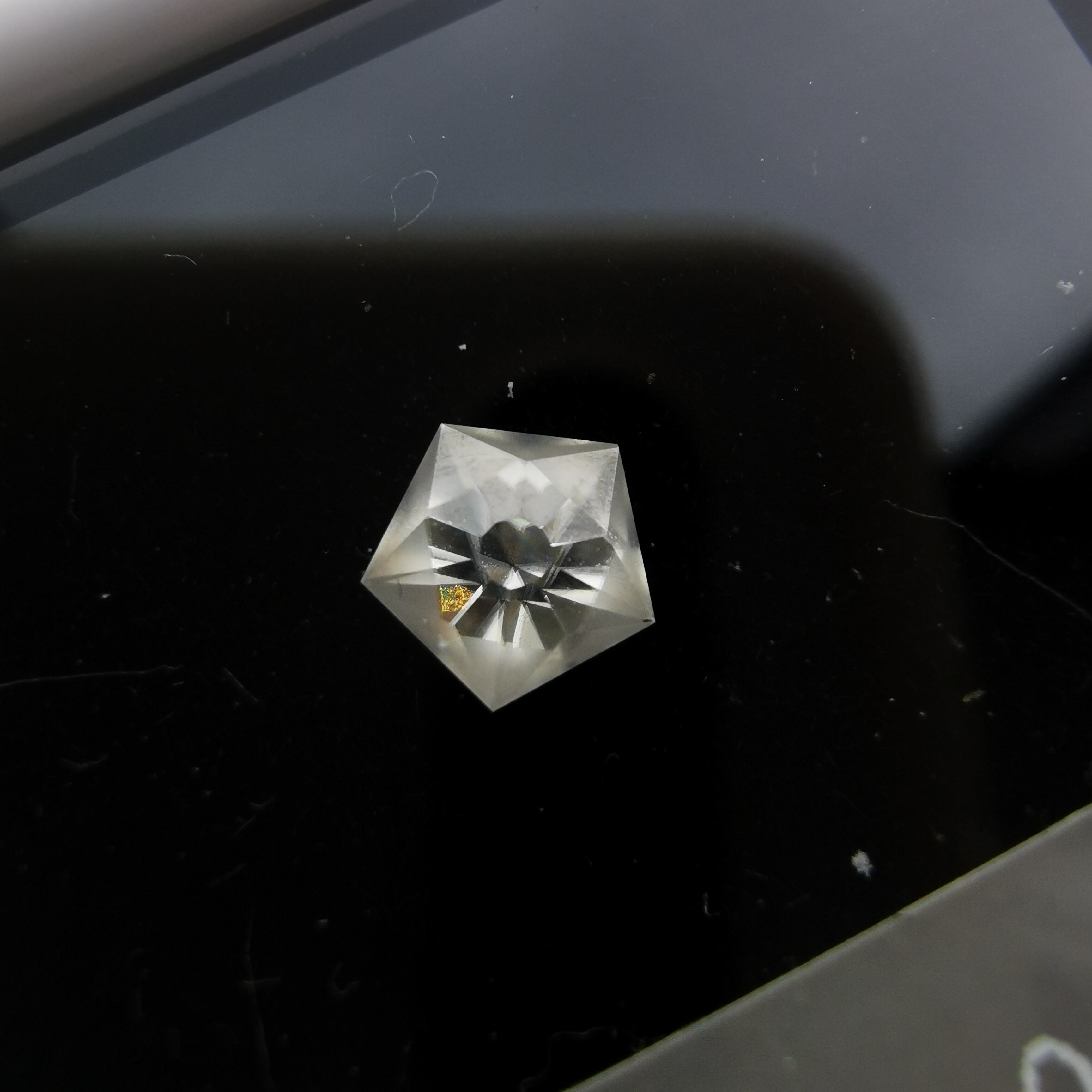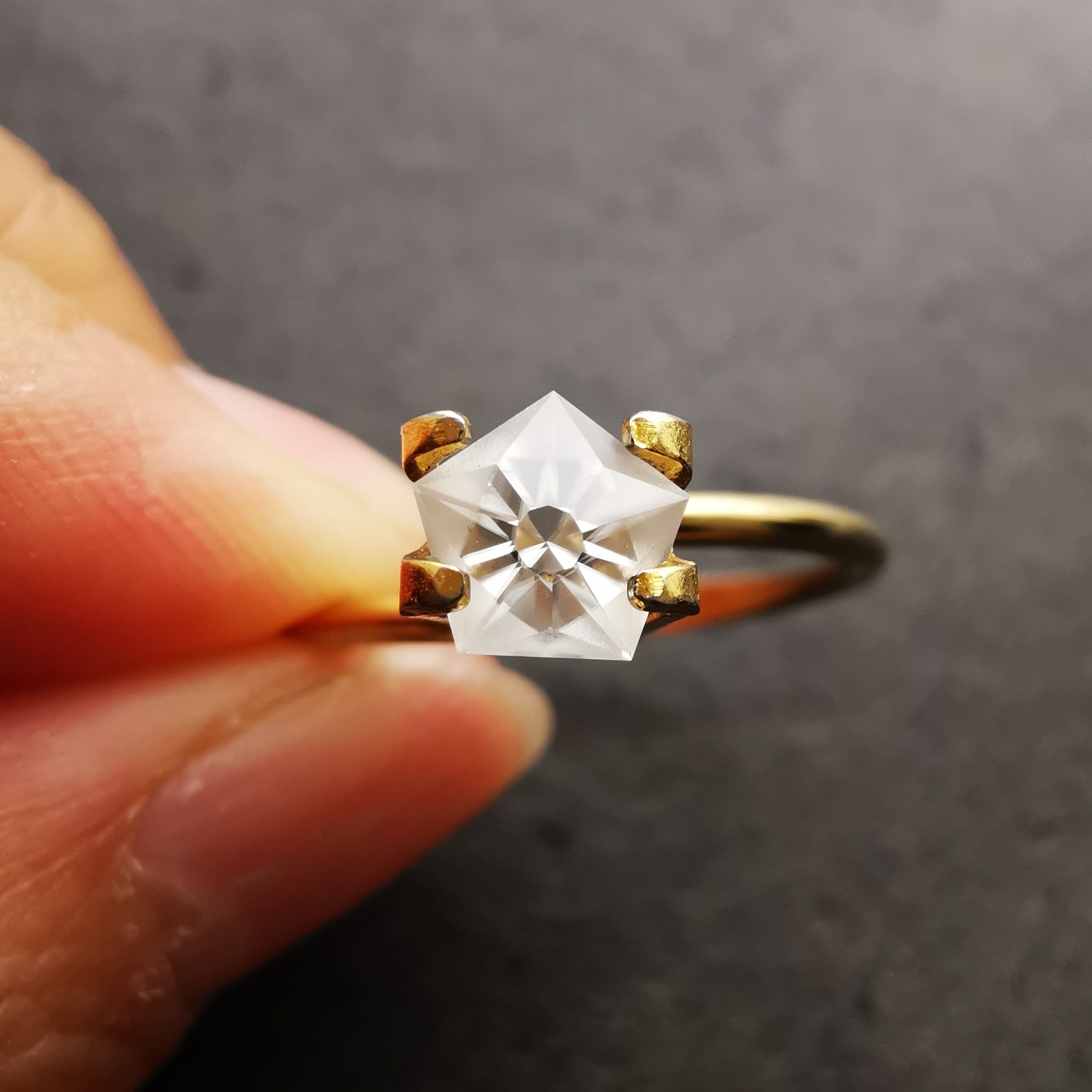 磨きの使い分けにより、五角形が重なり合うような模様を浮かび上がらせます。