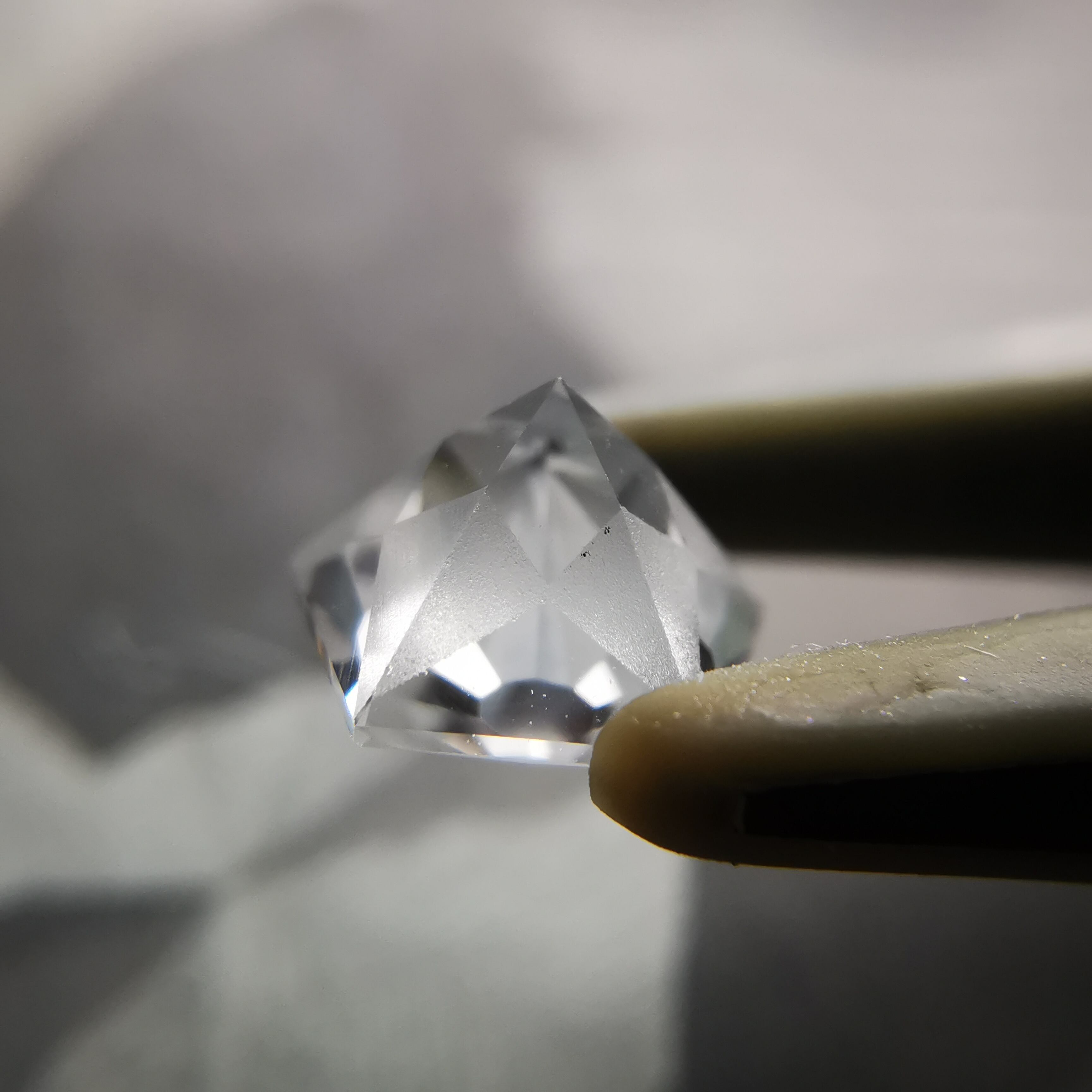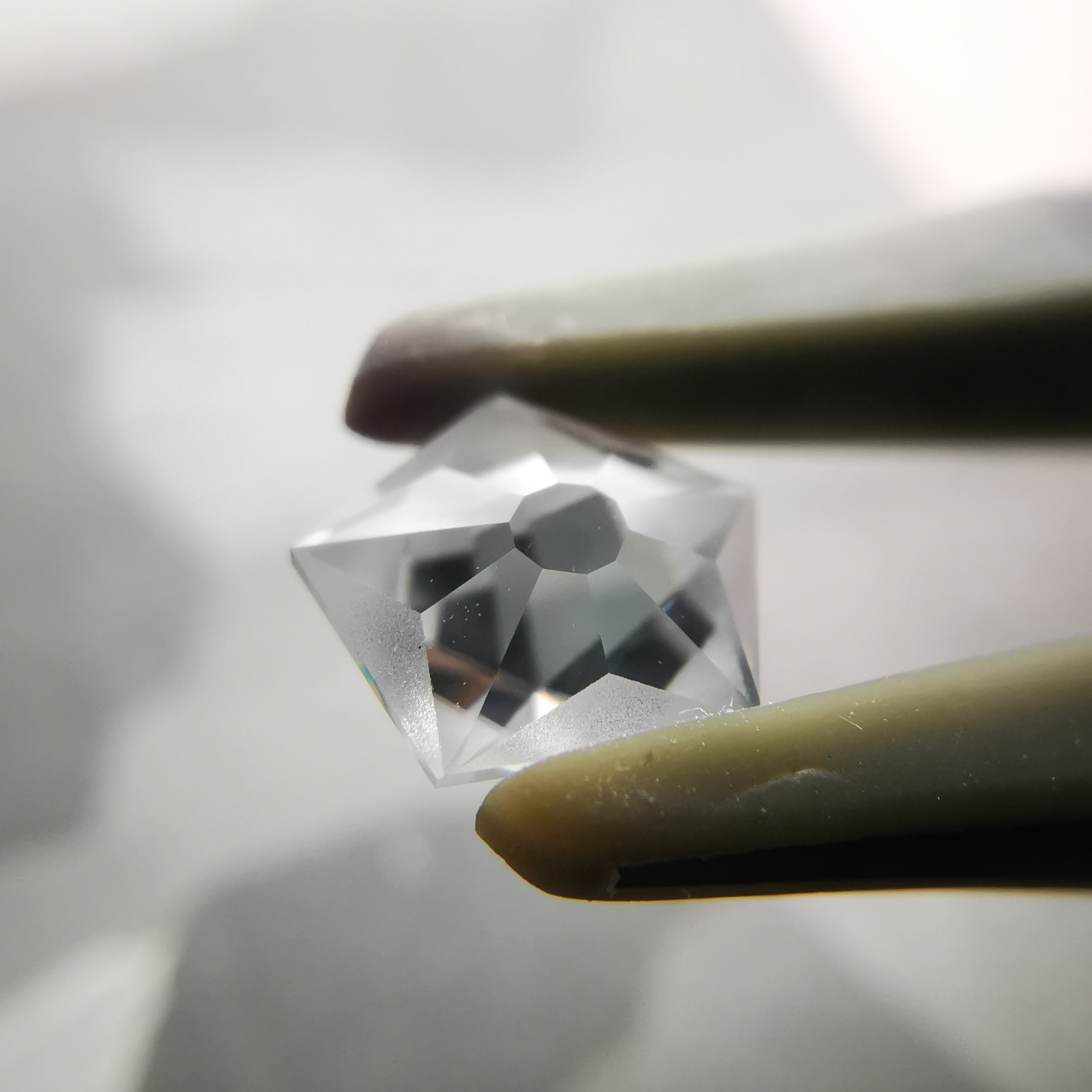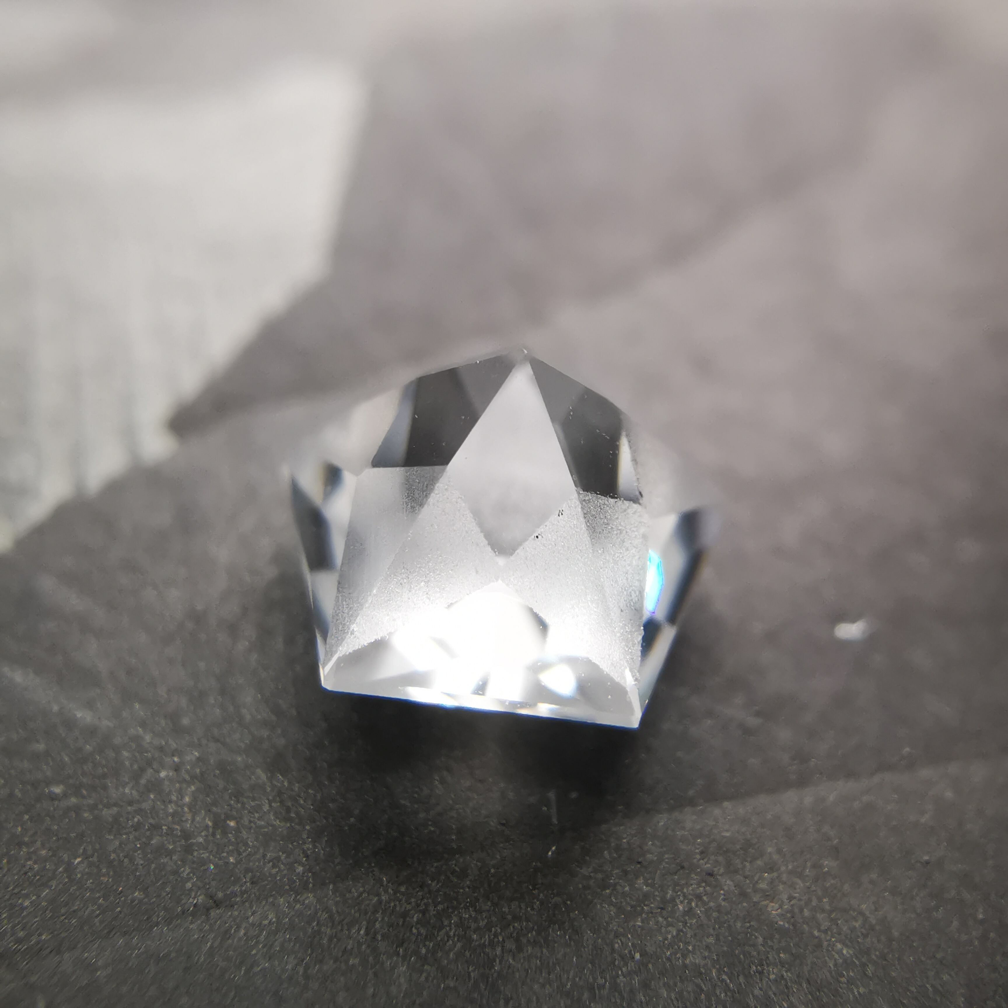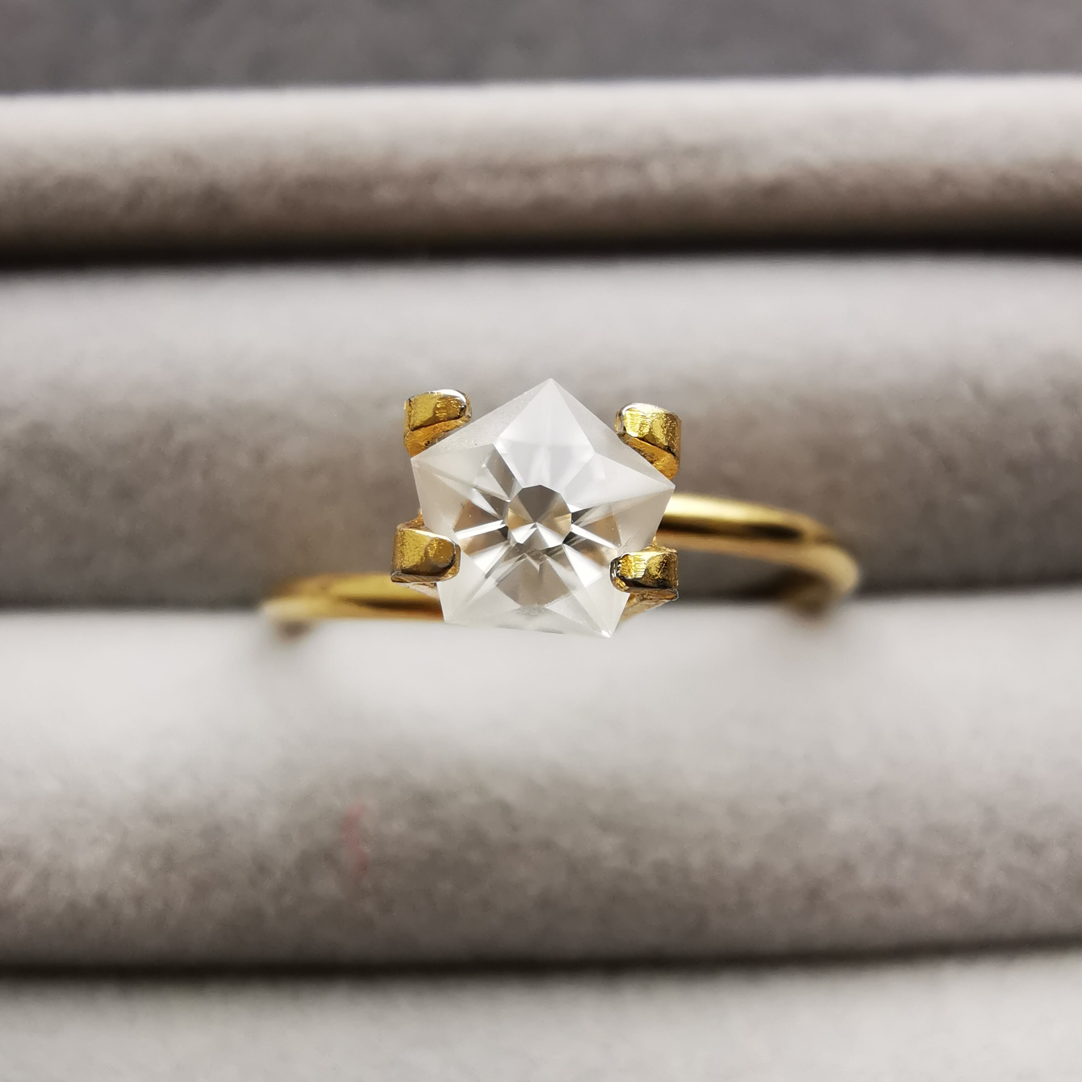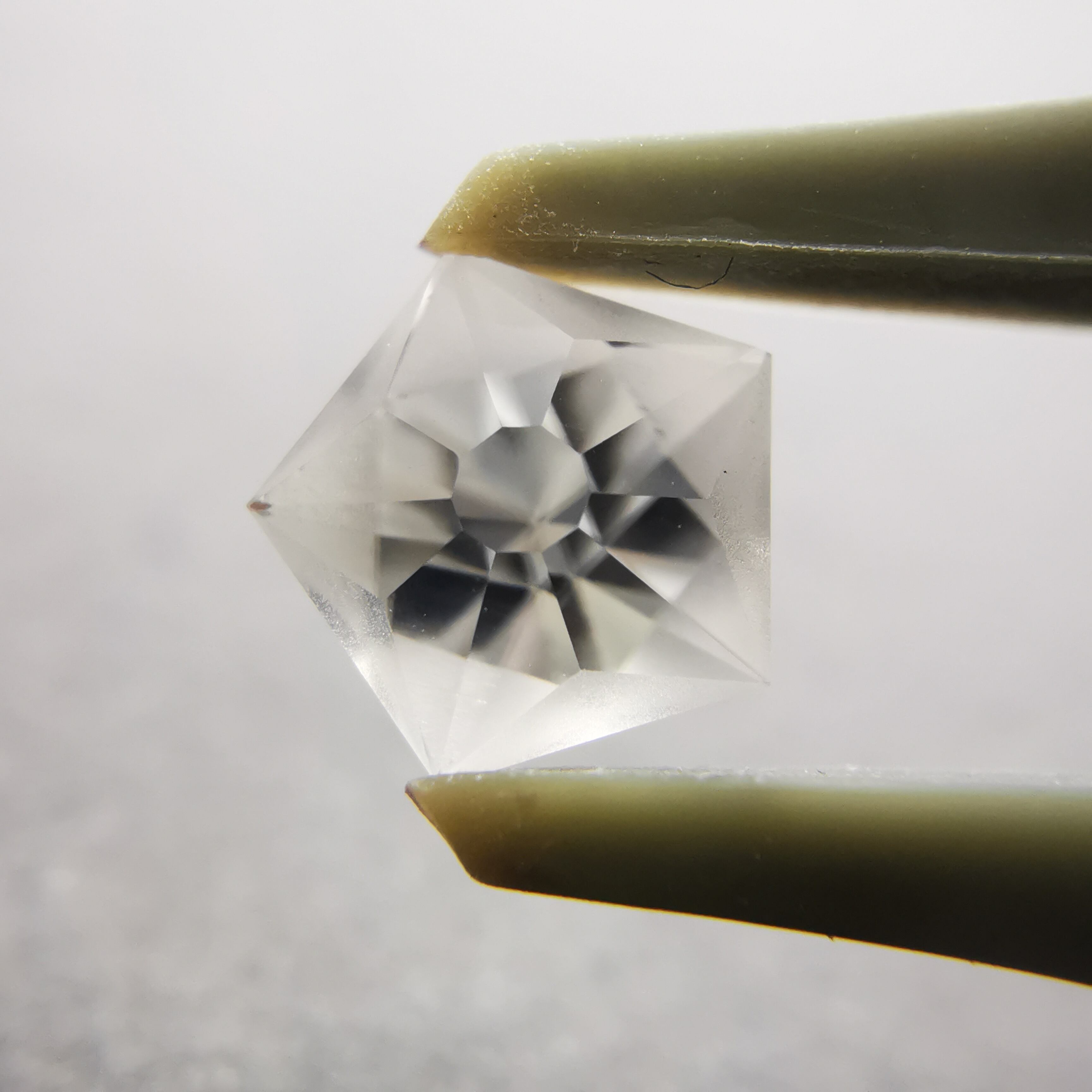 磨きの使い分けにより、五角形が重なり合うような模様を浮かび上がらせます。