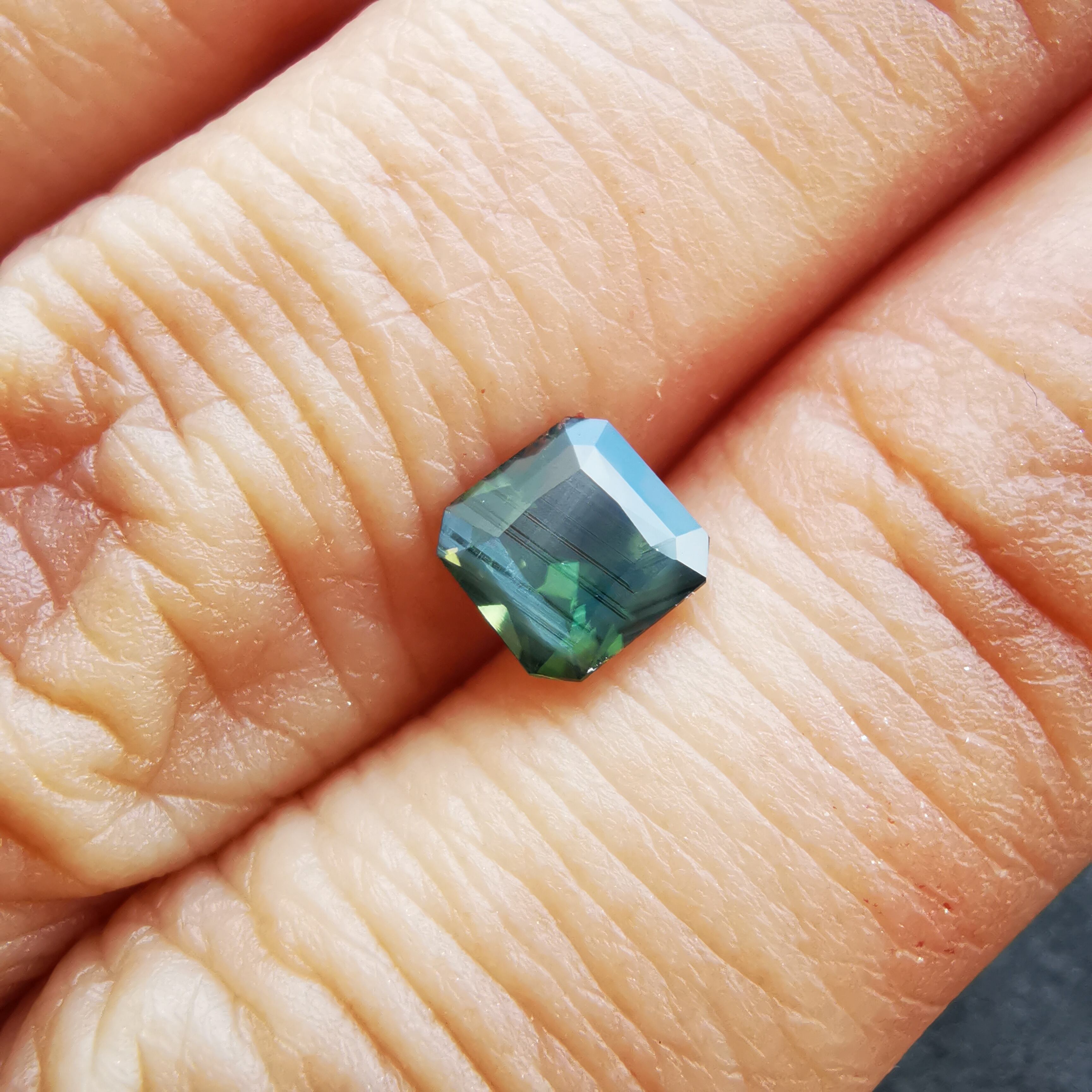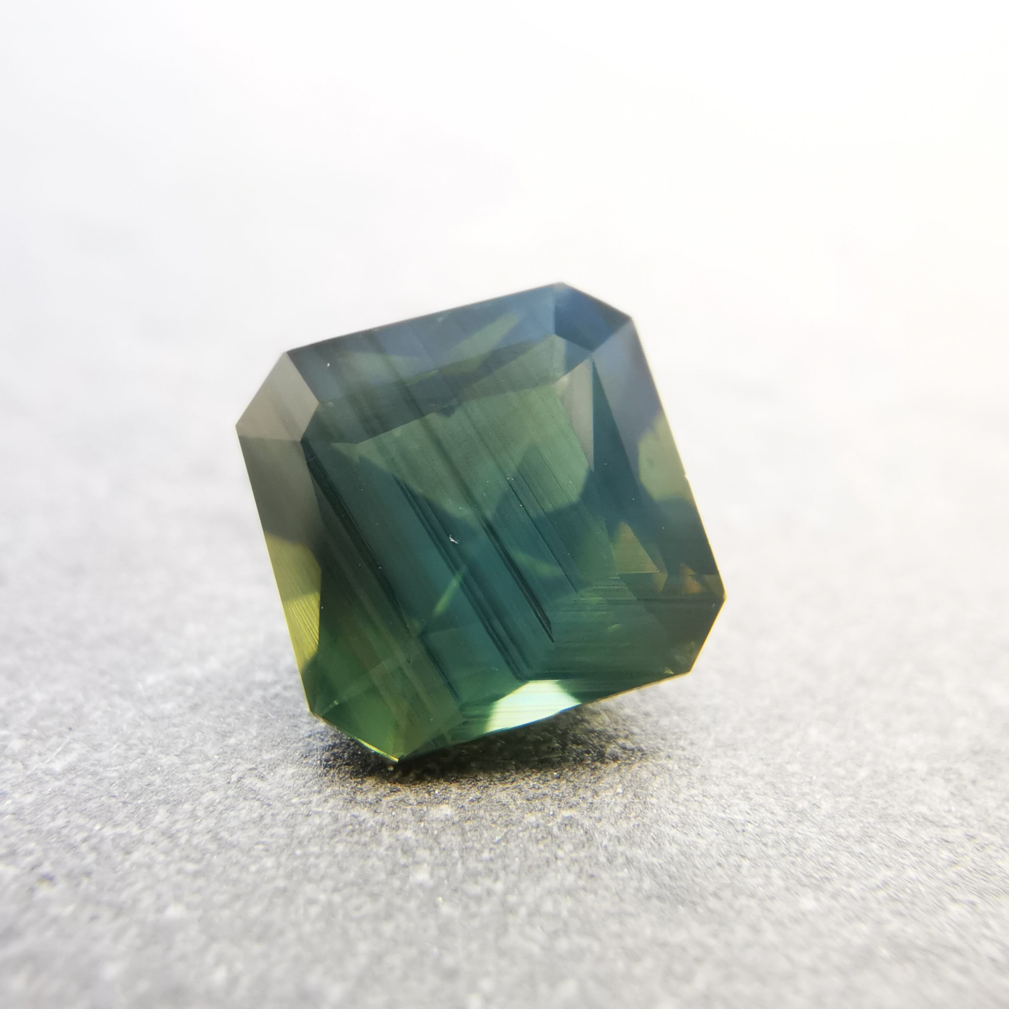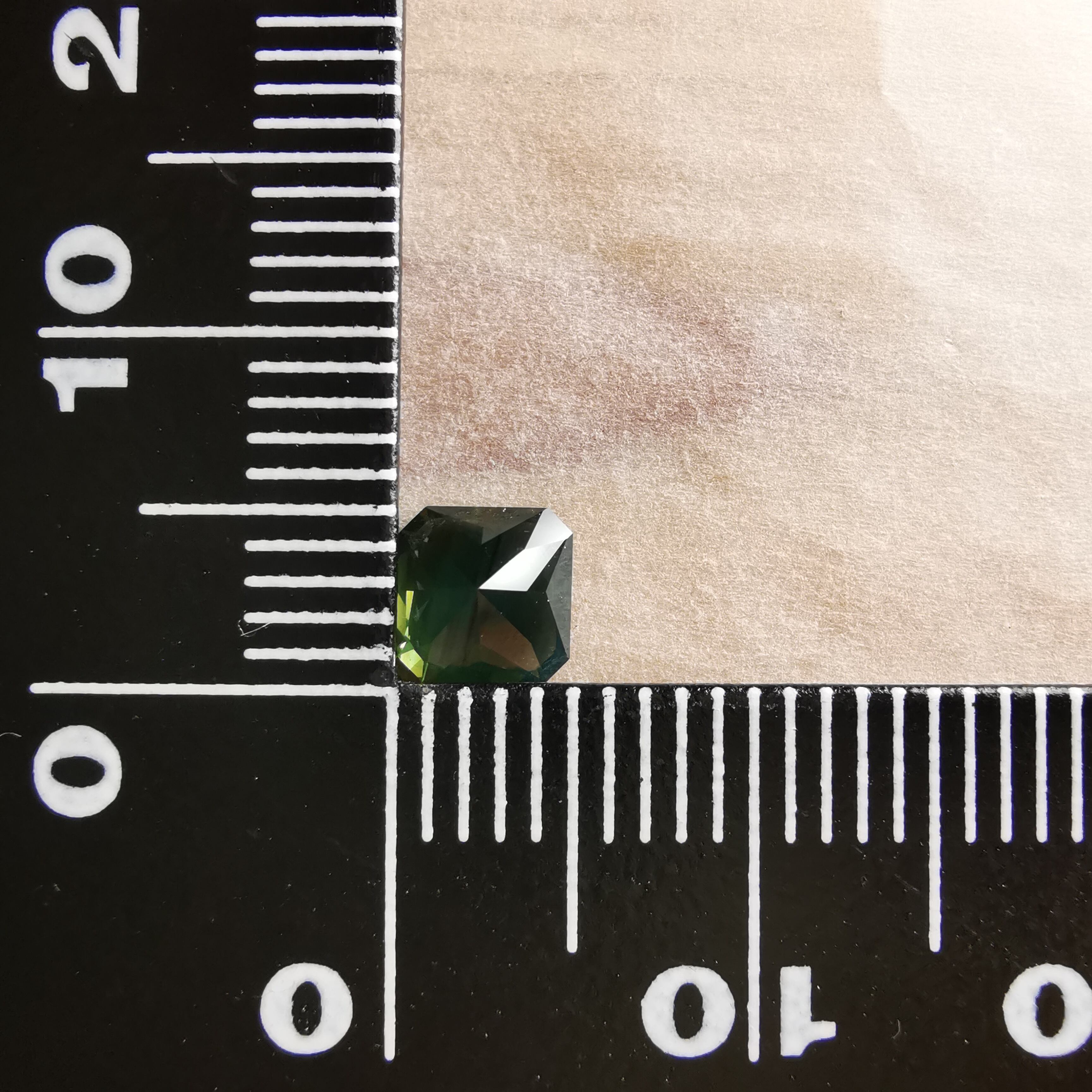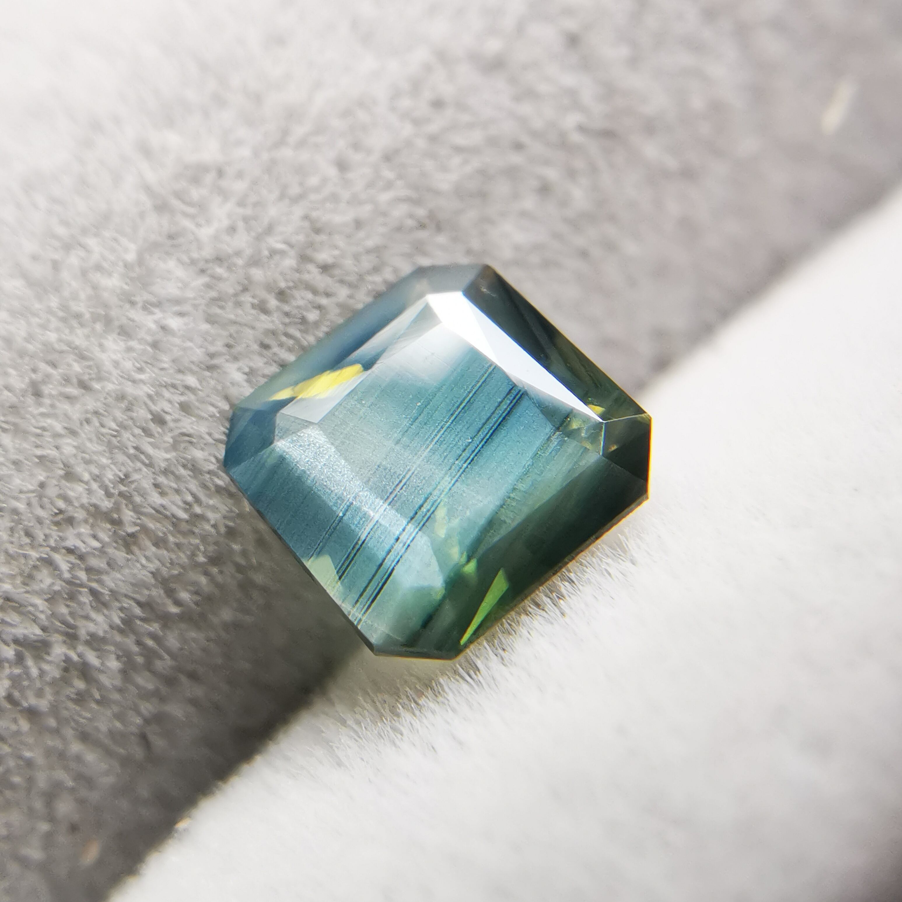 暗い灰みの緑/千歳色から、柔らかな黄緑/鶸色がこぼれる渋いカラーのサファイアです。