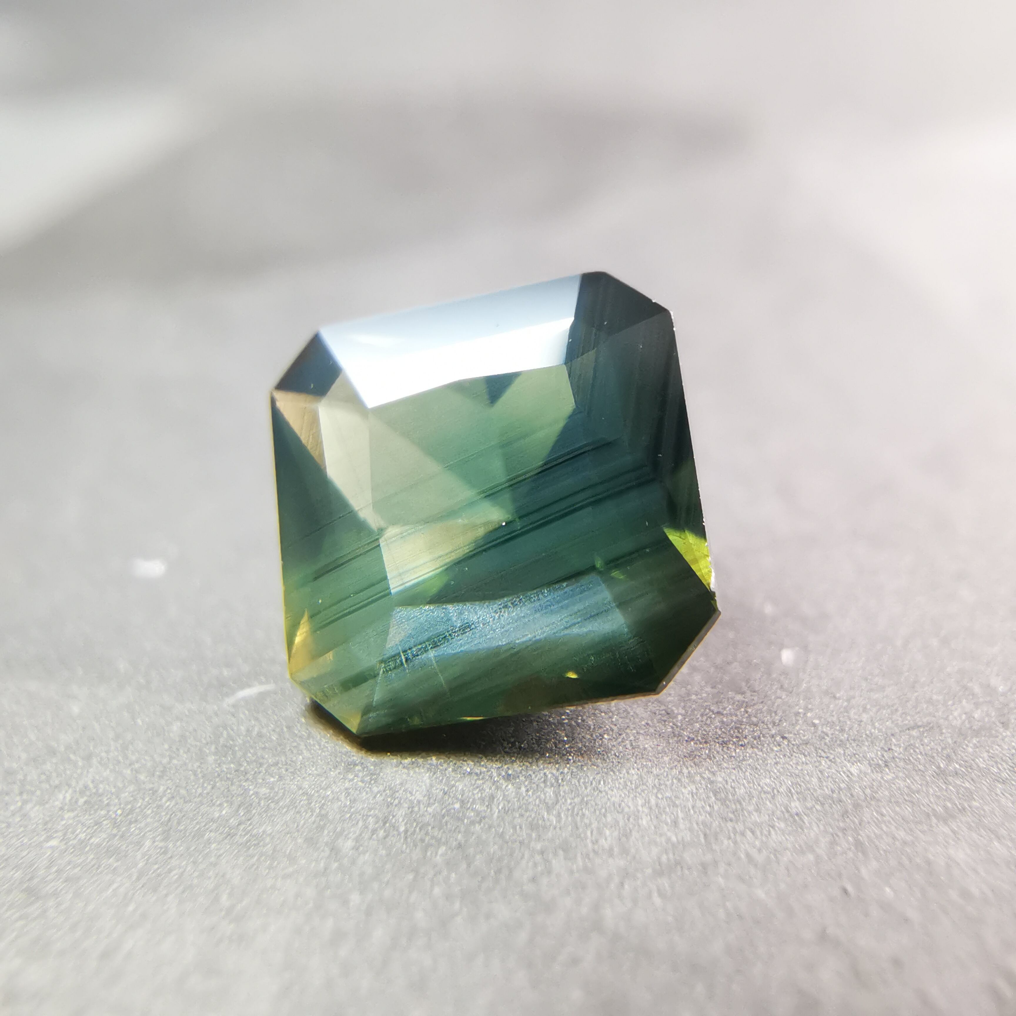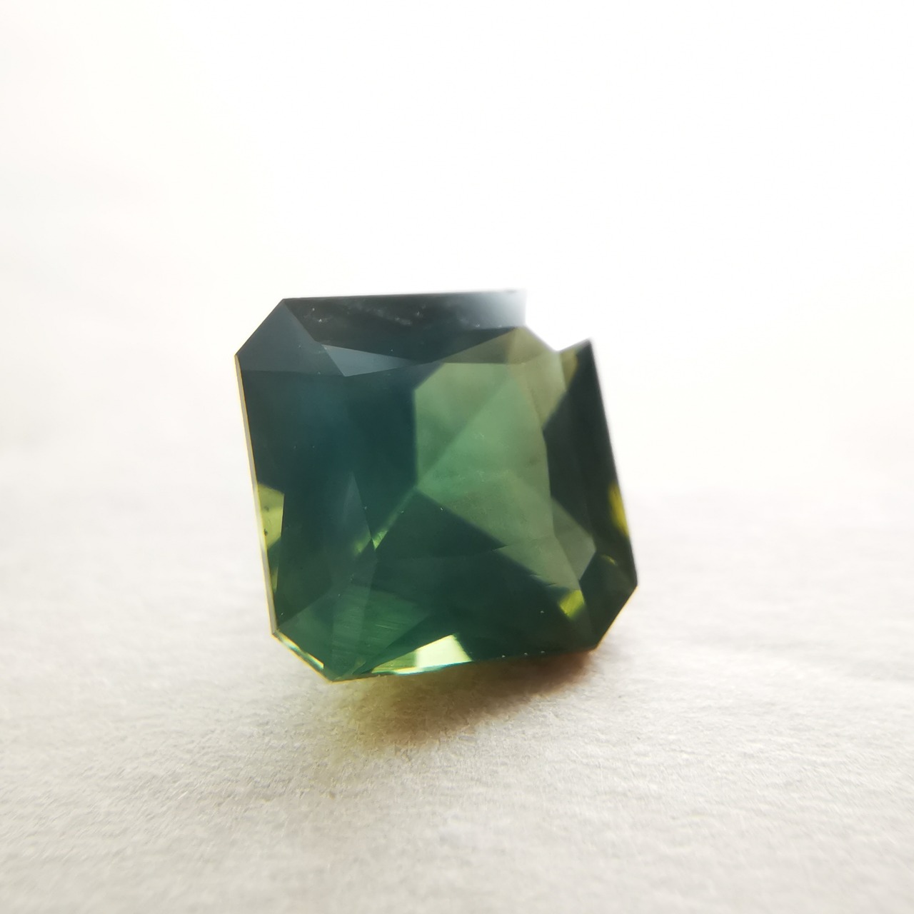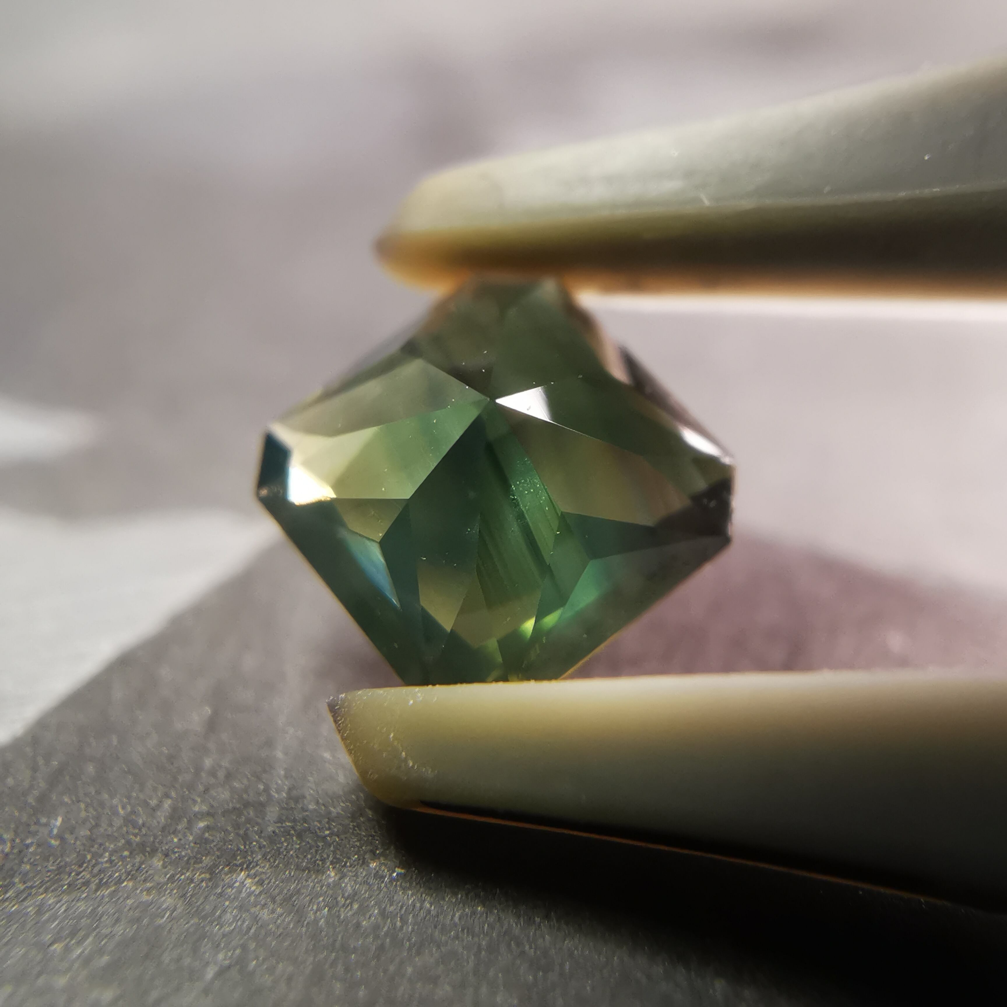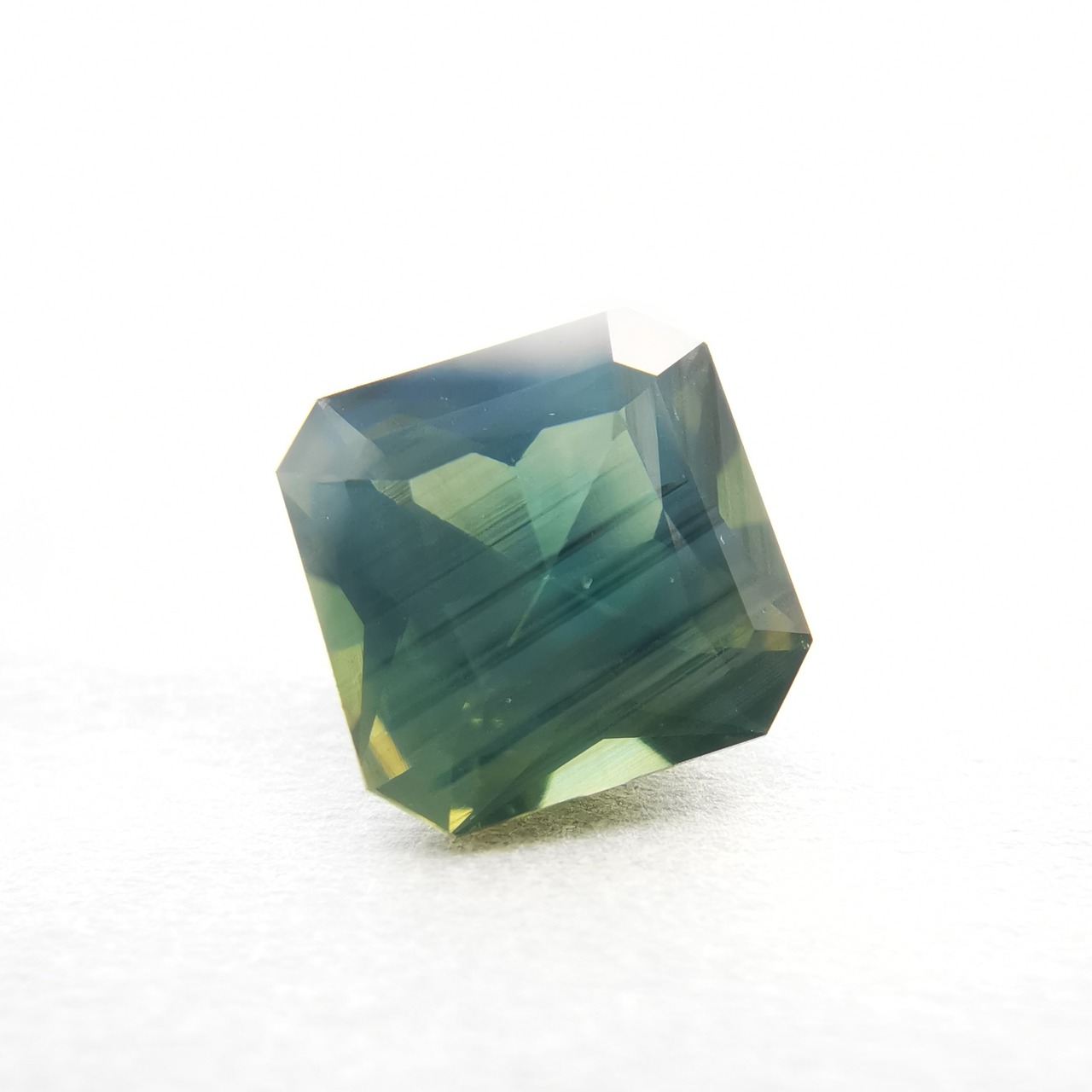 暗い灰みの緑/千歳色から、柔らかな黄緑/鶸色がこぼれる渋いカラーのサファイアです。