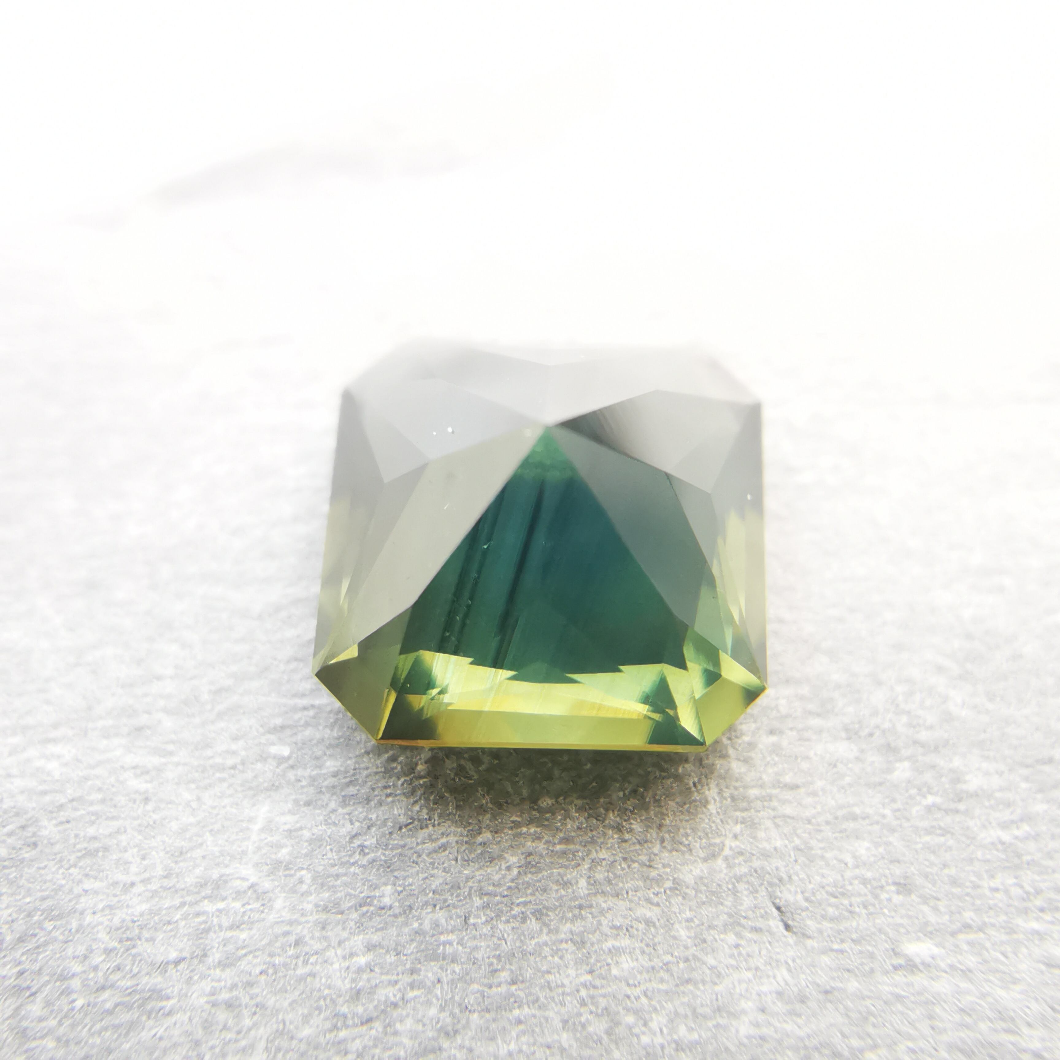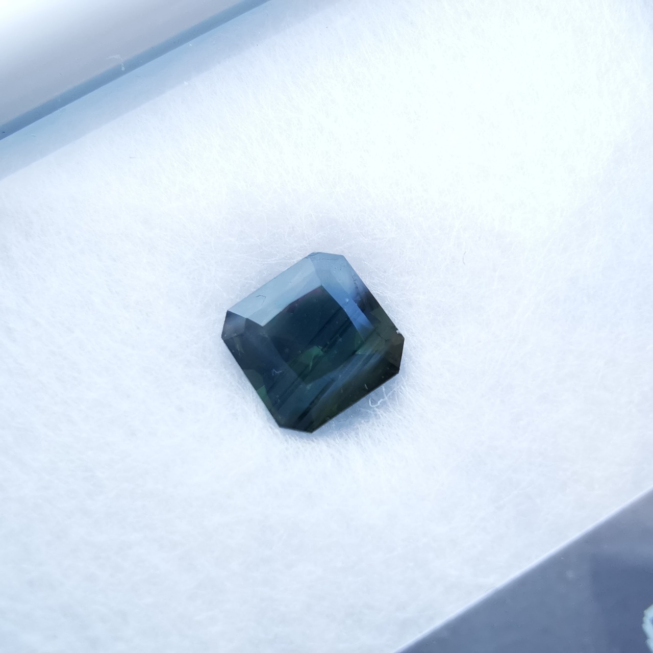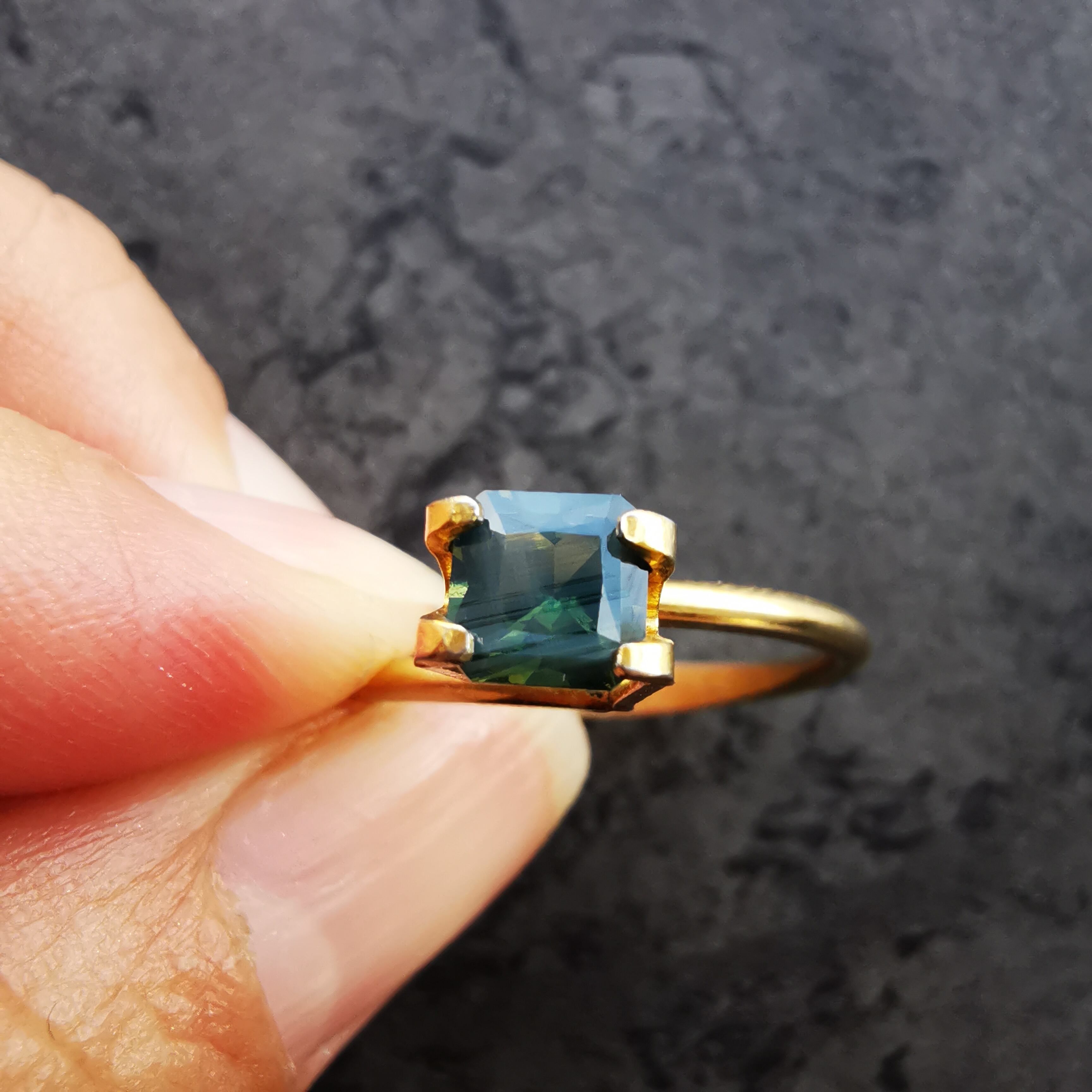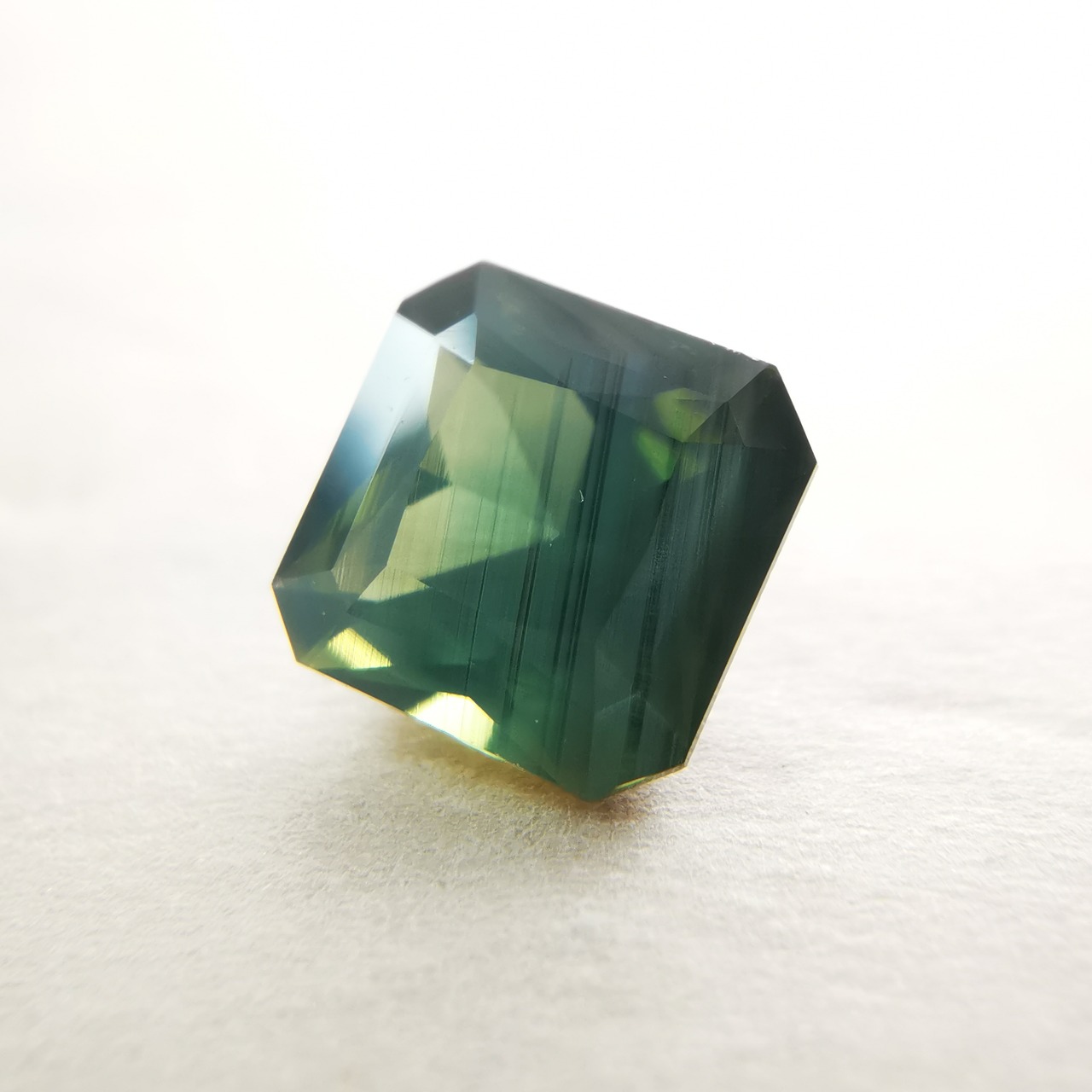 暗い灰みの緑/千歳色から、柔らかな黄緑/鶸色がこぼれる渋いカラーのサファイアです。
