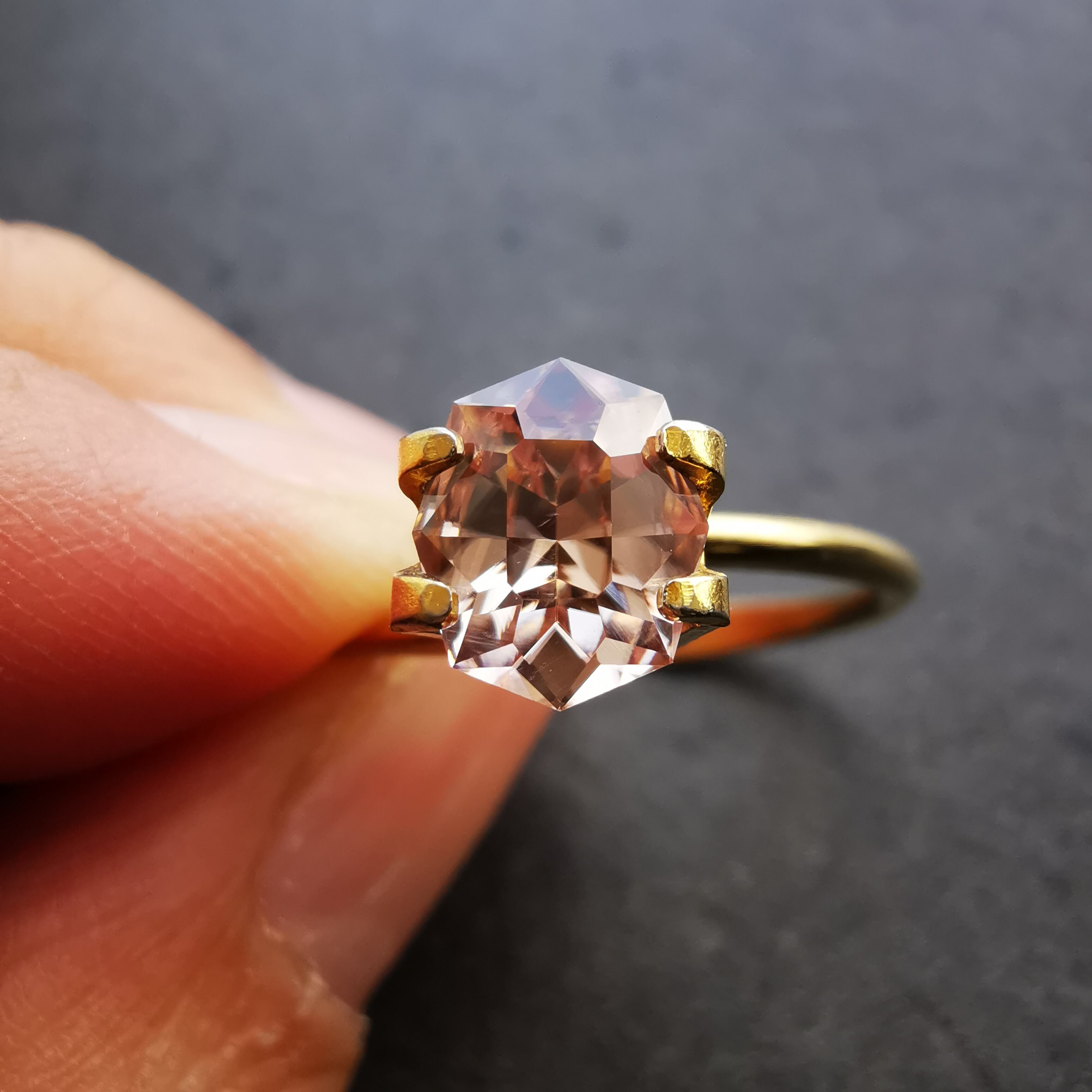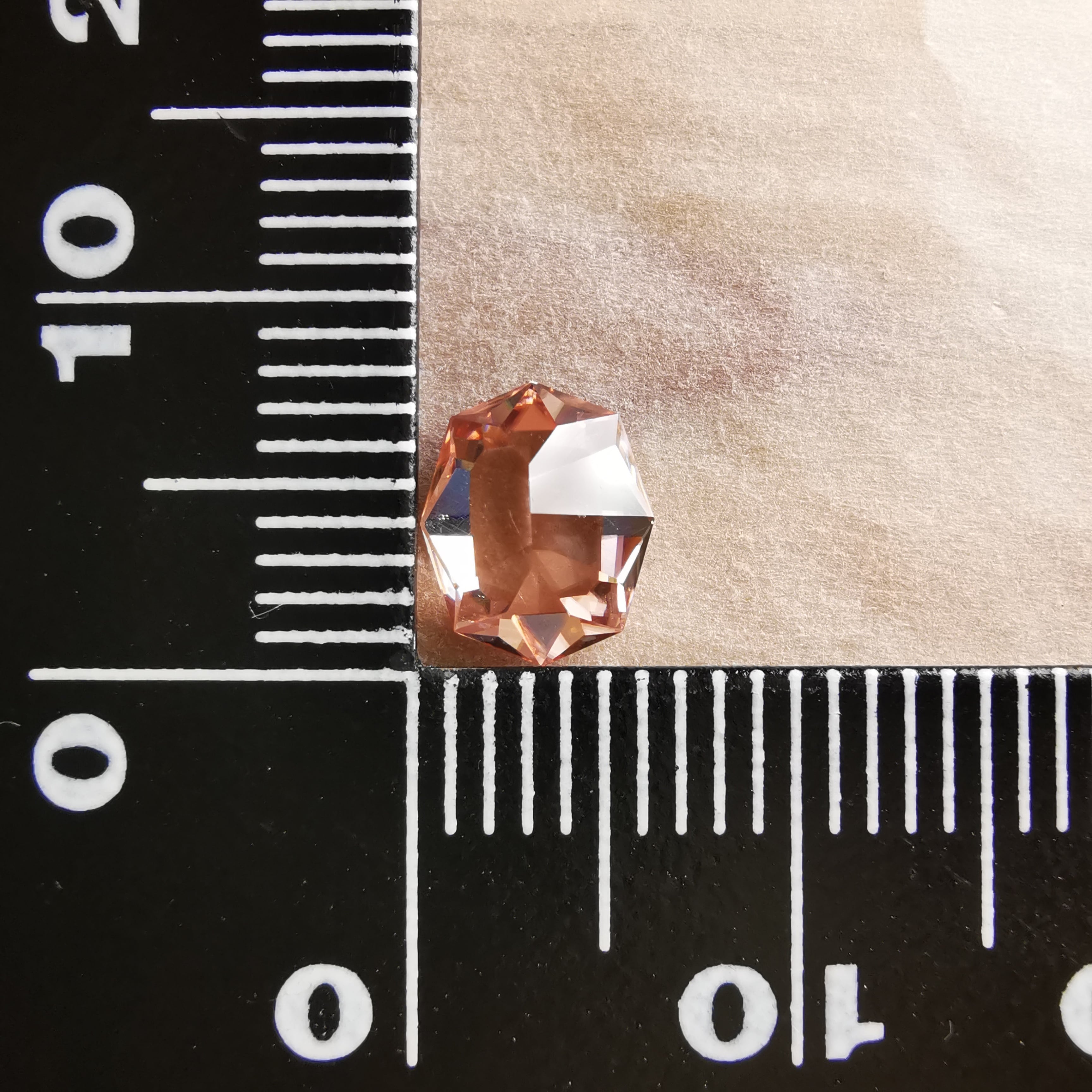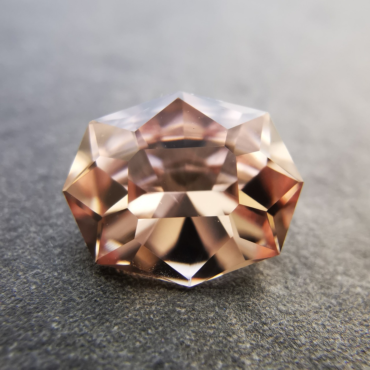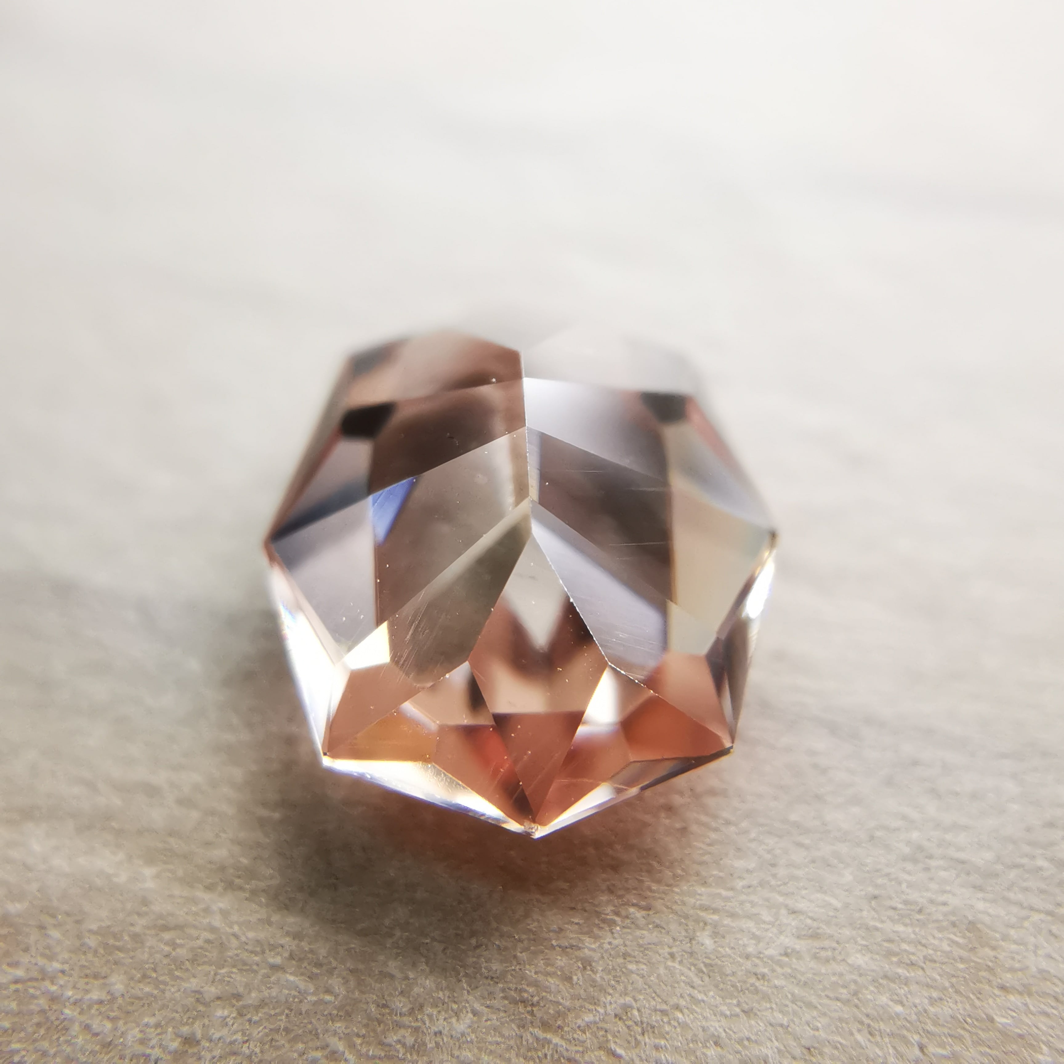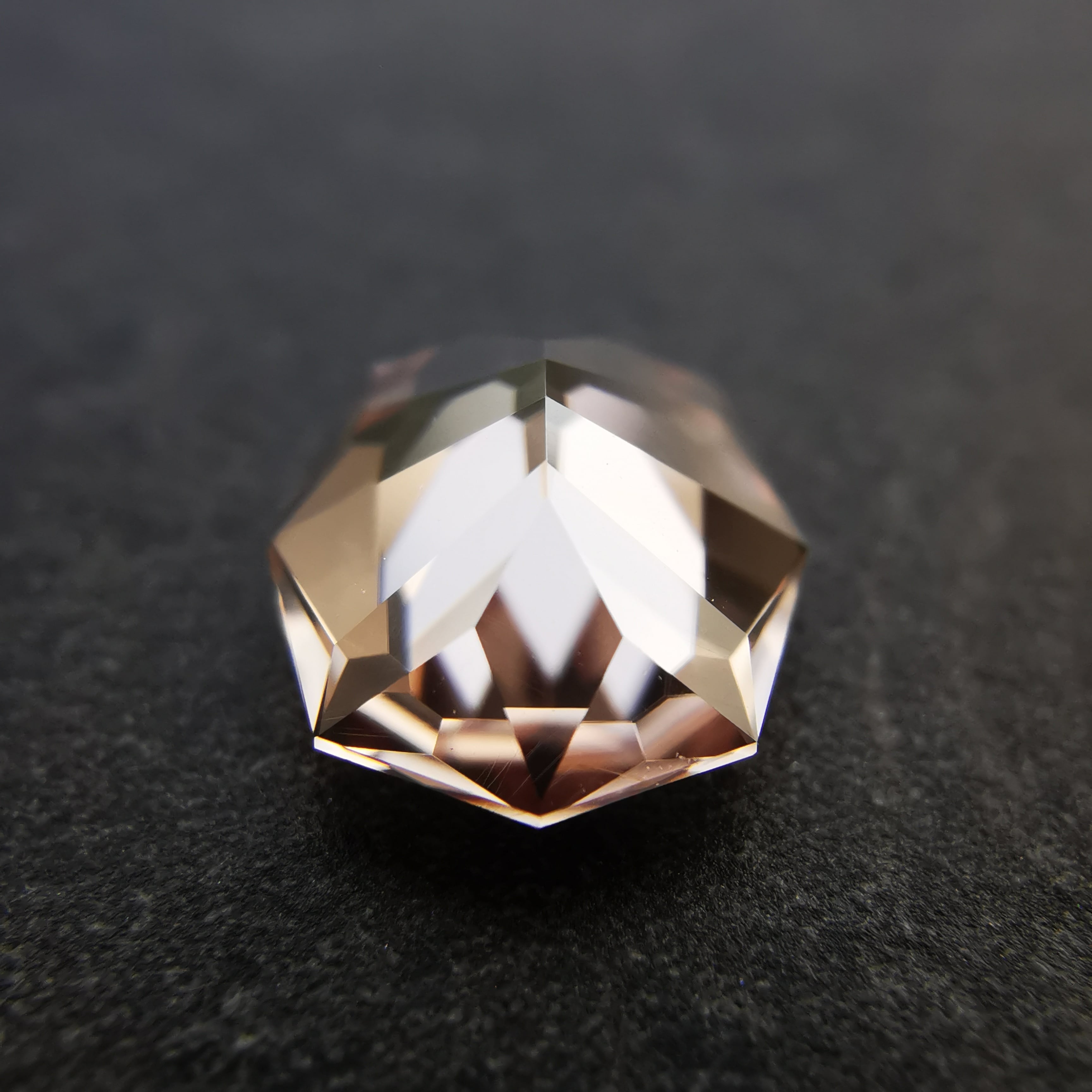 テーブル面から覗くと、キュレットに集まるカットが鮮明に見える程、透明感の高い一石です。