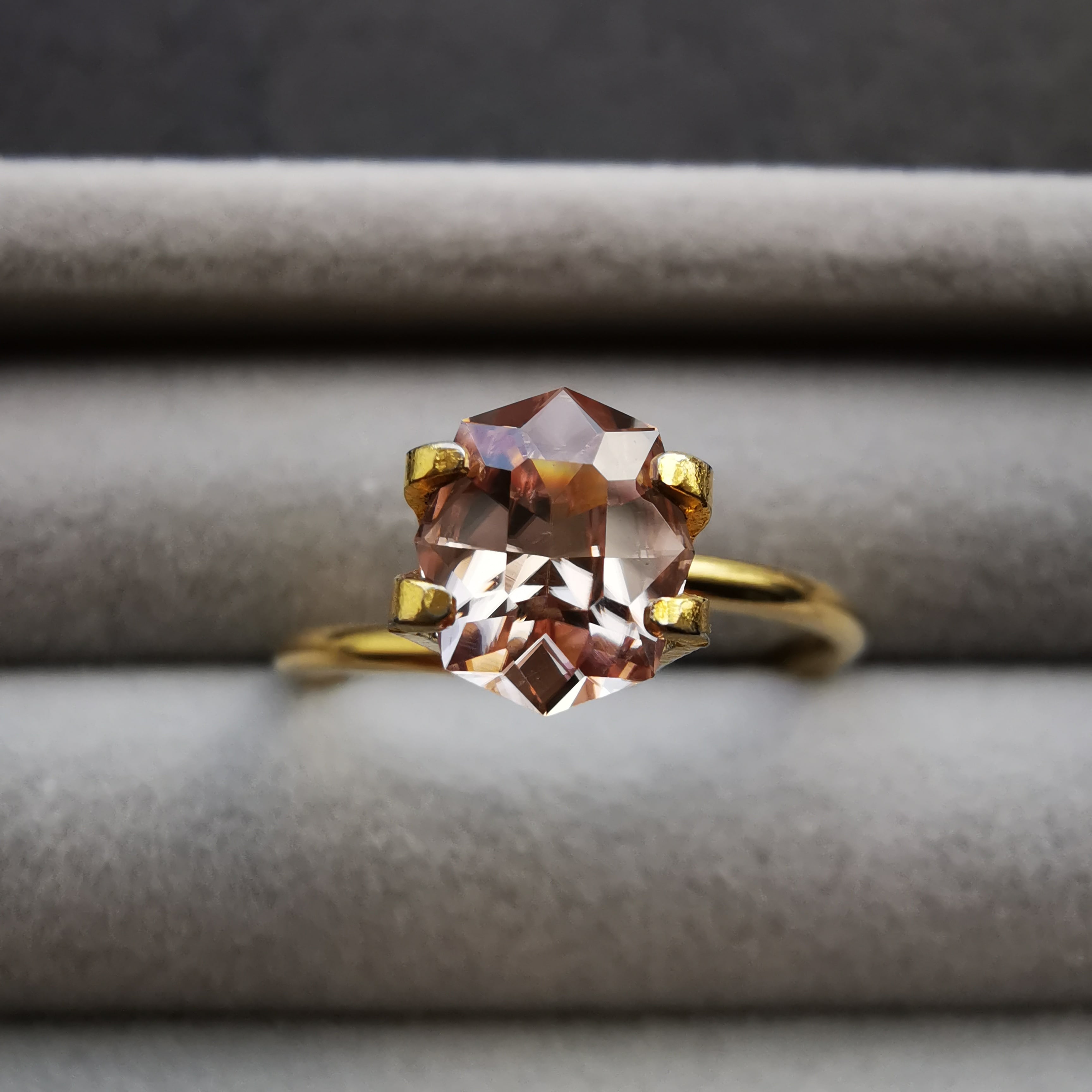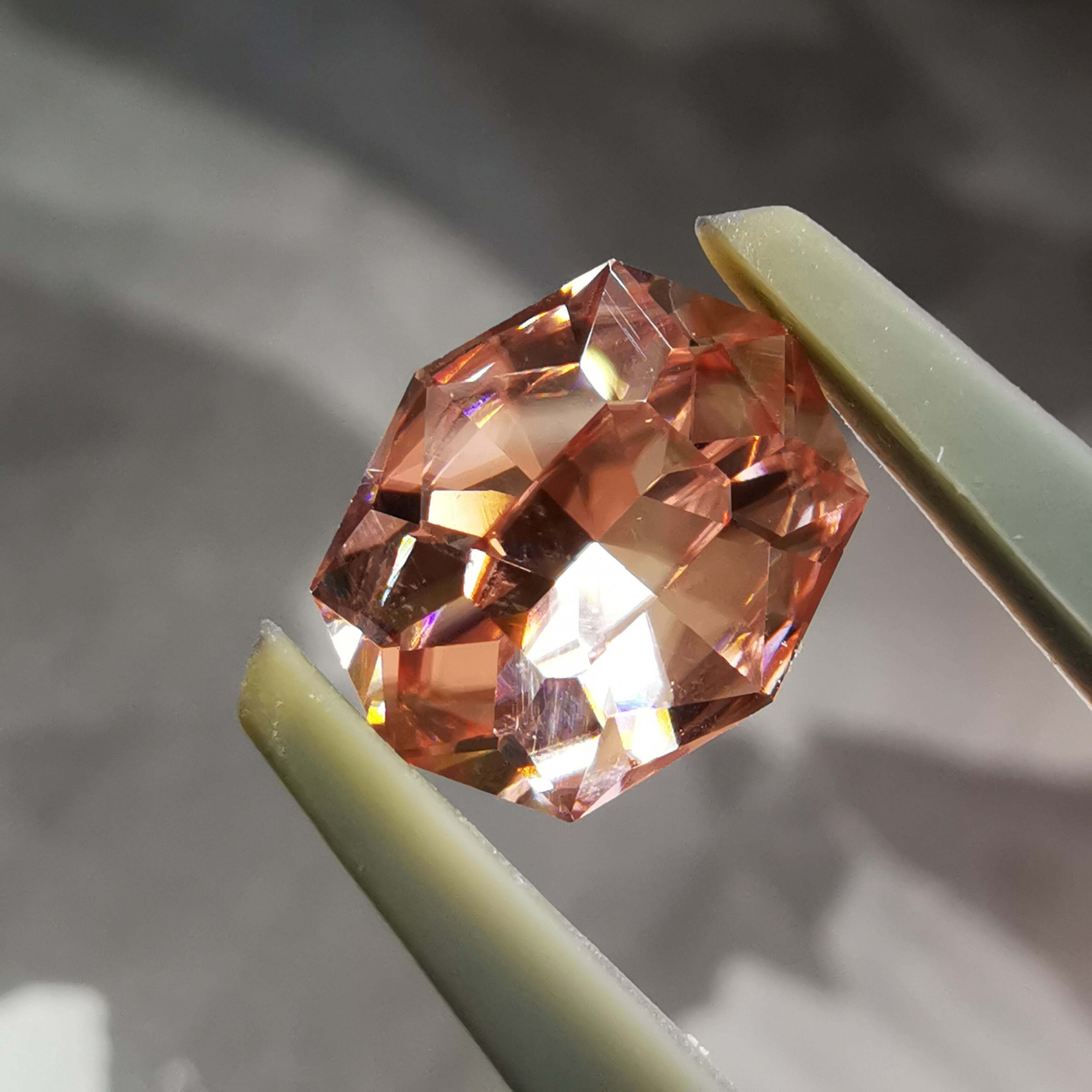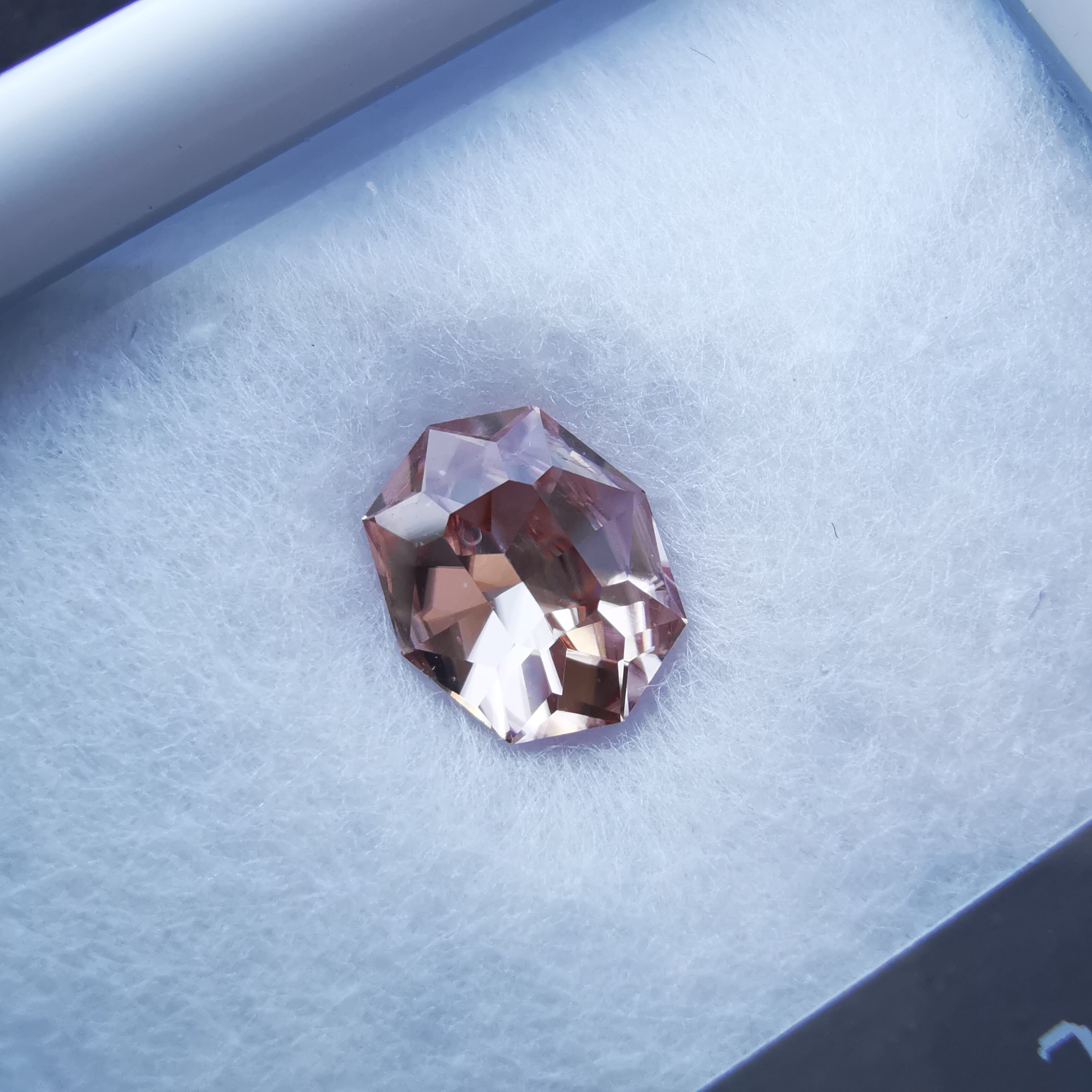 優し気な色ですが、ジルコンらしくギラギラときらめきます。