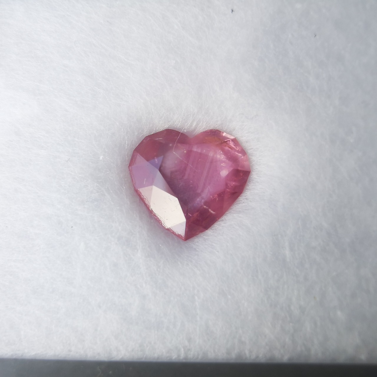 柔らかな灰みの赤ピンク/オールドローズカラーのサファイアです。