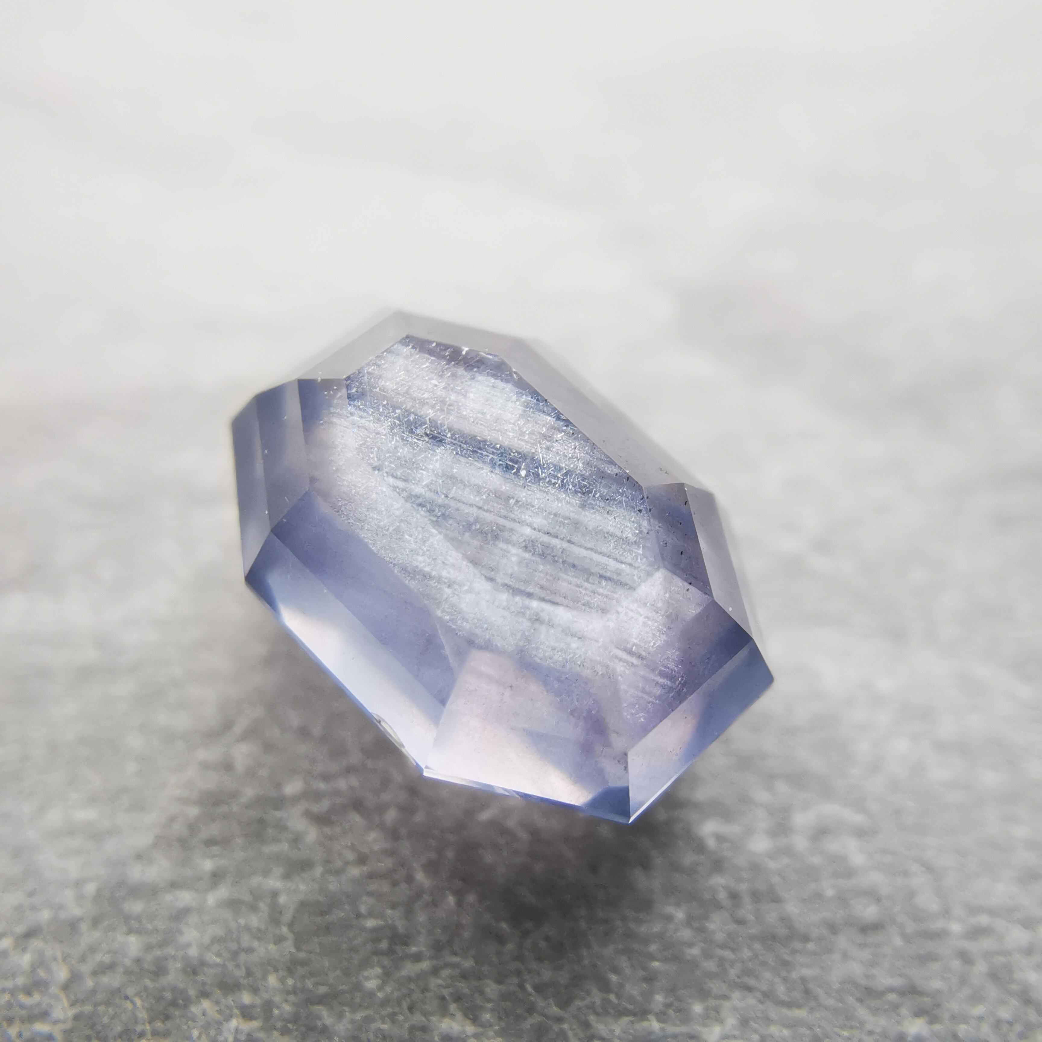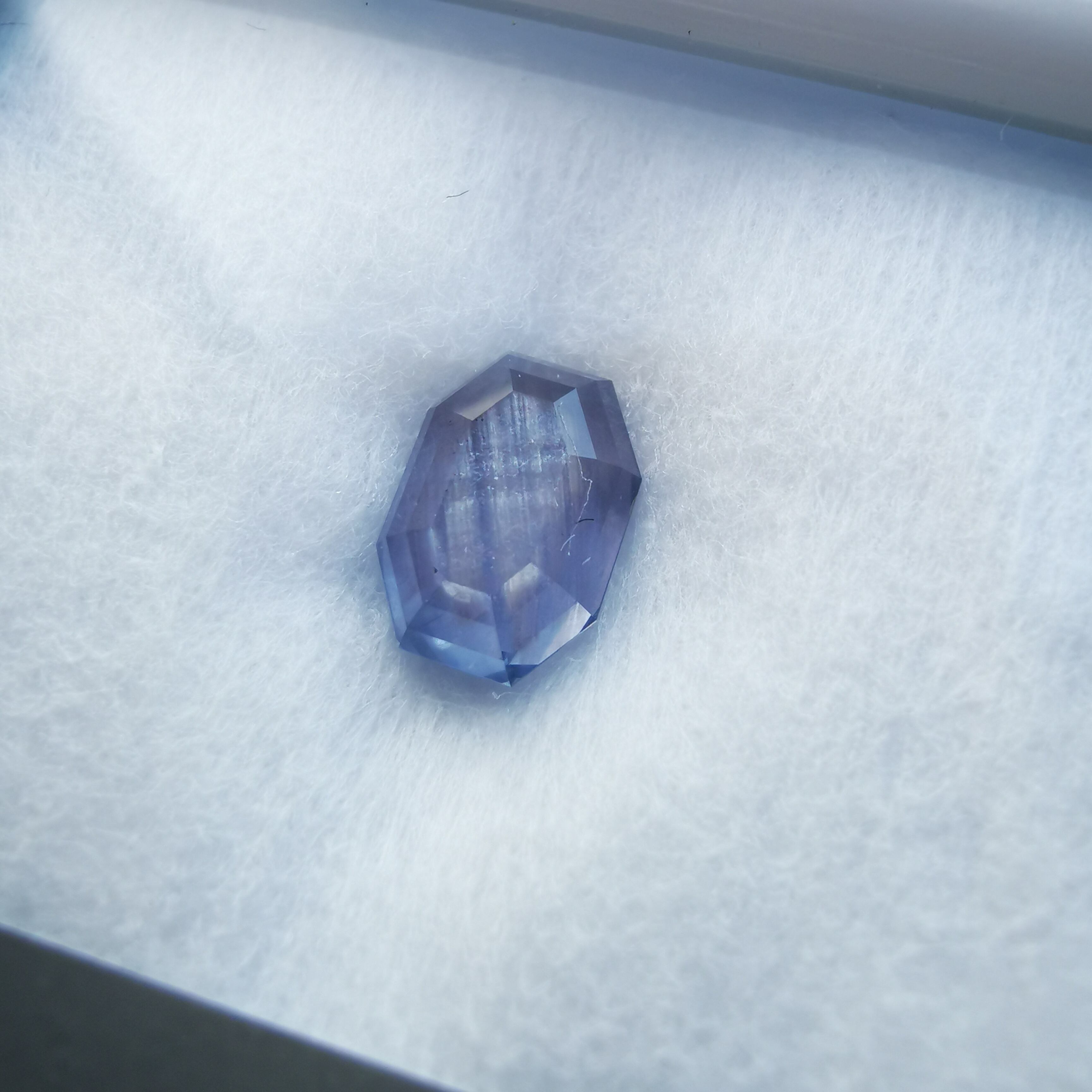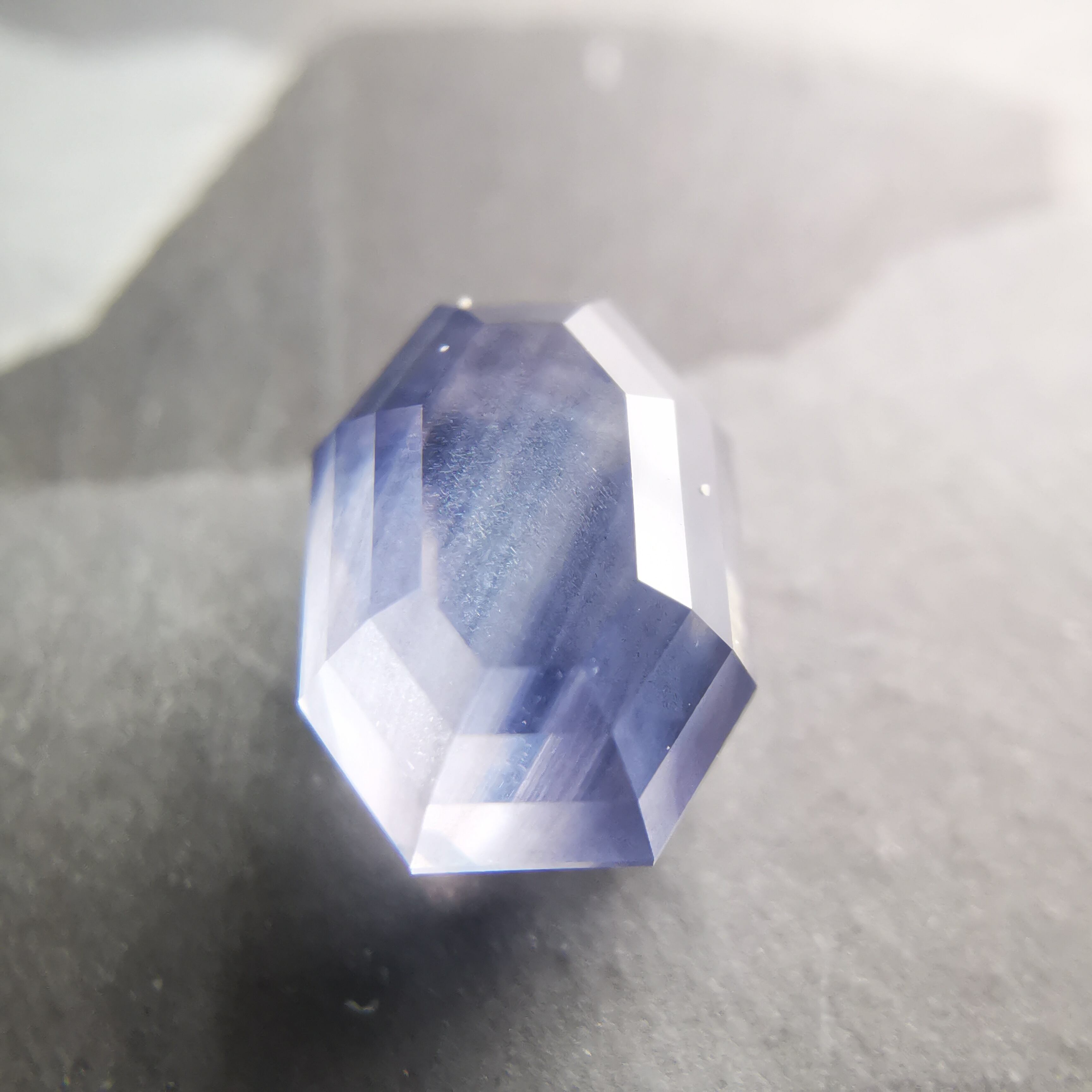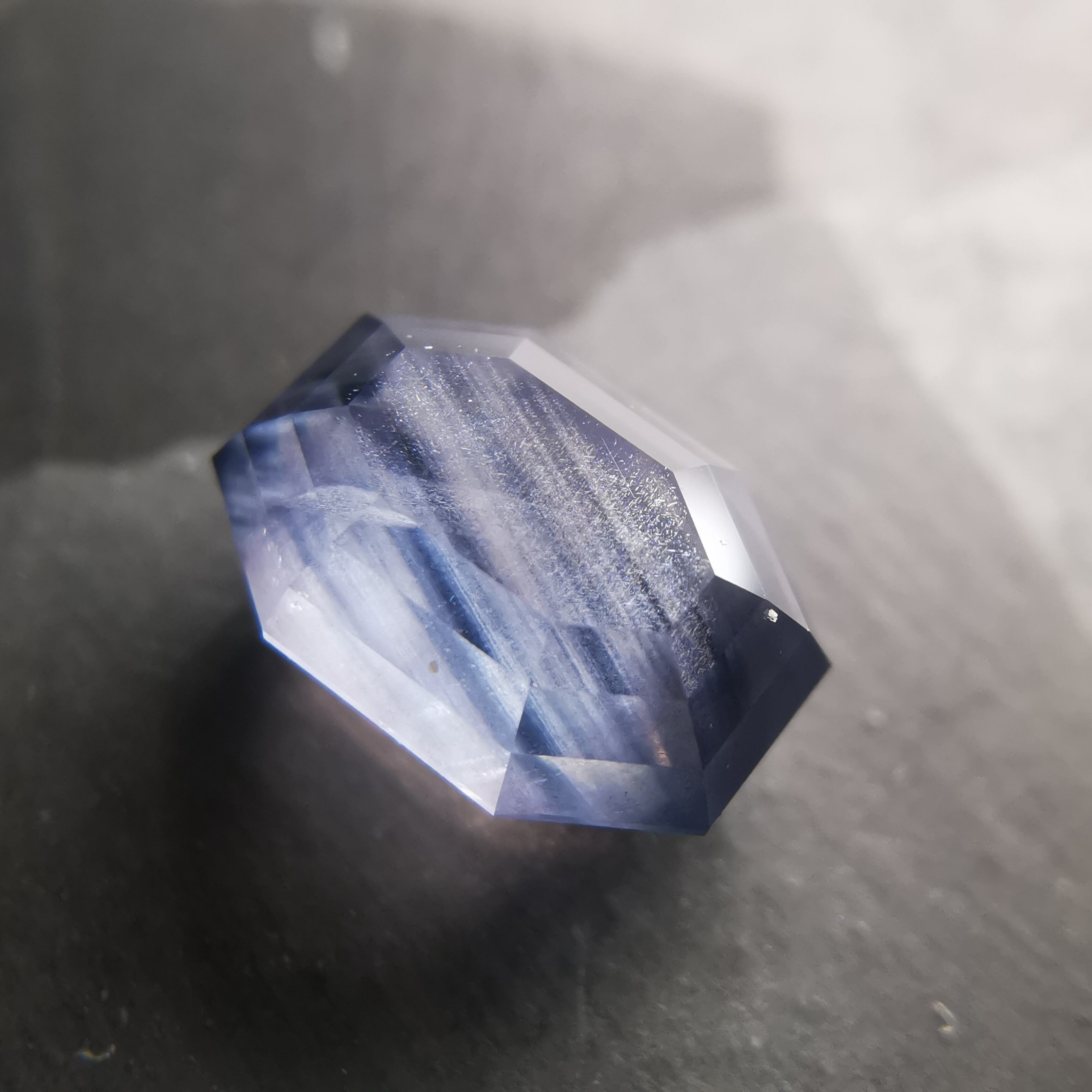 透明度の高いスターサファイアを、立体的なポートレイトカットにカスタムリカットしました。