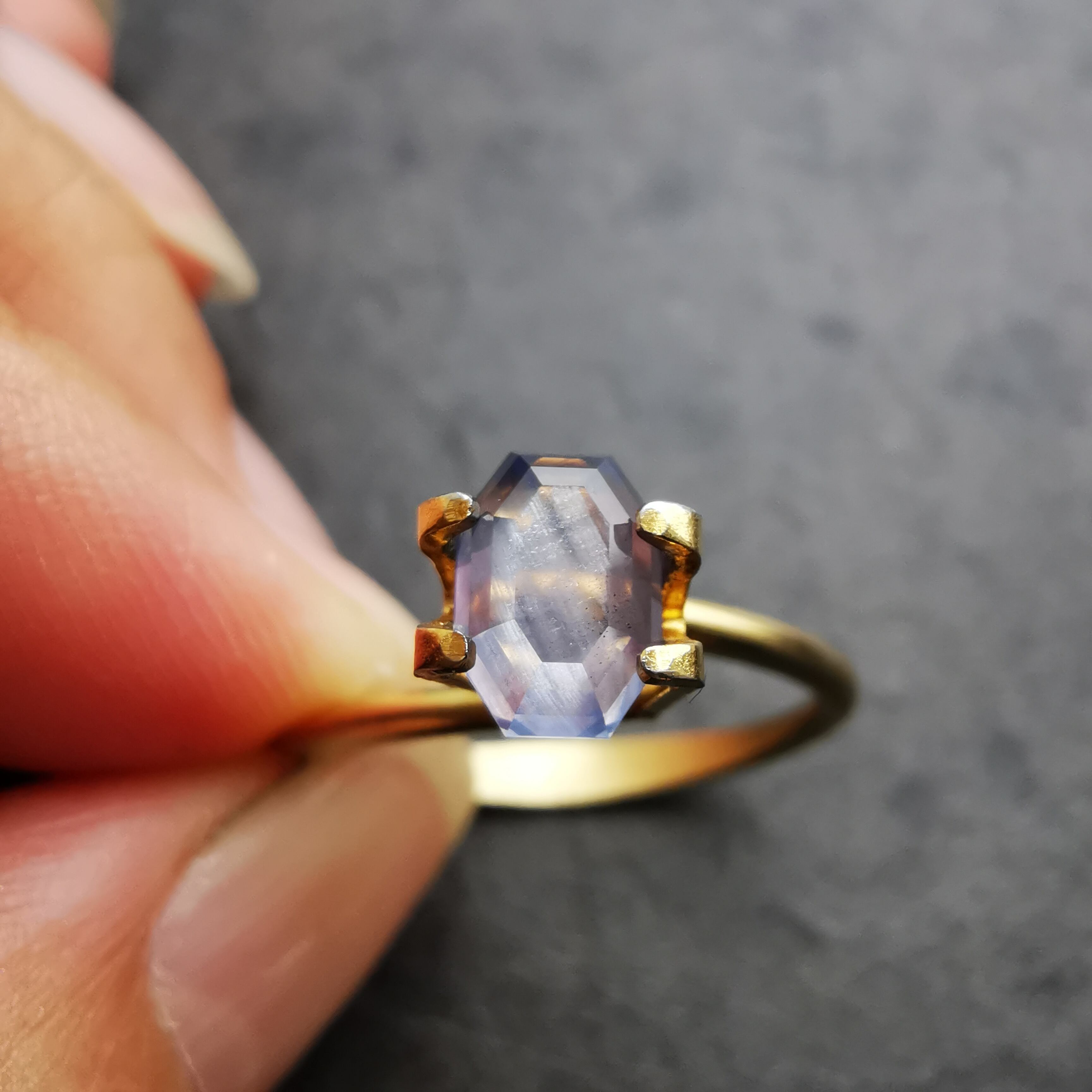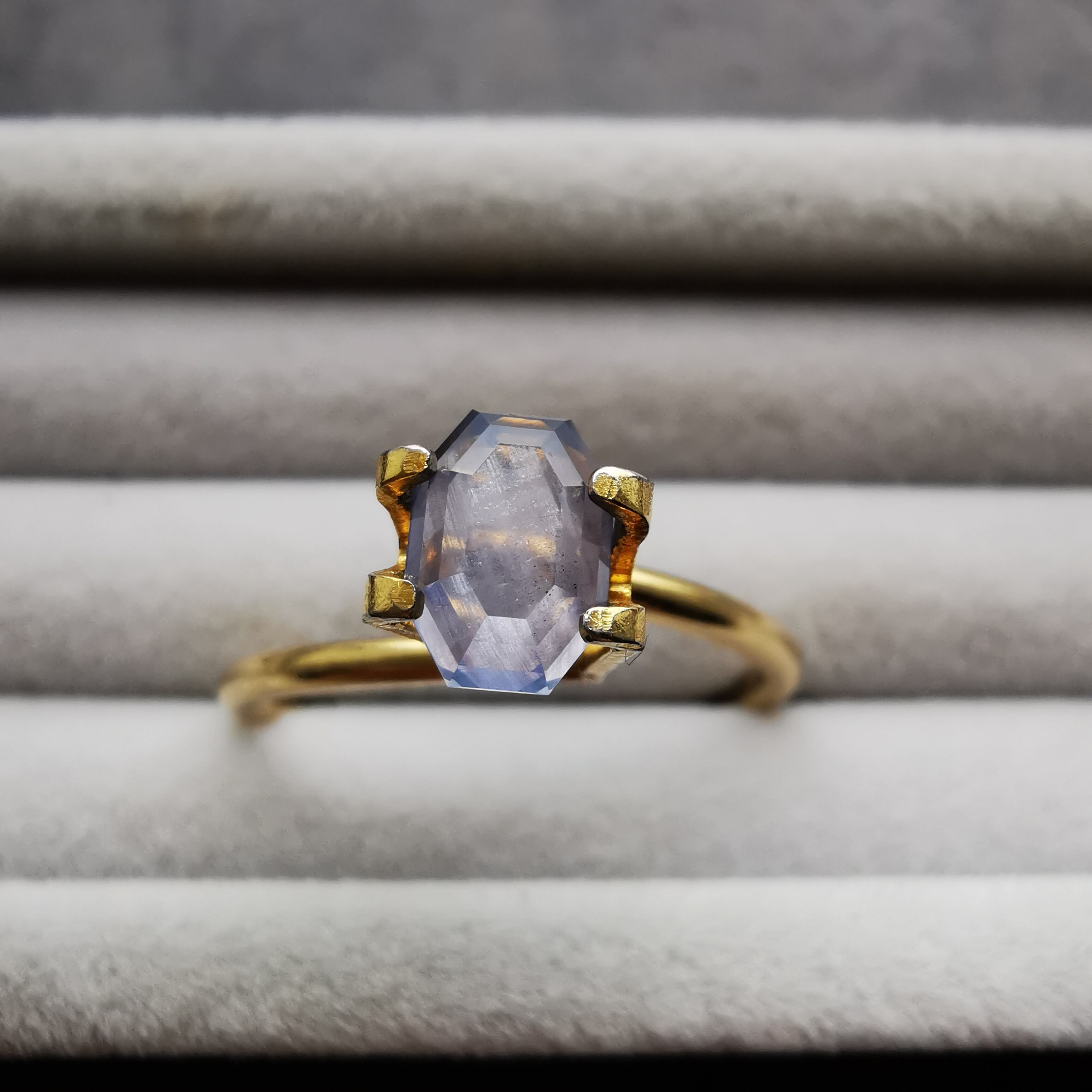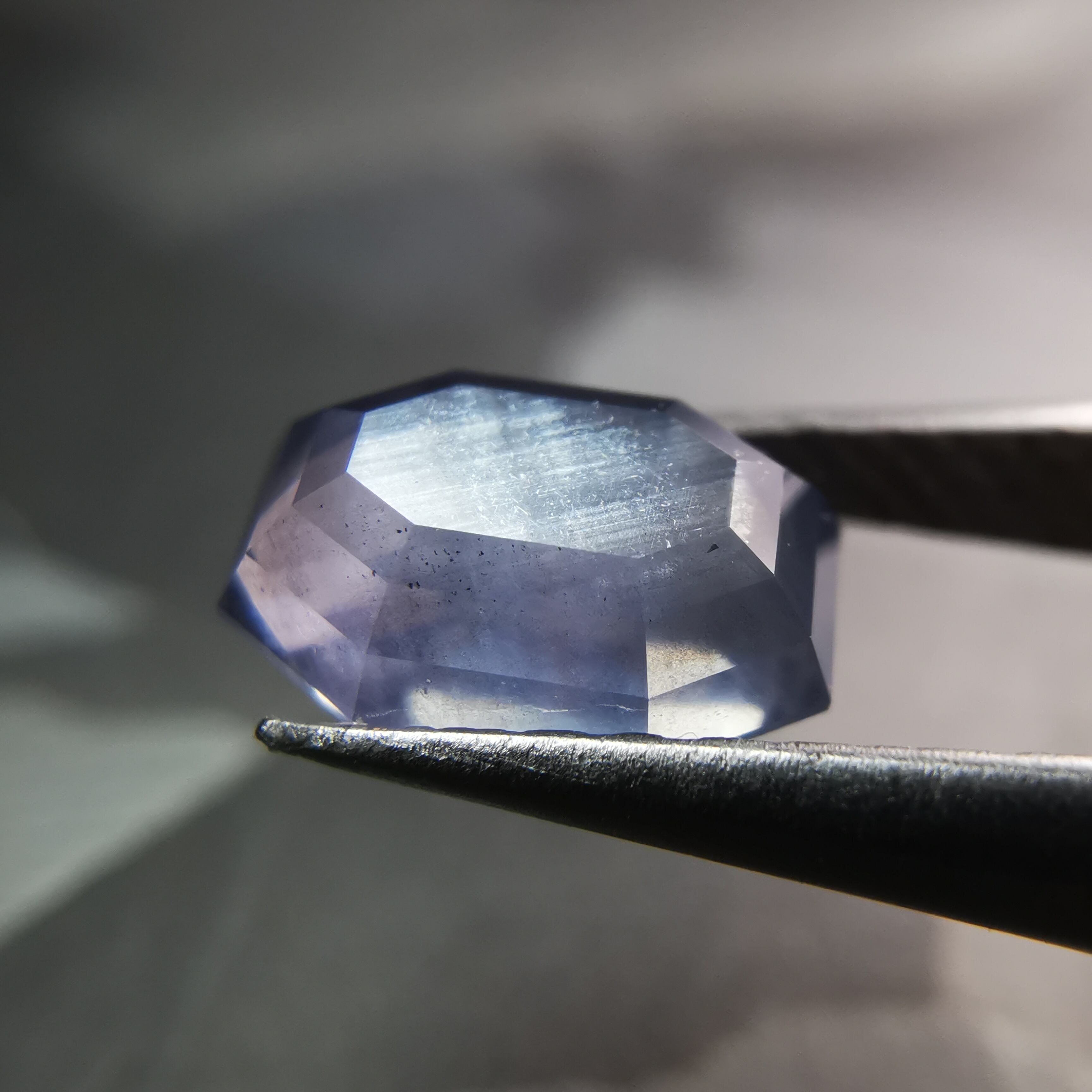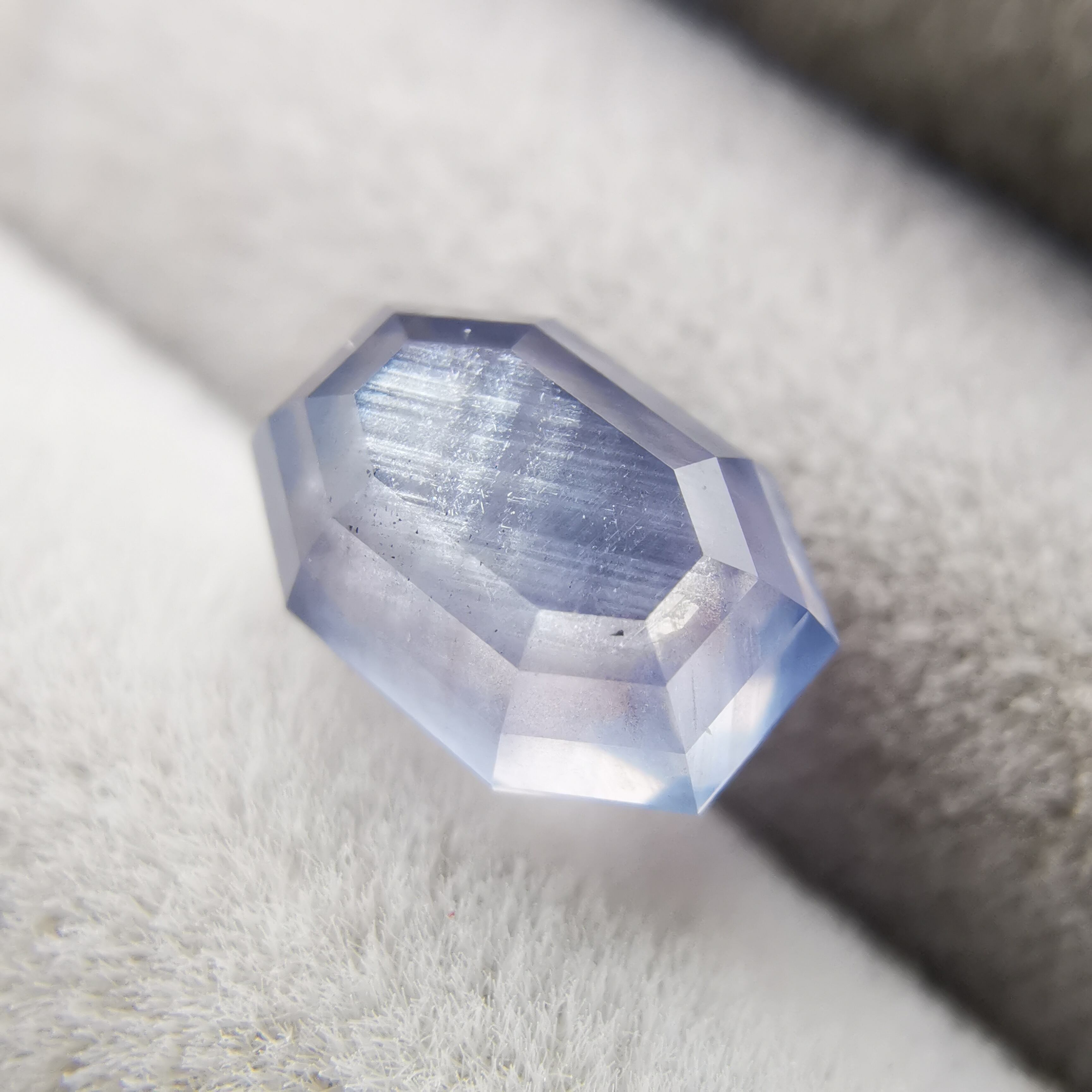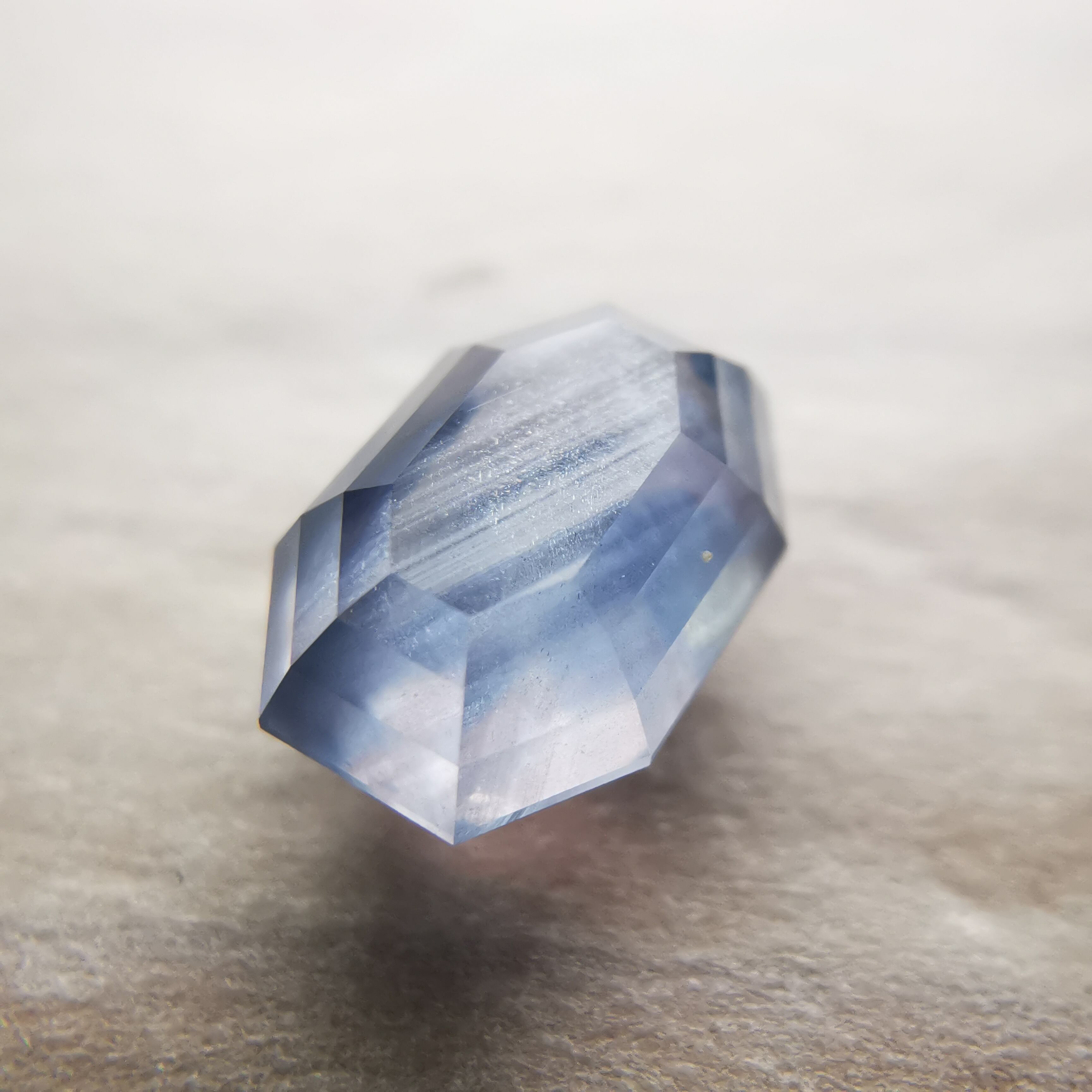 透明度の高いスターサファイアを、立体的なポートレイトカットにカスタムリカットしました。