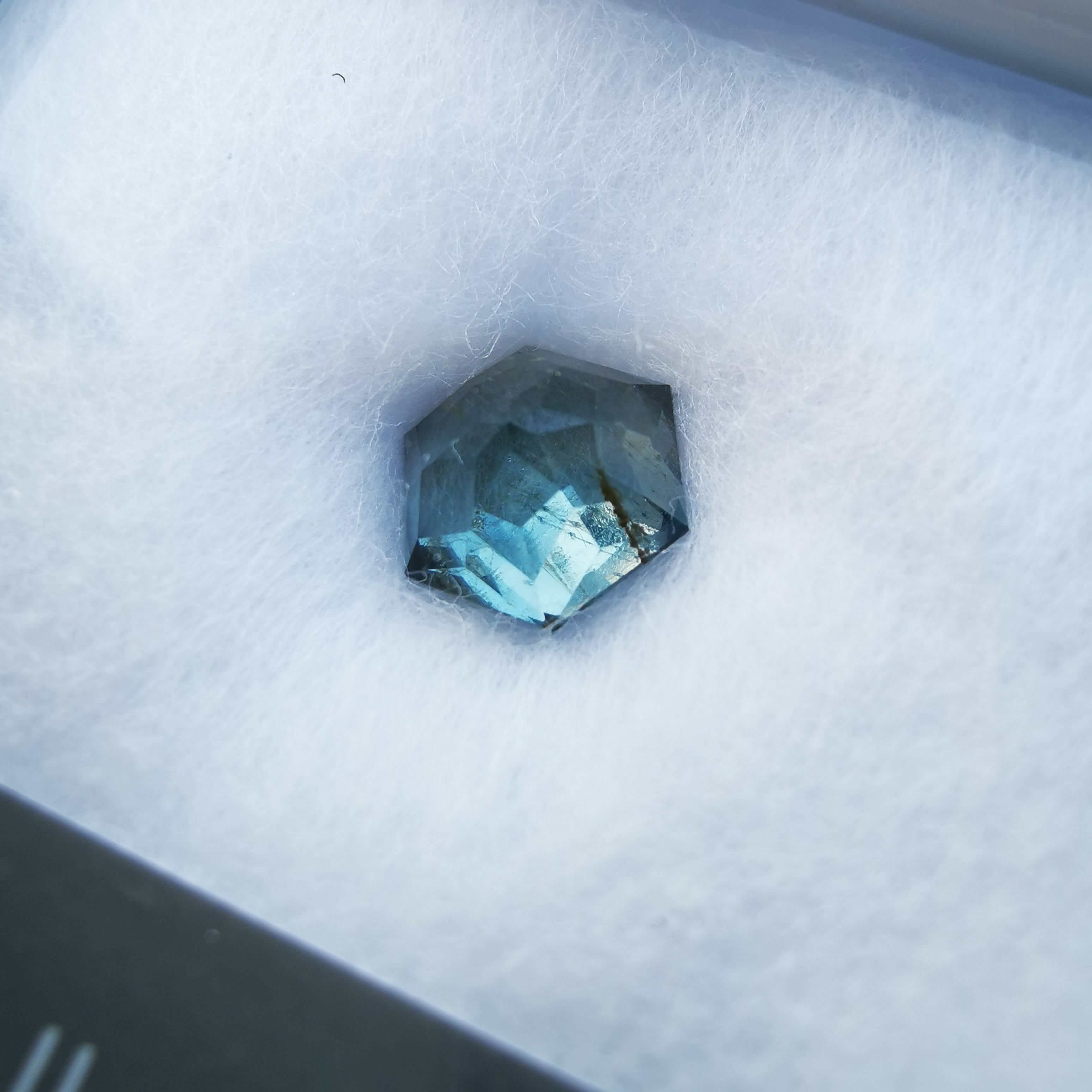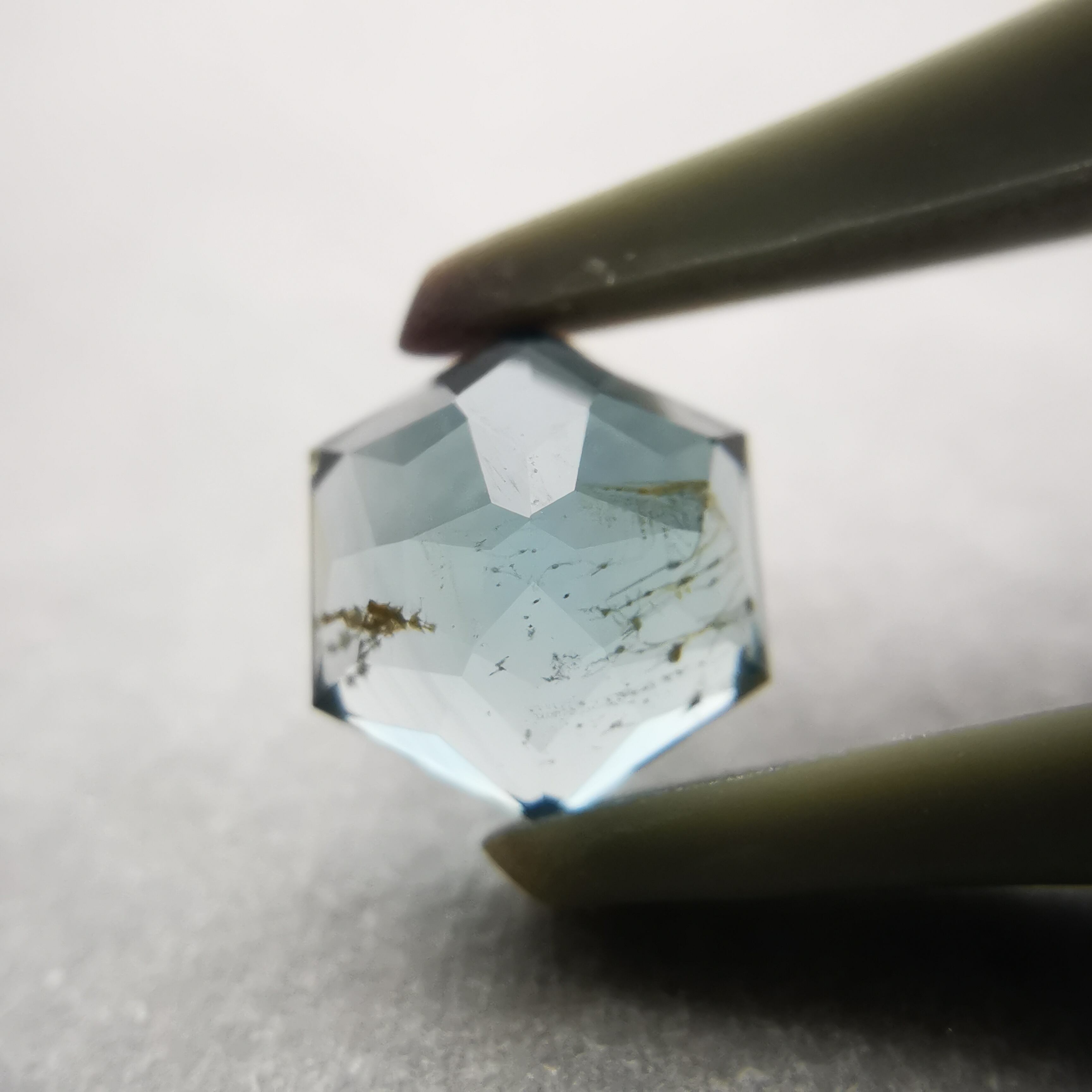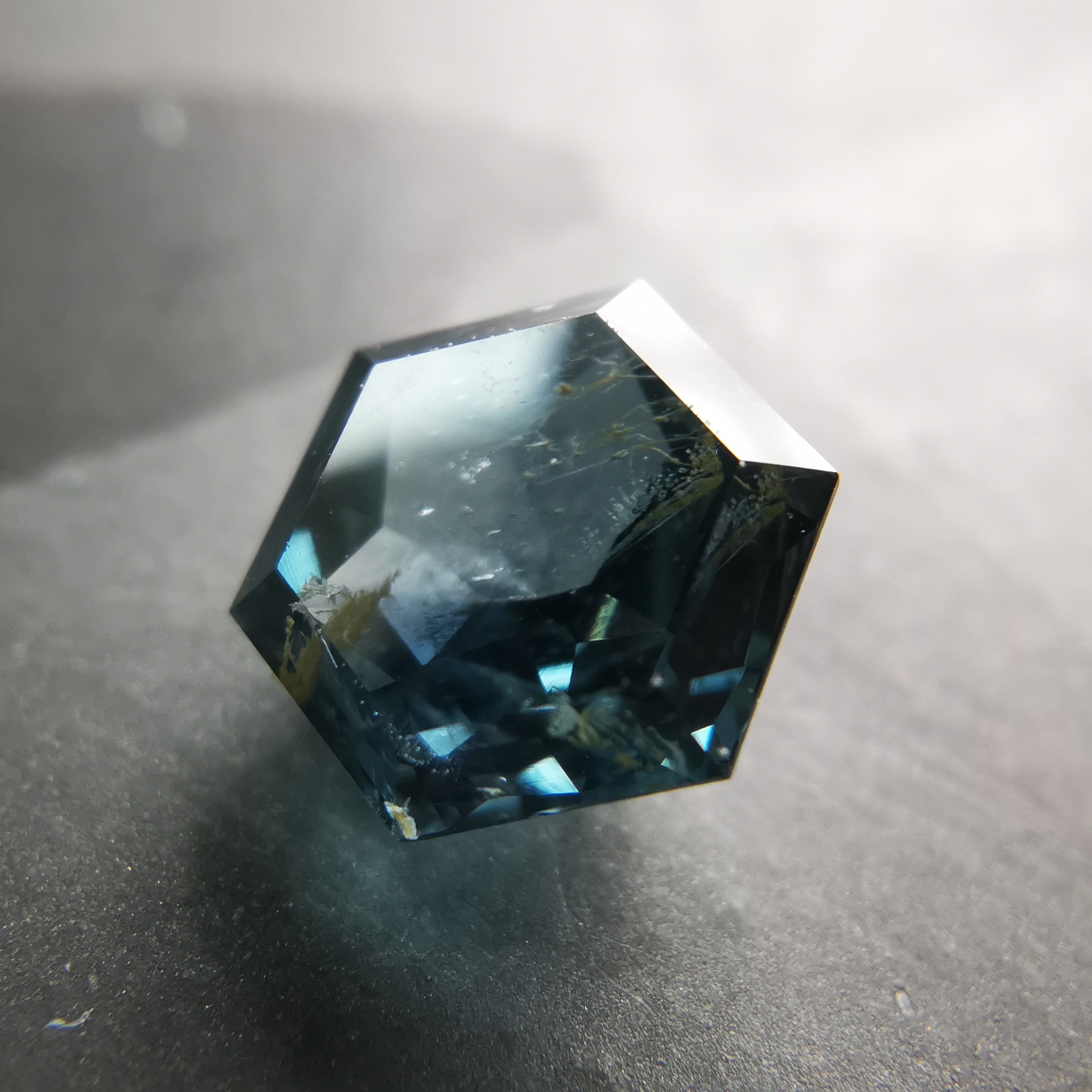 灰みの青緑、くすんだ浅葱色/錆浅葱(さびあさぎ)という色表現がぴったりのスピネルです。