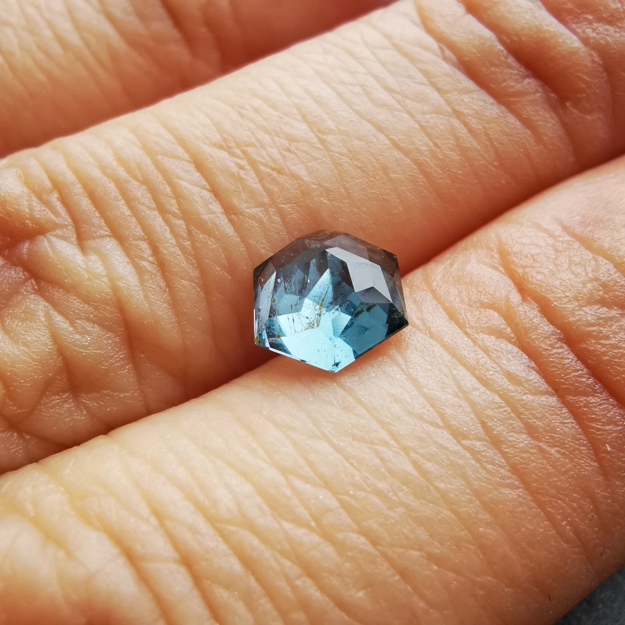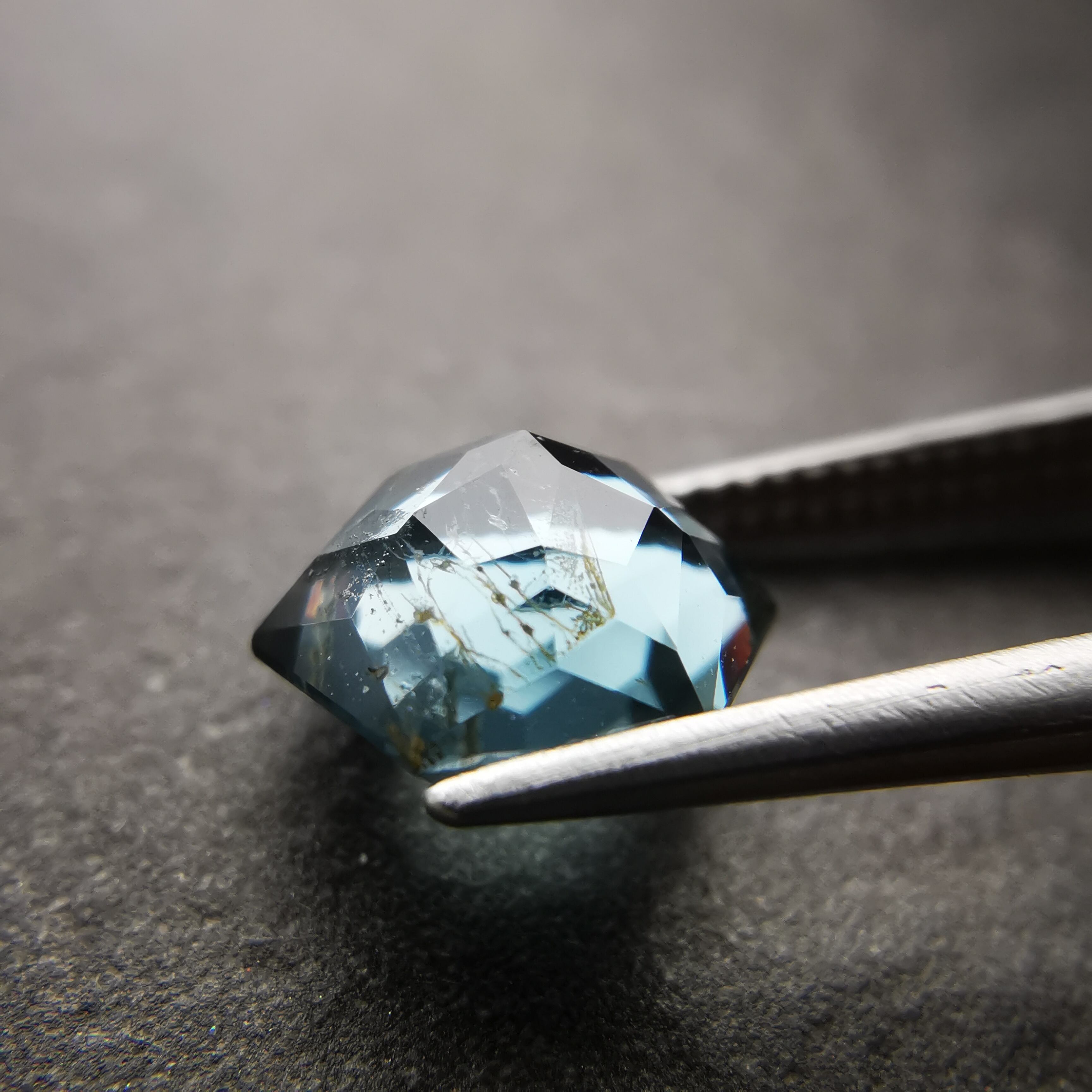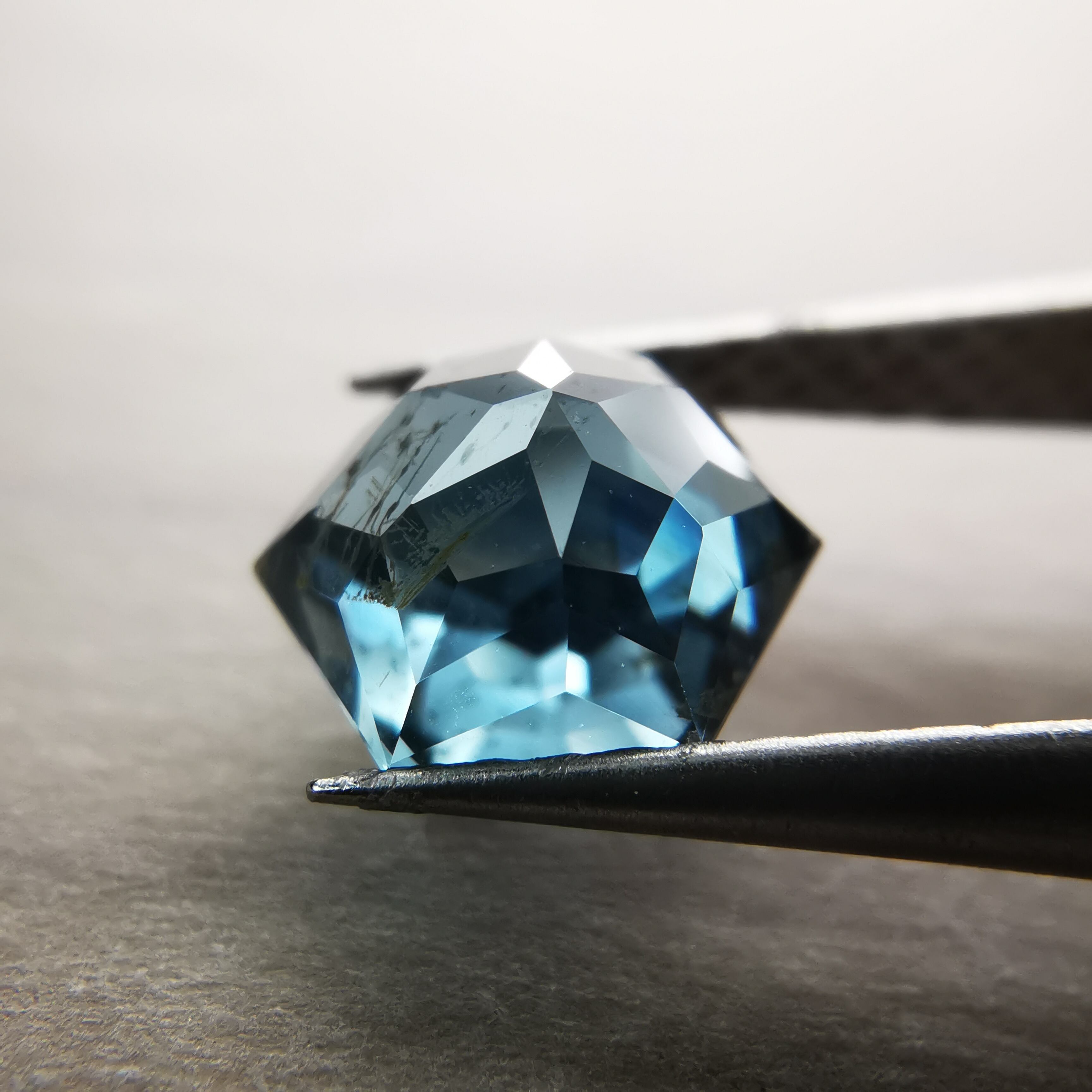 灰みの青緑、くすんだ浅葱色/錆浅葱(さびあさぎ)という色表現がぴったりのスピネルです。