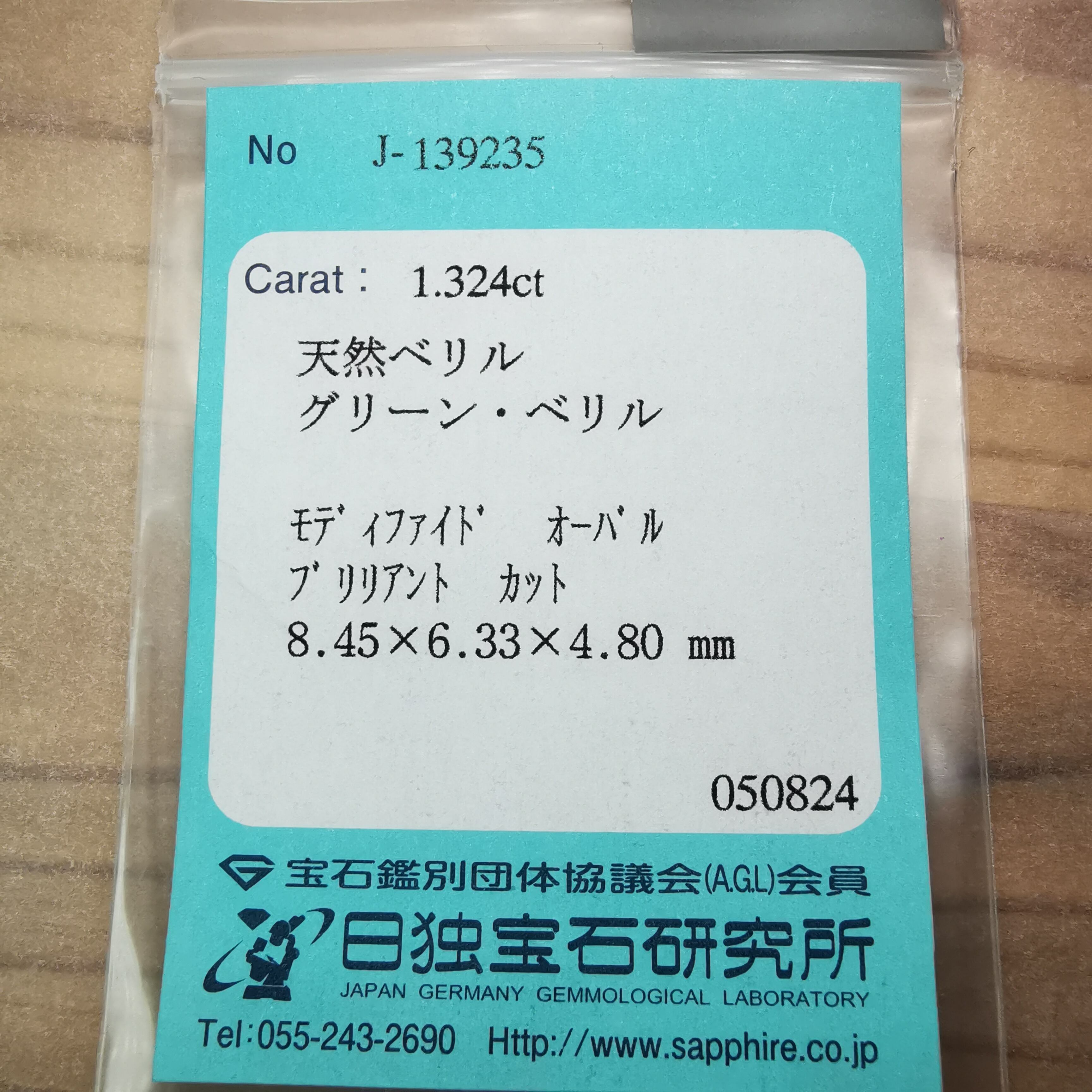 グリーンベリル 1.324ct / R-0114
