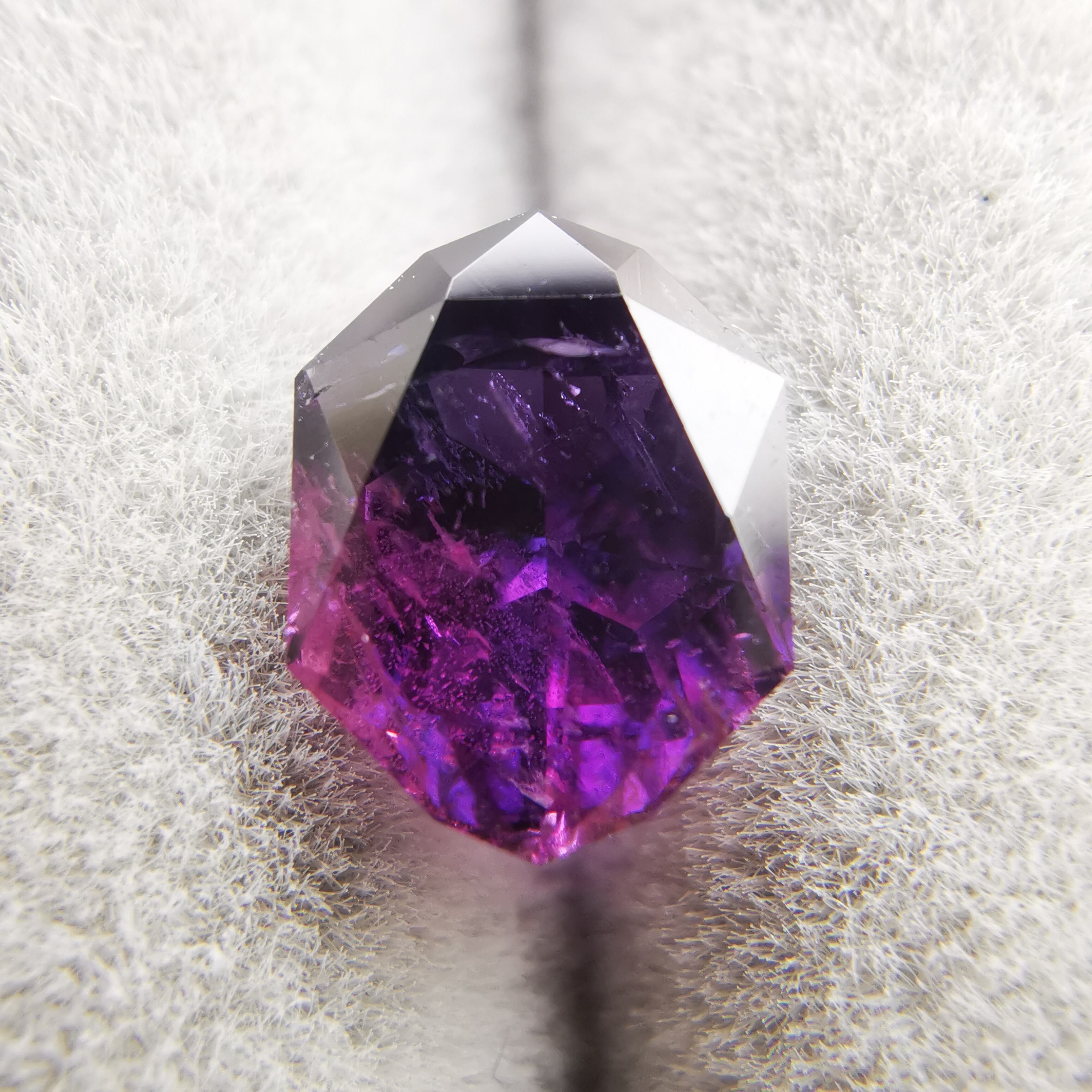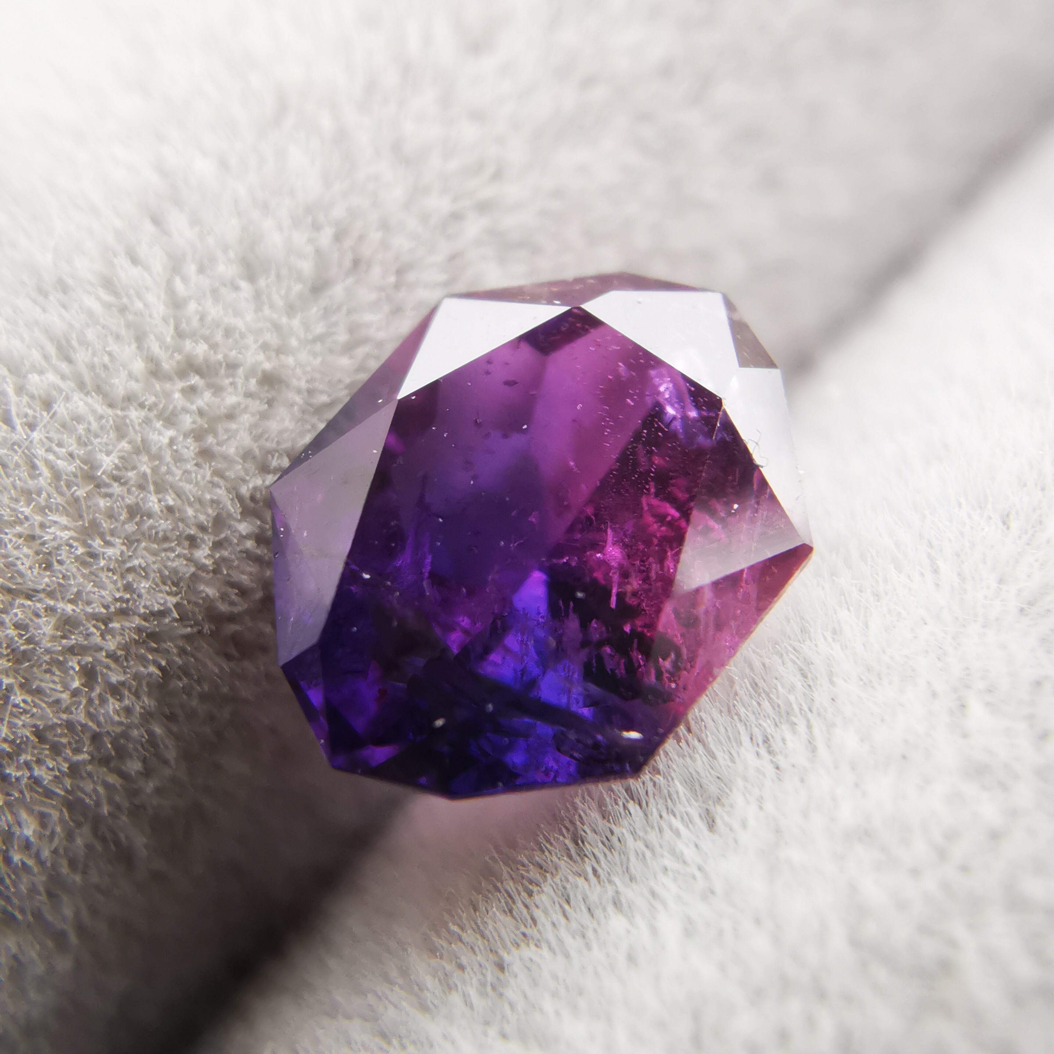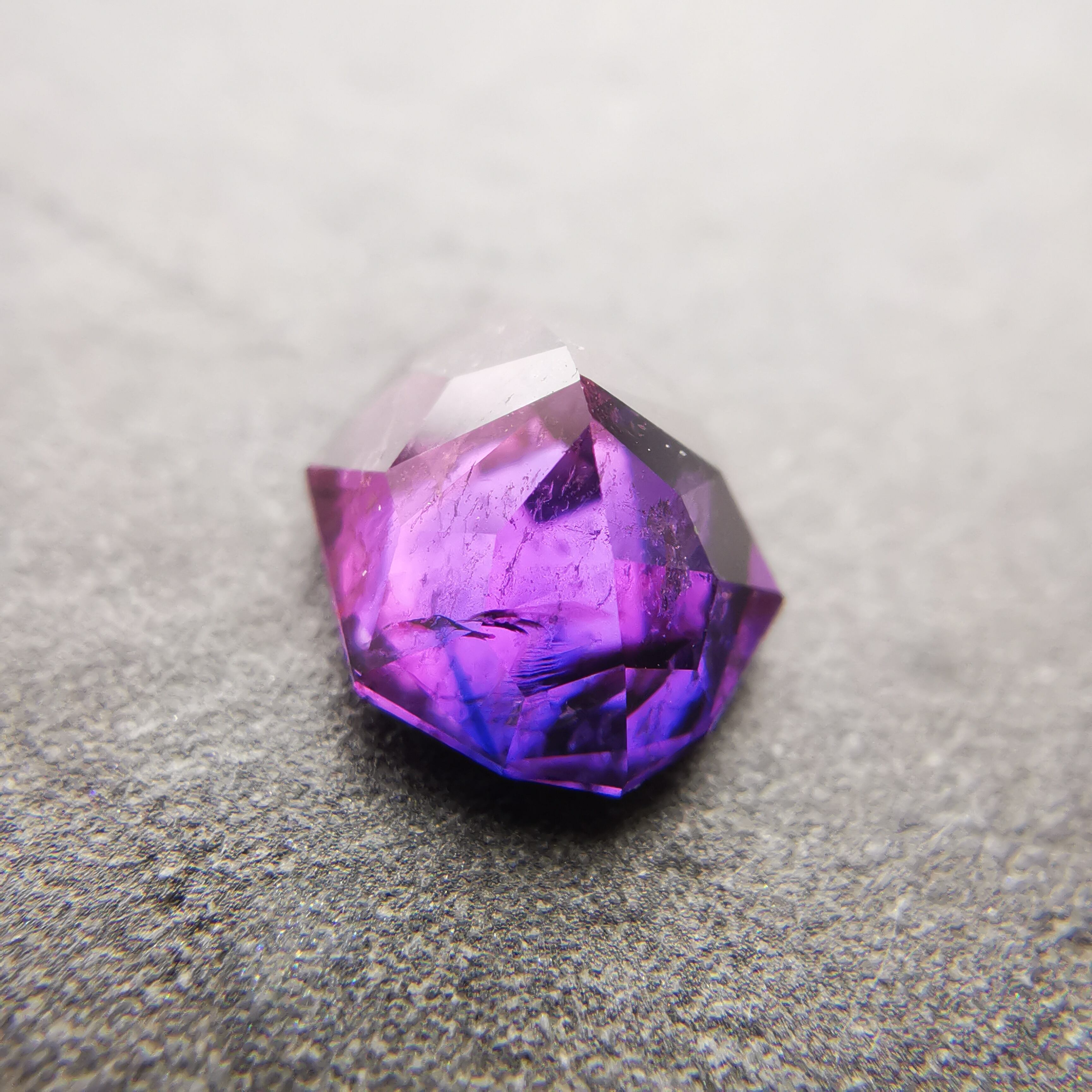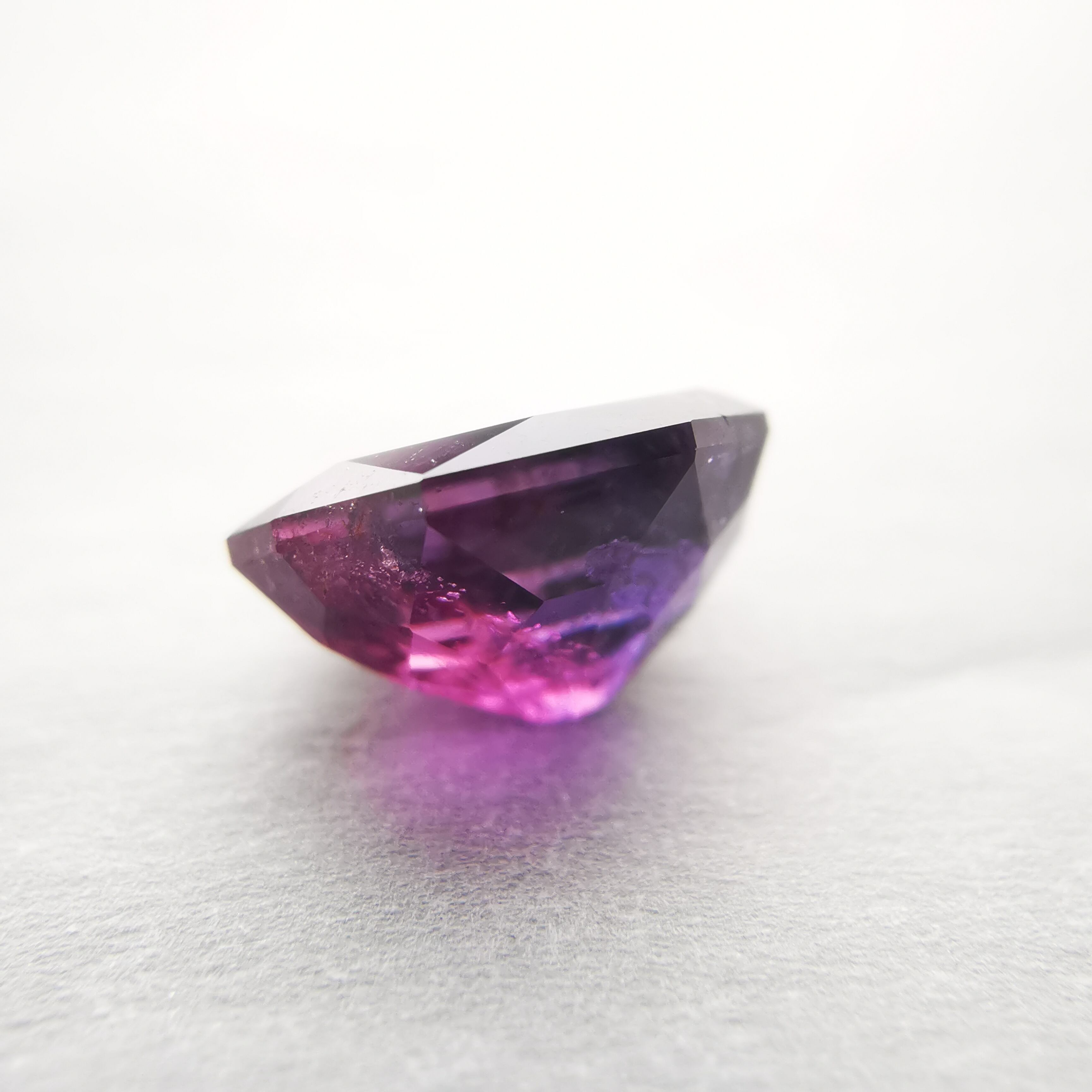 暗い灰青みの紫/江戸紫と、赤みの強い紫/京紫のバイカラーのサファイアです。