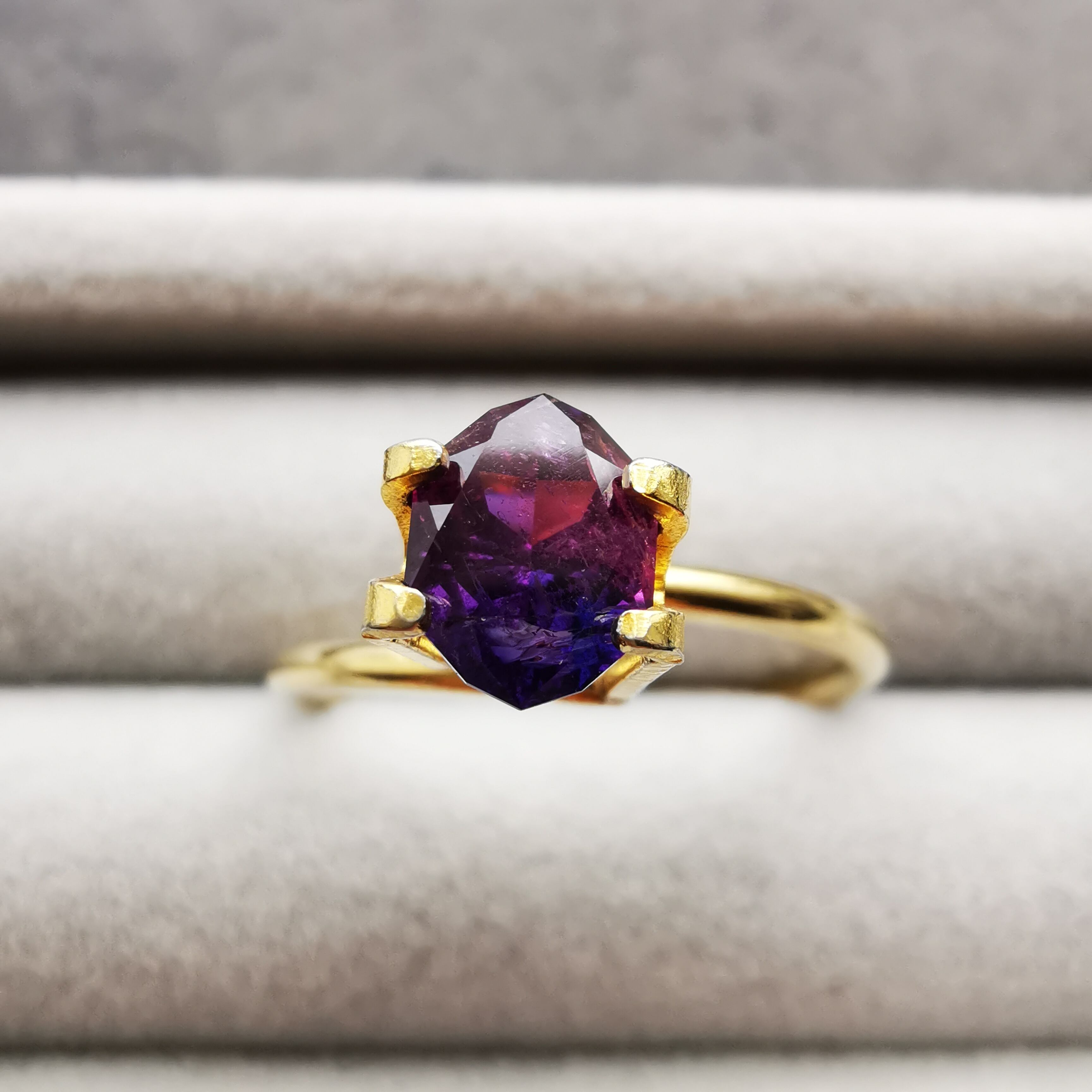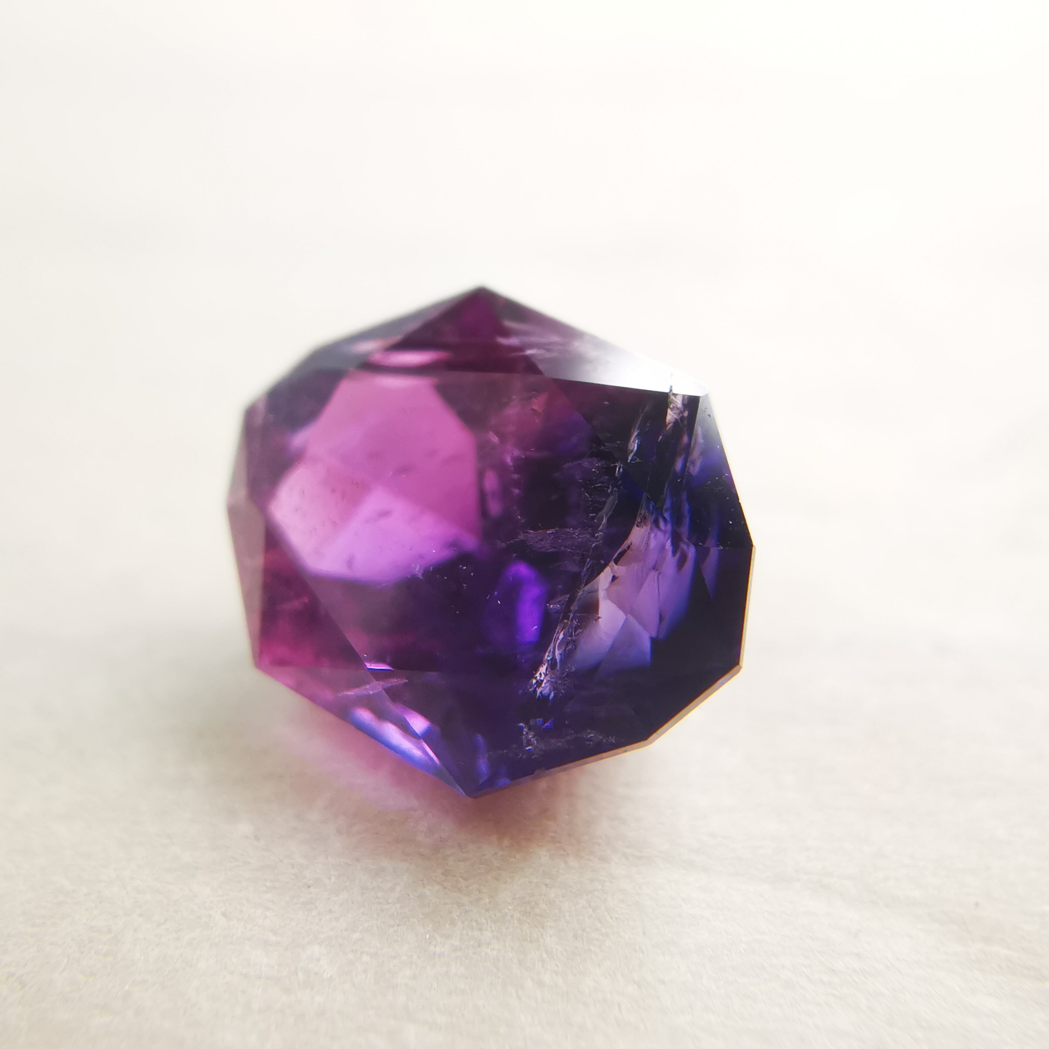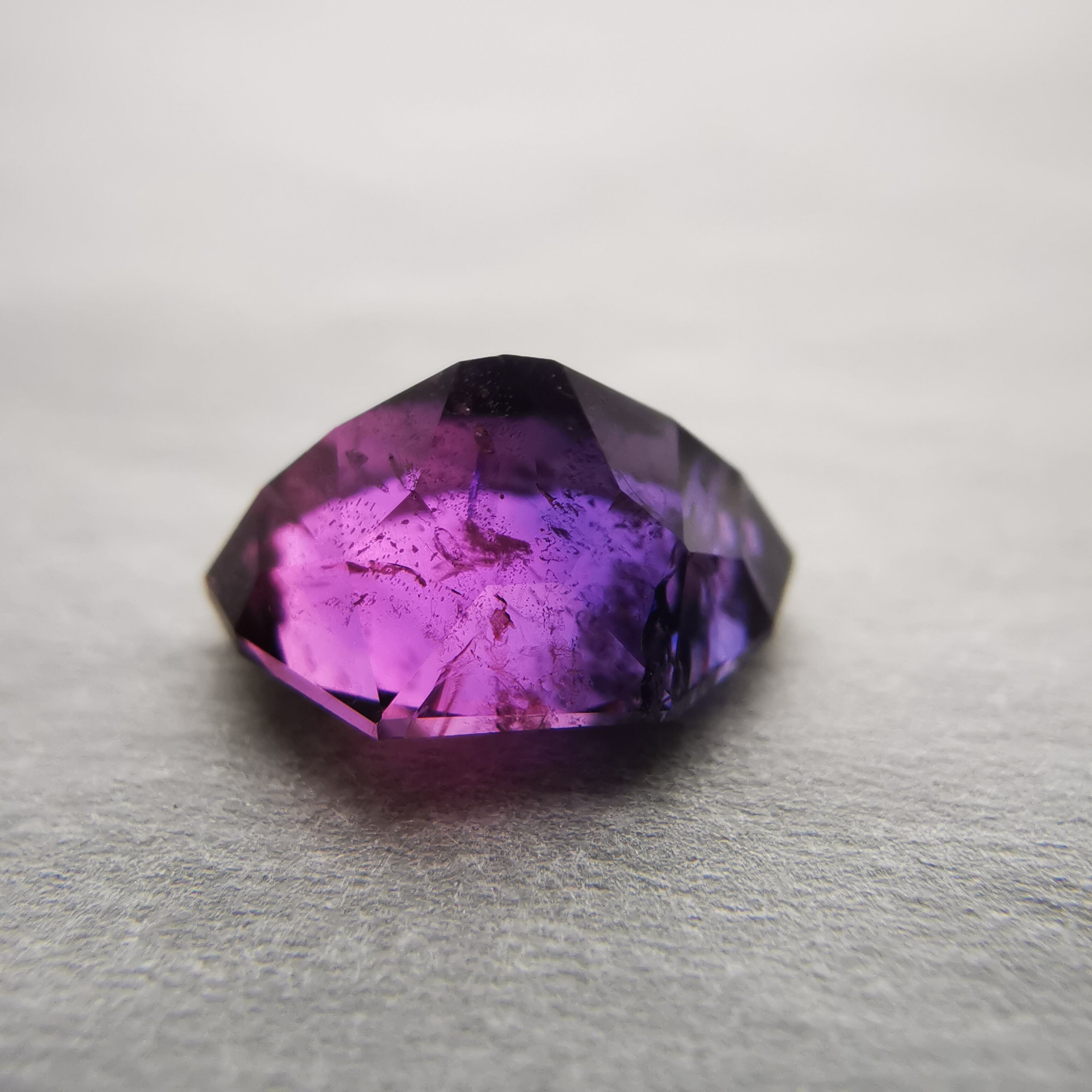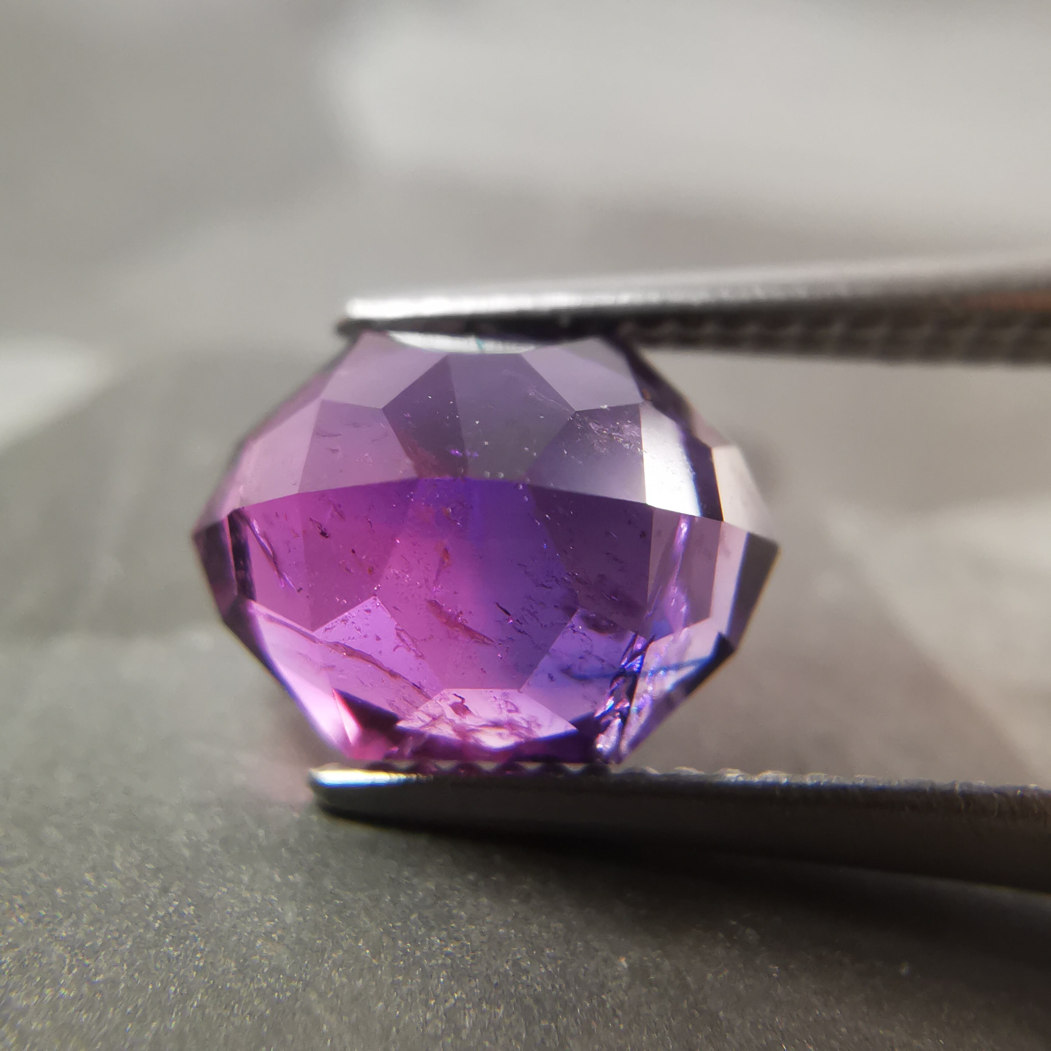 暗い灰青みの紫/江戸紫と、赤みの強い紫/京紫のバイカラーのサファイアです。