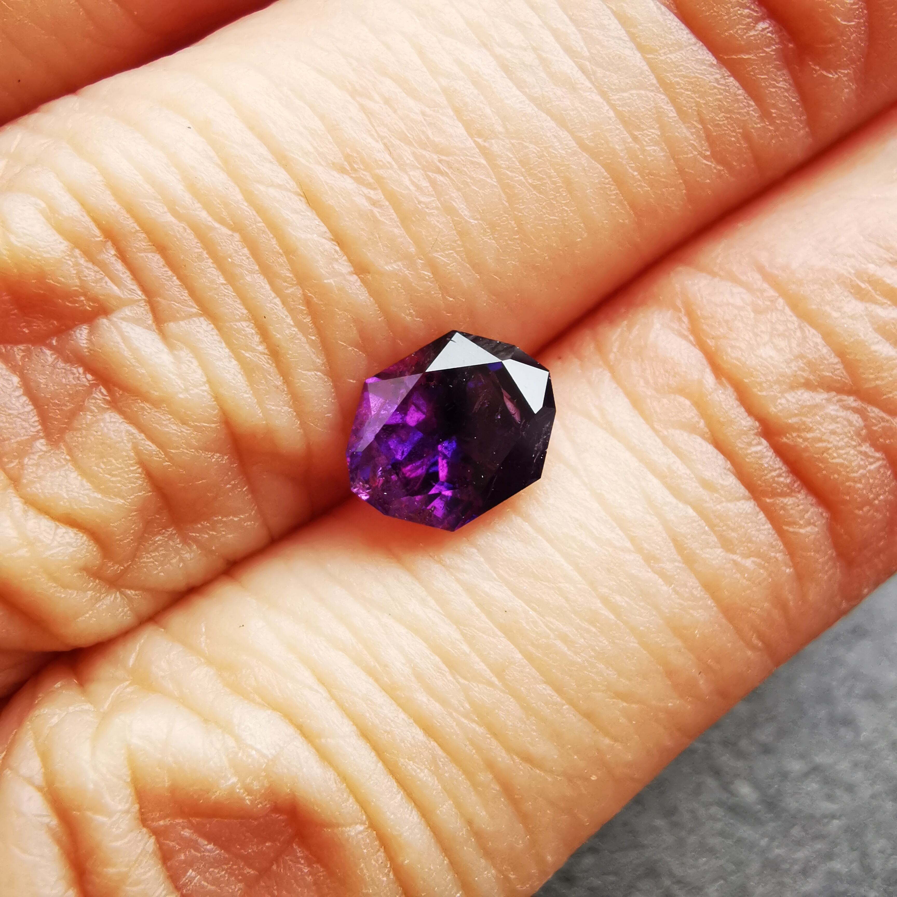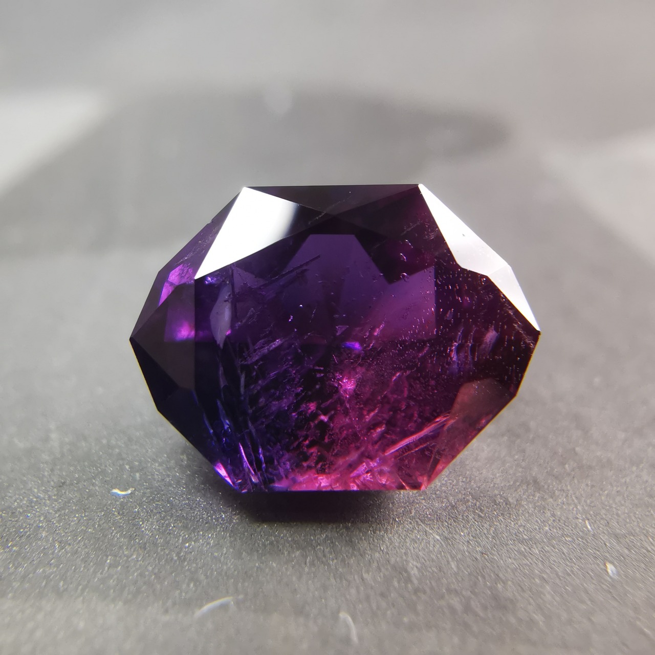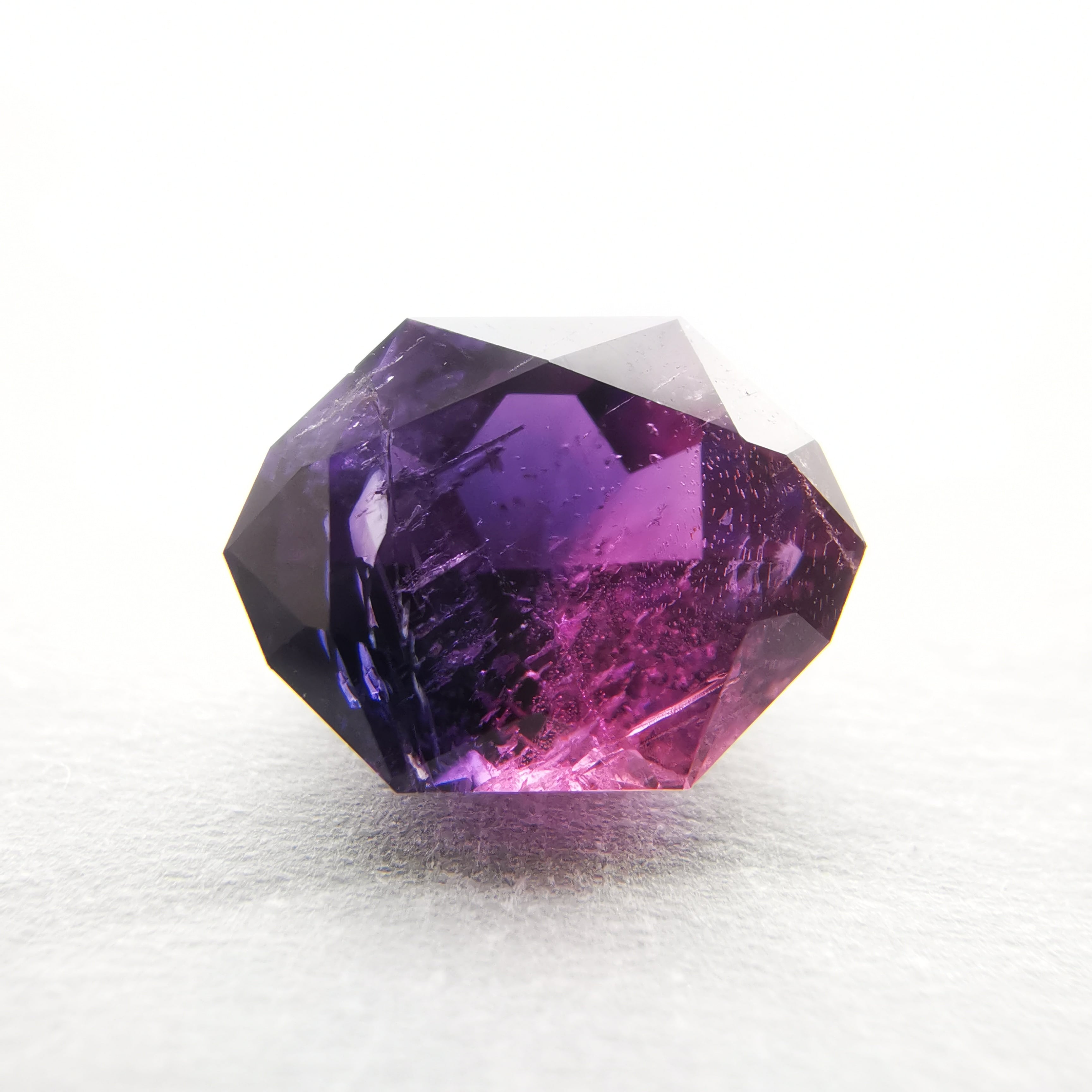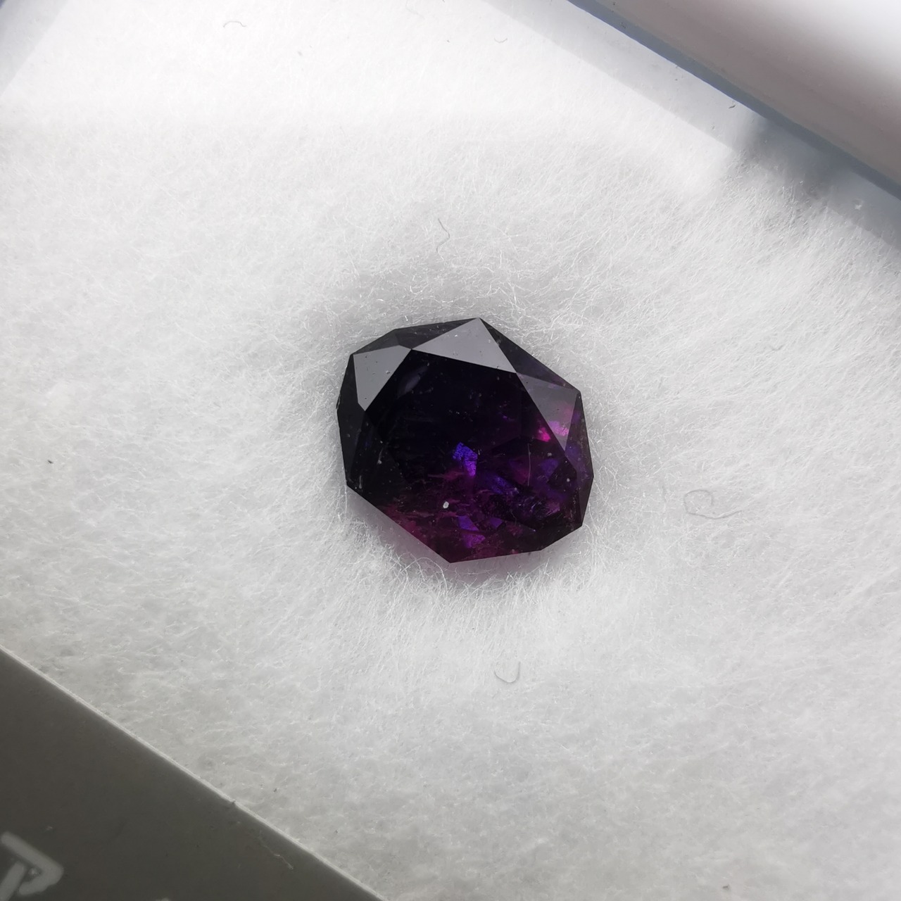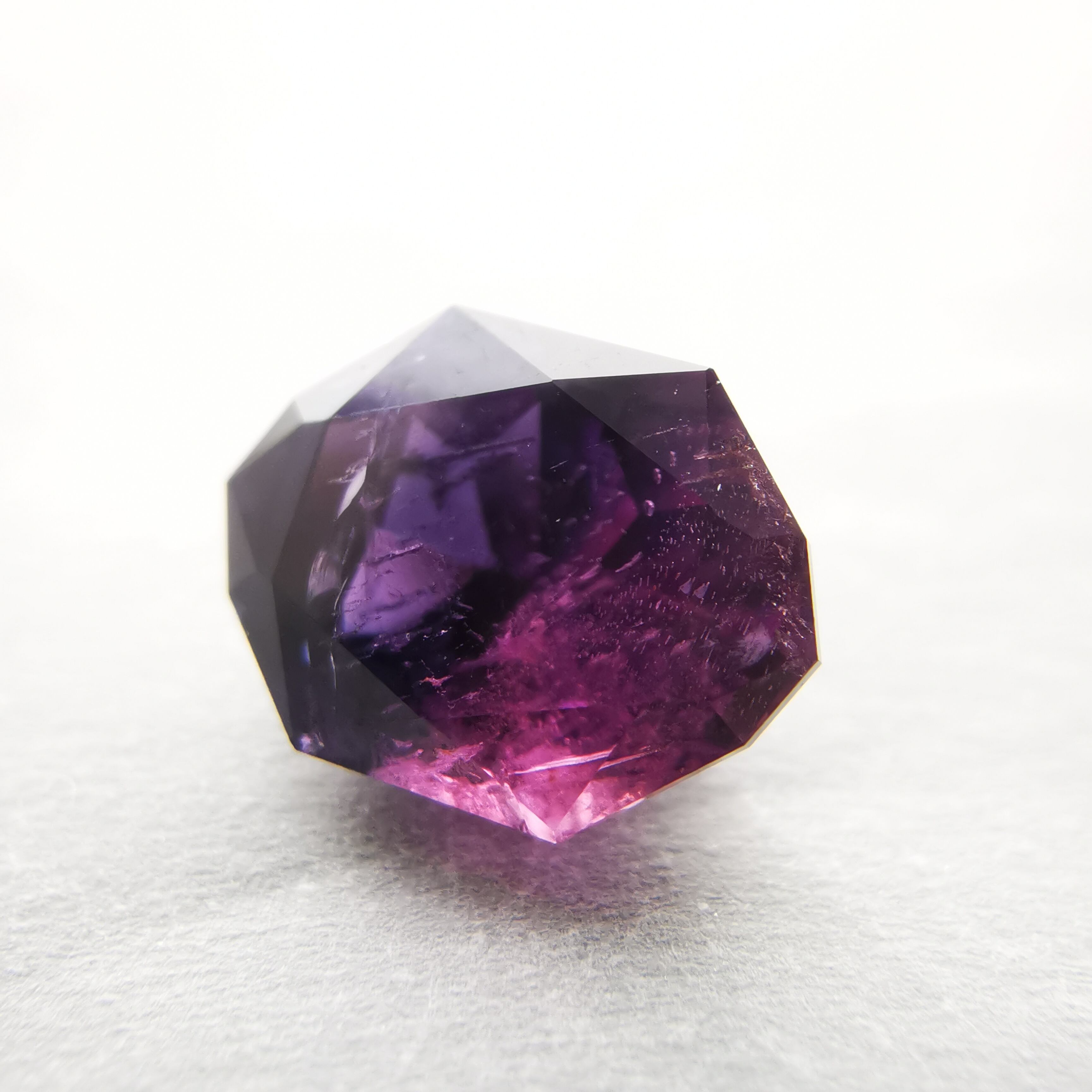 暗い灰青みの紫/江戸紫と、赤みの強い紫/京紫のバイカラーのサファイアです。
