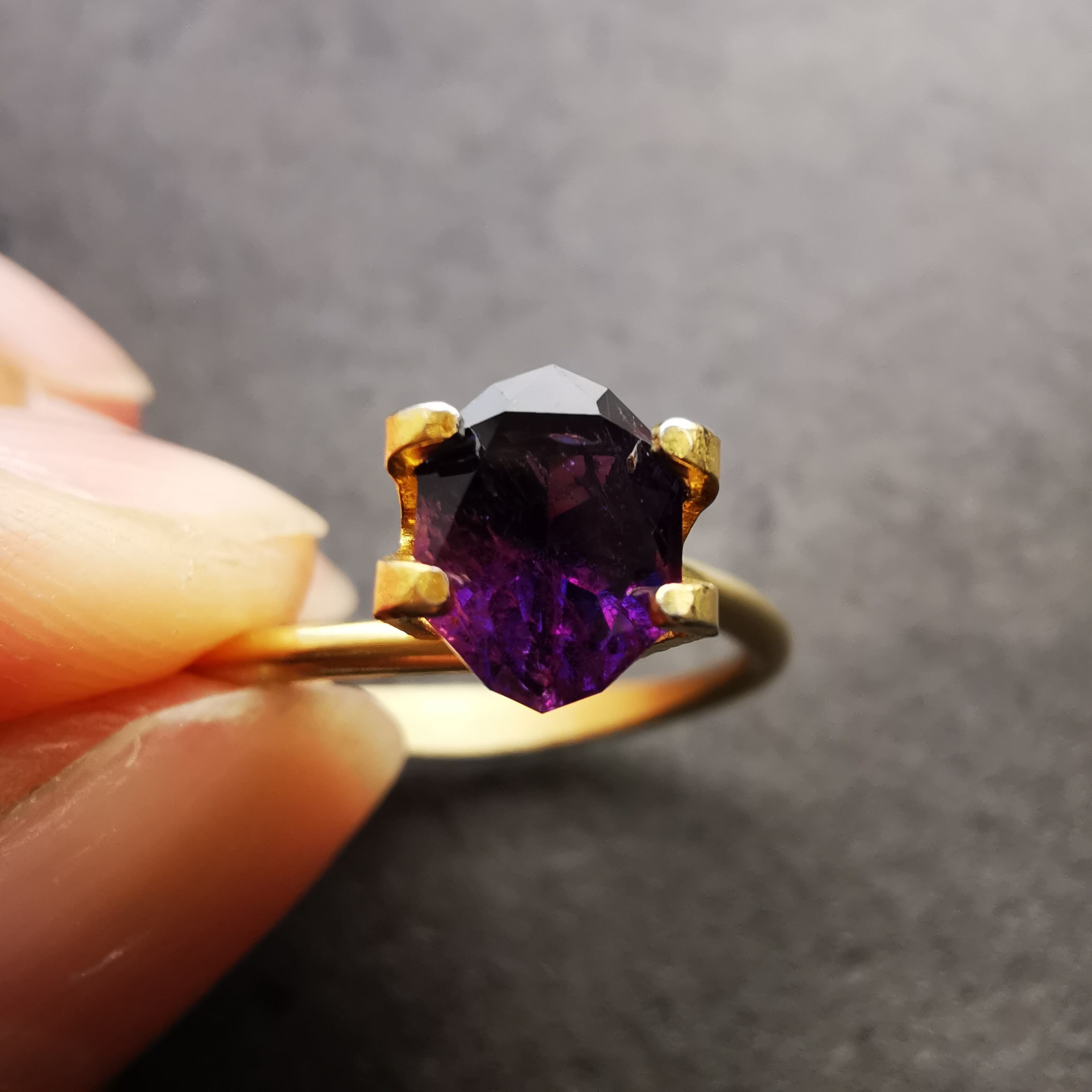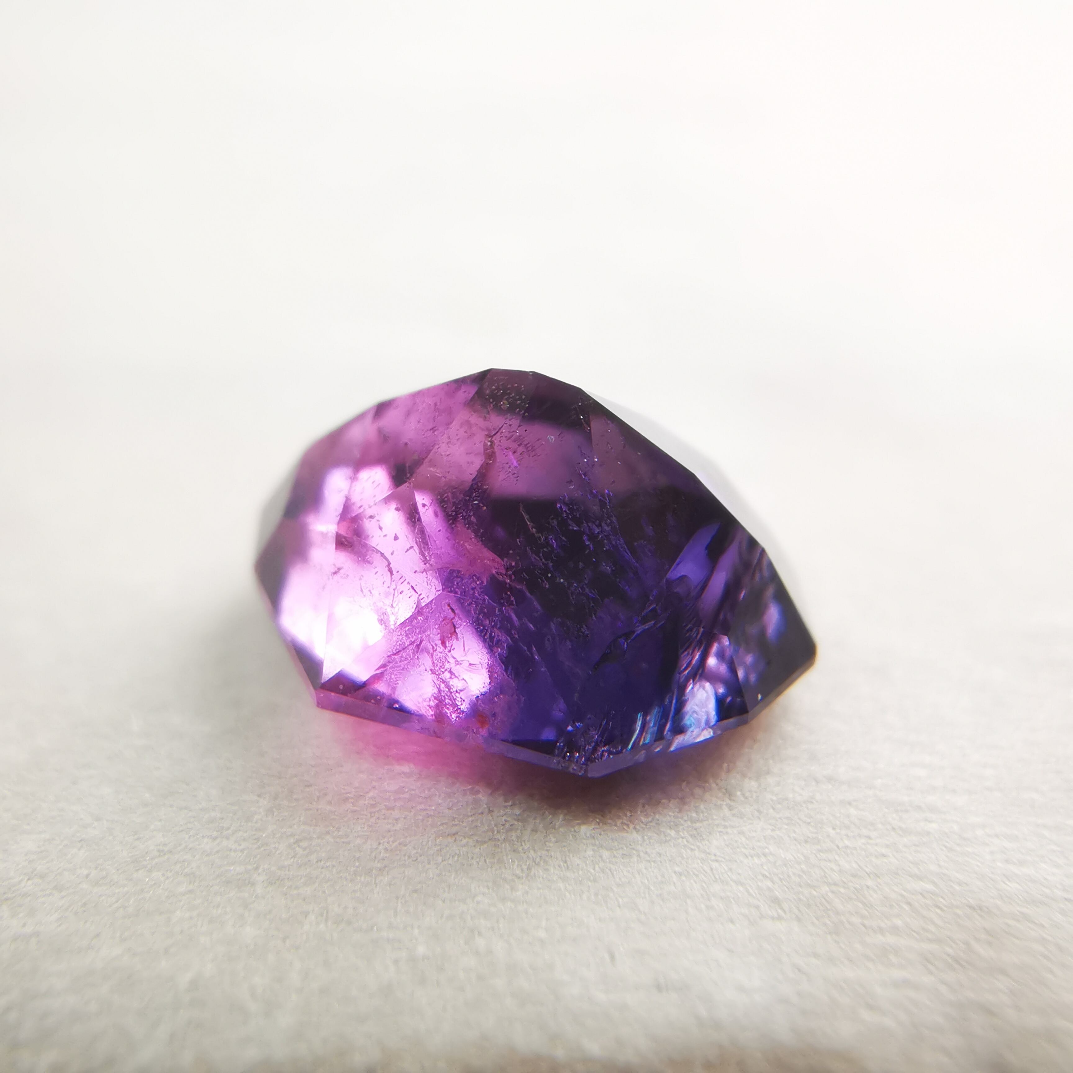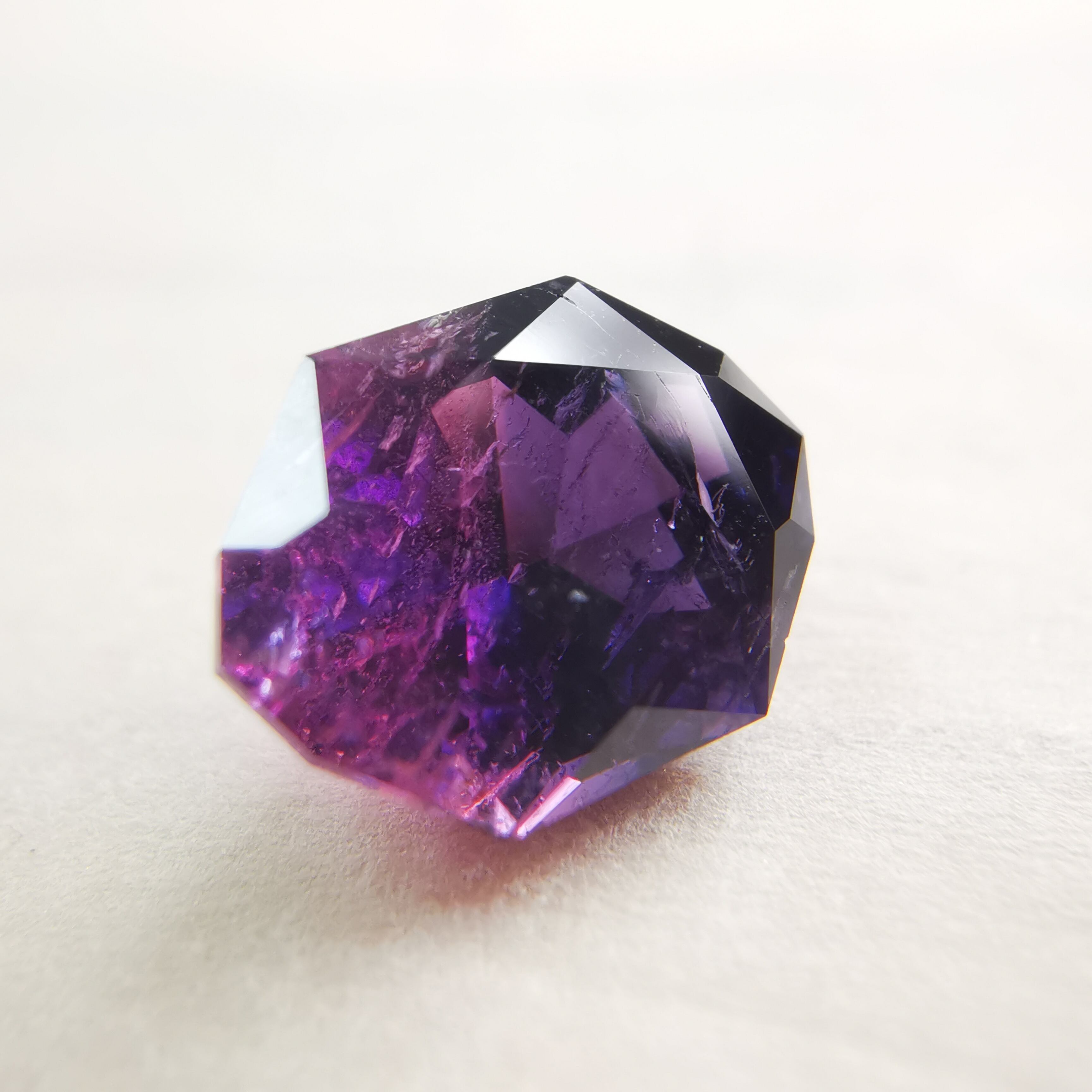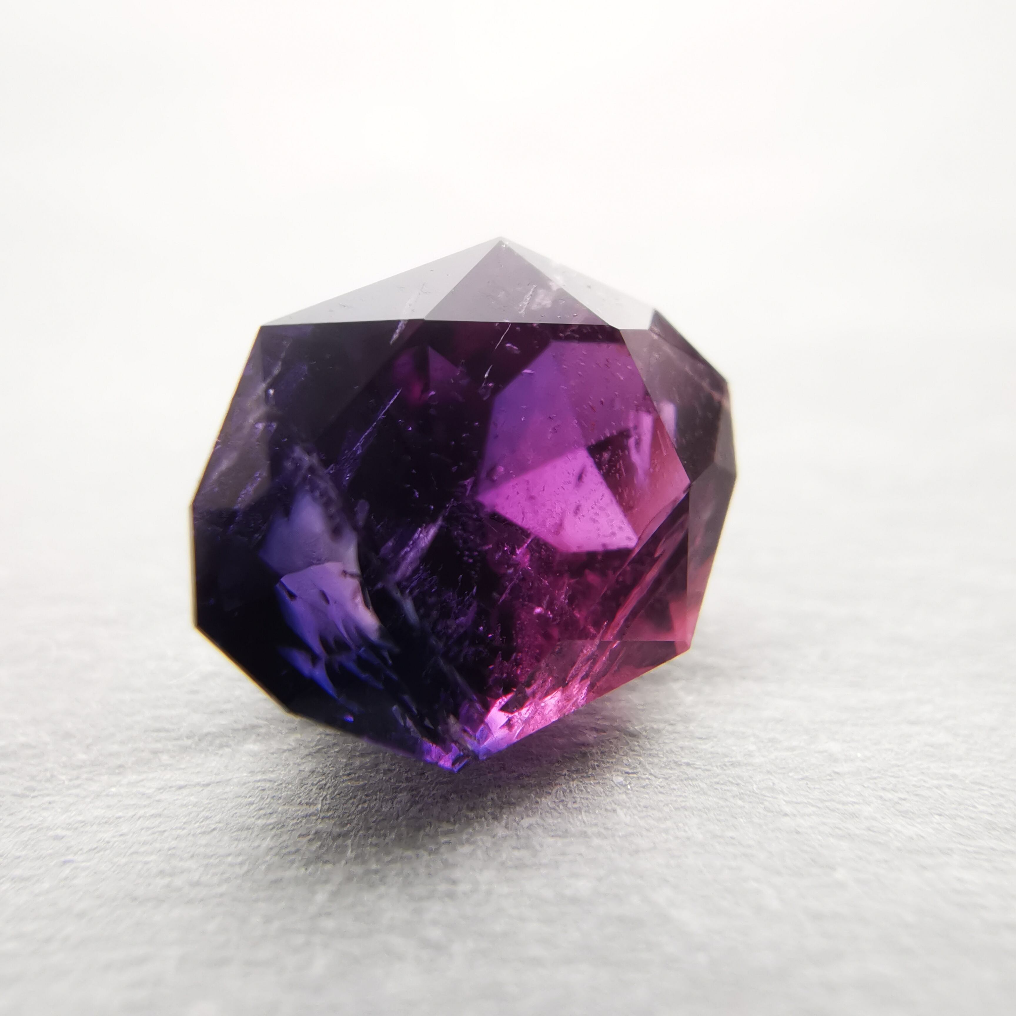 暗い灰青みの紫/江戸紫と、赤みの強い紫/京紫のバイカラーのサファイアです。