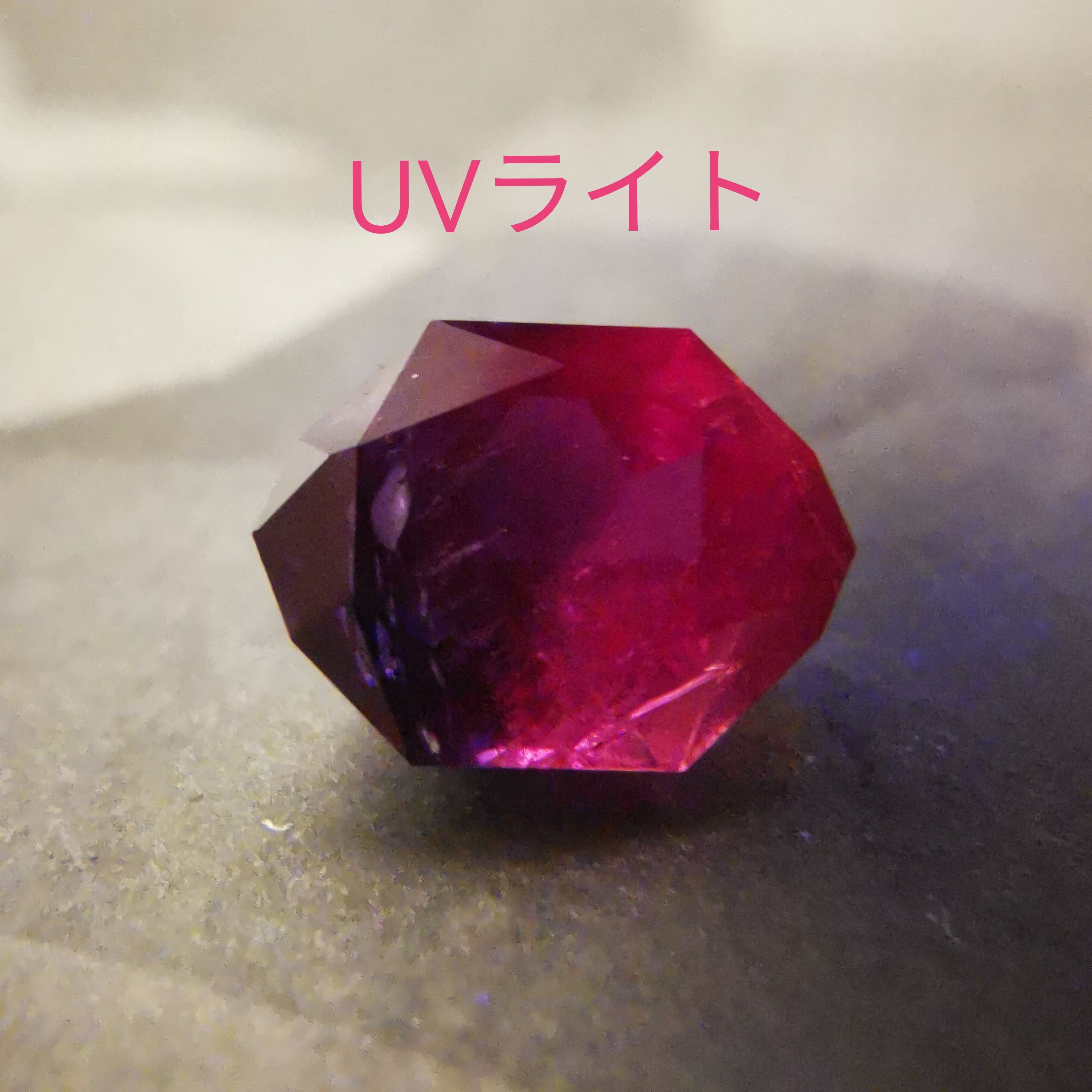 赤みの側だけ、UVライトでわずかに蛍光します。(写真15)