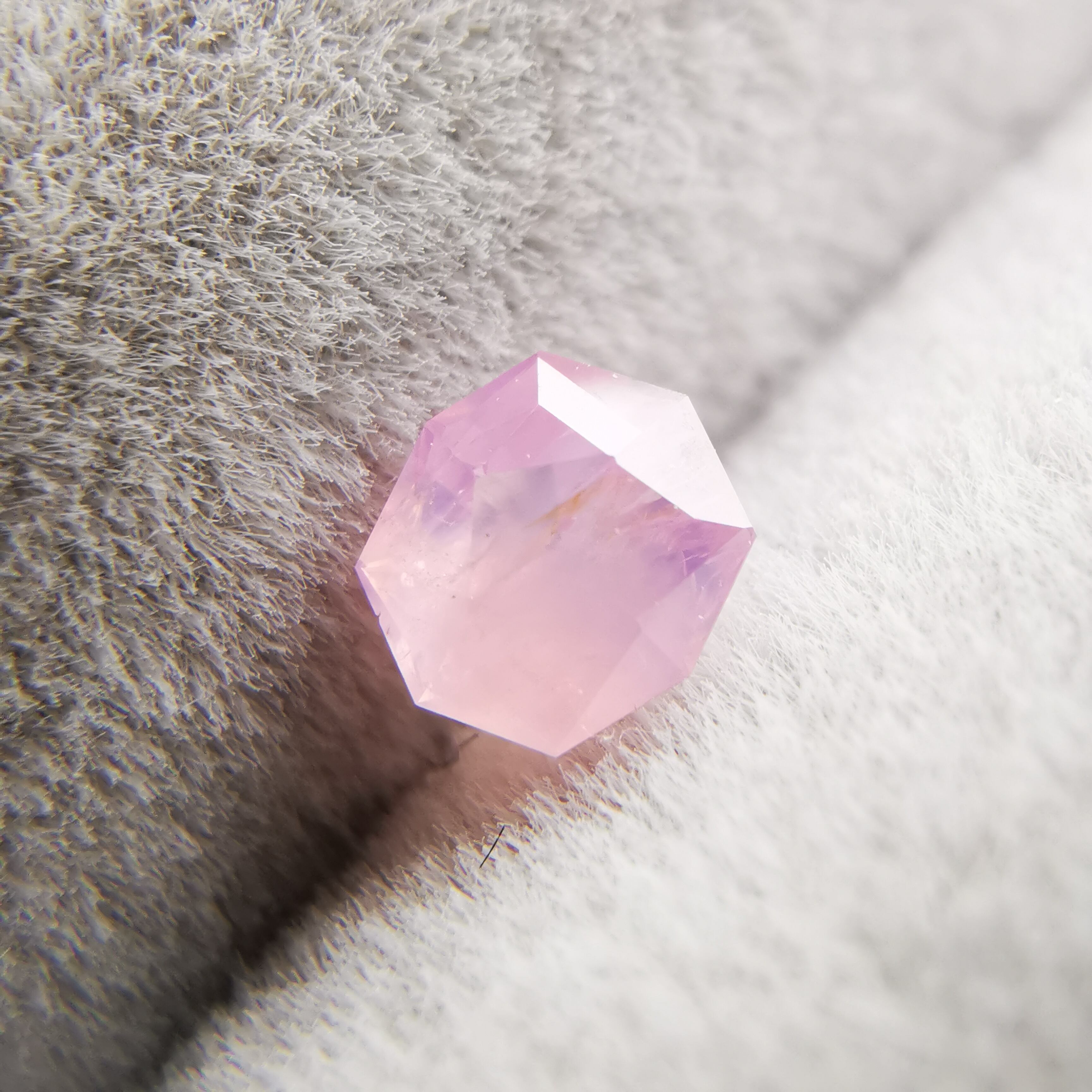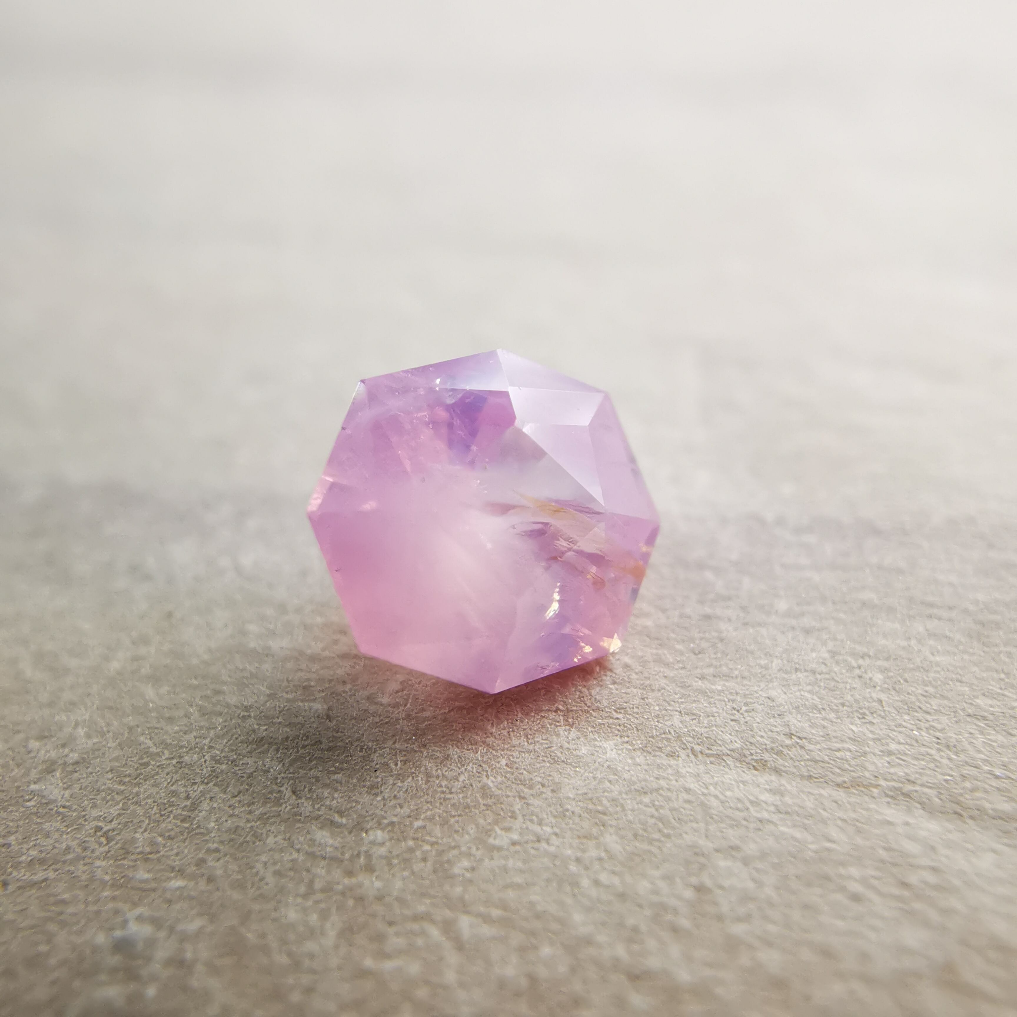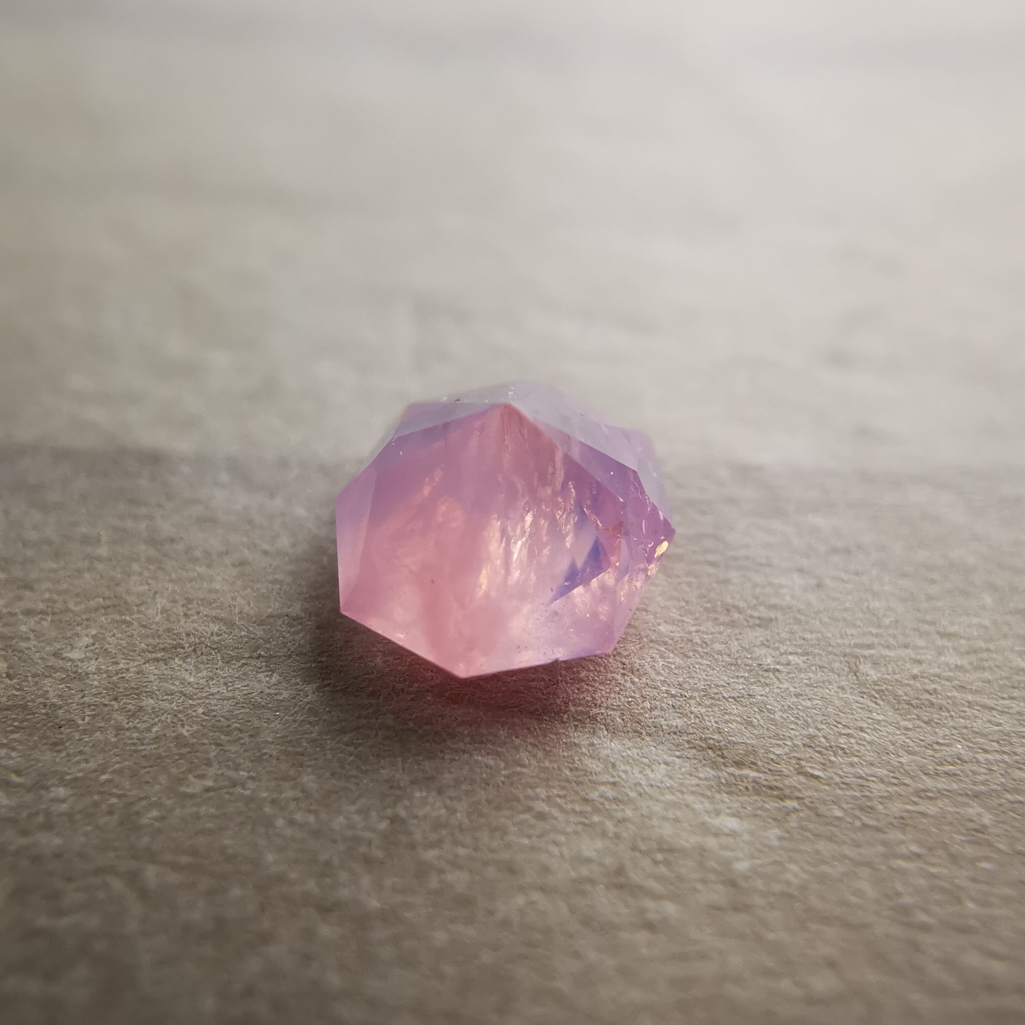 一部インクルージョンが抜けていて透明感の高い部分があり、ピンクの濃淡があります。