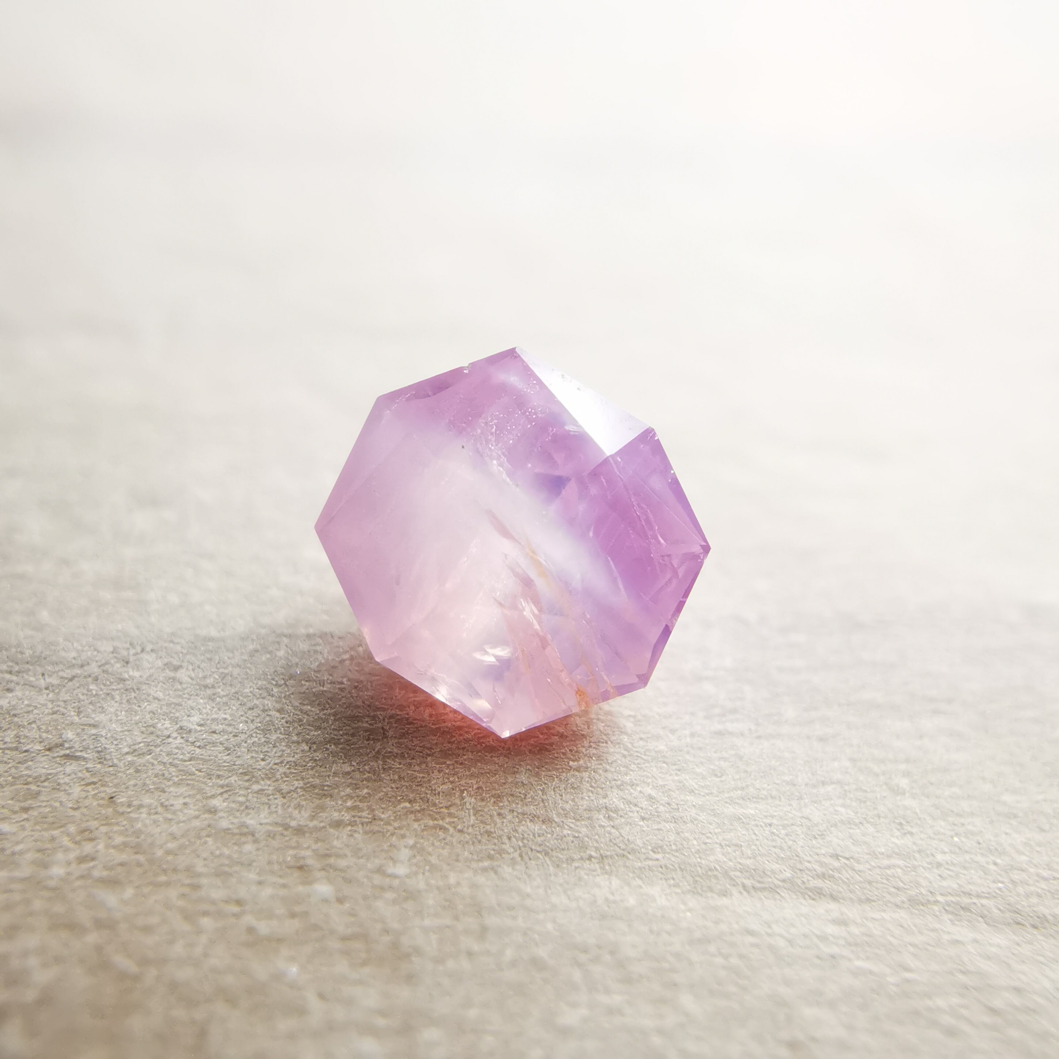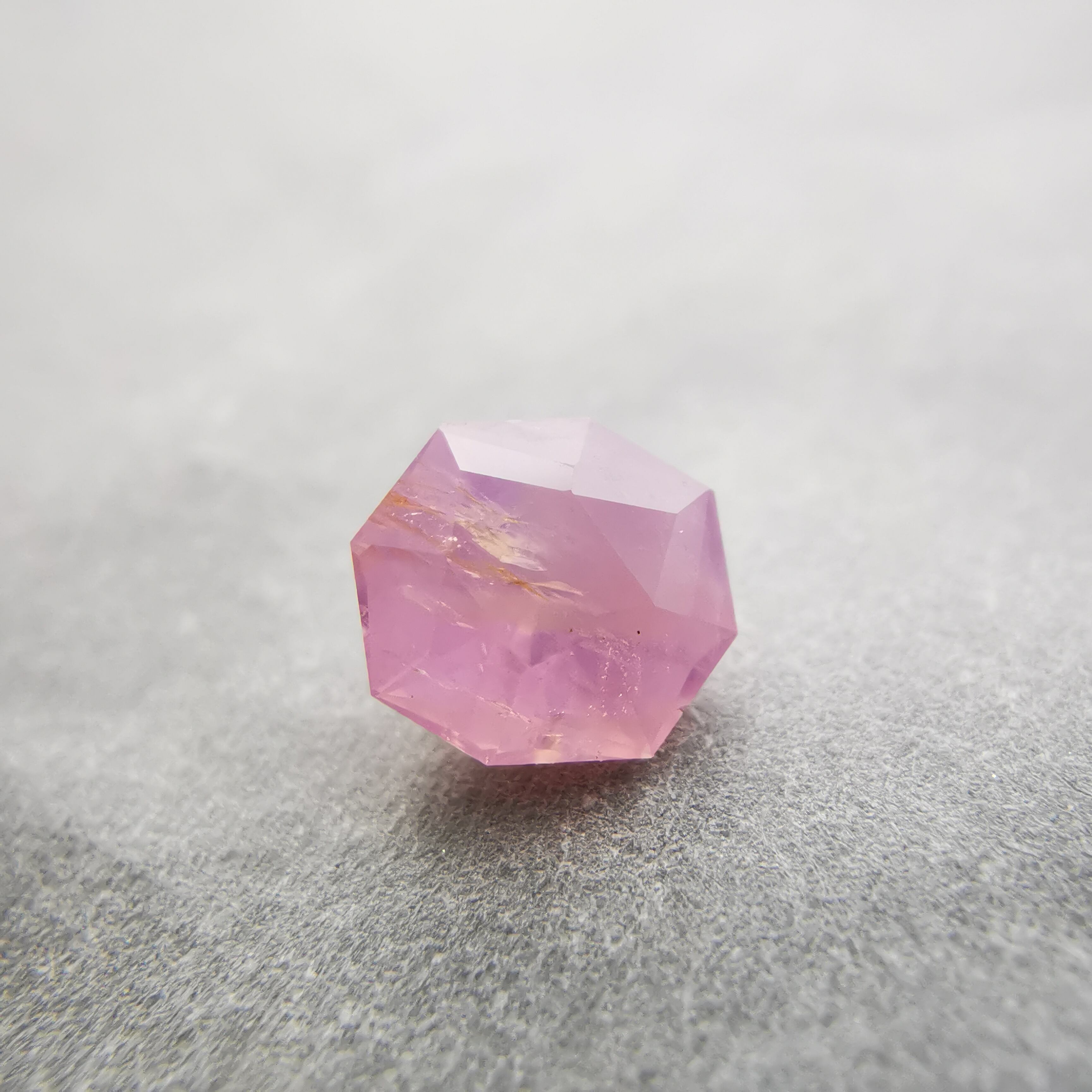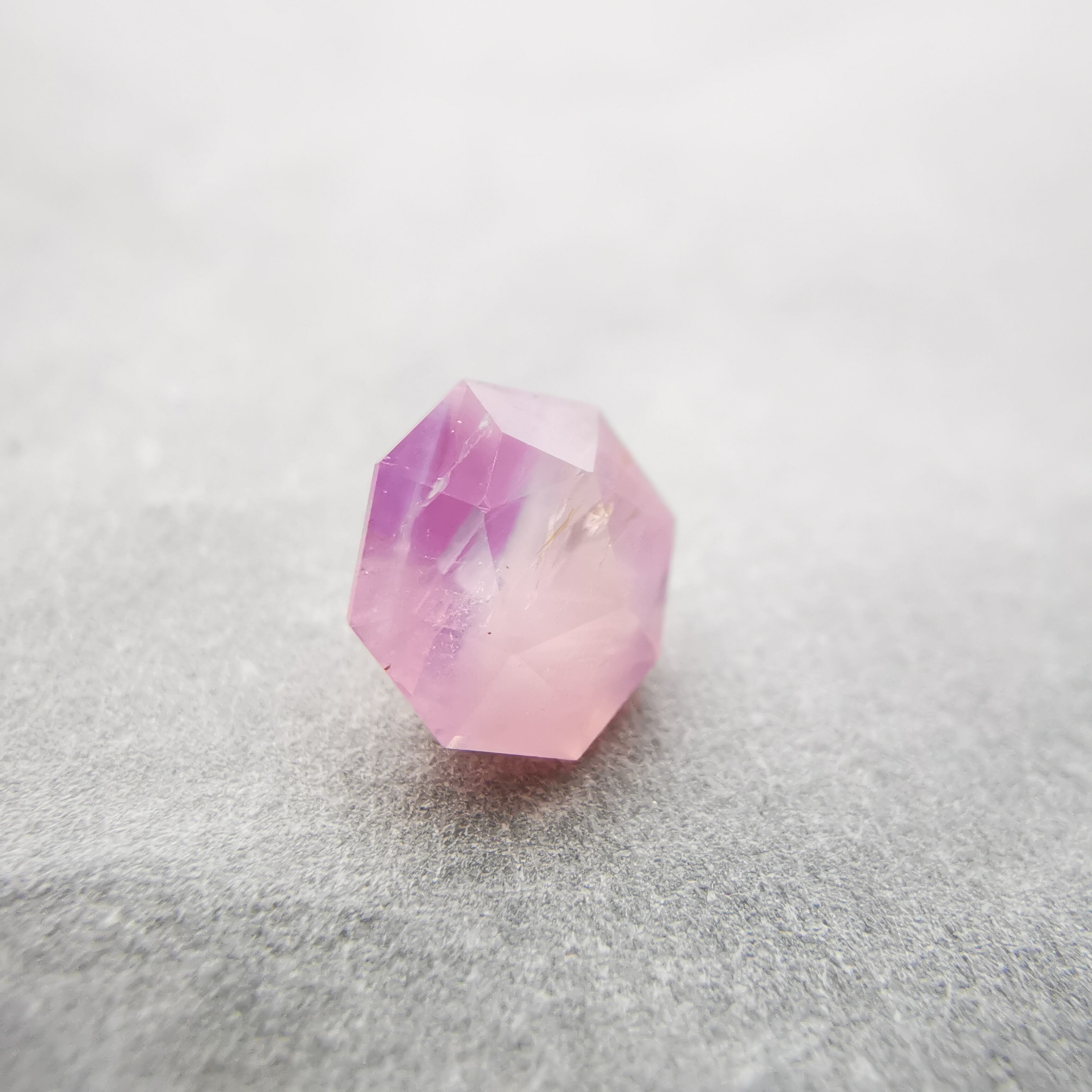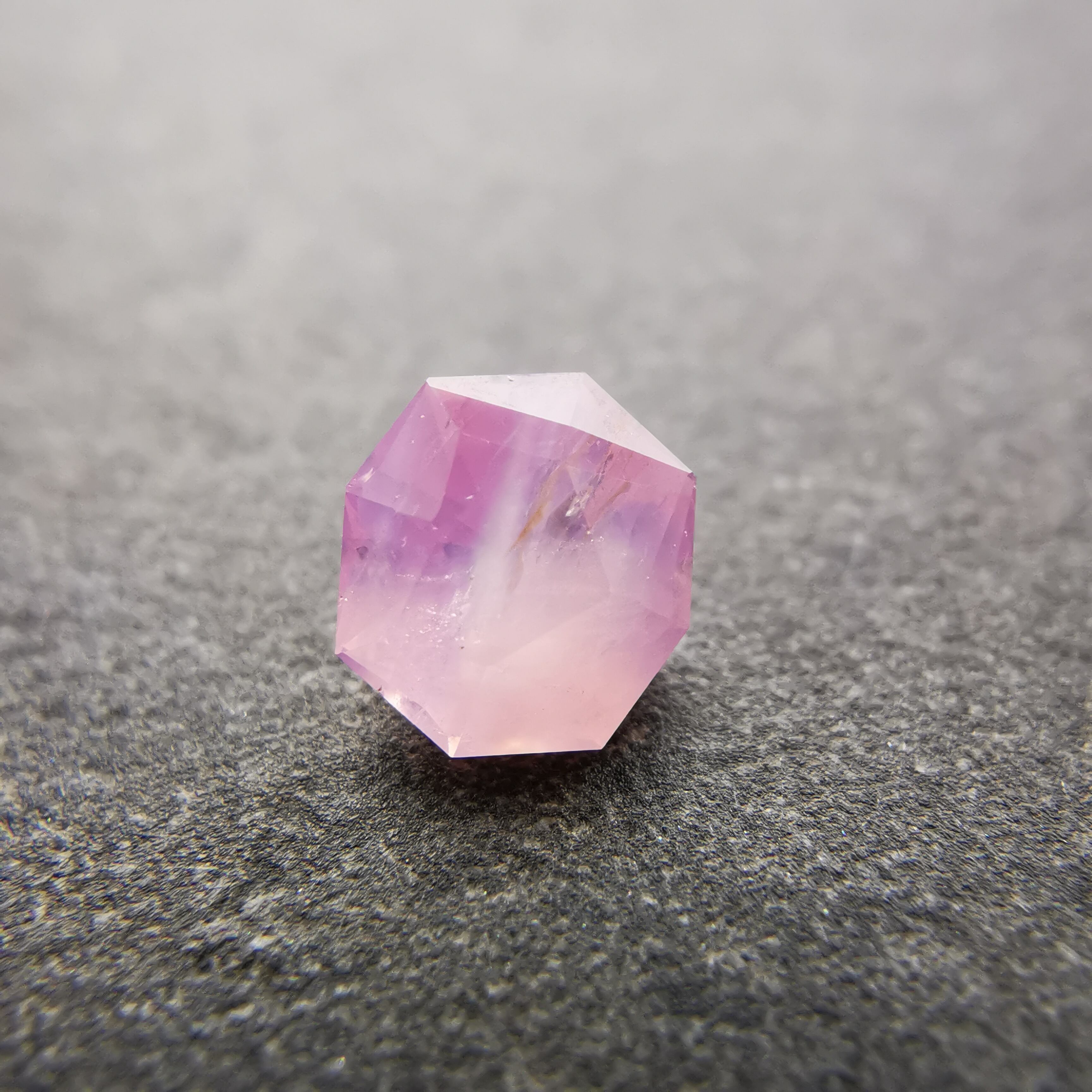 一部インクルージョンが抜けていて透明感の高い部分があり、ピンクの濃淡があります。